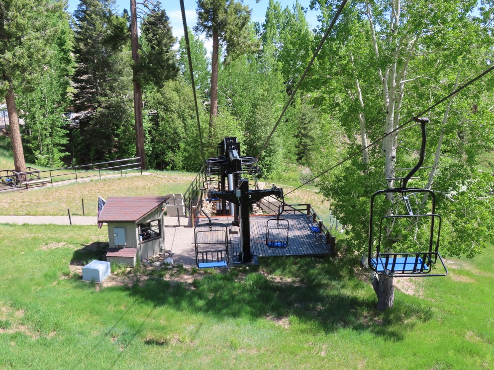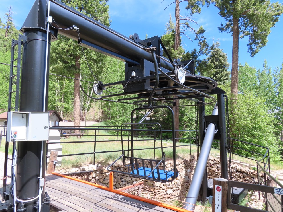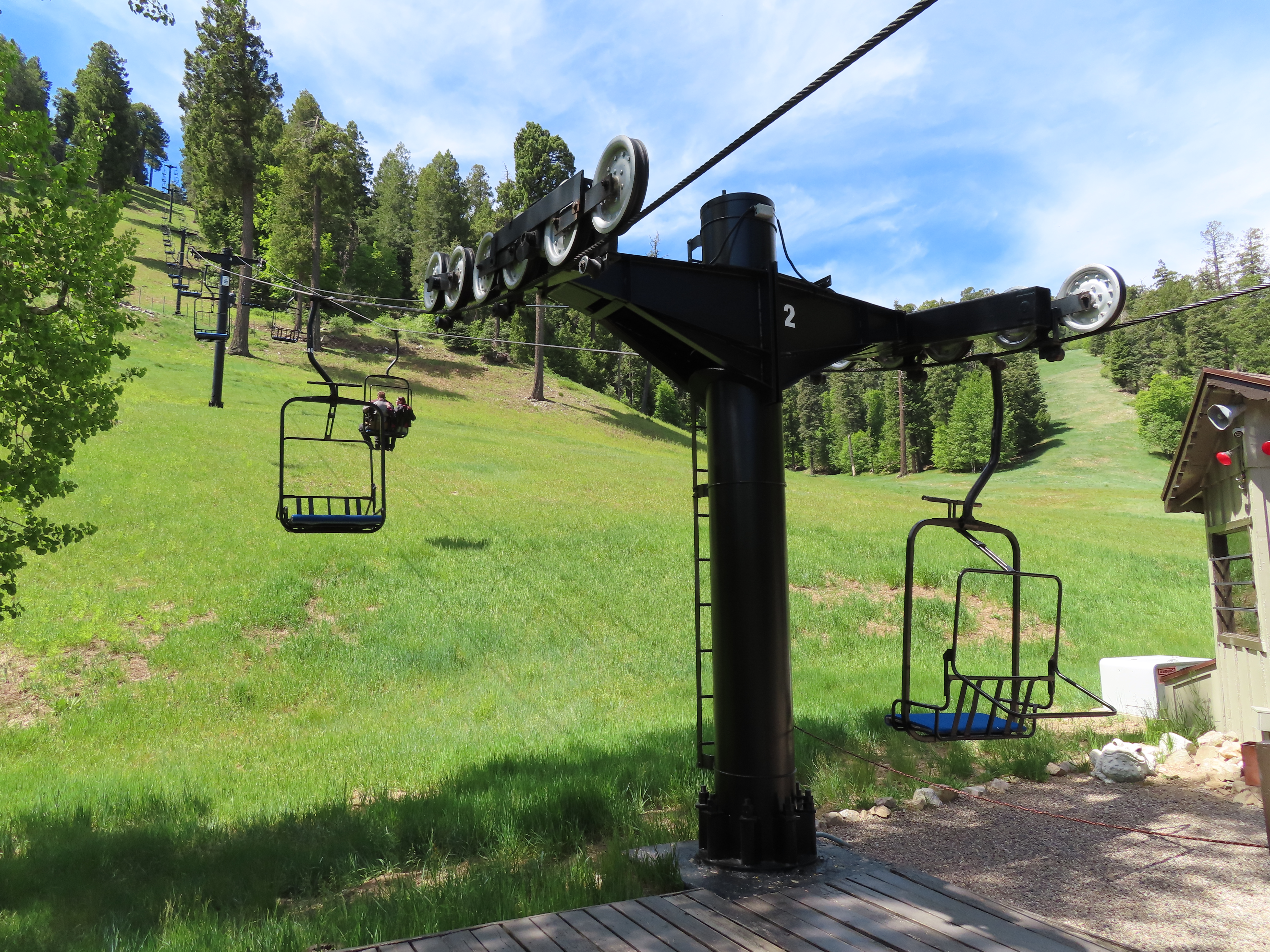 It is a nice chair for its age. The padding is in good shape and every chair has a footrest. Several years ago, the chair lift was damaged due to high winds knocking down the lift line. There are very large Ponderosa pine tree that are located too close to the haul line and they tower over over it. Although shade is used to preserve the limited snow pack, cutting back many of the giant trees might have saved a lost ski season.