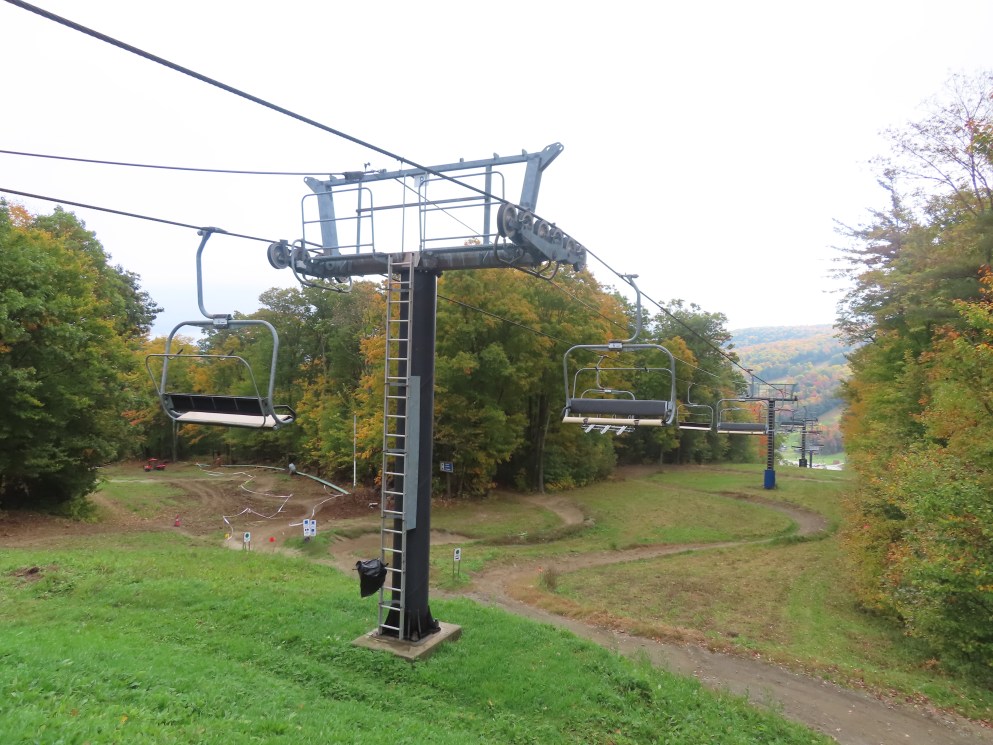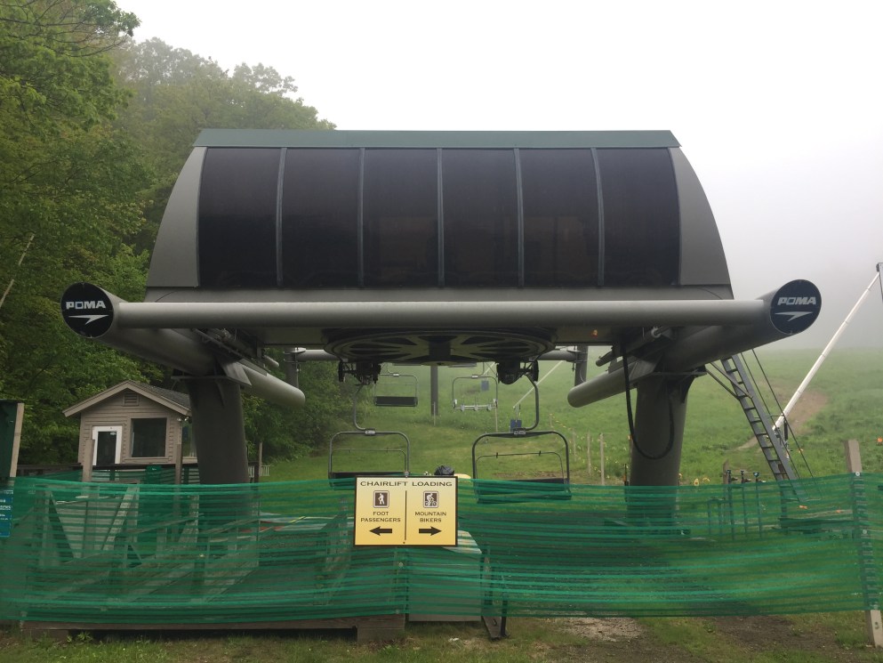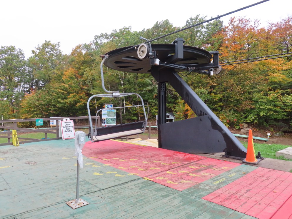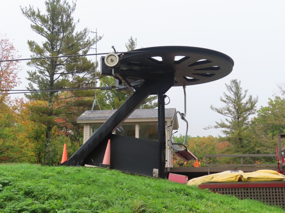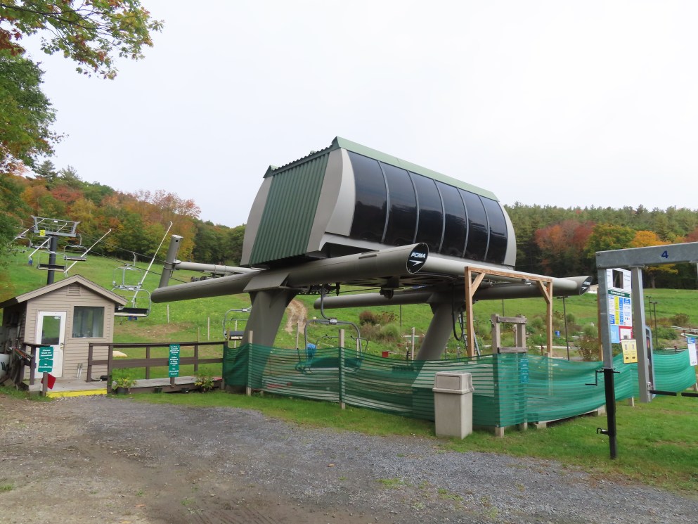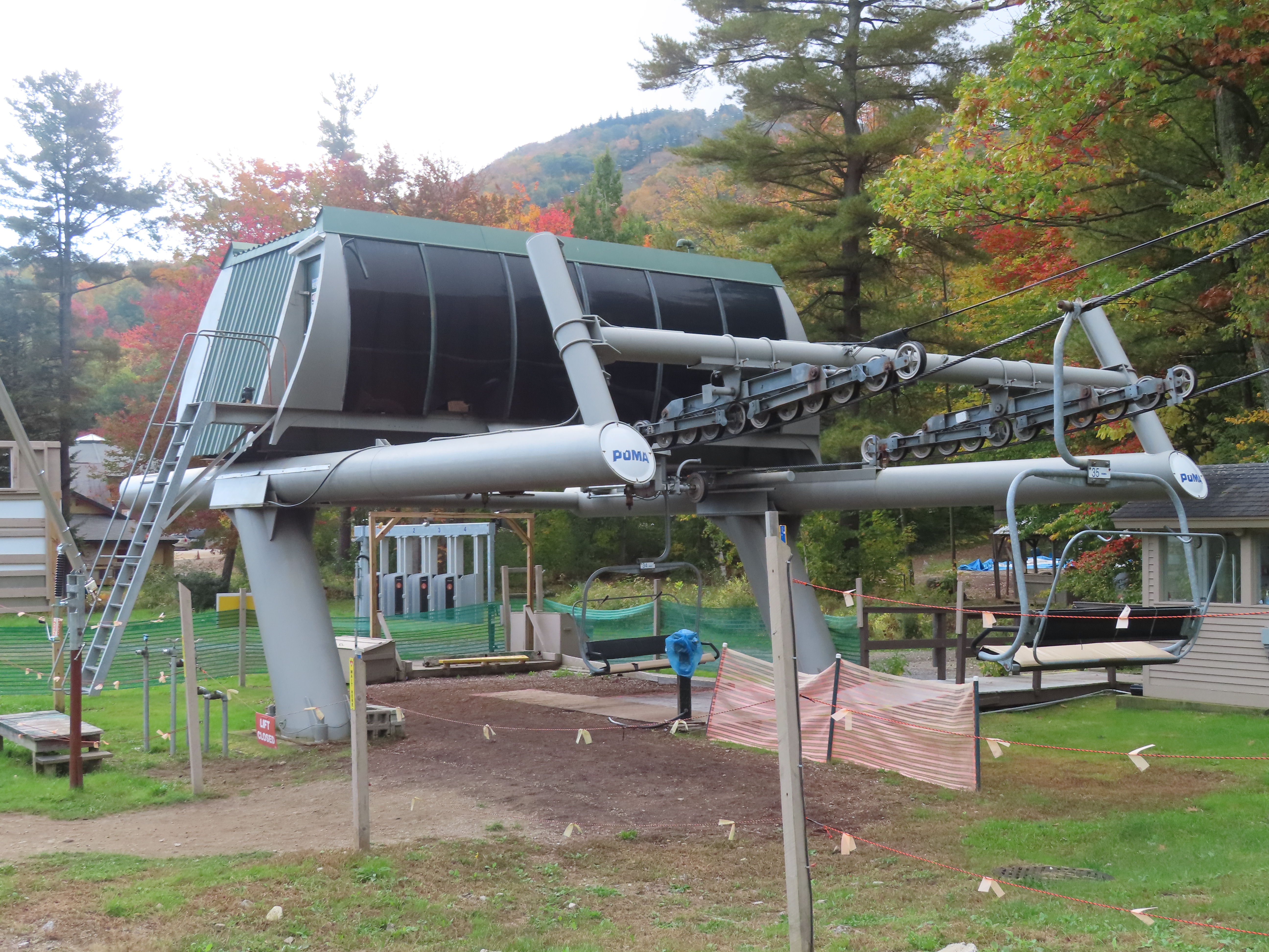 Poma Alpha drive.Lift overview.The bottom terminal set up for summer operations.View up the lift line at tower 3.Looking down line.The top terminal seen from below.Leitner-Poma return unit.View down from the summit.Another look at the top terminal during the summer.Uphilll side of the drive station.