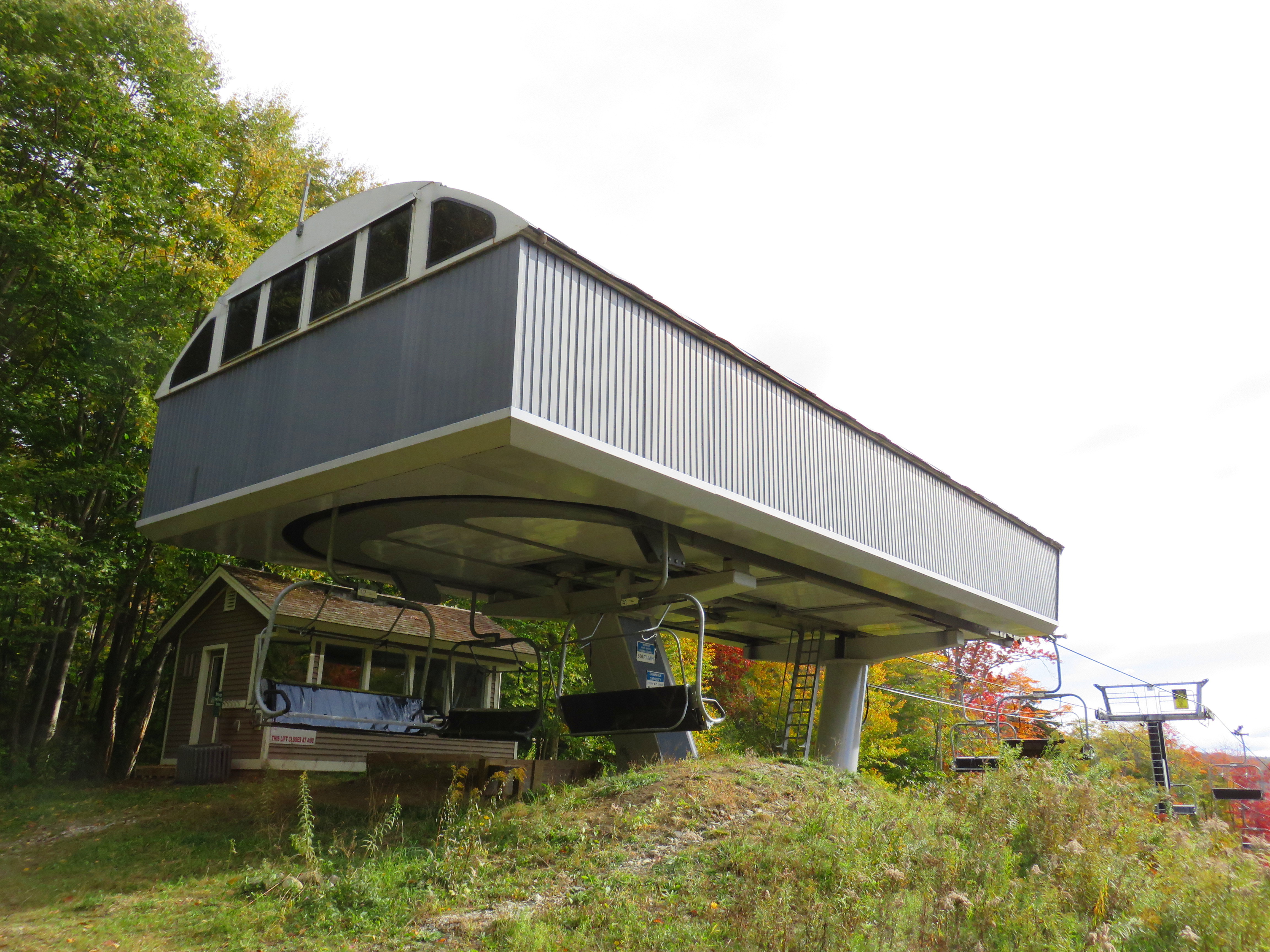 As a train enthusiast aka foamer as well as a lift enthusiast/ operator I was quite happy to be riding out of j gore on this one day when a train was passing underneath. This lift is the best beginner lift at okemo IMHO for the simple fact of it being a detach as opposed to the base quads. Fixed grip quads can be complicated.