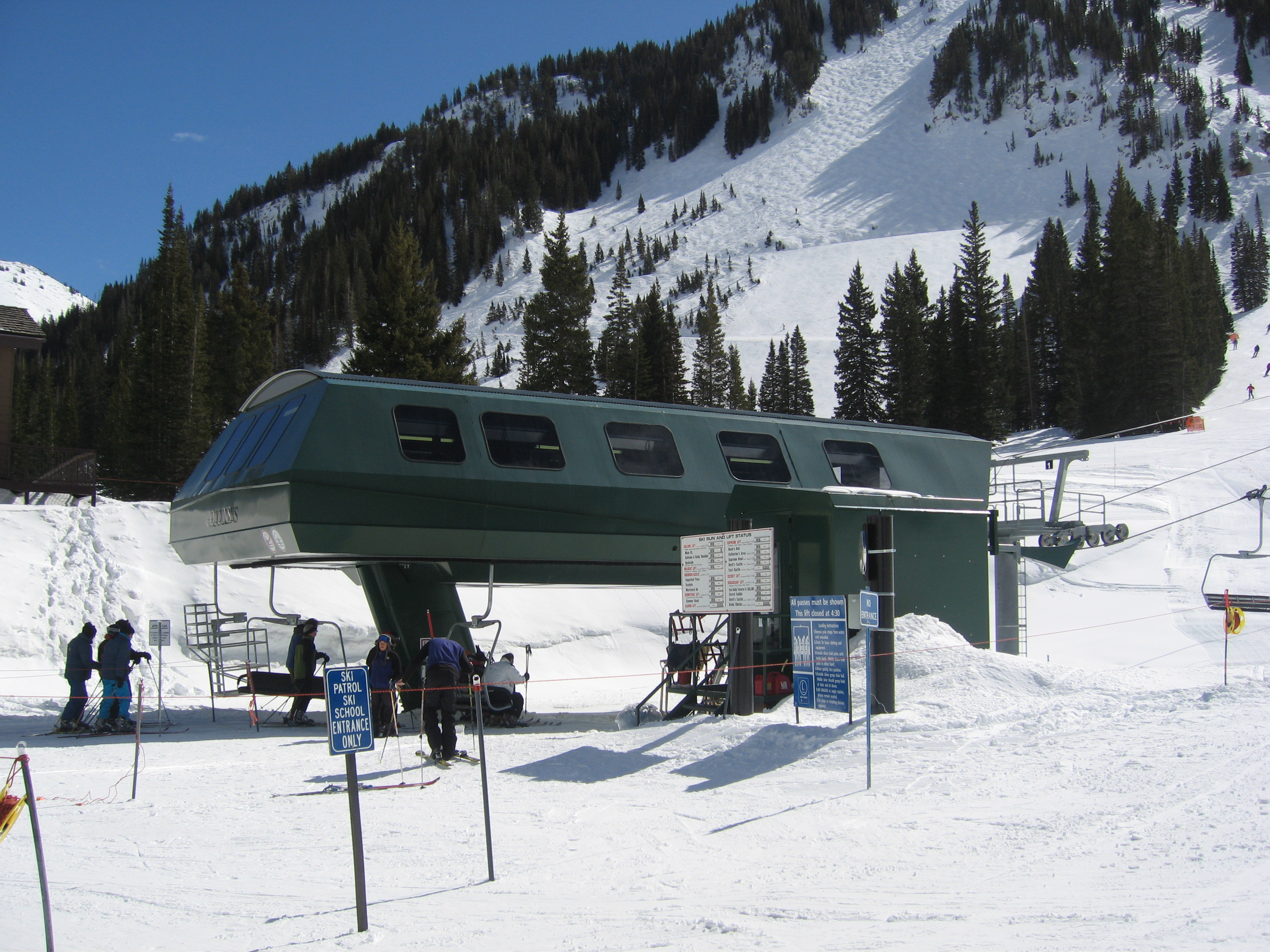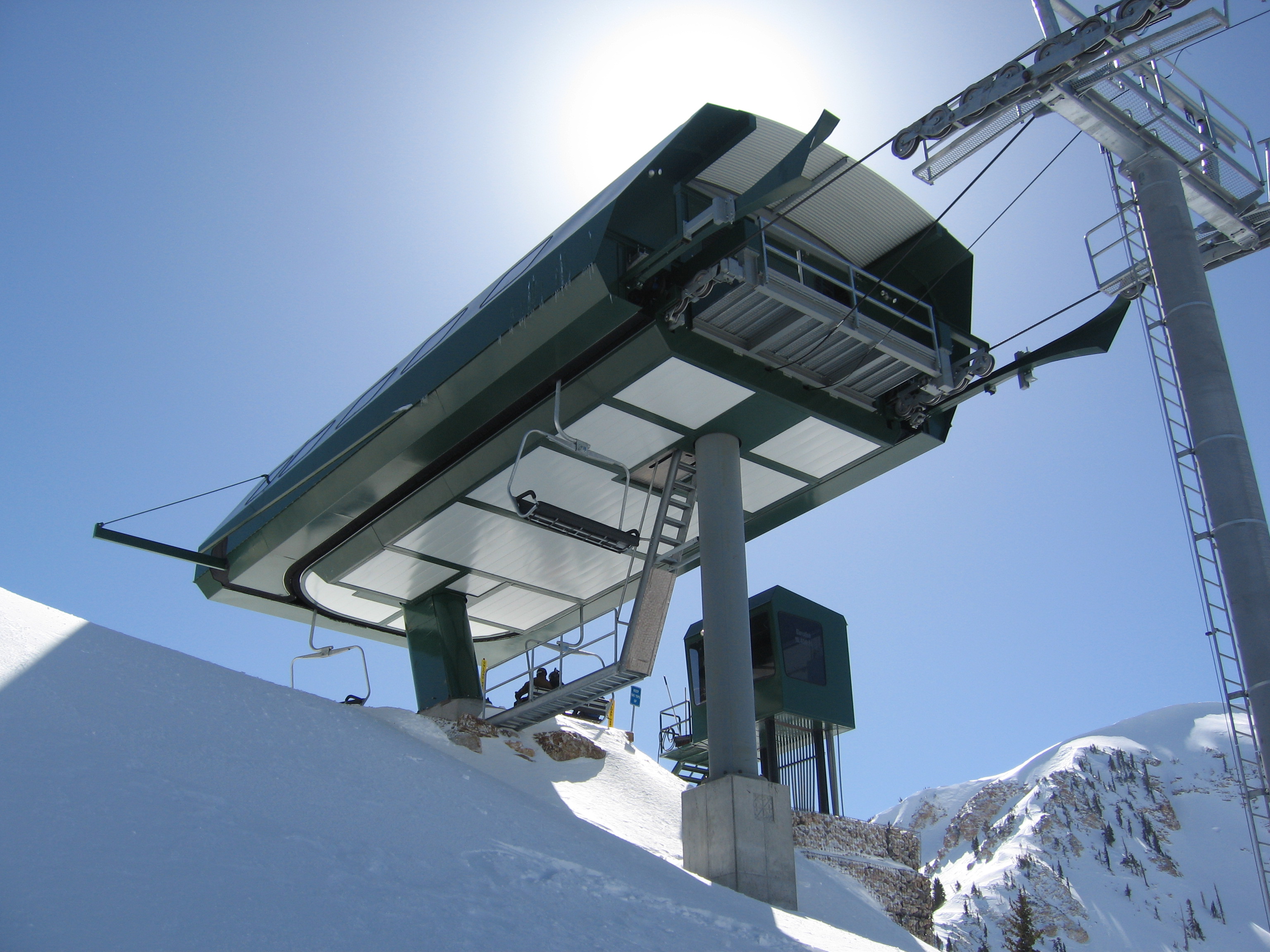 This (and all three of Alta’s CTEC detachables) now has the nice wooden terminal underskin like the last few years of Leitner-Poma lifts. Did L-P install these when they built Supreme a few years ago? Seems like a nice throw-in for L-P to win the contract to build their first new lift in Utah since the Canyons gondola in 1997. I’ve never seen this on other CTEC lifts (and they weren’t originally built that way) but it looks really sharp and a great way to freshen up two-decade-old Stealth terminals.