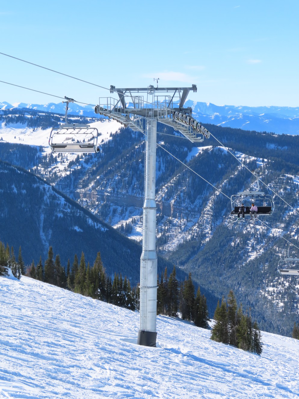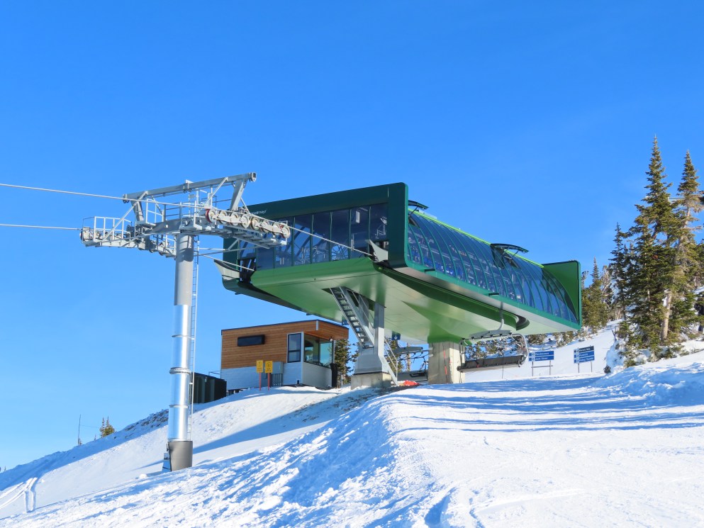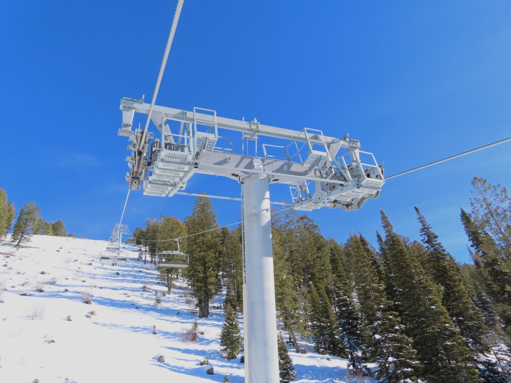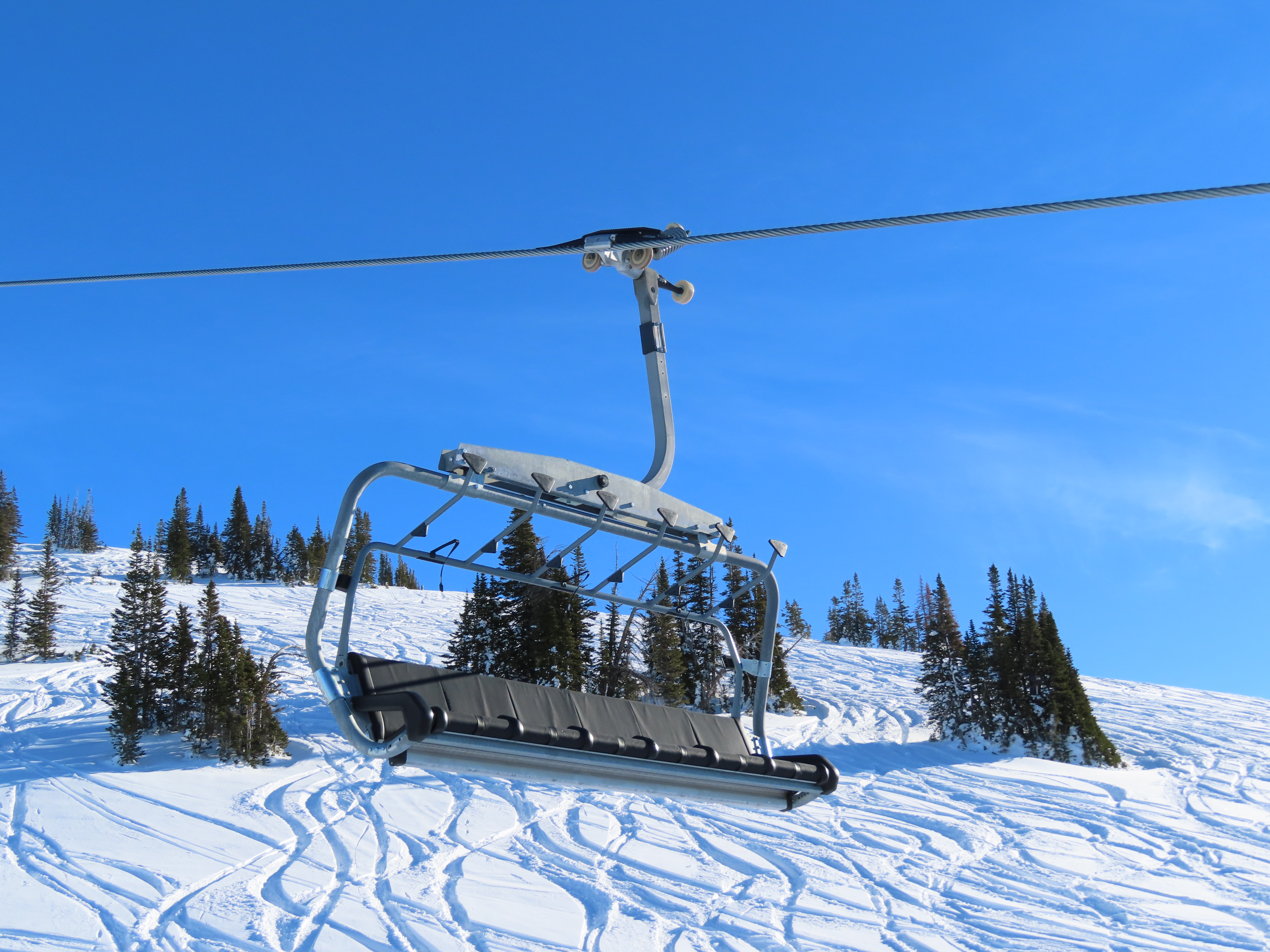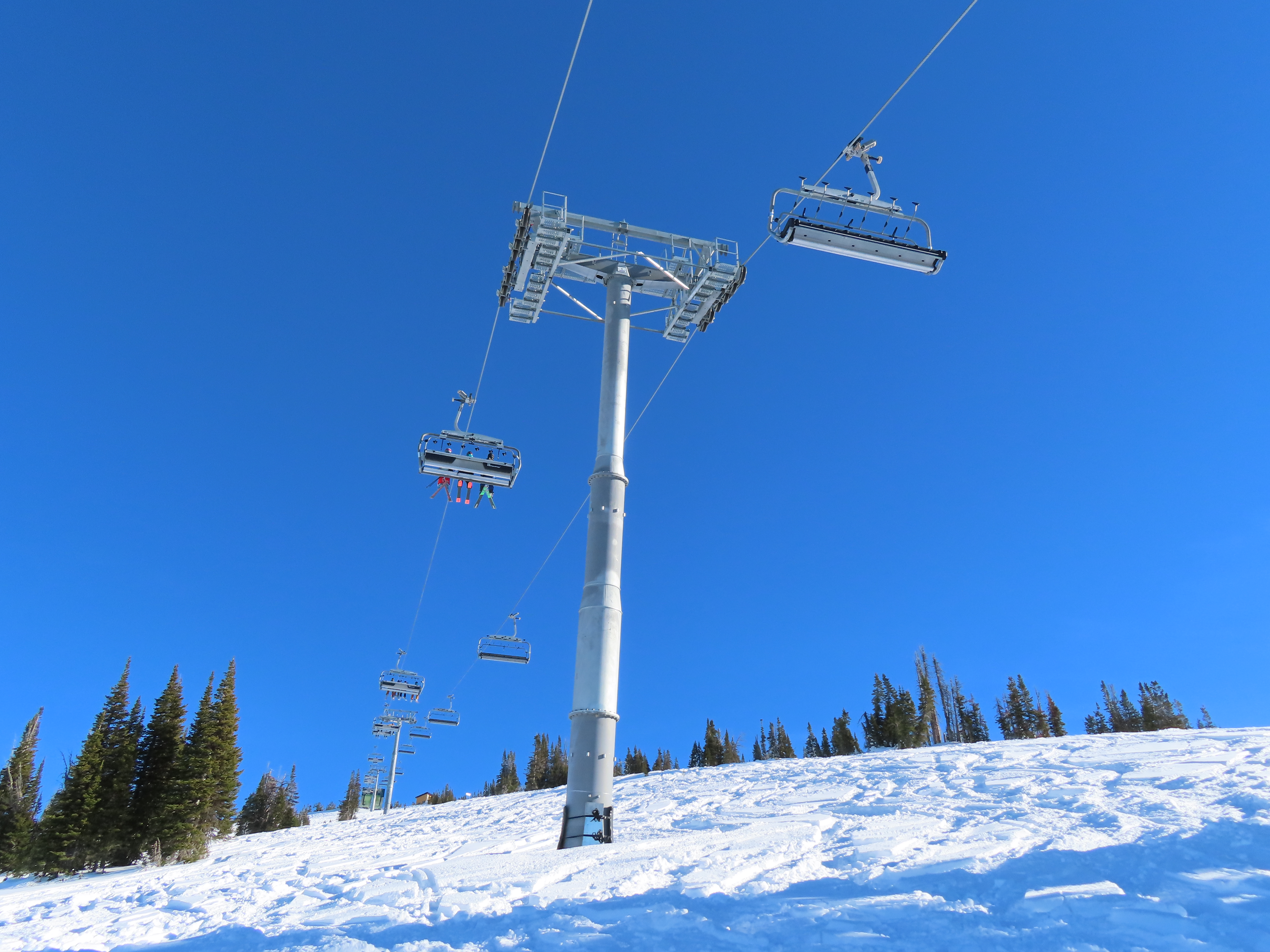 This lift is a Doppelmayr D-Line six place with standard chairs.