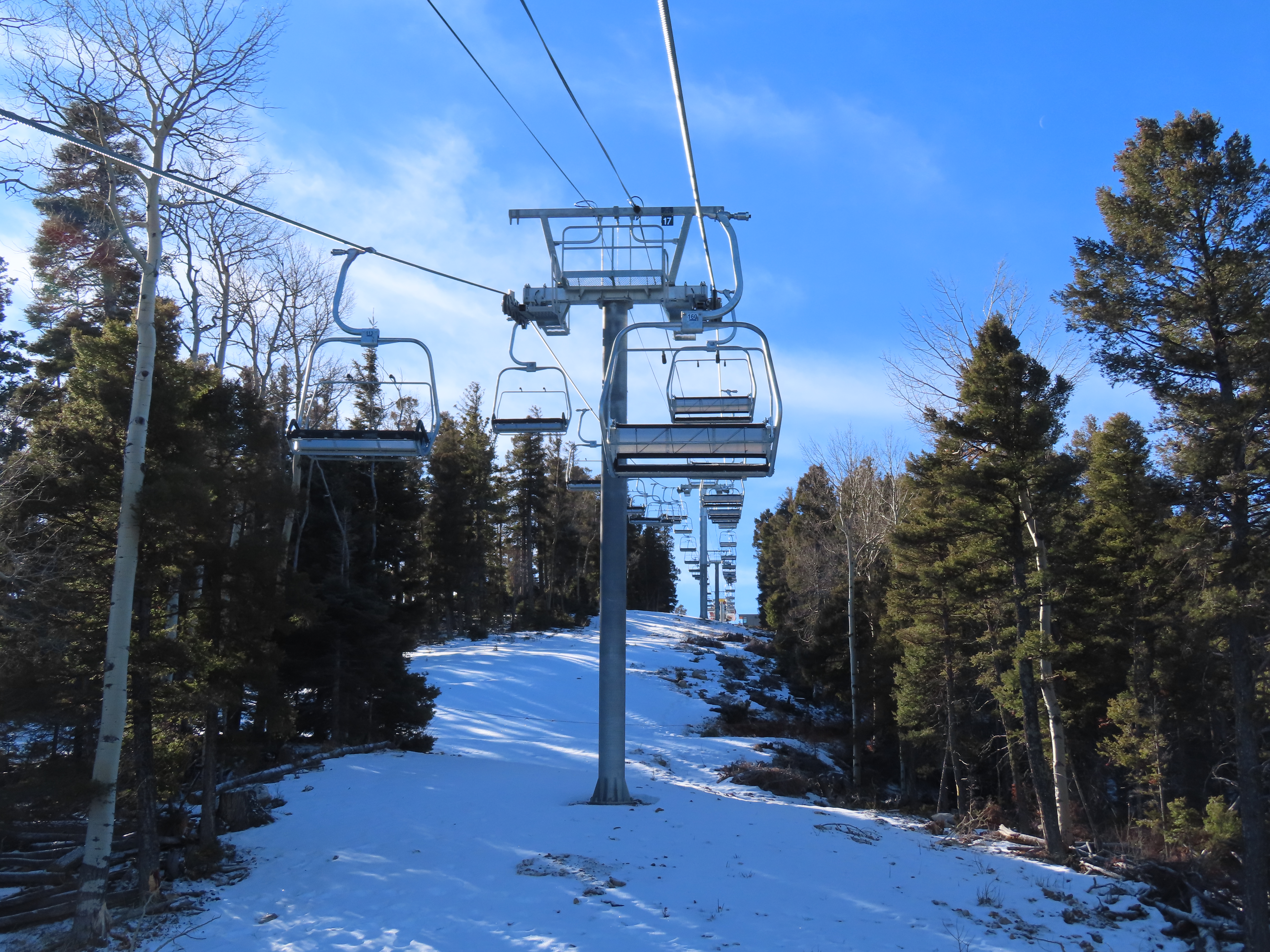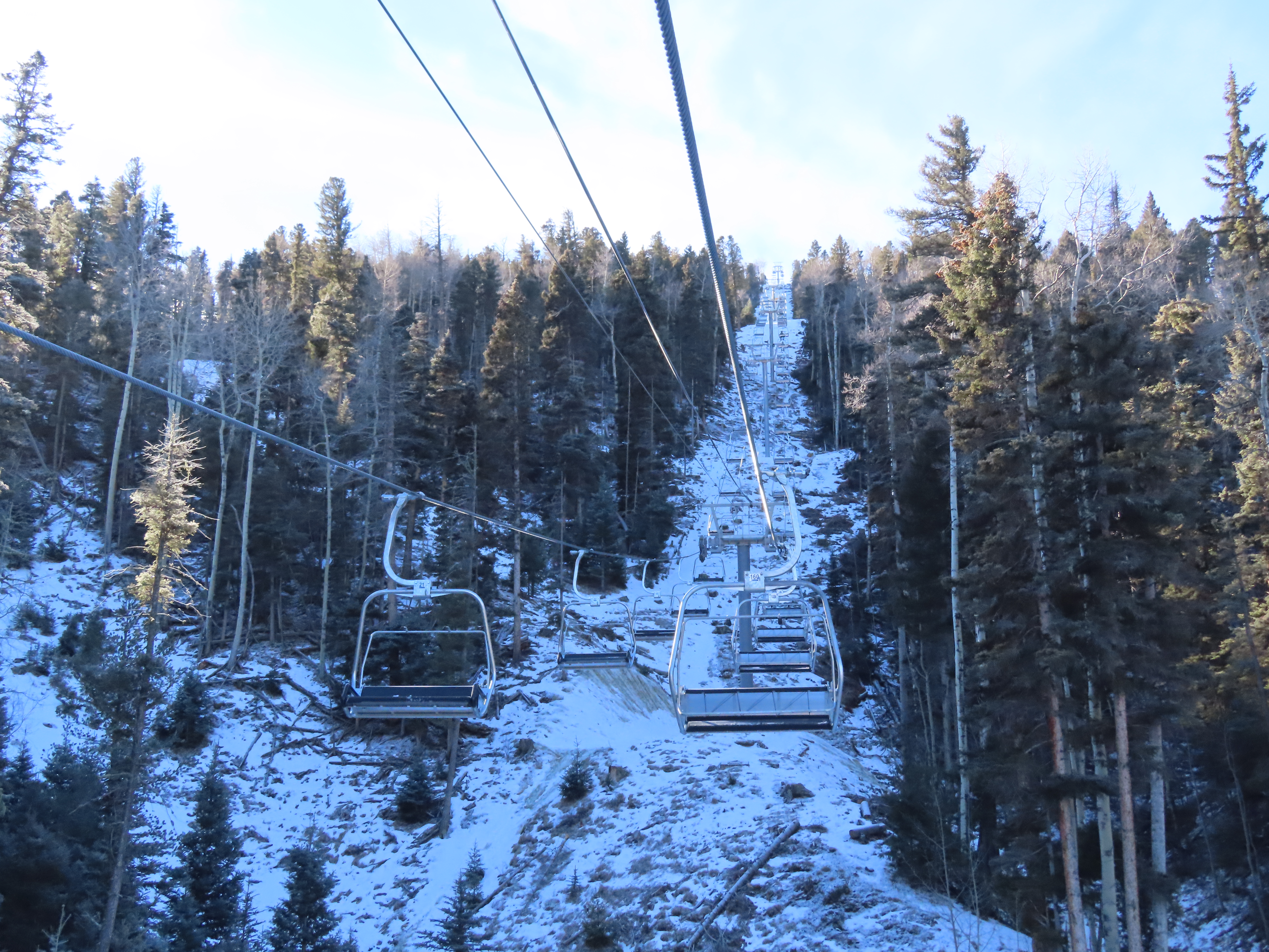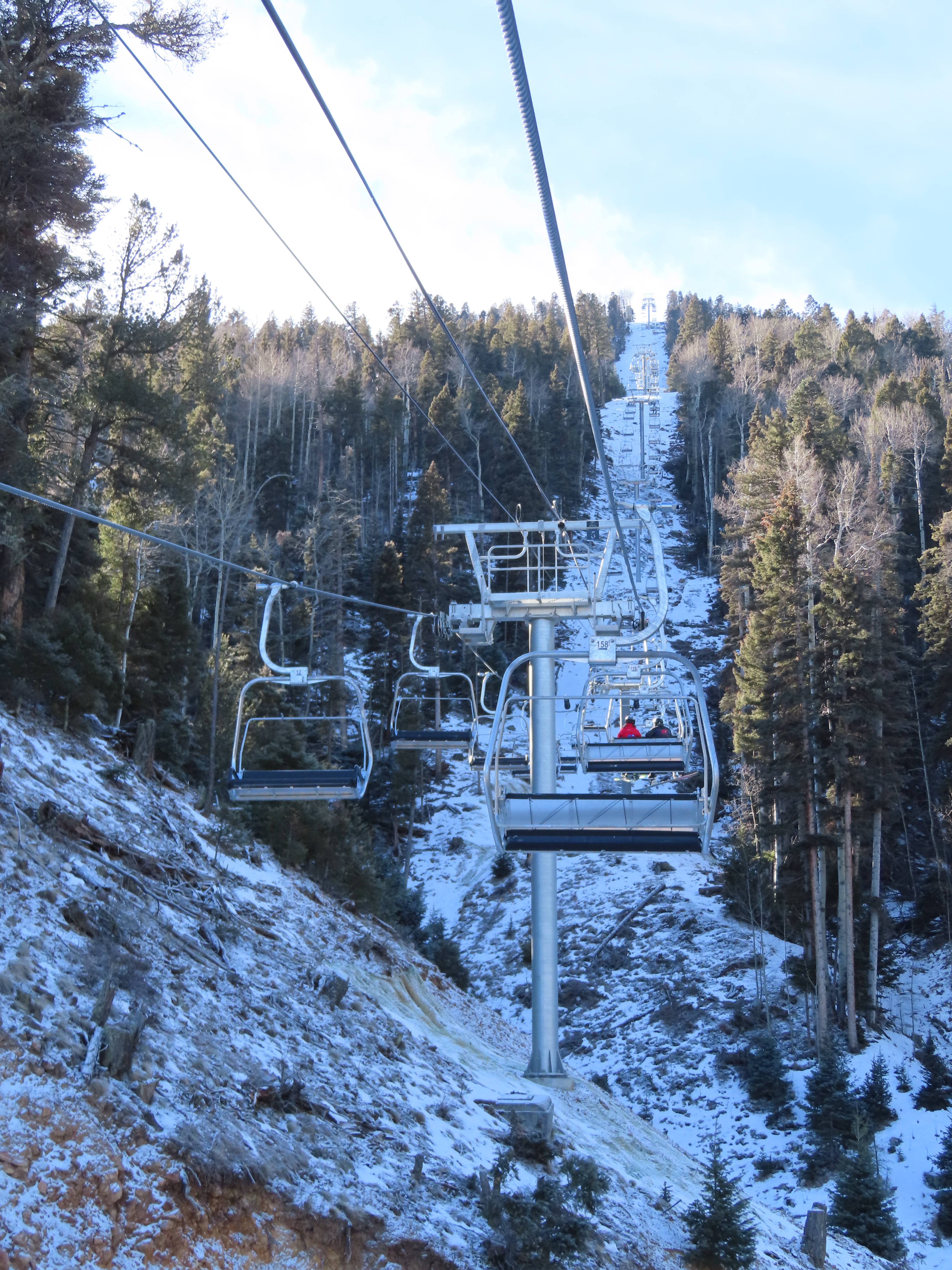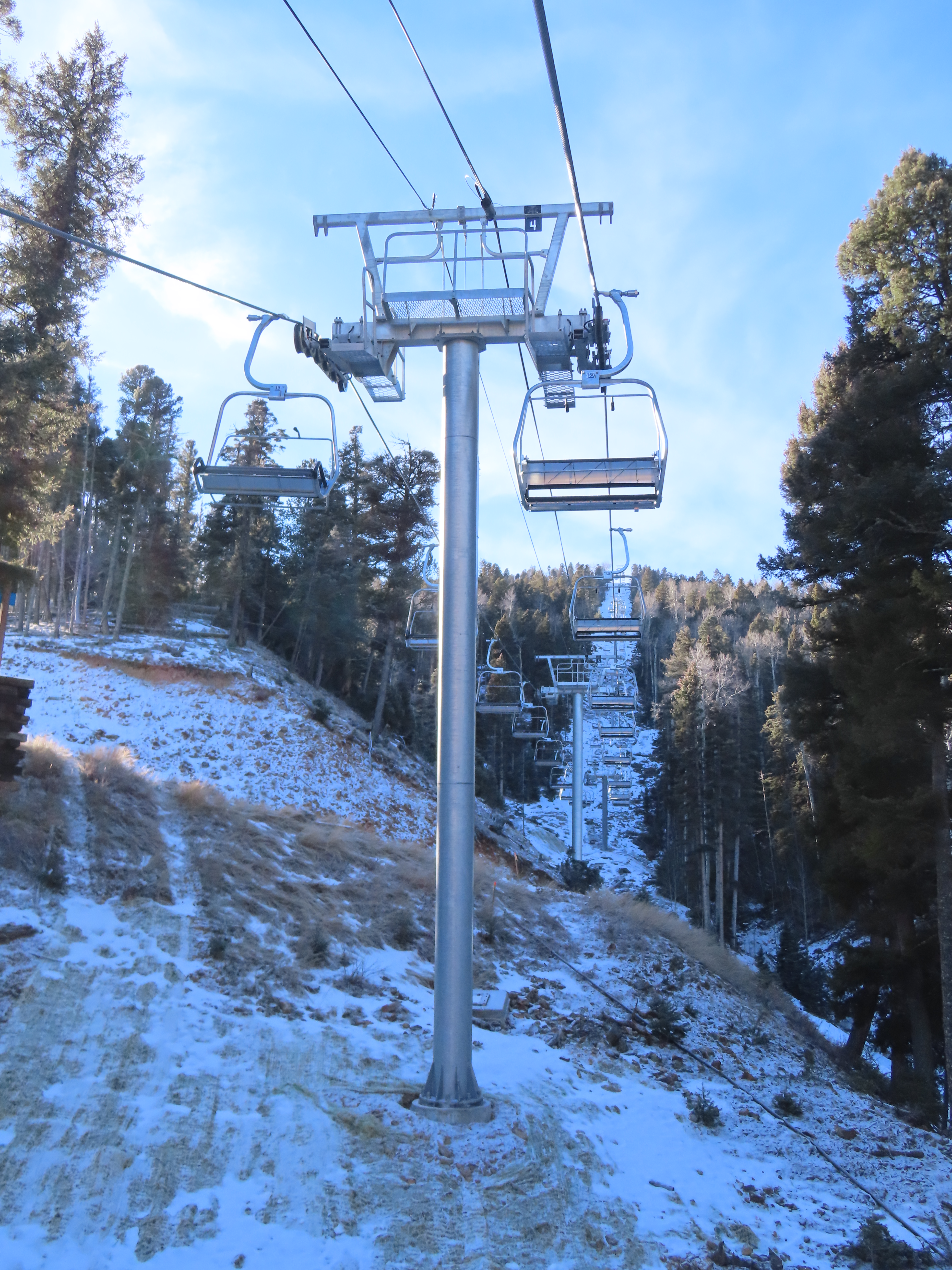 That touchscreen says the lift is running at 2 m/s, which is below the overview table’s suggested line speed of 500 ft per minute (need 2.5 m.s for that) for a ride time of of 11.6 minutes. That’s still not bad for almost 1,500 feet of skiing back down!