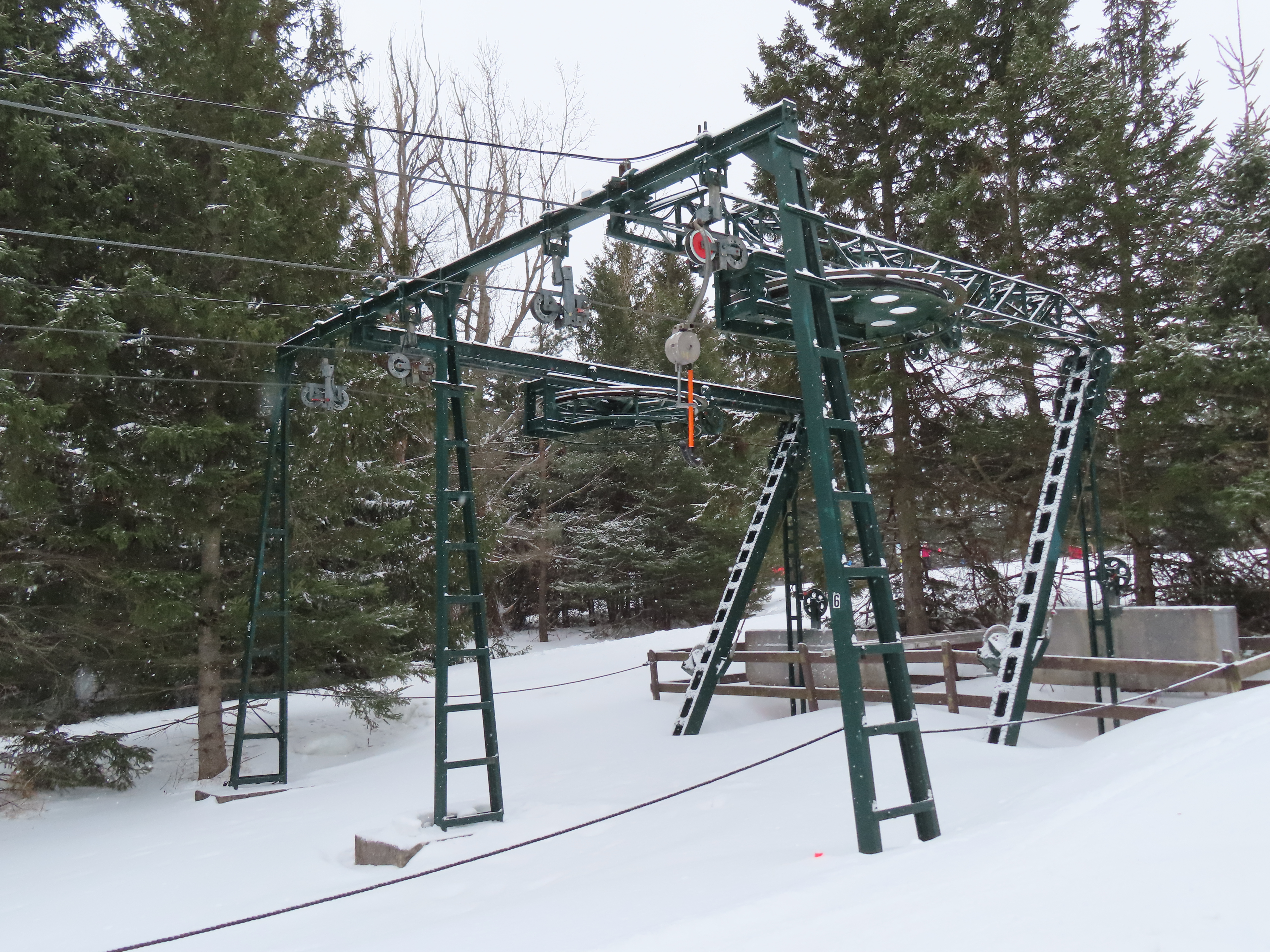 Devil’s Staircase – Mansfield Ski Club, ON This T-Bar is one year newer than its sister. Bottom drive station. Doppelmayr T. Top station with structure shared between two lifts. Top tension station. Tower 5. Counterweight. View riding up at tower 4. View back down the line. Share this: Email a link to a friend (Opens in new window) Email Share on X (Opens in new window) X Share on Facebook (Opens in new window) Facebook Like Loading...