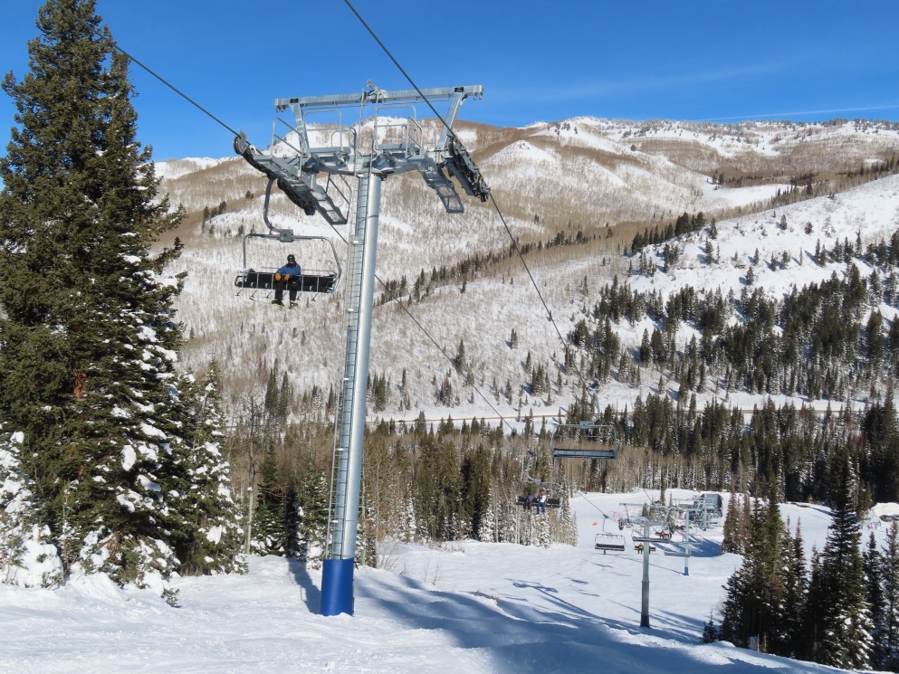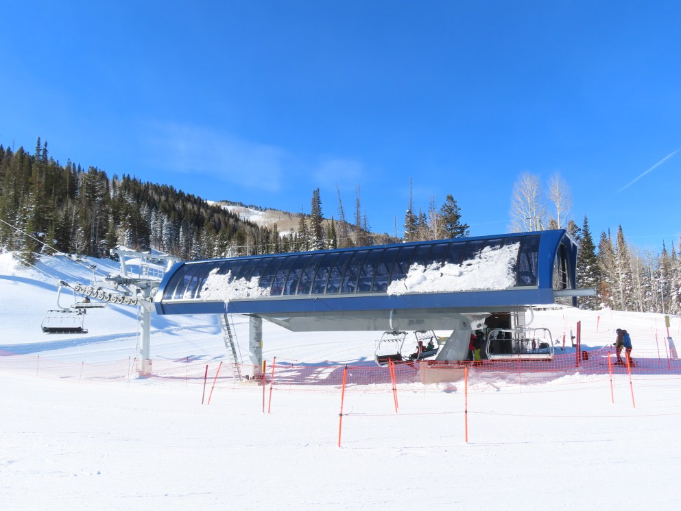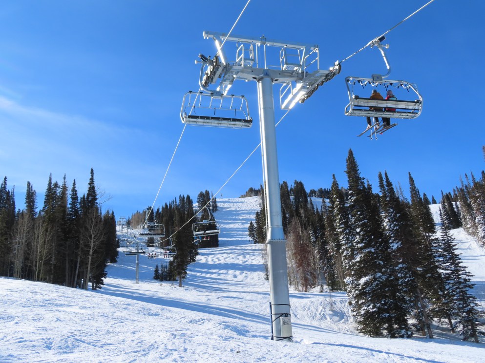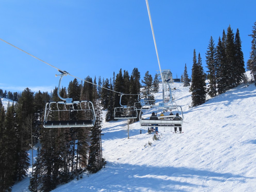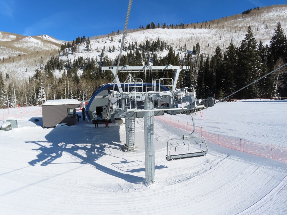 Other than a darker shade of blue, Solitude’s UNI-Gs have the exact same color scheme as Vail’s Doppelmayr six packs.