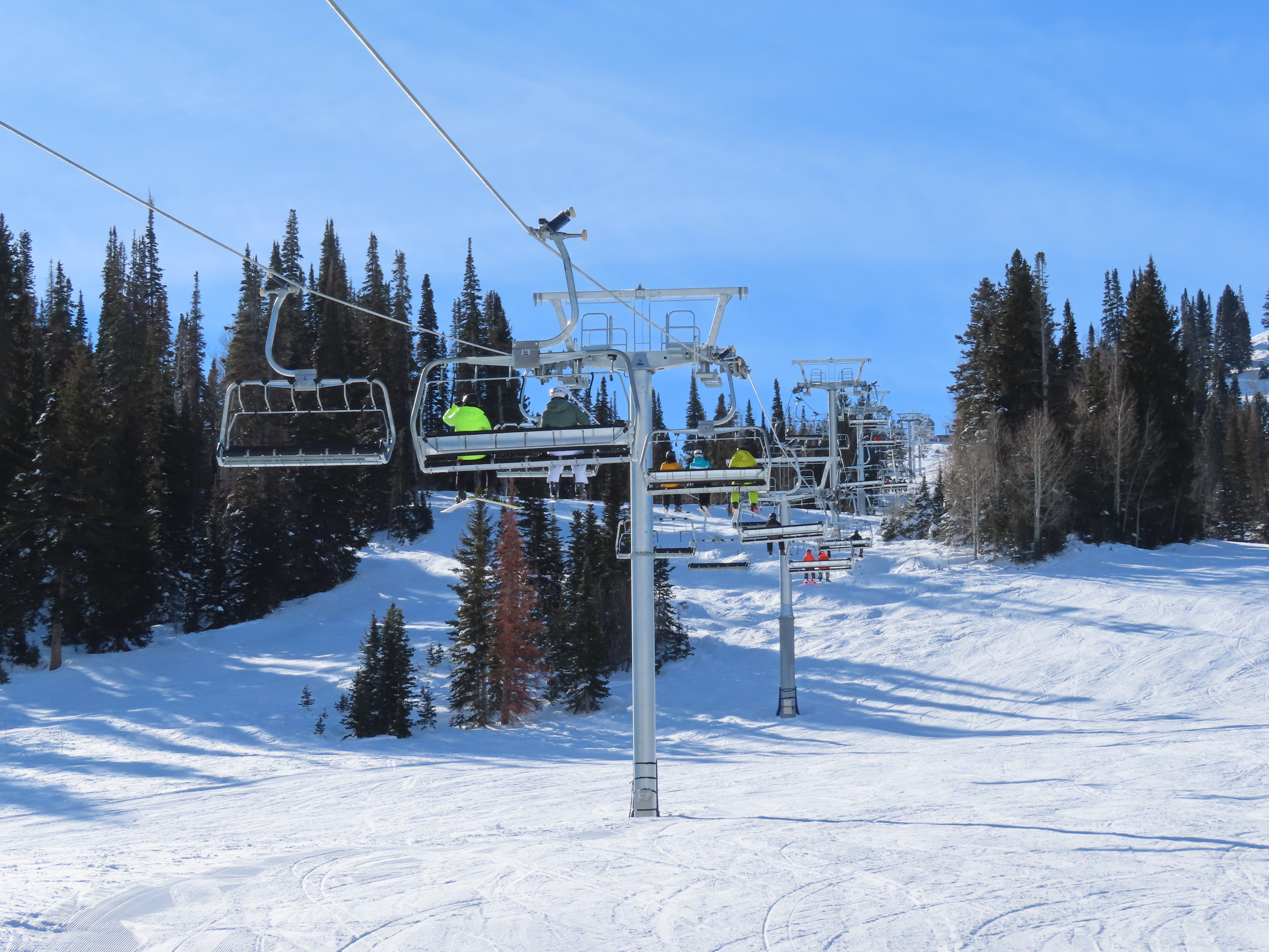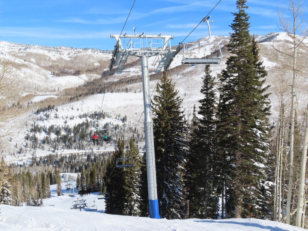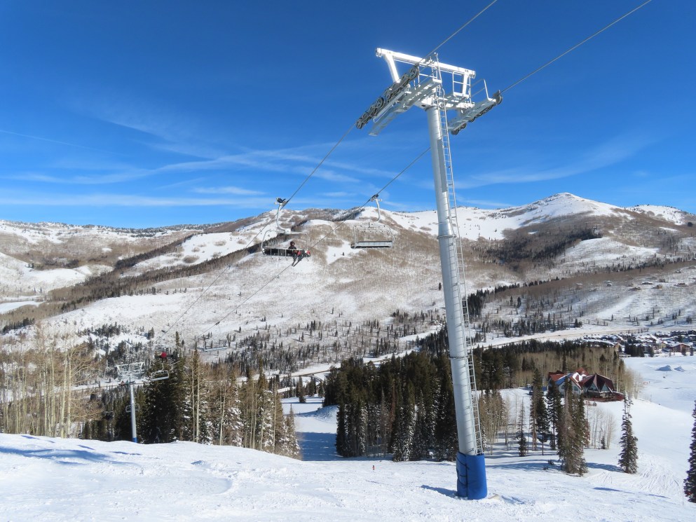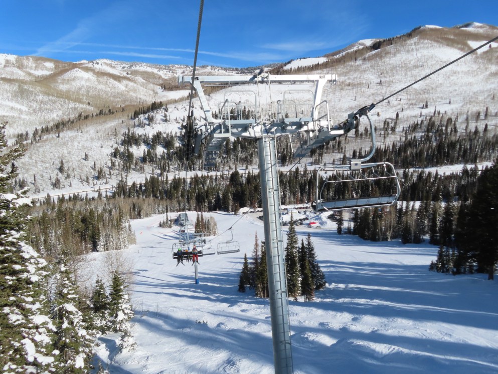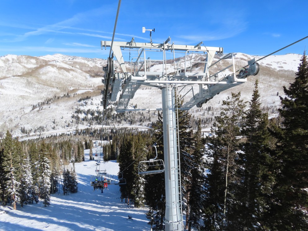 Other than a darker shade of blue, Solitude’s UNI-Gs have the exact same color scheme as Vail’s Doppelmayr six packs.