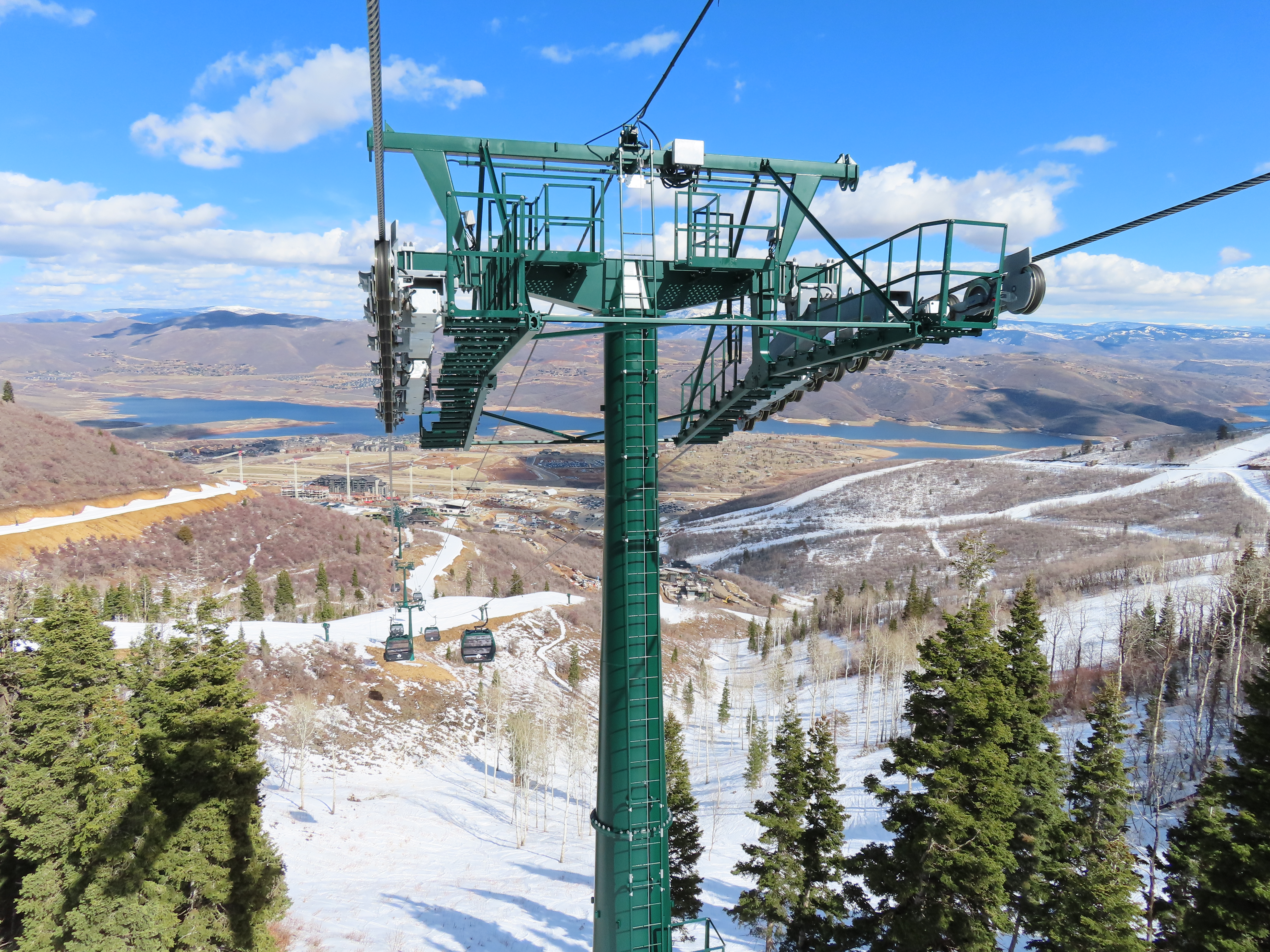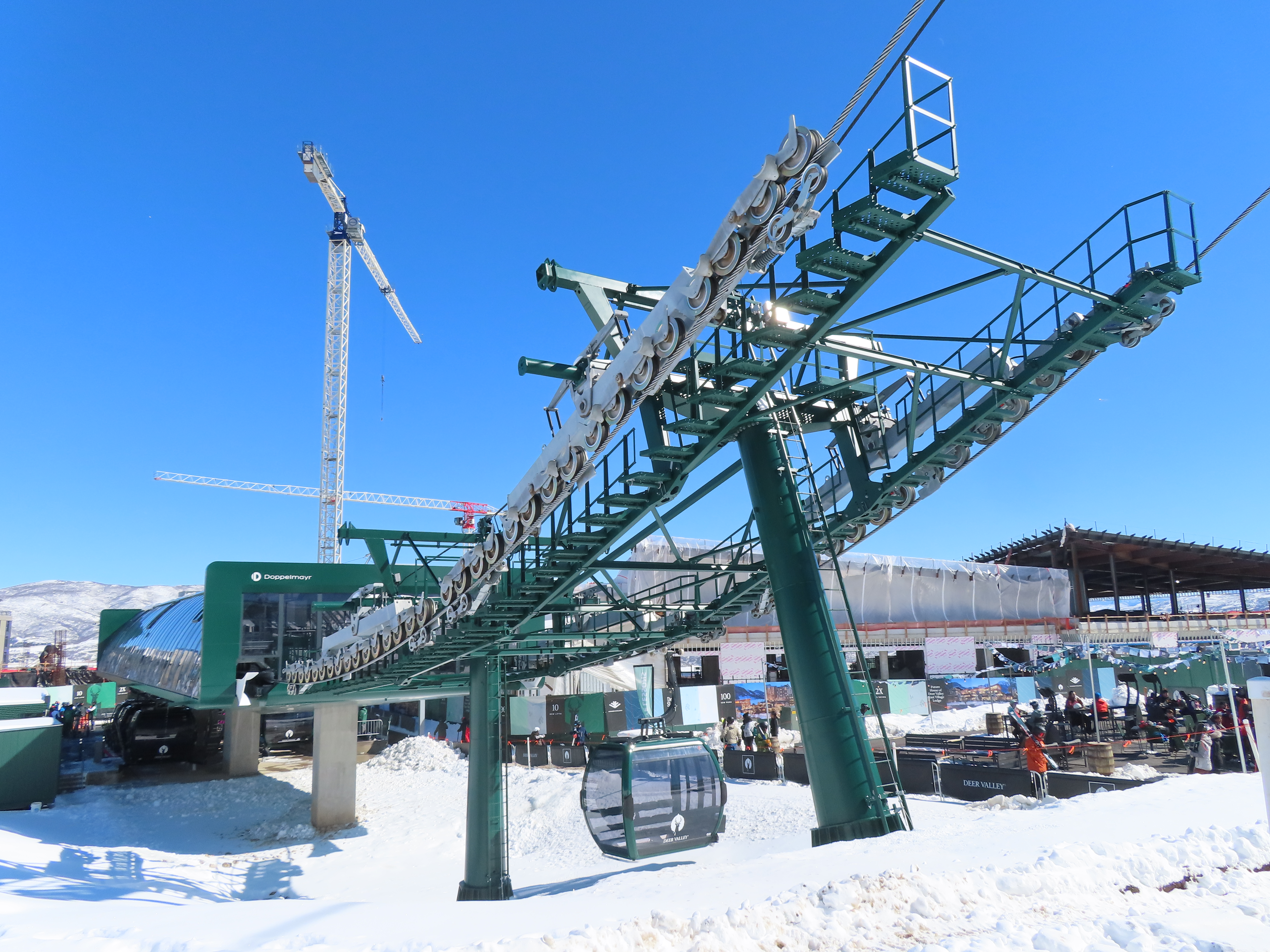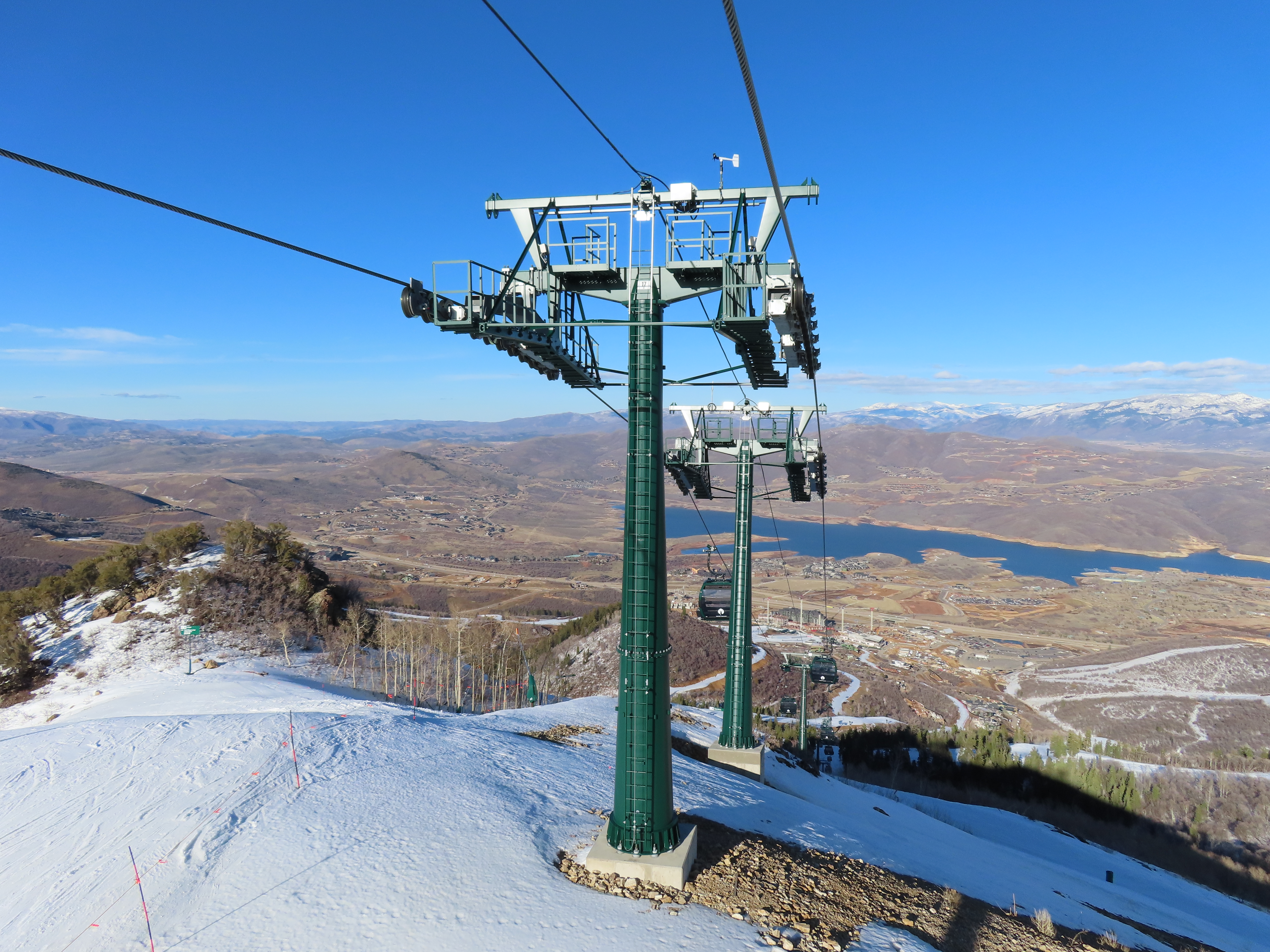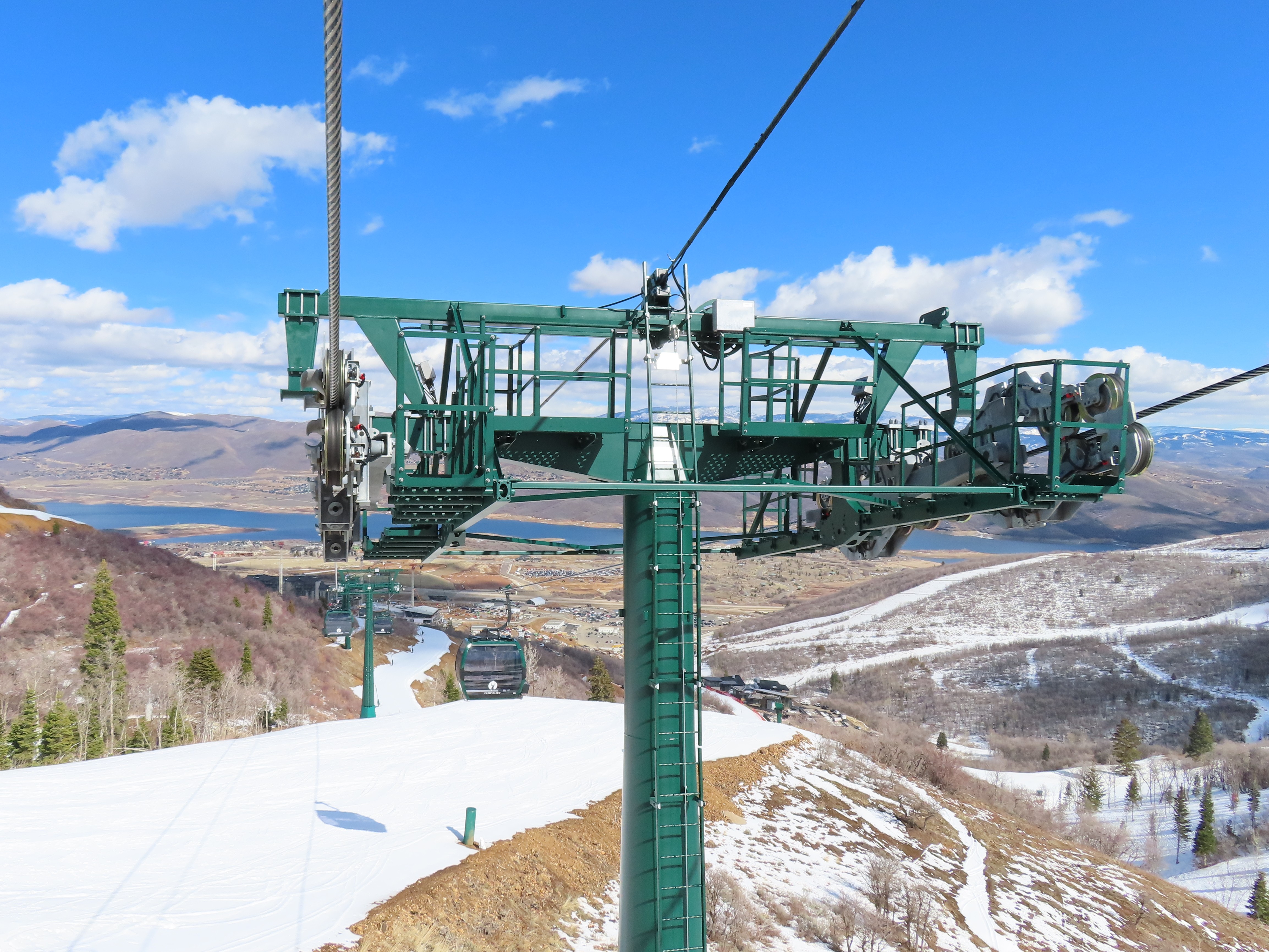 This gondola runs from the new East Village to Big Dutch.Lower station area with steep climb out from the future village.This section is slightly shorter than the second section, which continues from Big Dutch to Park Peak.Side view of the D-Line return station.Very tall towers along the line.Support tower with Hail Peak in the background.Lower lift line amid residential real estate.Tower 5.D-Line station with tensioning.Lift line overview.Load station in the base area.Hold down towers 1 and 2.Lift overview.During normal operation, cabins continue onto a second section at Big Dutch.Angle station.Tension system in the lower terminal.Line gauge bullwheel.Doppelmayr Connect controls.Drive room.Turnaround used only when the two sections are split.View inside the mid-station.Diesel evac drive and three ring direct drive.Doors do not normally open on the downhill side at the mid.Omega V cabin.Side view of the station on Big Dutch.Lower station overview.Side view of the lower station.D-Line station with multimedia screen.View down from the summit of section 1.Tower 14.T13.Steep upper section of the line.Optional unload at Big Dutch.View from the summit.Middle part of the line.One of several towers with large combo assemblies.Lower lift line above Jordanelle Reservoir.Middle section of the line.Tower 7.View riding up.European style tower head.Large support tower.Breakover tower on Big Dutch.Side view of the mid-station.Towers 16 and 17.