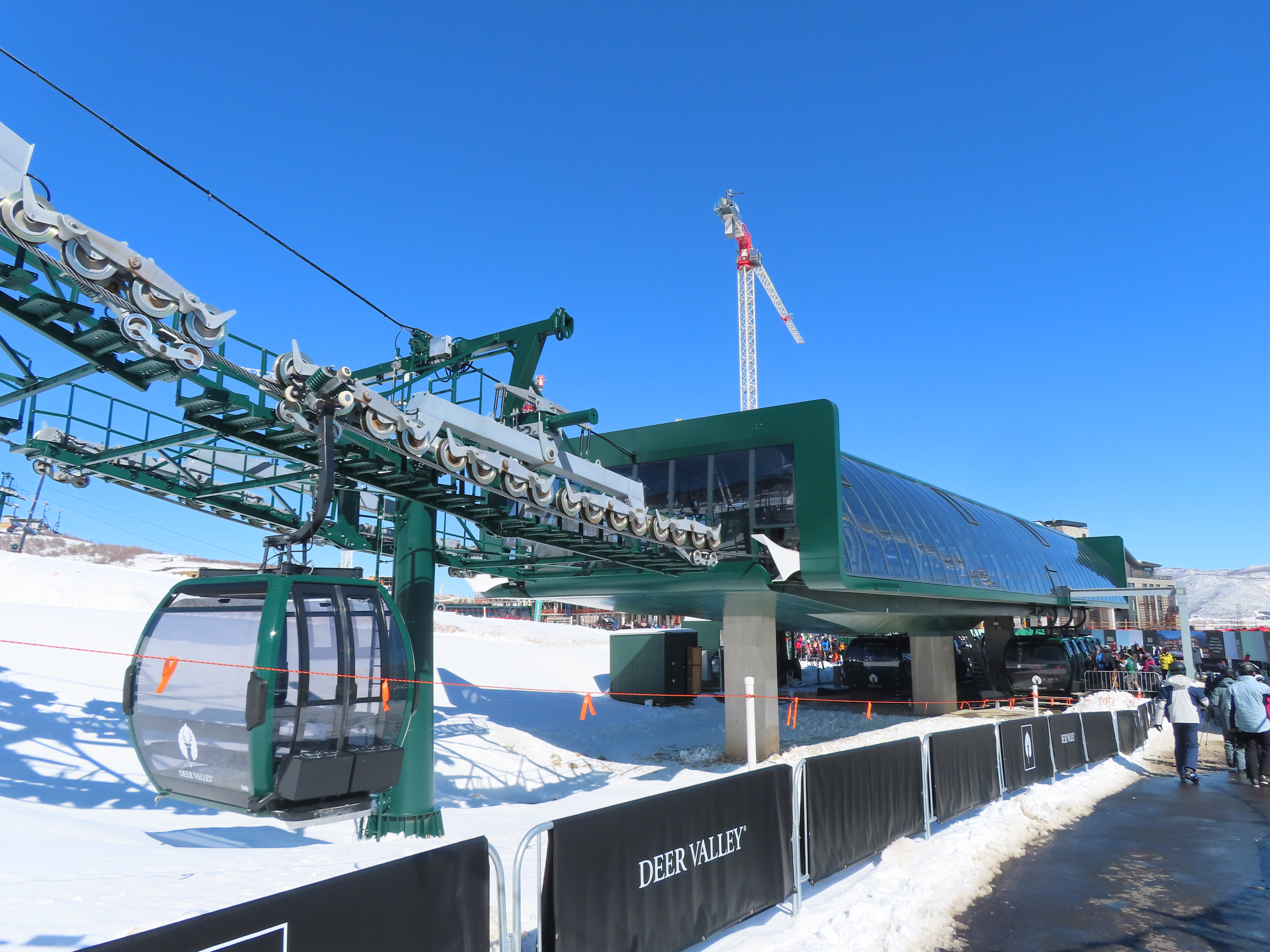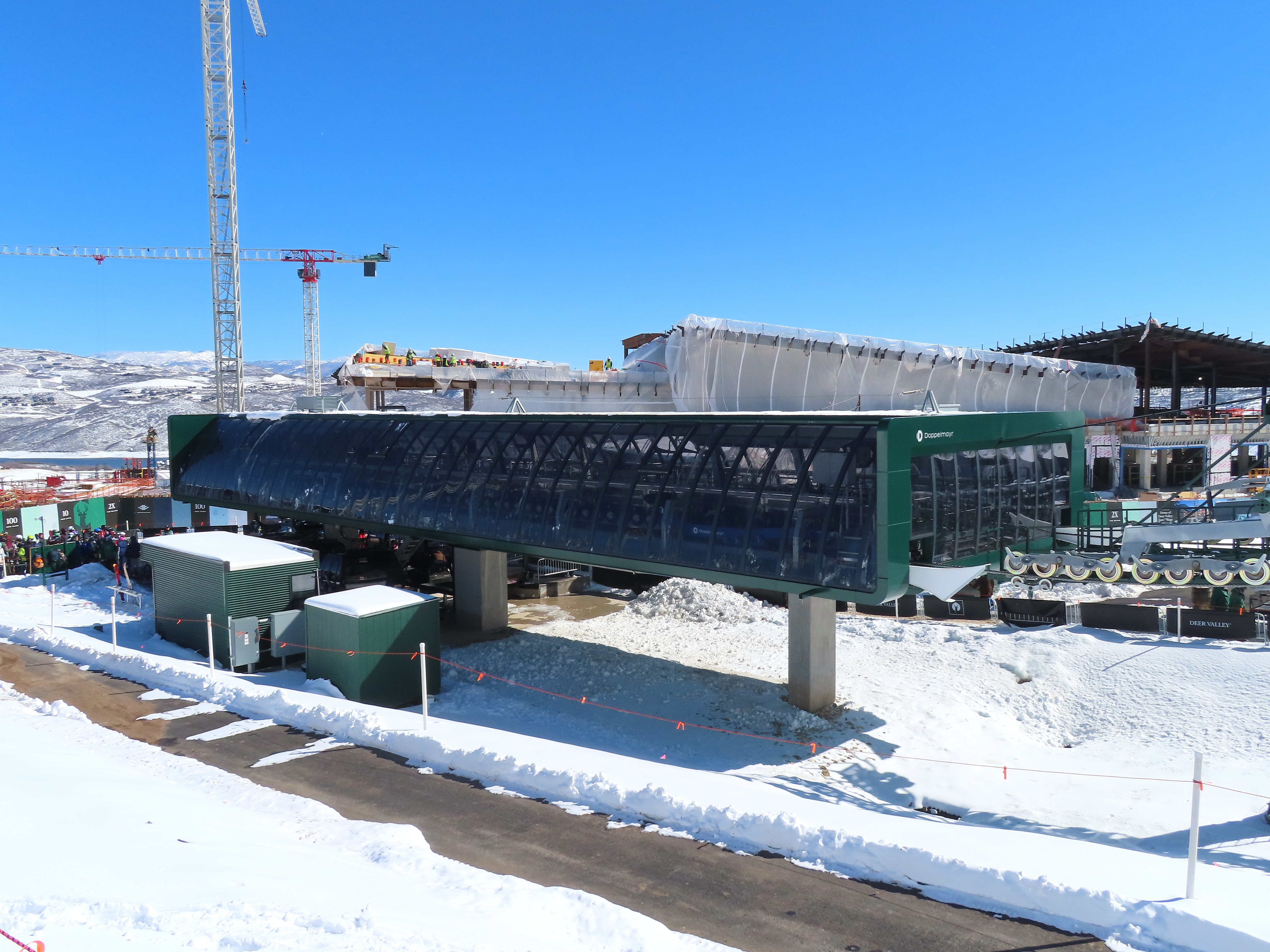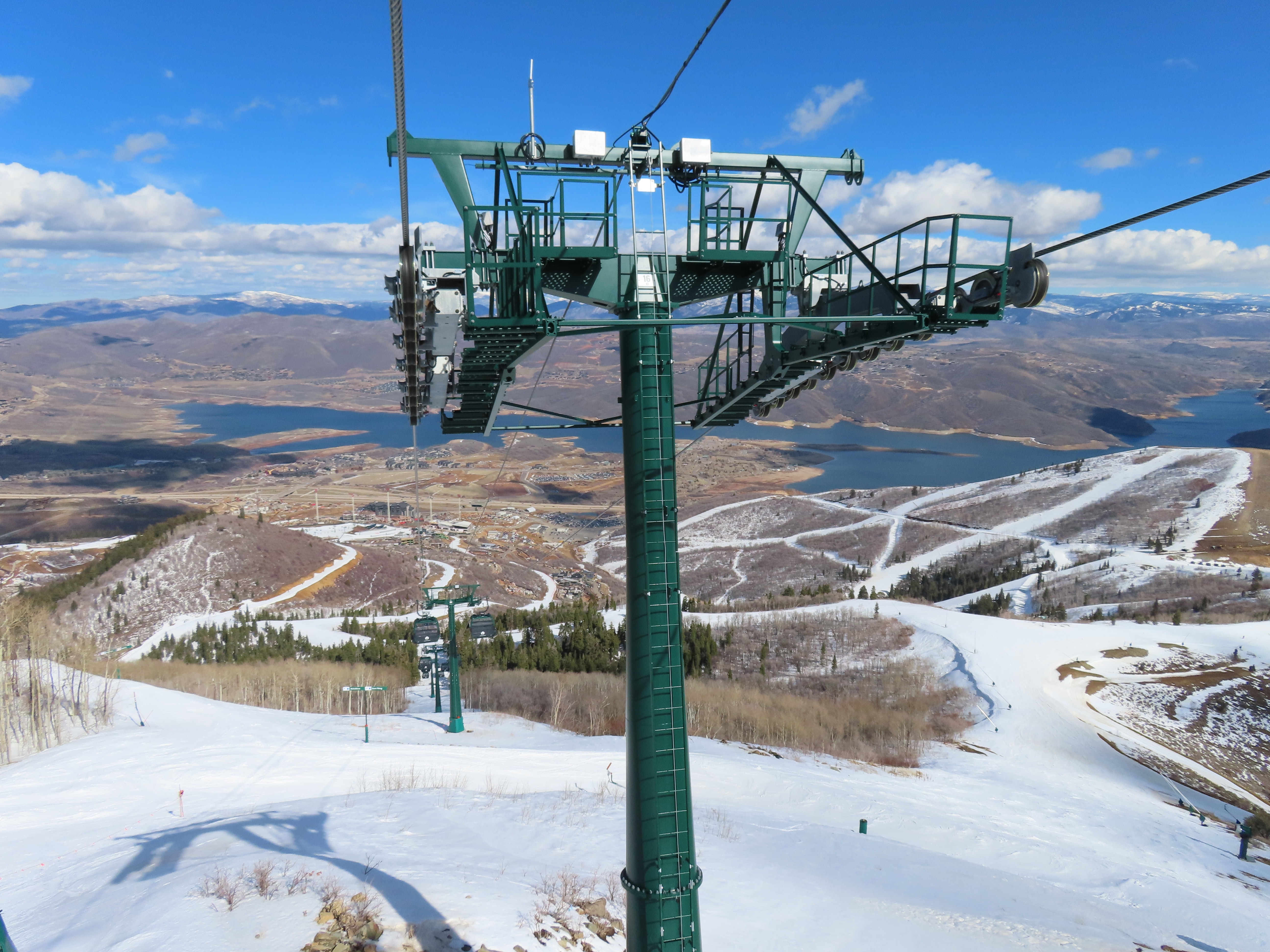 This gondola runs from the new East Village to Big Dutch.Lower station area with steep climb out from the future village.This section is slightly shorter than the second section, which continues from Big Dutch to Park Peak.Side view of the D-Line return station.Very tall towers along the line.Support tower with Hail Peak in the background.Lower lift line amid residential real estate.Tower 5.D-Line station with tensioning.Lift line overview.Load station in the base area.Hold down towers 1 and 2.Lift overview.During normal operation, cabins continue onto a second section at Big Dutch.Angle station.Tension system in the lower terminal.Line gauge bullwheel.Doppelmayr Connect controls.Drive room.Turnaround used only when the two sections are split.View inside the mid-station.Diesel evac drive and three ring direct drive.Doors do not normally open on the downhill side at the mid.Omega V cabin.Side view of the station on Big Dutch.Lower station overview.Side view of the lower station.D-Line station with multimedia screen.View down from the summit of section 1.Tower 14.T13.Steep upper section of the line.Optional unload at Big Dutch.View from the summit.Middle part of the line.One of several towers with large combo assemblies.Lower lift line above Jordanelle Reservoir.Middle section of the line.Tower 7.View riding up.European style tower head.Large support tower.Breakover tower on Big Dutch.Side view of the mid-station.Towers 16 and 17.