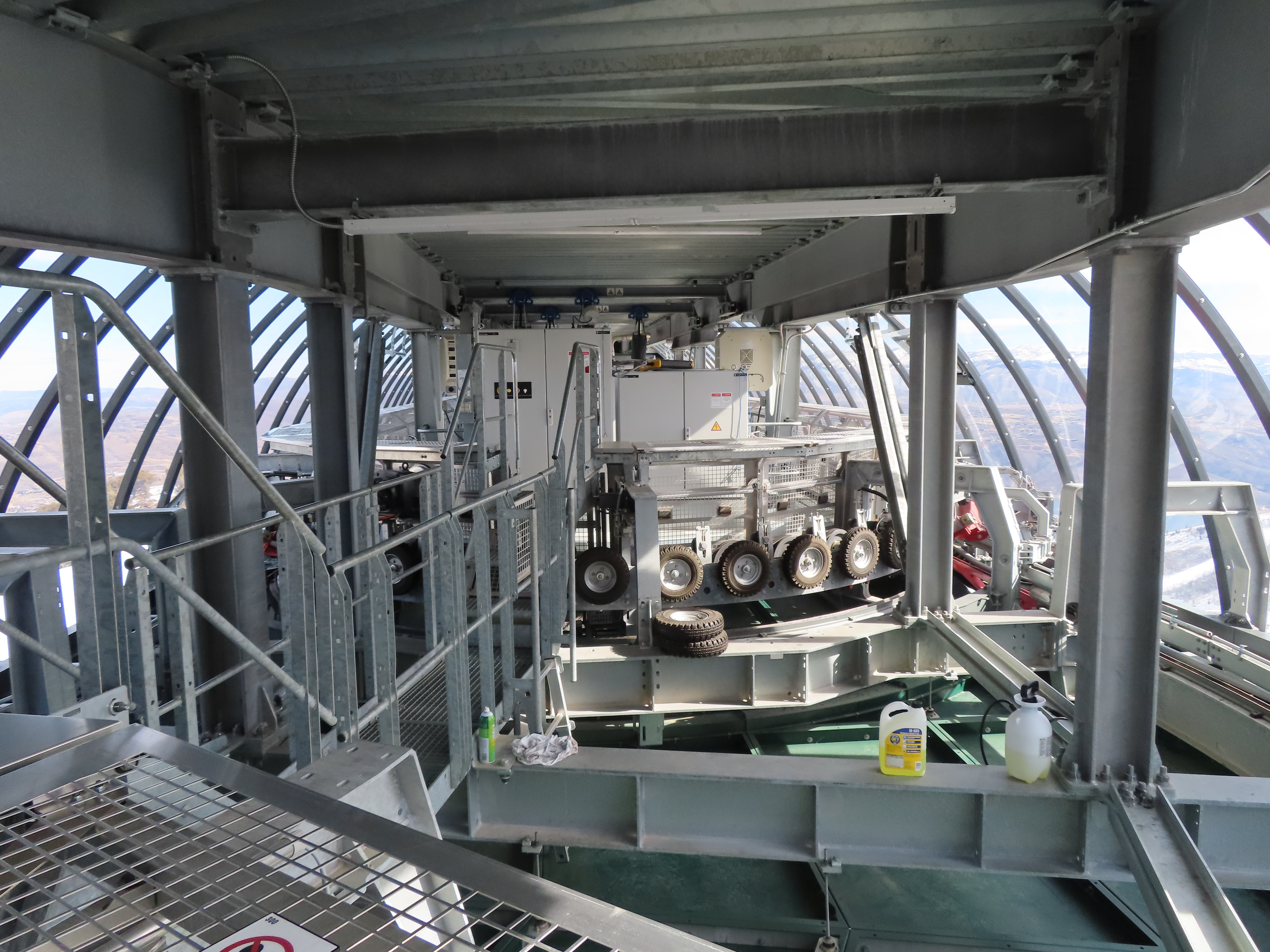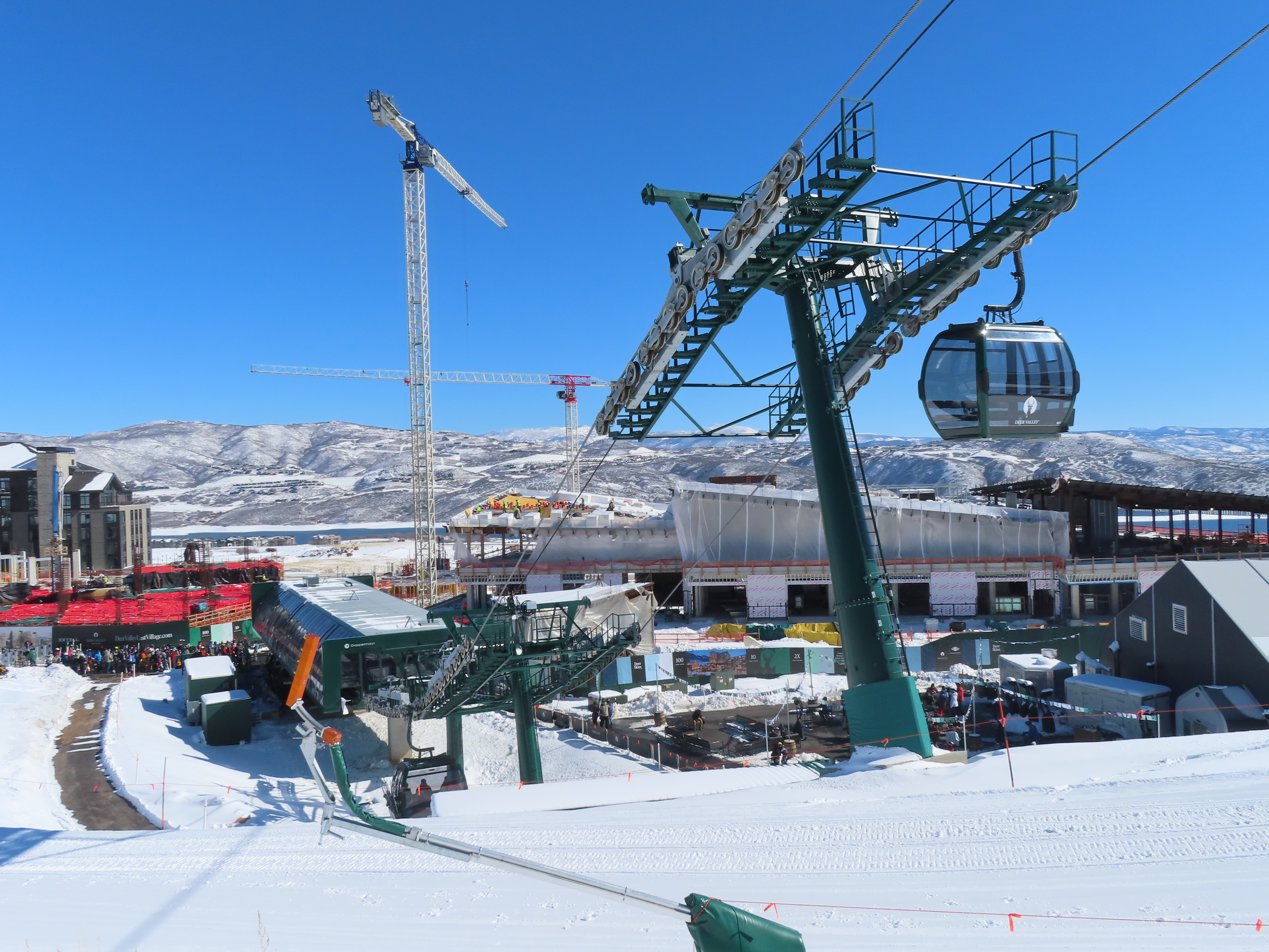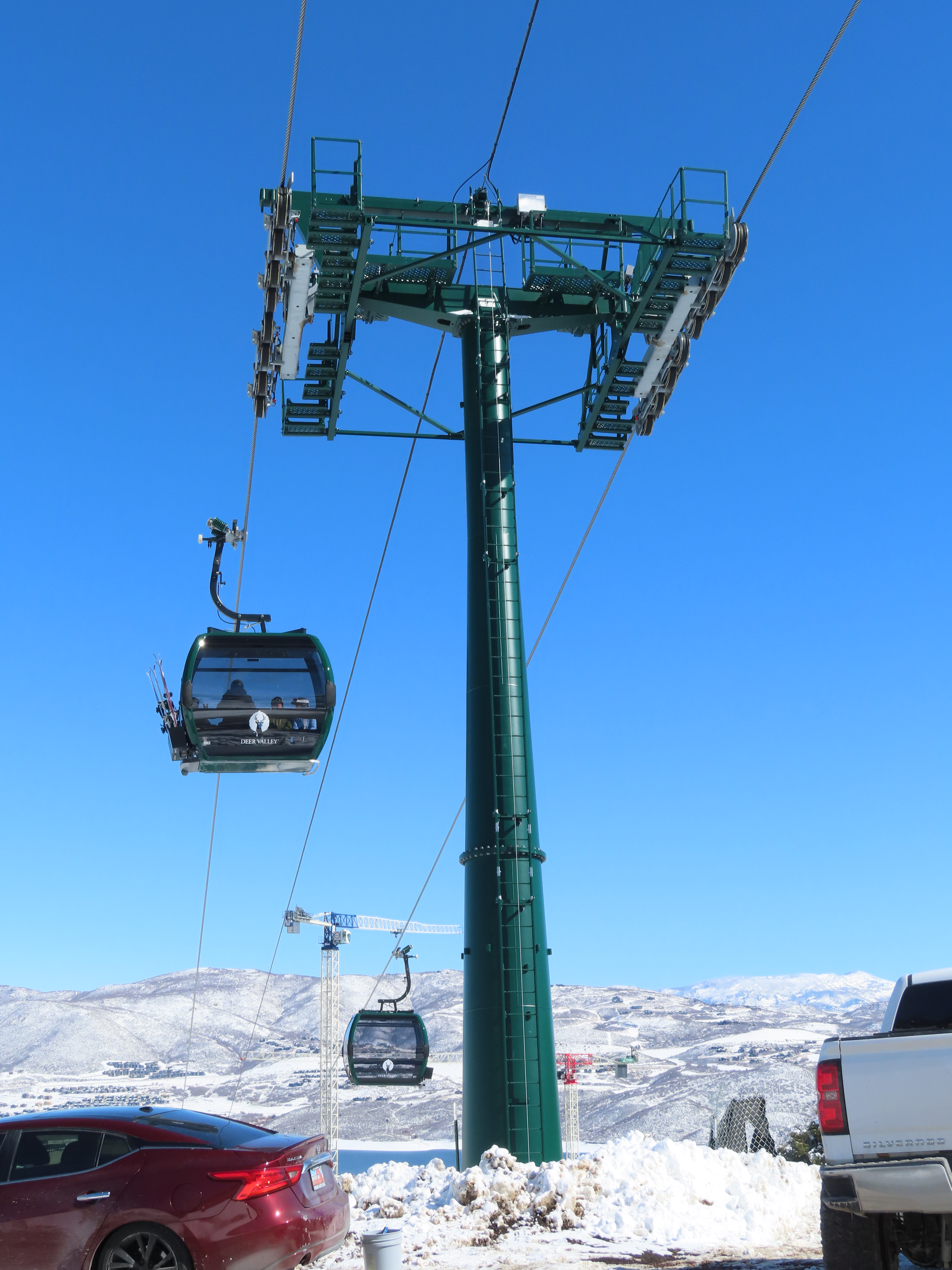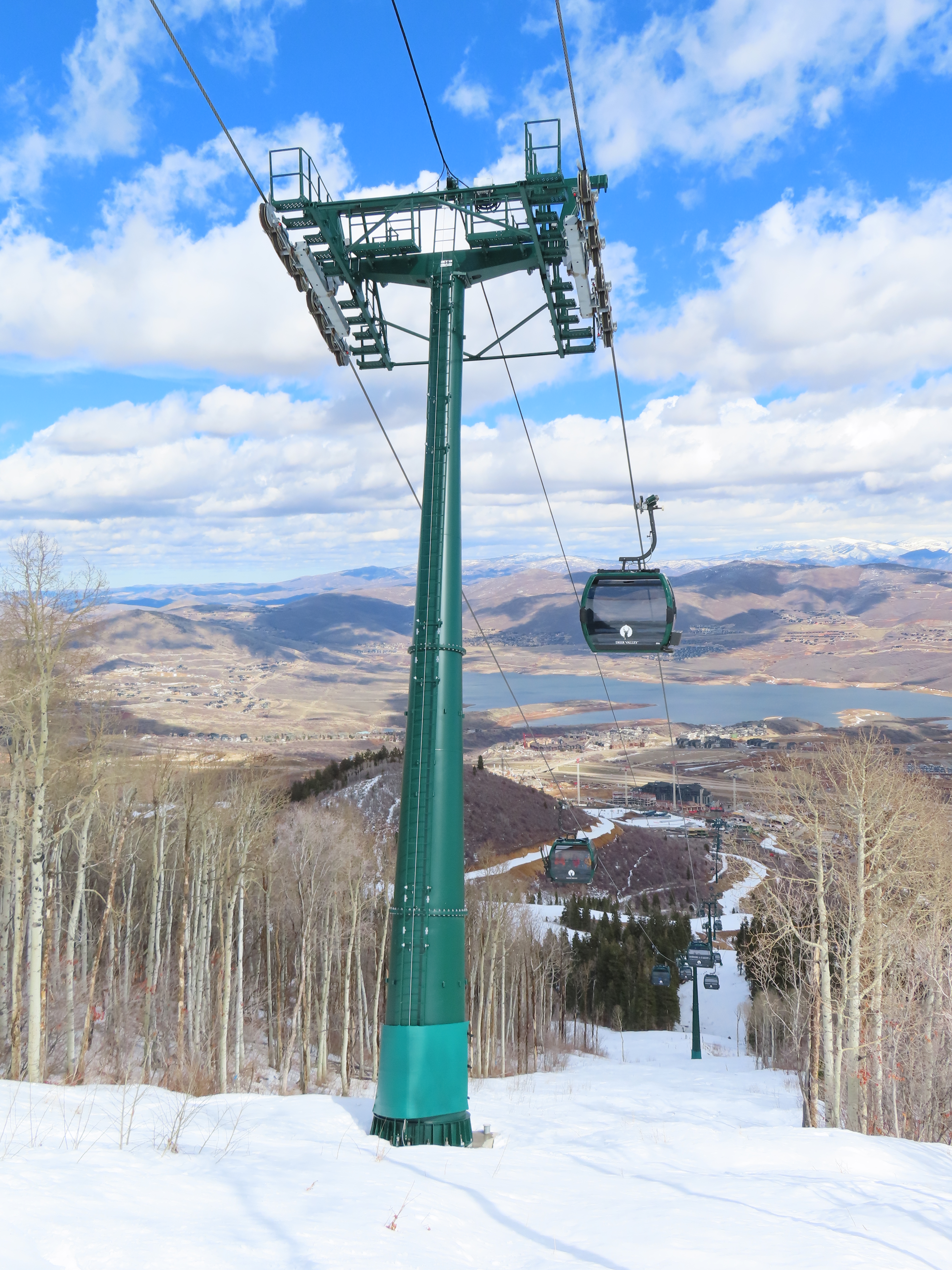 This gondola runs from the new East Village to Big Dutch.Lower station area with steep climb out from the future village.This section is slightly shorter than the second section, which continues from Big Dutch to Park Peak.Side view of the D-Line return station.Very tall towers along the line.Support tower with Hail Peak in the background.Lower lift line amid residential real estate.Tower 5.D-Line station with tensioning.Lift line overview.Load station in the base area.Hold down towers 1 and 2.Lift overview.During normal operation, cabins continue onto a second section at Big Dutch.Angle station.Tension system in the lower terminal.Line gauge bullwheel.Doppelmayr Connect controls.Drive room.Turnaround used only when the two sections are split.View inside the mid-station.Diesel evac drive and three ring direct drive.Doors do not normally open on the downhill side at the mid.Omega V cabin.Side view of the station on Big Dutch.Lower station overview.Side view of the lower station.D-Line station with multimedia screen.View down from the summit of section 1.Tower 14.T13.Steep upper section of the line.Optional unload at Big Dutch.View from the summit.Middle part of the line.One of several towers with large combo assemblies.Lower lift line above Jordanelle Reservoir.Middle section of the line.Tower 7.View riding up.European style tower head.Large support tower.Breakover tower on Big Dutch.Side view of the mid-station.Towers 16 and 17.