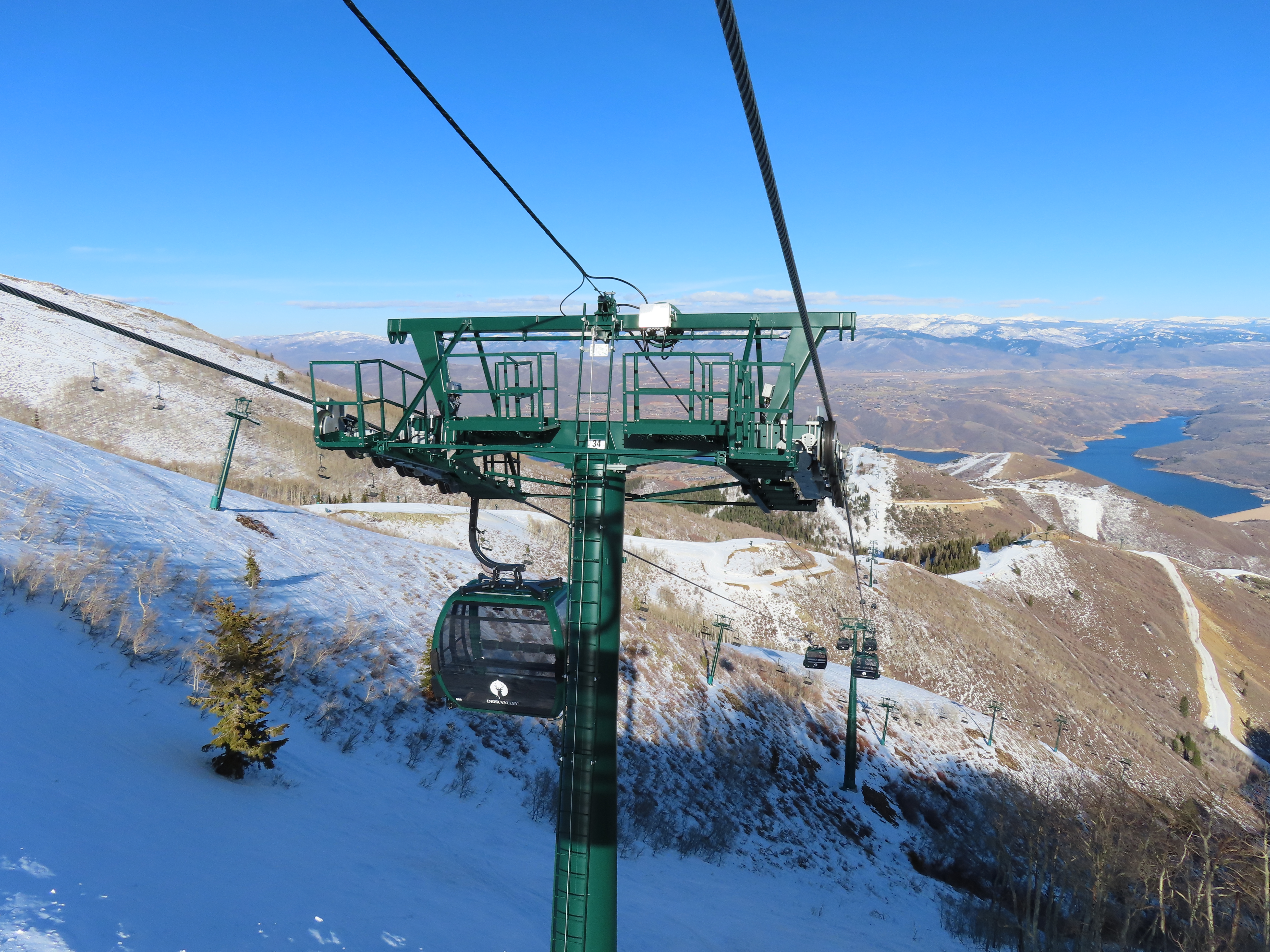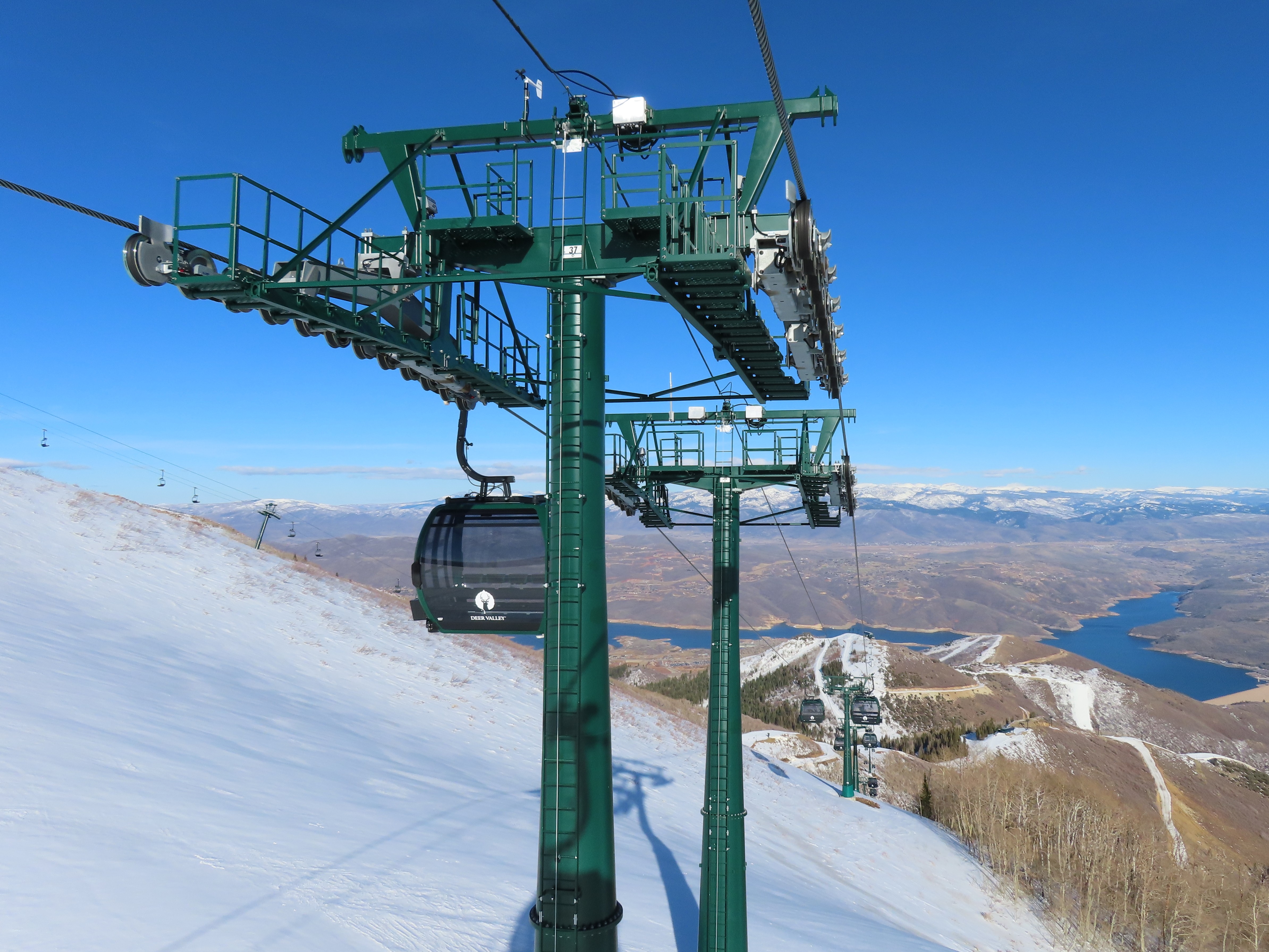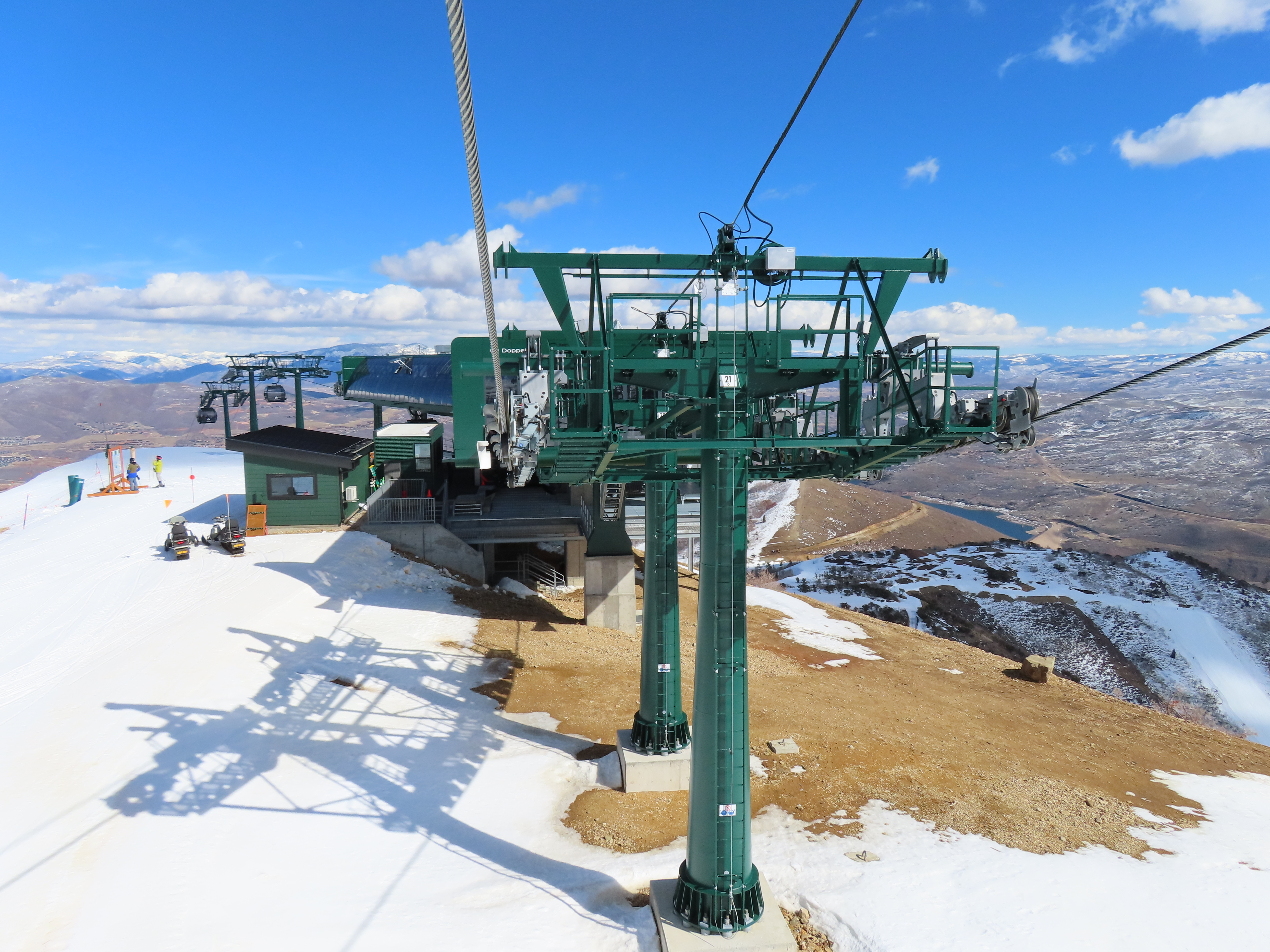 This is the second stage of a two section gondola from the East Village to Park Peak.Both sections can run independently but generally they operate together.The first and second towers, labelled 20 and 21 due to the lower section.View riding out of the middle station on Big Dutch.Looking down toward Big Dutch.This section of the line features very tall towers.The upper part of the line crosses over Revelator Express, built simultaneously.Upper part of the lift line.Towers near the summit.This lift travels downhill at two points, near each station.Unloading area next to the future Park Peak lodge.The lift ends below the true summit in part to stay within Wasatch County.Looking down on the first part of the line.Big Dutch intermediate station.Support tower with Vulcan Express in the background.Lift line above the mid-station.View down at tower 29.The downhill section above the mid-station.Side view of the line.Crossing over Revelator.A very tall combo tower.Another extremely tall tower seen from Revelator.Short towers on the ridge top.Tower 28.View while passing over Revelator.Breakover towers 36 and 37.European style tower head 34.T32.T31.Climbing up to Big Dutch on the way down the overall mountain.Towers 22 and 23 just above the middle station.Lift line overview.Tower 27.Tower 33.Cabins cresting the ridge of Park Peak.Lift line descending to the new Park Peak lodge.A cabin and tower with Mt. Timpanogas in the background.Revelator top terminal and the gondola.Side view of the lower station at Big Dutch.View up from the mid unload.Drive cabinets below the mid-station.During normal operation, doors open only on the uphill side.Small, slow evacuation drive.Large, fast direct drive.Tension rams in the mid-station.Looking down the station.Chains carry cabins between the two sections.View up from the mid downhill platform.Doppelmayr Connect controls.Park Peak station with tunnel to future underground parking.Side view of the summit.Mid-station and Jordanelle Reservoir.Another view of the ridgetop mid-station.Upper lift line overview.Cabins with seat heating and green accents.View down at tower 29.Cabins passing from Big Dutch toward Park Peak.