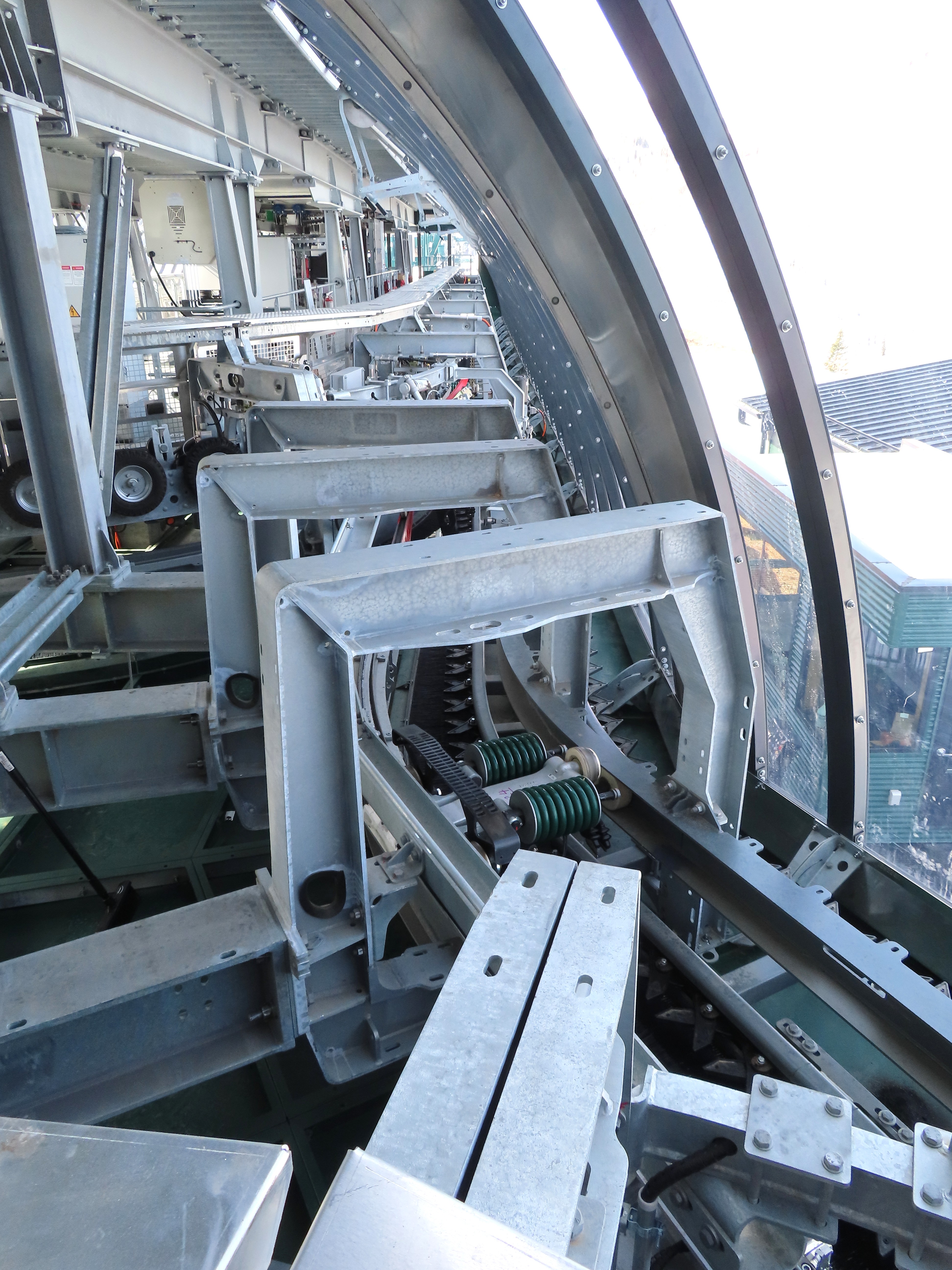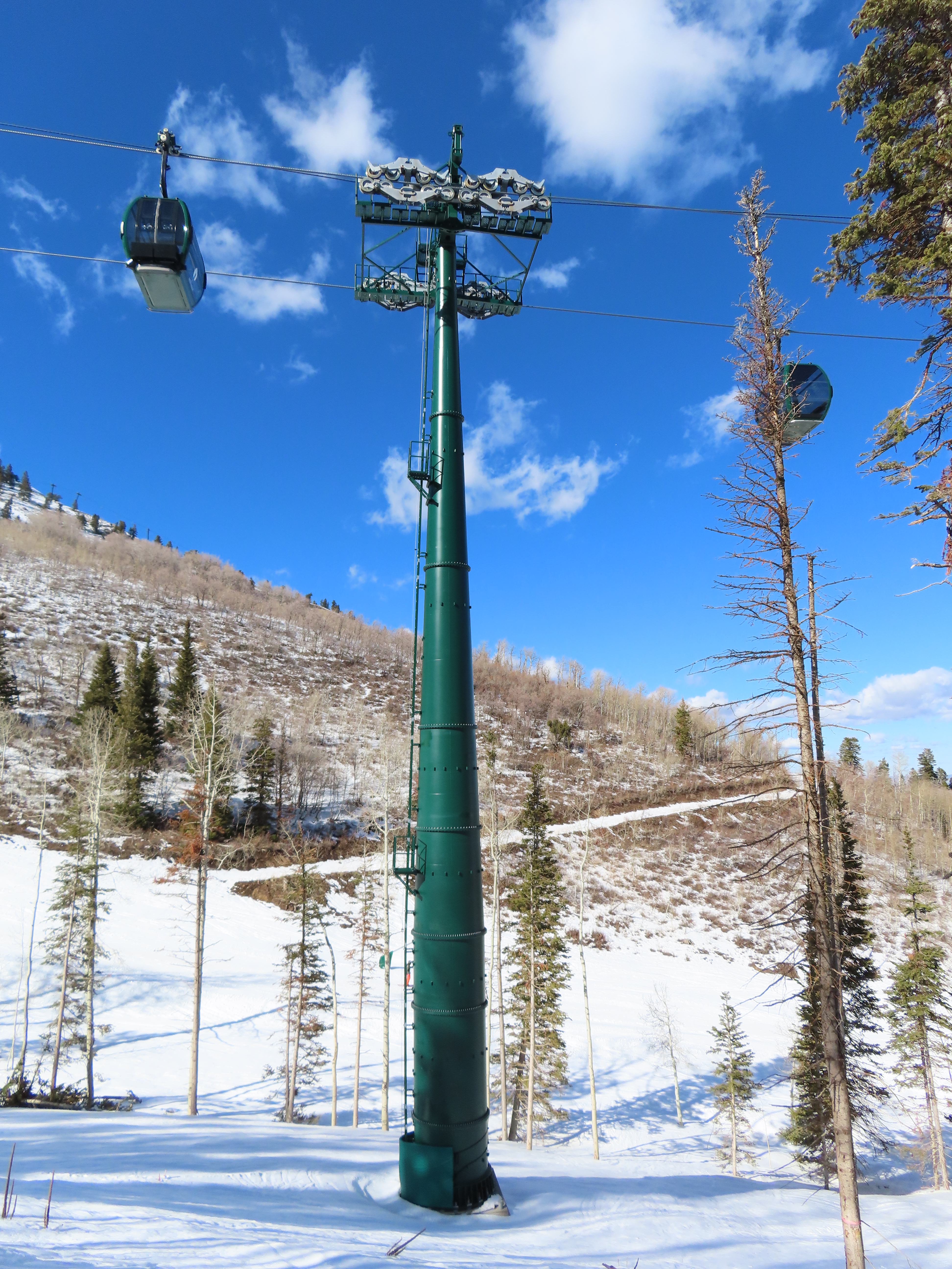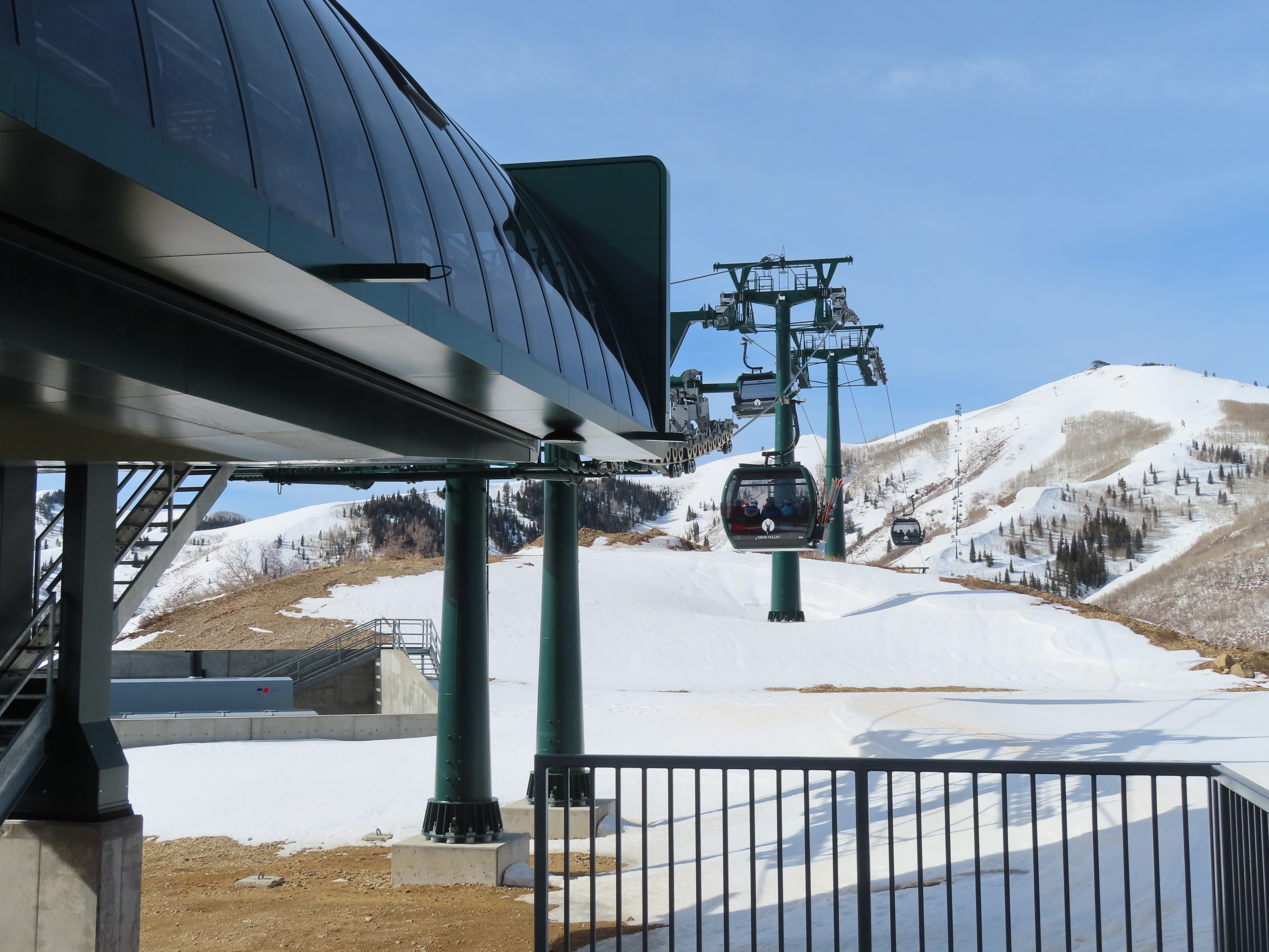 This is the second stage of a two section gondola from the East Village to Park Peak.Both sections can run independently but generally they operate together.The first and second towers, labelled 20 and 21 due to the lower section.View riding out of the middle station on Big Dutch.Looking down toward Big Dutch.This section of the line features very tall towers.The upper part of the line crosses over Revelator Express, built simultaneously.Upper part of the lift line.Towers near the summit.This lift travels downhill at two points, near each station.Unloading area next to the future Park Peak lodge.The lift ends below the true summit in part to stay within Wasatch County.Looking down on the first part of the line.Big Dutch intermediate station.Support tower with Vulcan Express in the background.Lift line above the mid-station.View down at tower 29.The downhill section above the mid-station.Side view of the line.Crossing over Revelator.A very tall combo tower.Another extremely tall tower seen from Revelator.Short towers on the ridge top.Tower 28.View while passing over Revelator.Breakover towers 36 and 37.European style tower head 34.T32.T31.Climbing up to Big Dutch on the way down the overall mountain.Towers 22 and 23 just above the middle station.Lift line overview.Tower 27.Tower 33.Cabins cresting the ridge of Park Peak.Lift line descending to the new Park Peak lodge.A cabin and tower with Mt. Timpanogas in the background.Revelator top terminal and the gondola.Side view of the lower station at Big Dutch.View up from the mid unload.Drive cabinets below the mid-station.During normal operation, doors open only on the uphill side.Small, slow evacuation drive.Large, fast direct drive.Tension rams in the mid-station.Looking down the station.Chains carry cabins between the two sections.View up from the mid downhill platform.Doppelmayr Connect controls.Park Peak station with tunnel to future underground parking.Side view of the summit.Mid-station and Jordanelle Reservoir.Another view of the ridgetop mid-station.Upper lift line overview.Cabins with seat heating and green accents.View down at tower 29.Cabins passing from Big Dutch toward Park Peak.