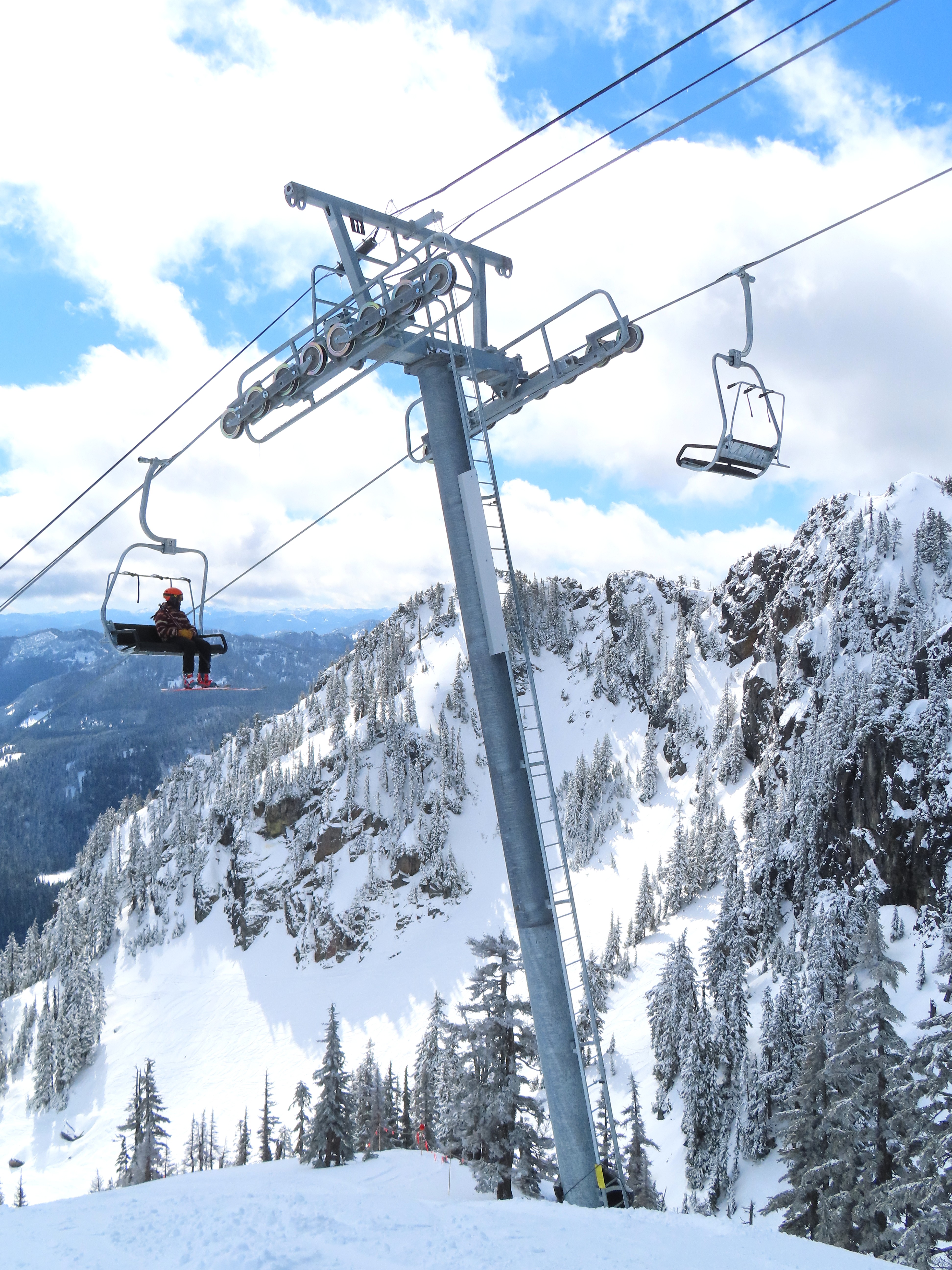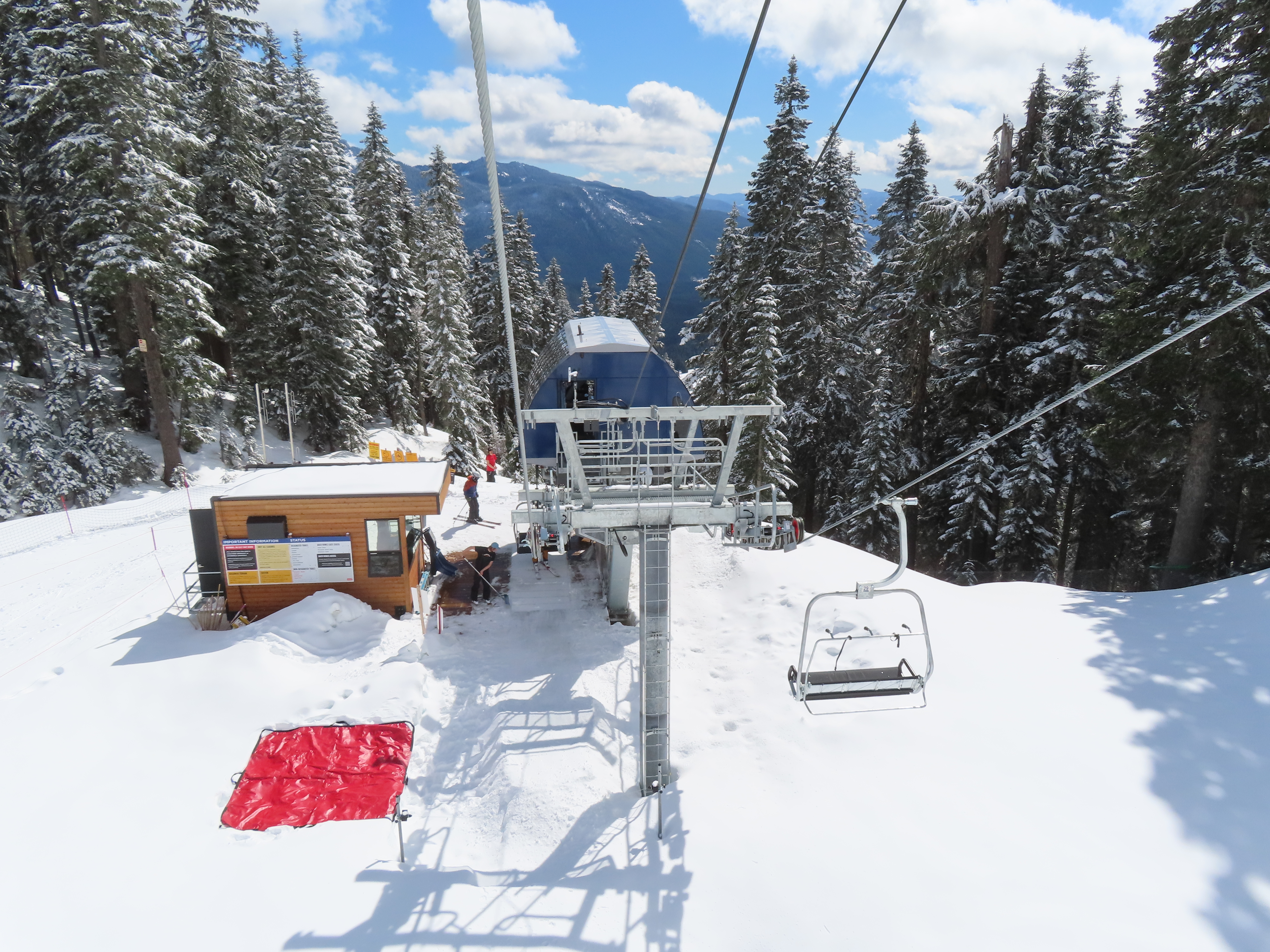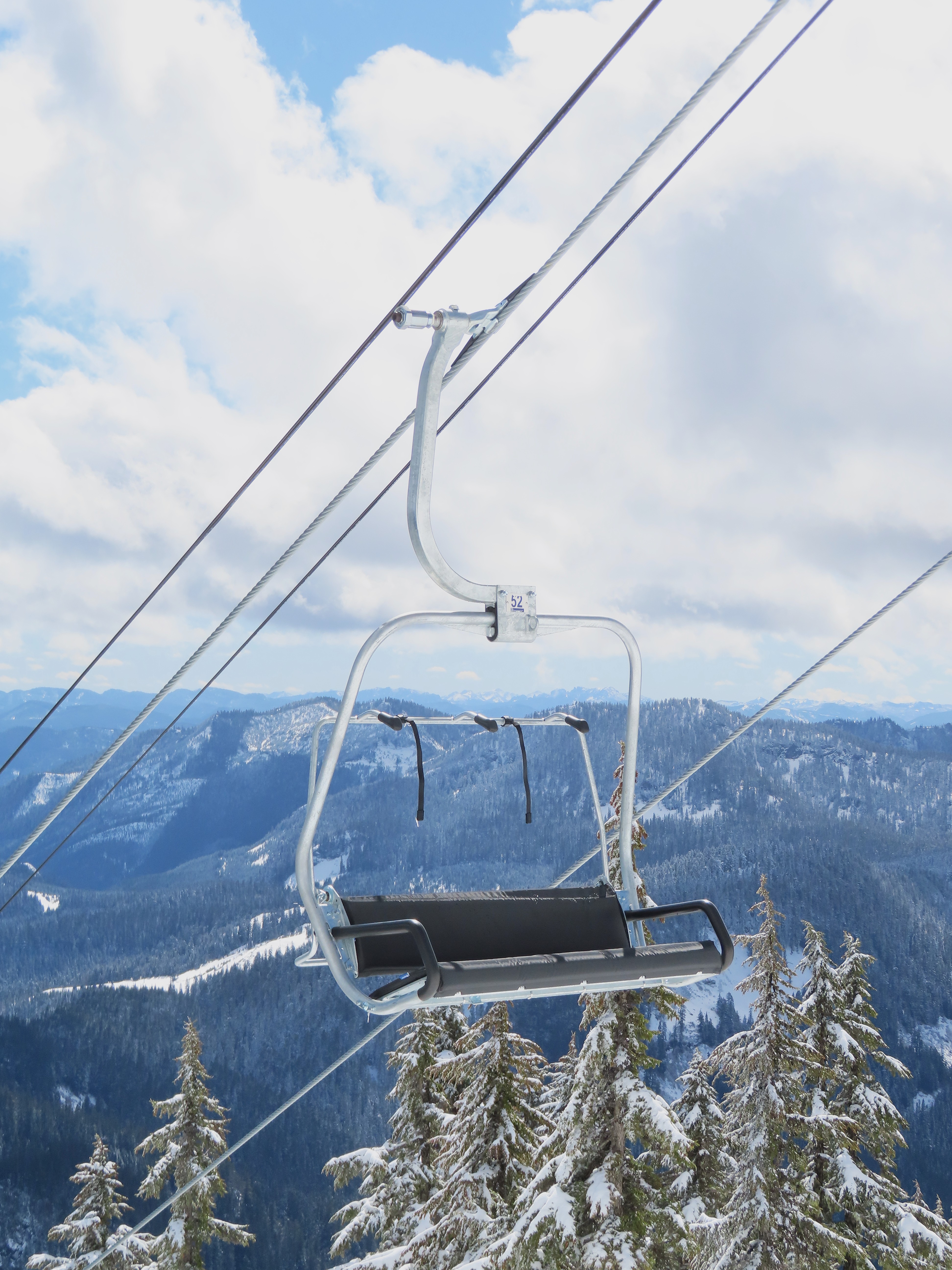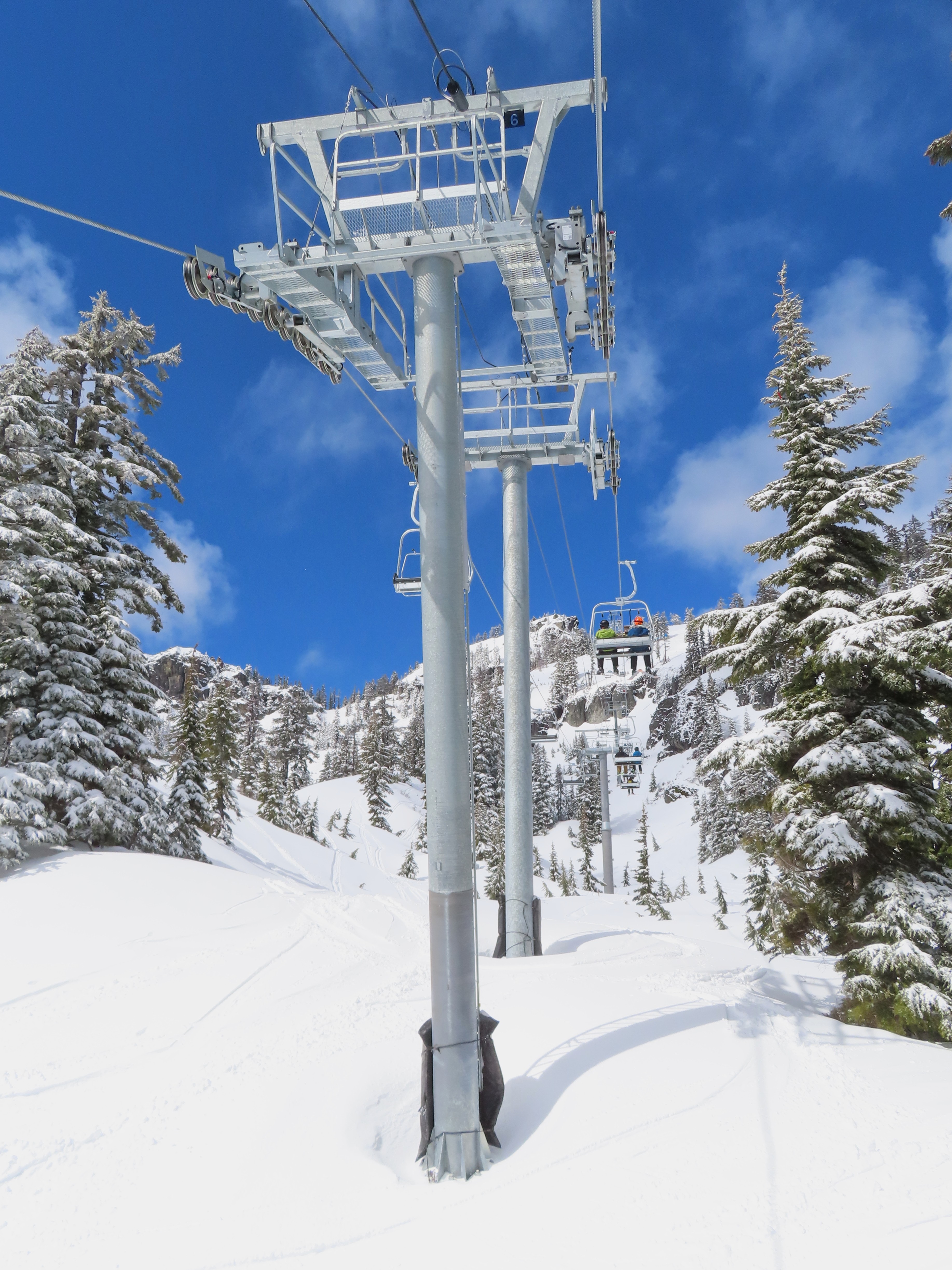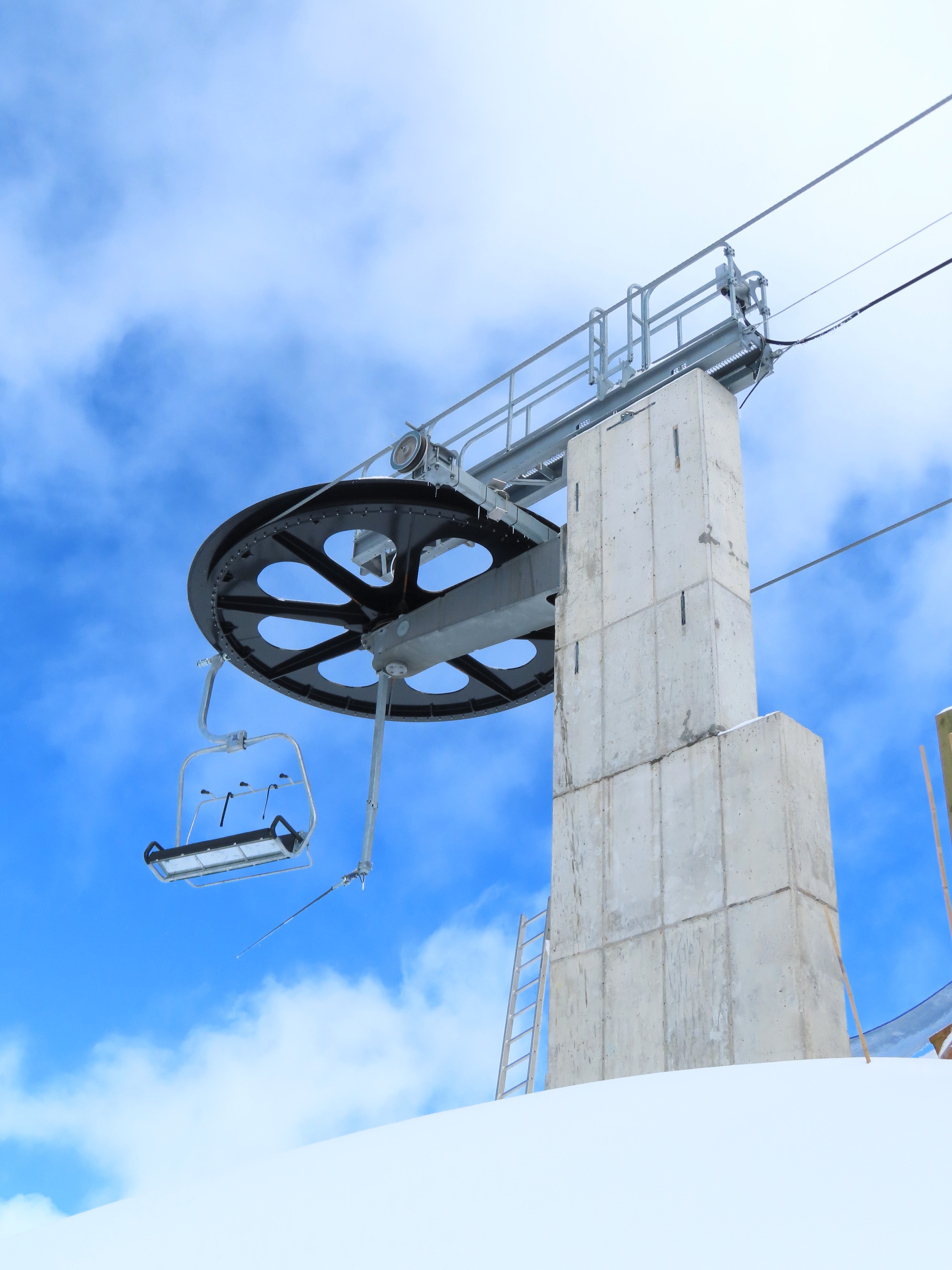 Doppelmayr worked for several years to replace the mountaintop Edelweiss double with the new Edelweiss triple.This is the third Alpenstar triple at Alpental.Drive station and tower 1.View riding up the first pitch.The first of many towers on this lift with combination assemblies on both sides.View back down toward Summit West.The first breakover.View down the line at tower 10.Tower 11.Very rare overhead unloading for a new lift.Tall top bullwheel structure.The top terminal ramp was re-used so new towers were built around it.T11.View down near the summit.Tower 9.Middle section of the line.View up at tower 8.EJ triple chair.Padded chair.View down at tower 5.Lower lift line.Tower 3.View up near the bottom terminal.Tower 5.Heavily loaded tower 6.Flat middle segment of the alignment.The previous Riblet followed the exact same route.Tall tower 9.Tower 10.Arriving at the summit.Top terminal complex.Patrol shack on the lower level.View from the summit.Tower 10.T6 and T7.Side view of the drive.Grip, hanger and taco.
