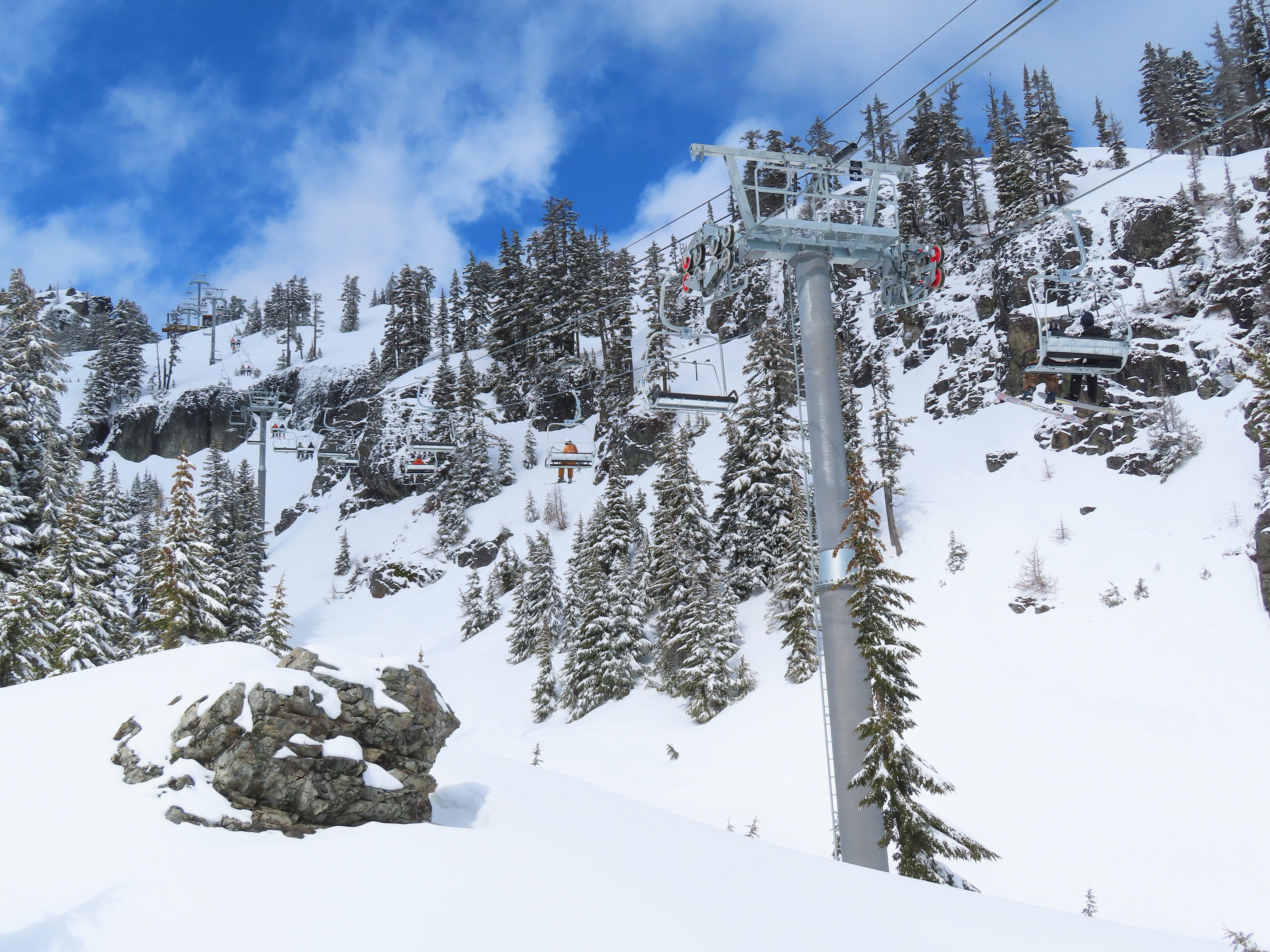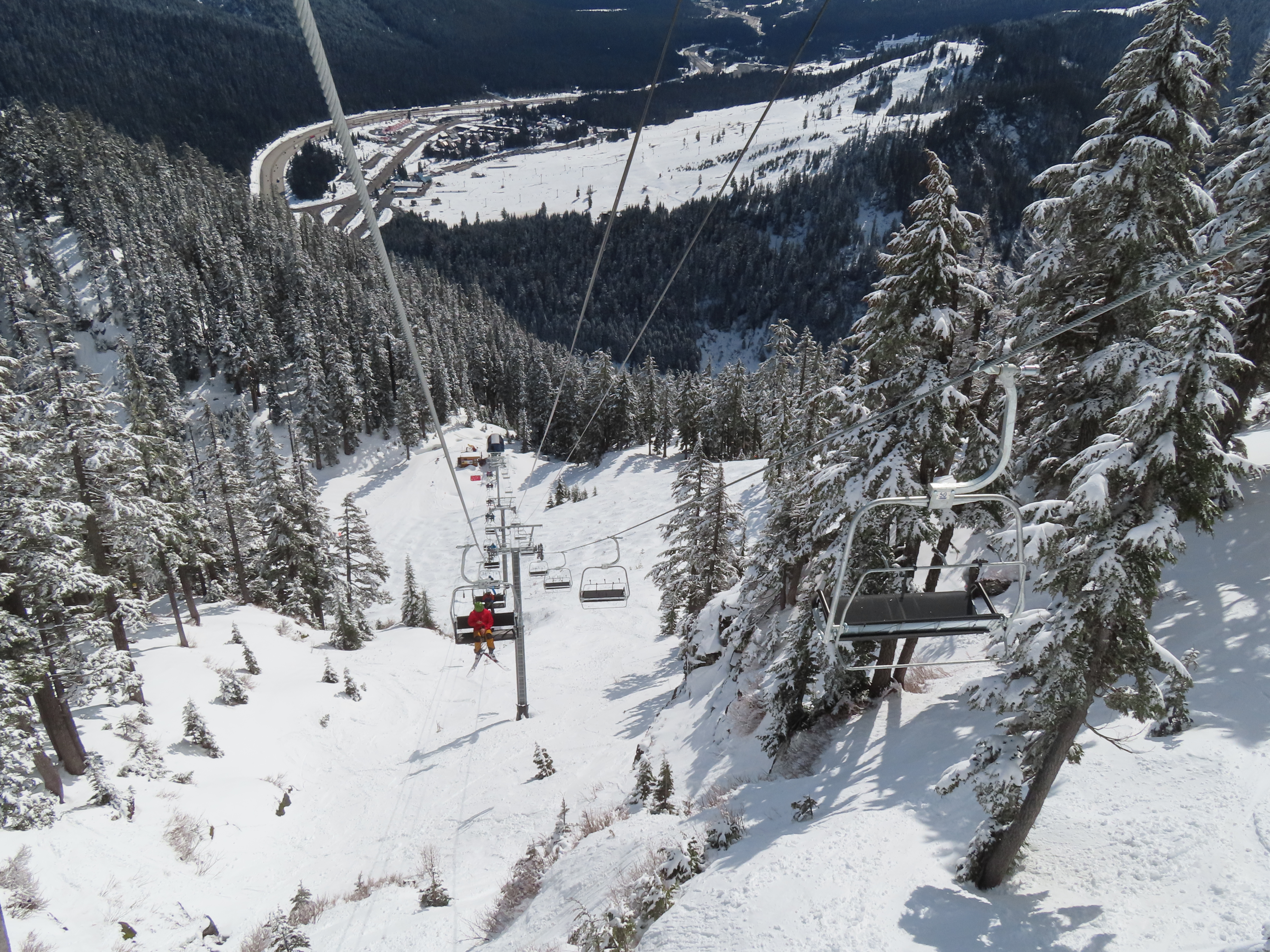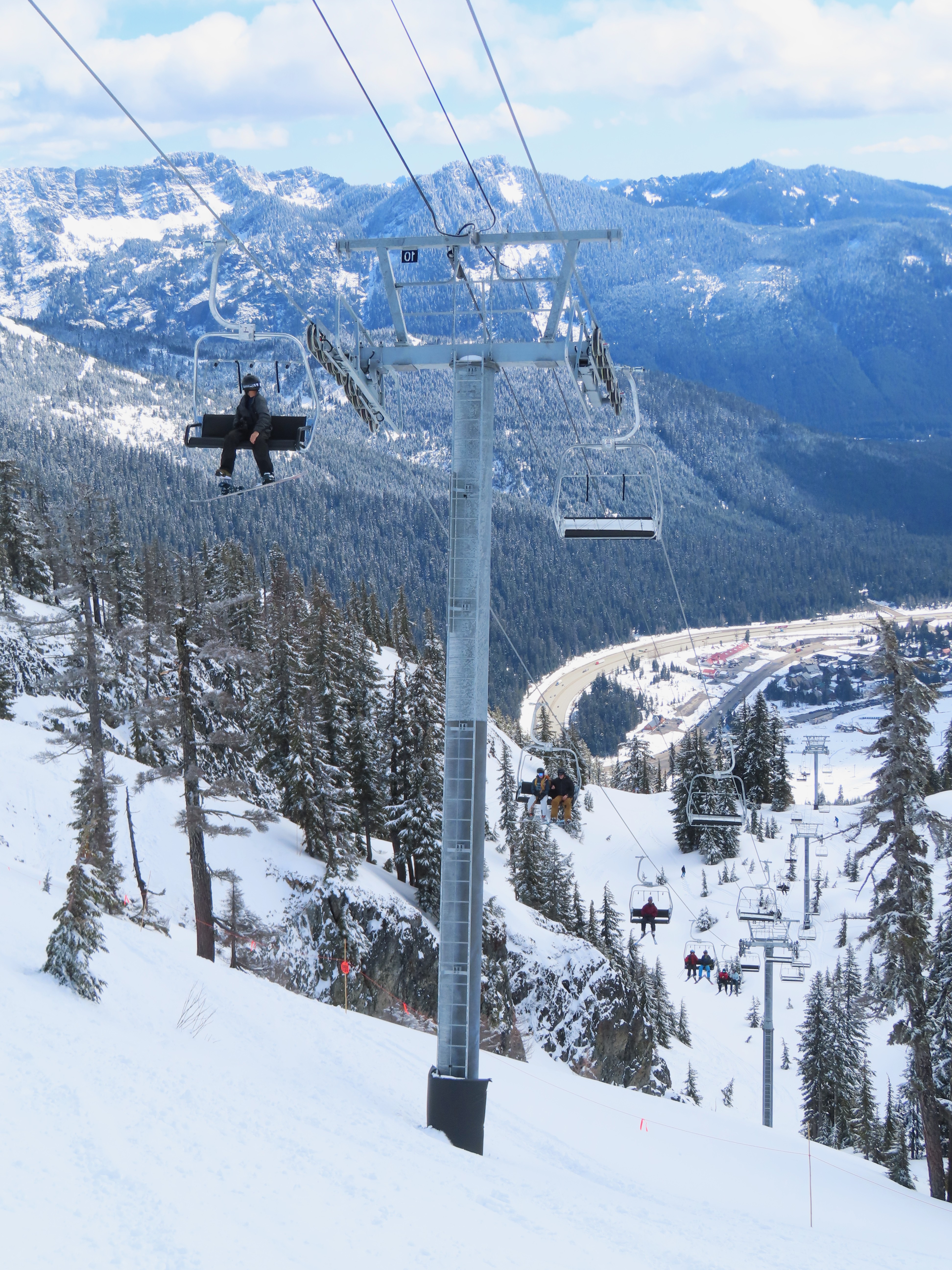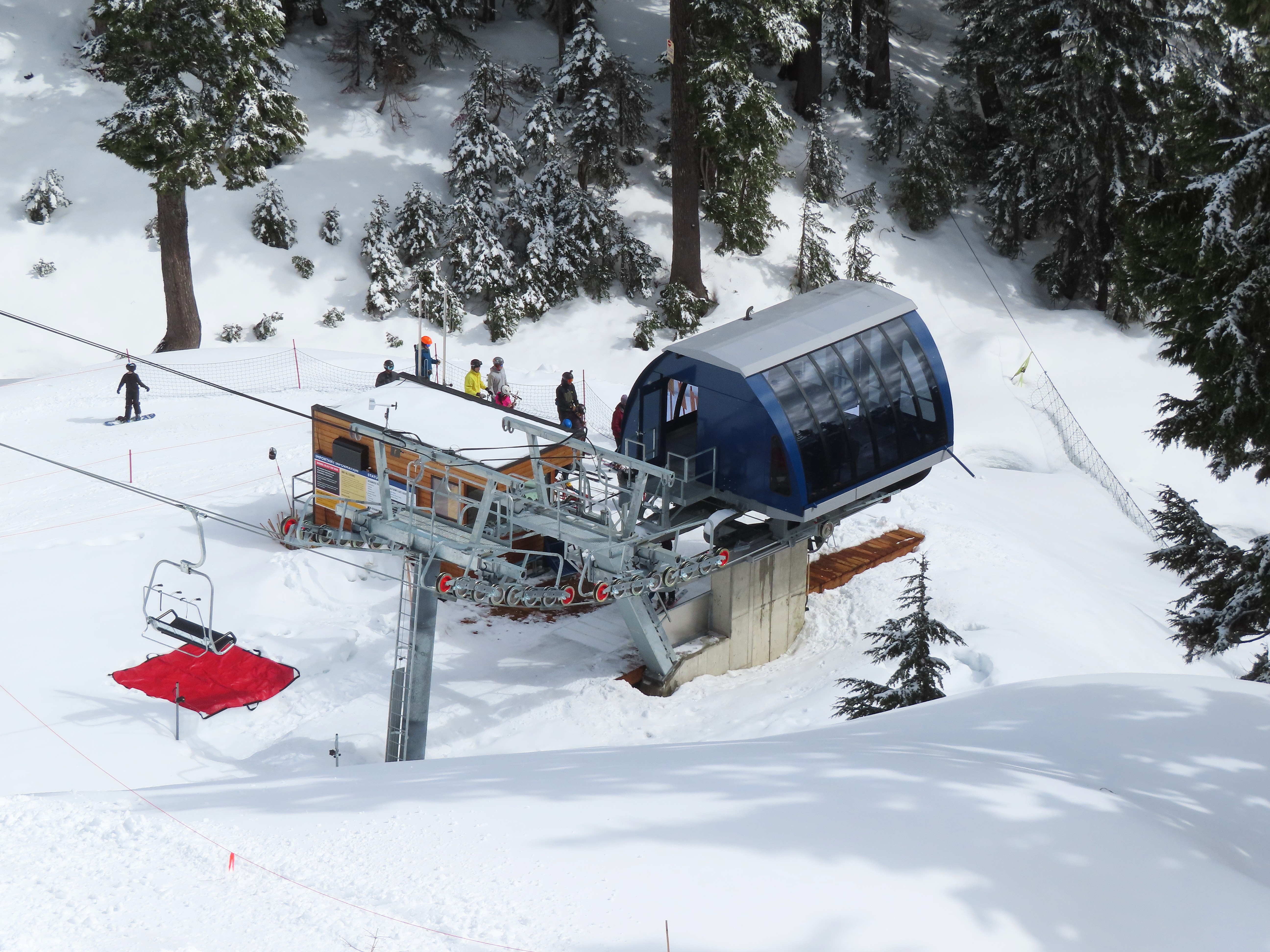 Doppelmayr worked for several years to replace the mountaintop Edelweiss double with the new Edelweiss triple.This is the third Alpenstar triple at Alpental.Drive station and tower 1.View riding up the first pitch.The first of many towers on this lift with combination assemblies on both sides.View back down toward Summit West.The first breakover.View down the line at tower 10.Tower 11.Very rare overhead unloading for a new lift.Tall top bullwheel structure.The top terminal ramp was re-used so new towers were built around it.T11.View down near the summit.Tower 9.Middle section of the line.View up at tower 8.EJ triple chair.Padded chair.View down at tower 5.Lower lift line.Tower 3.View up near the bottom terminal.Tower 5.Heavily loaded tower 6.Flat middle segment of the alignment.The previous Riblet followed the exact same route.Tall tower 9.Tower 10.Arriving at the summit.Top terminal complex.Patrol shack on the lower level.View from the summit.Tower 10.T6 and T7.Side view of the drive.Grip, hanger and taco.
