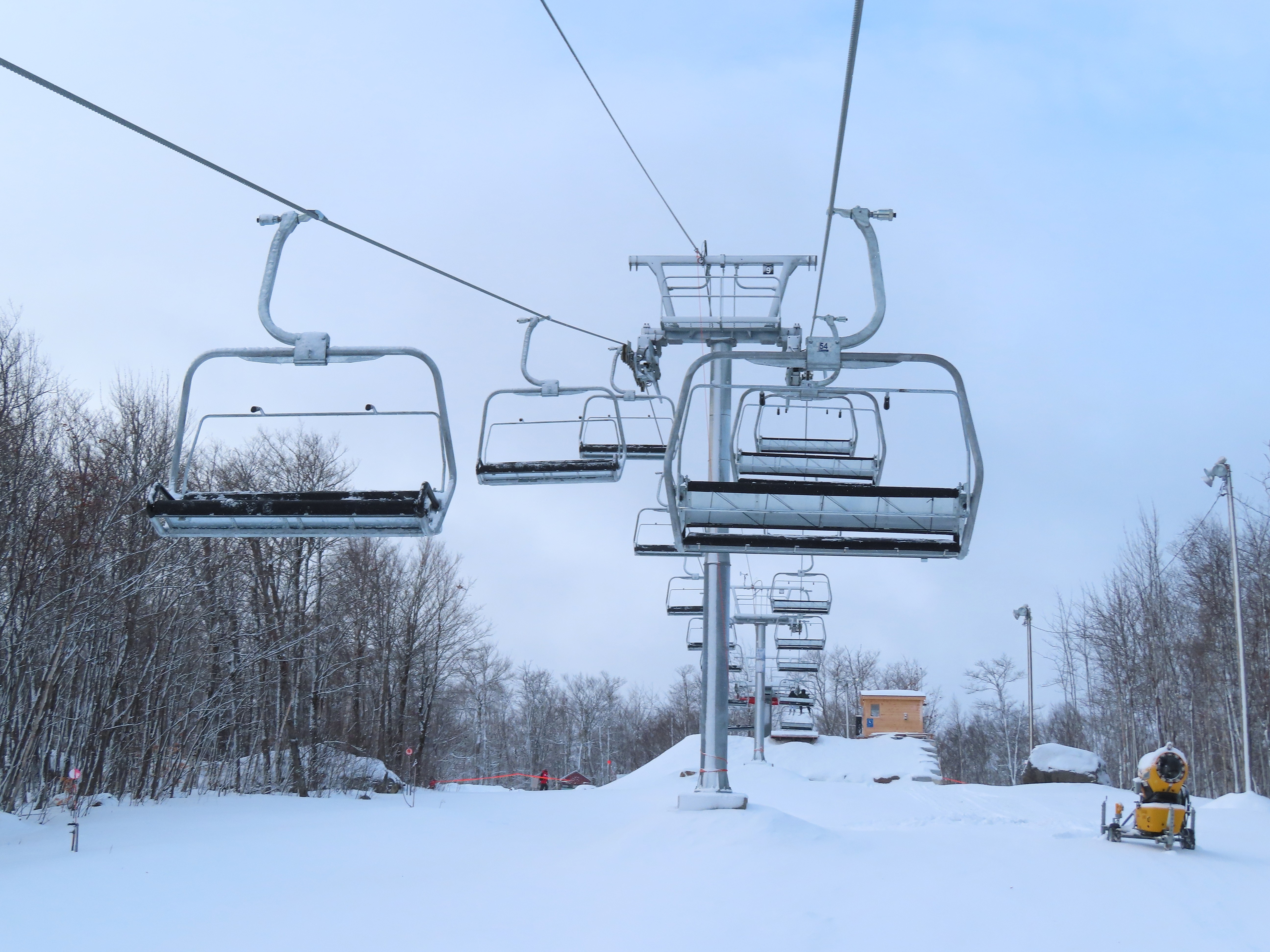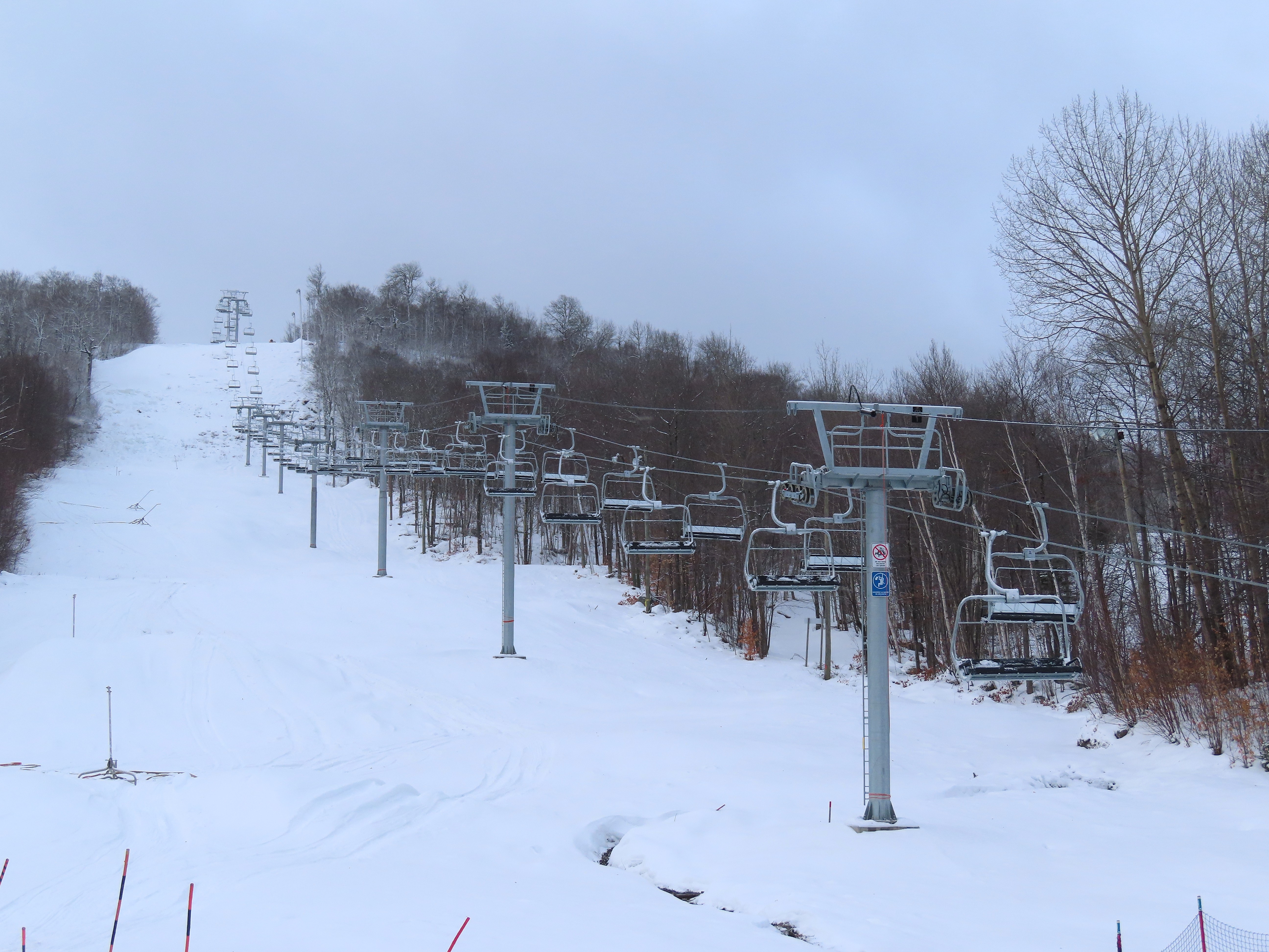 This Doppelmayr Alpen Star quad replaced an older quad chair in 2024.Drive motor room.View up the lift line.A compression tower.Top bullwheel.Side view of the top station.Another view of the bottom station.Chairkit loading conveyor.Tower head with combo assemblies.Riding up the middle part of the line.View back down the line.Upper part of the lift line.Tower 9.Arriving at the summit.Red painted bullwheel.
