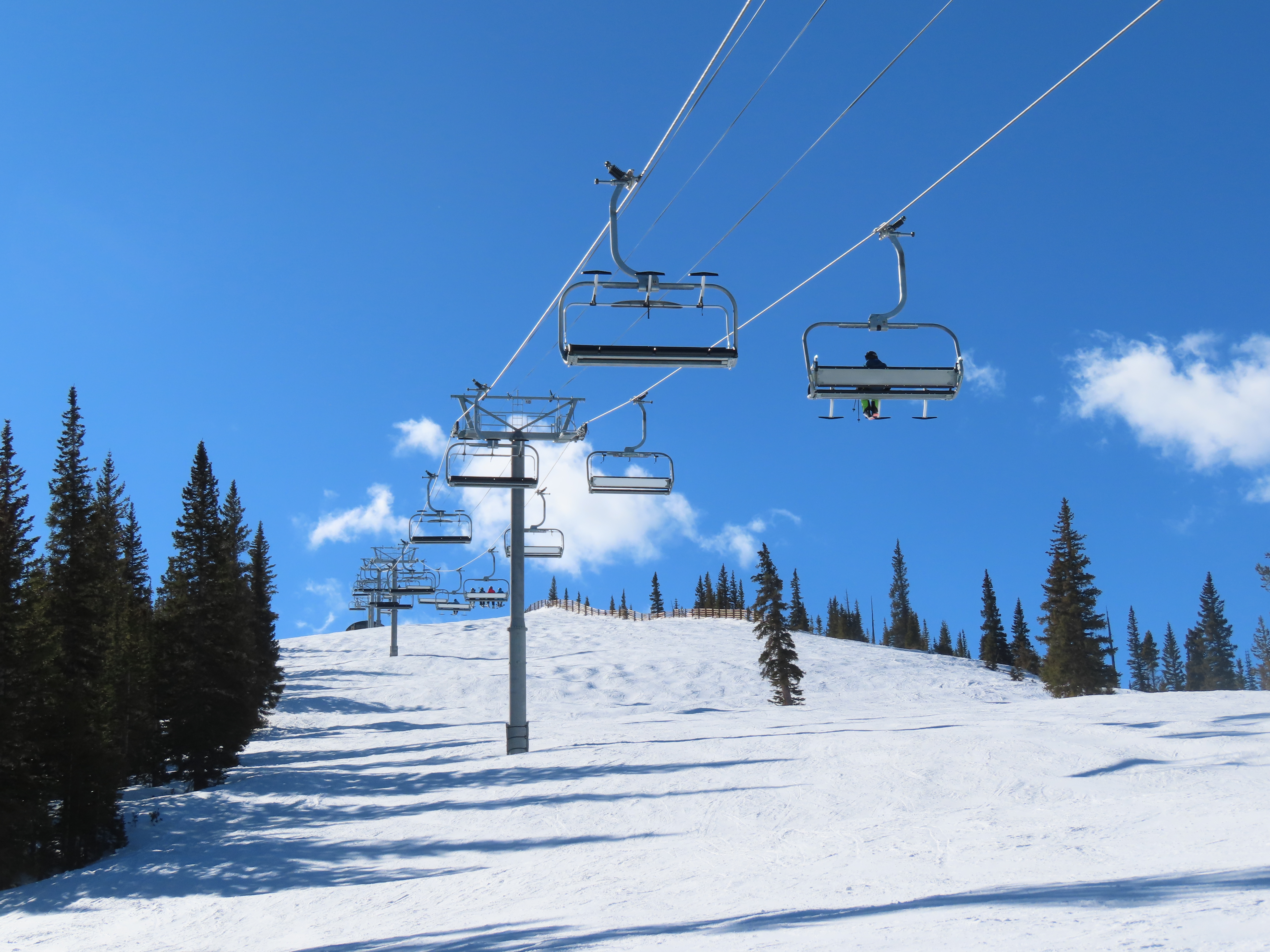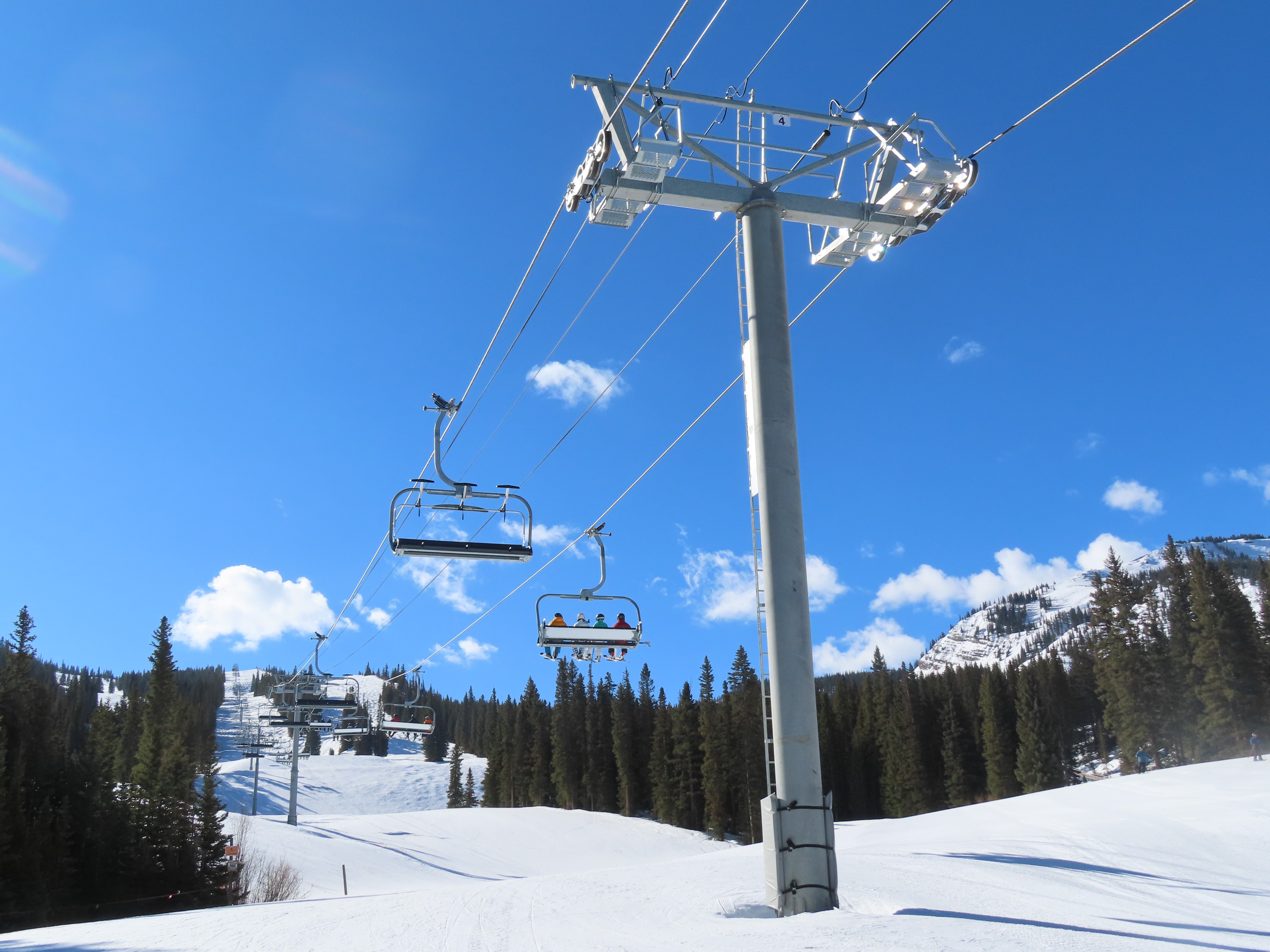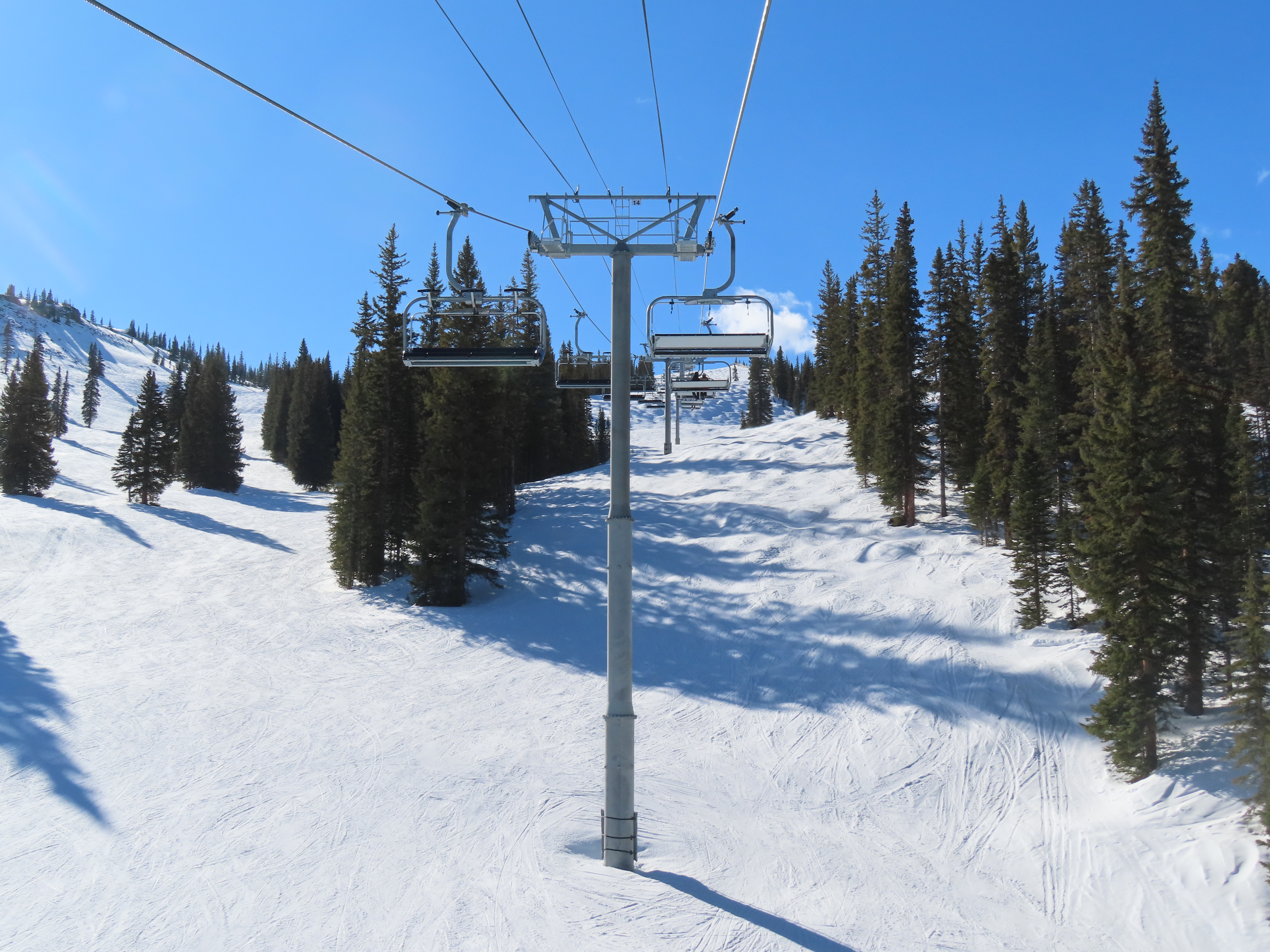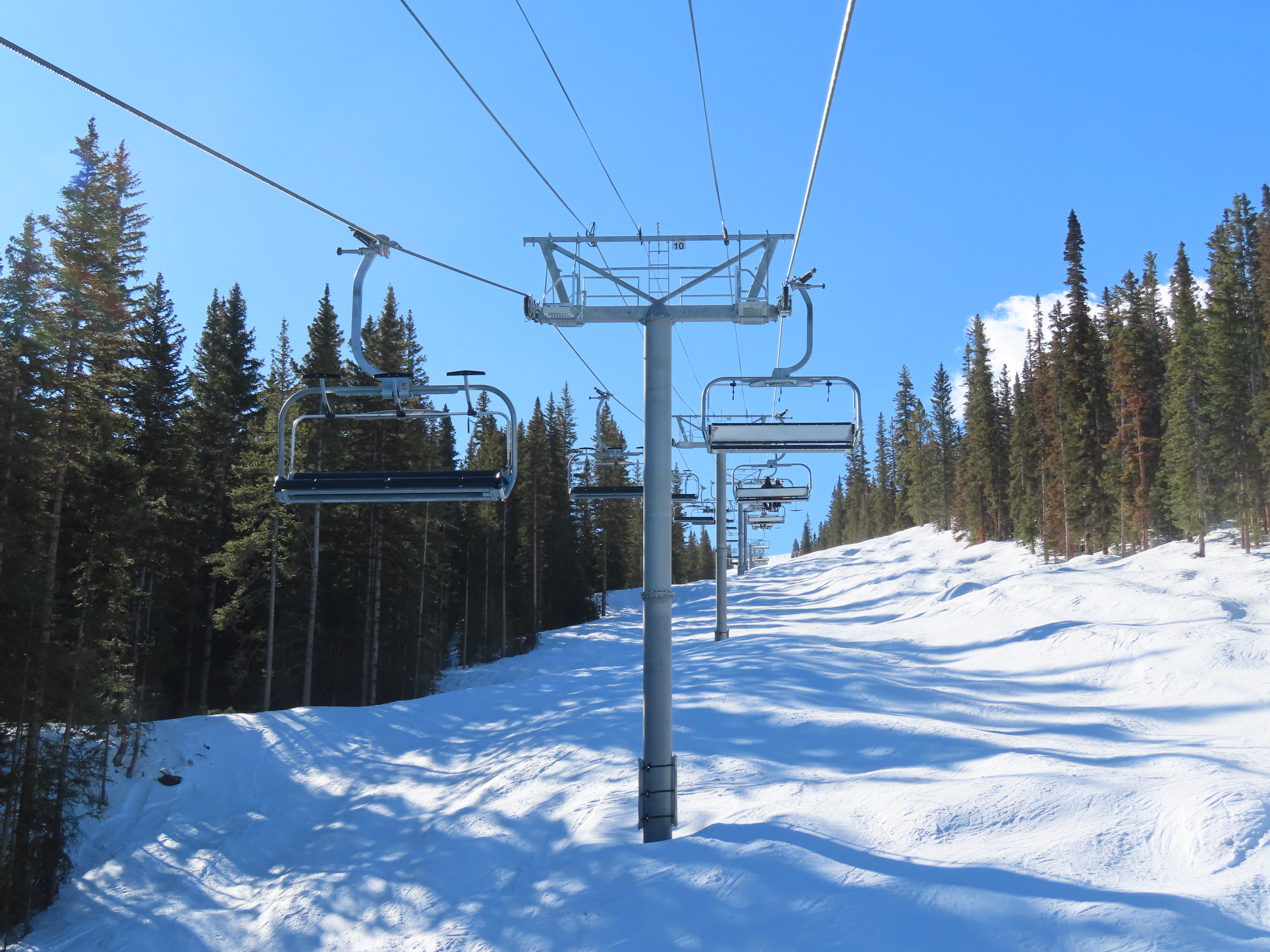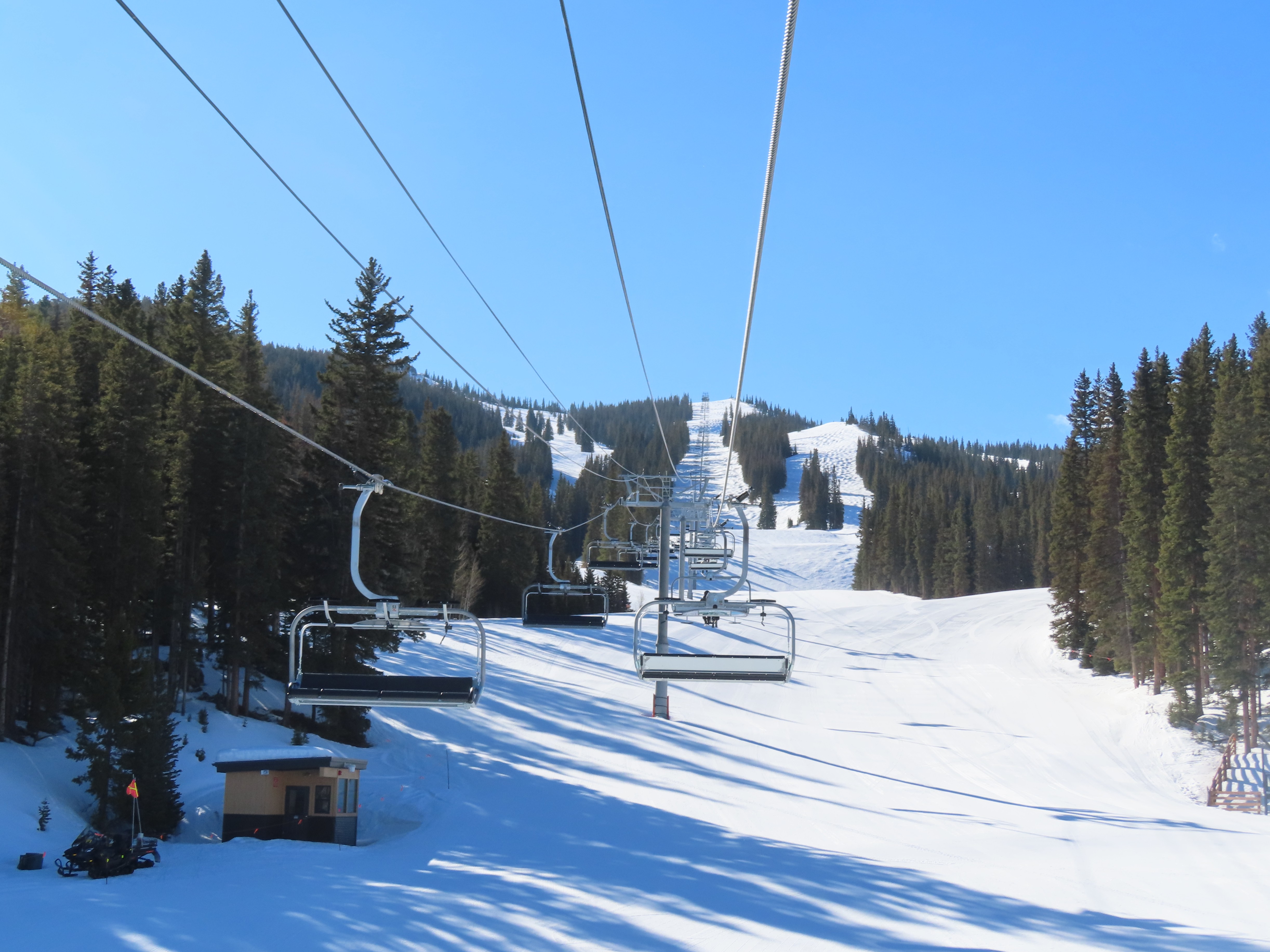 This detachable six pack replaced a detachable quad of the same name in 2025.Leitner-Poma LPA station and tower 1.Loading area and maintenance rail.View riding out of Elk Camp.Riding up the line at tower 10.View back down the lower line.Tower 12.Several towers are quite tall.Upper lift line.View back near the summit.Arriving at the drive station.Unloading area and drive terminal.Upper station overview.Terminal under cover.Breakover towers at the top.Looking up at the top station.View down the long lift line.Upper line.Middle part of the line.View down at tower 13.Long, consistent pitched alignment.Lower lift line.View up at T4.Return station overview.Lift overview and a large maintenance bay.