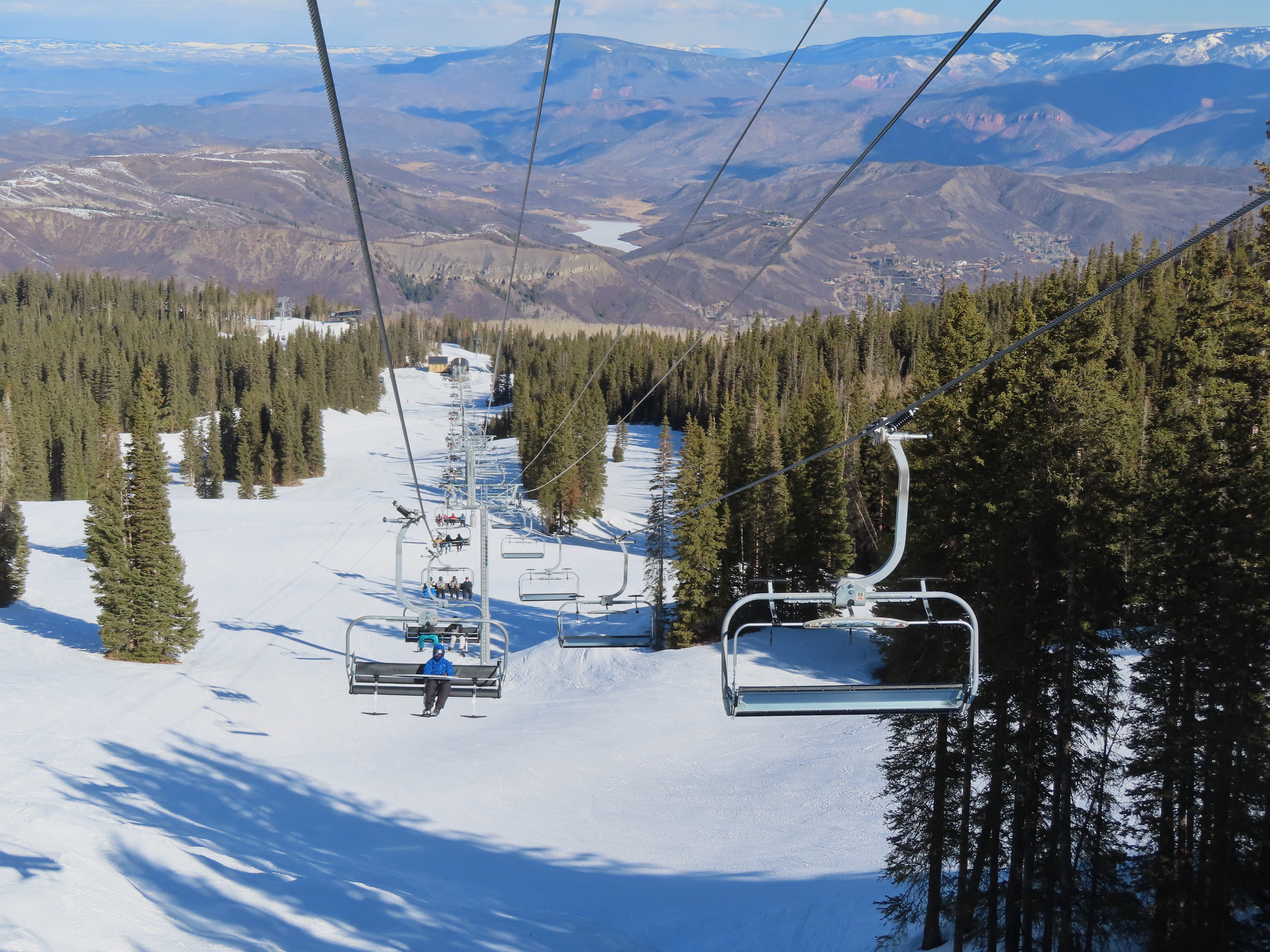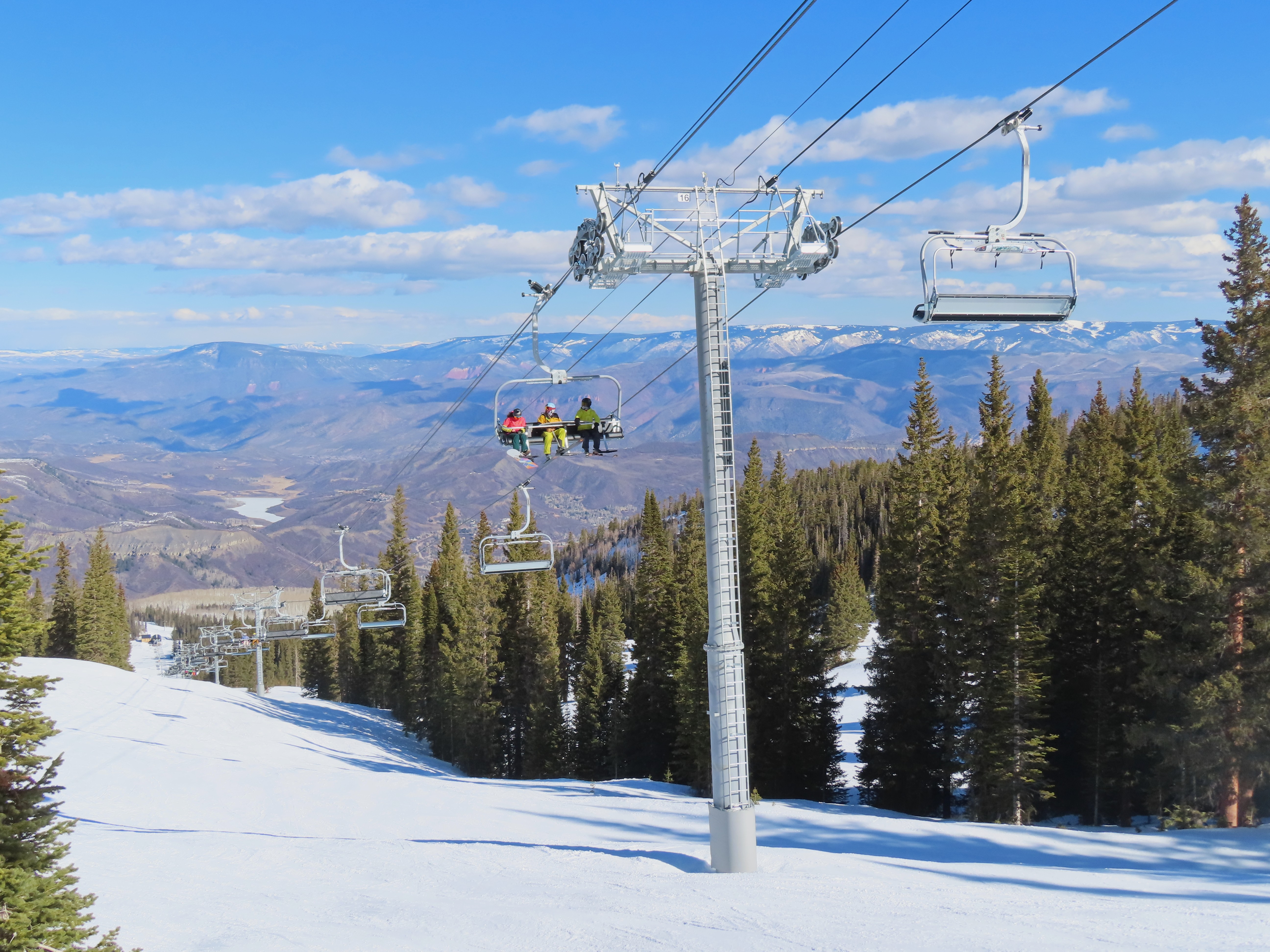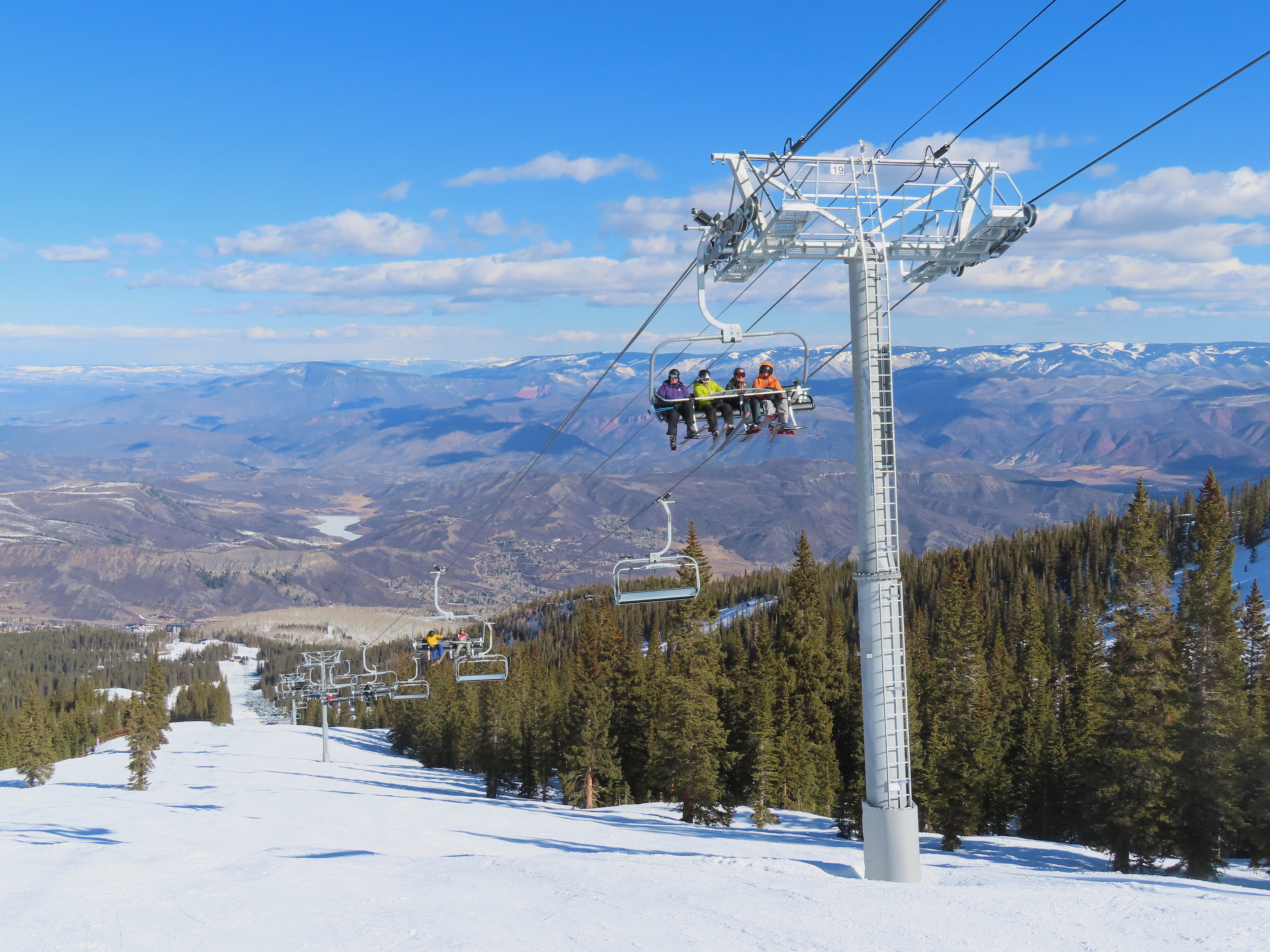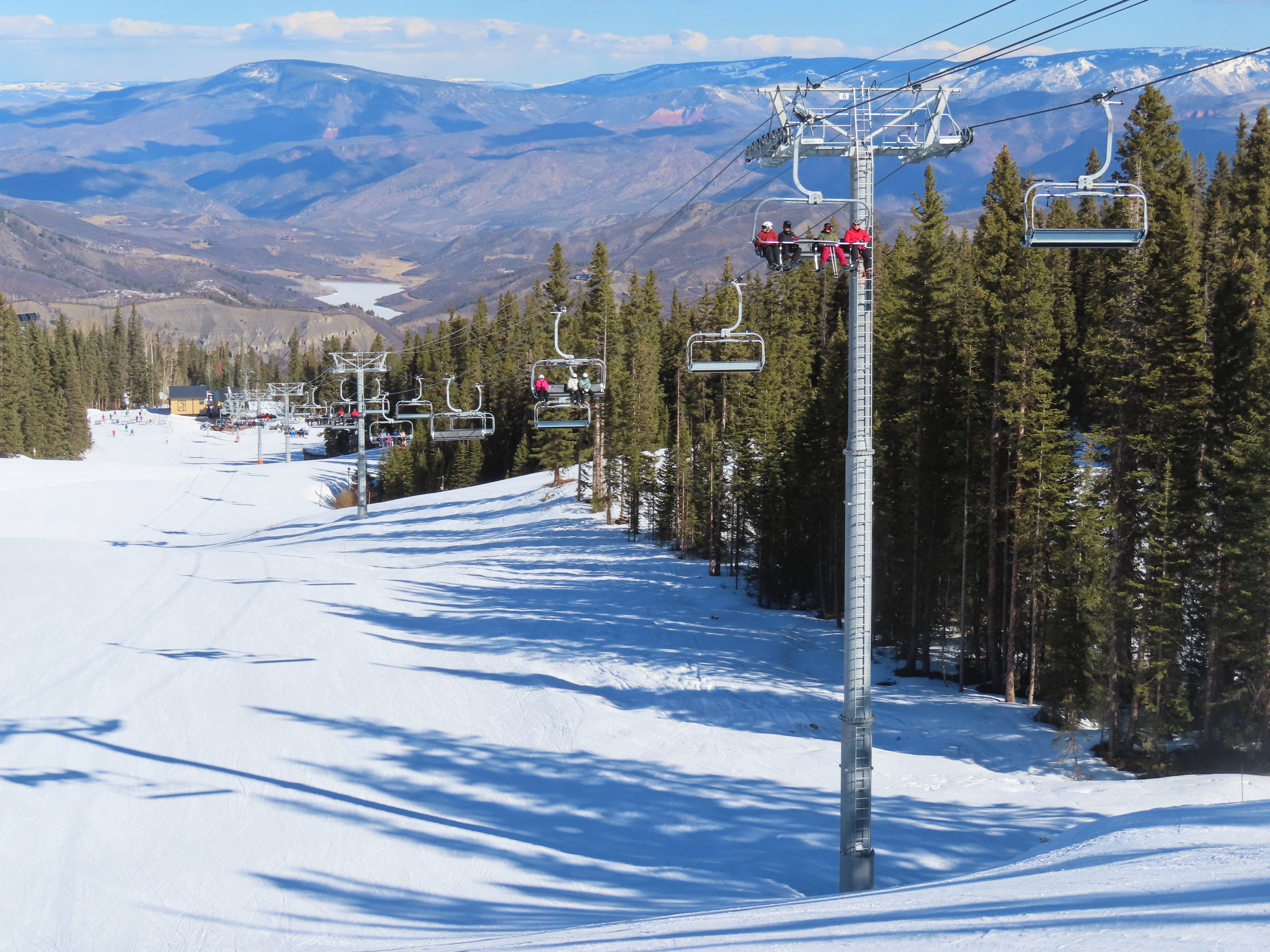 This detachable six pack replaced a detachable quad of the same name in 2025.Leitner-Poma LPA station and tower 1.Loading area and maintenance rail.View riding out of Elk Camp.Riding up the line at tower 10.View back down the lower line.Tower 12.Several towers are quite tall.Upper lift line.View back near the summit.Arriving at the drive station.Unloading area and drive terminal.Upper station overview.Terminal under cover.Breakover towers at the top.Looking up at the top station.View down the long lift line.Upper line.Middle part of the line.View down at tower 13.Long, consistent pitched alignment.Lower lift line.View up at T4.Return station overview.Lift overview and a large maintenance bay.