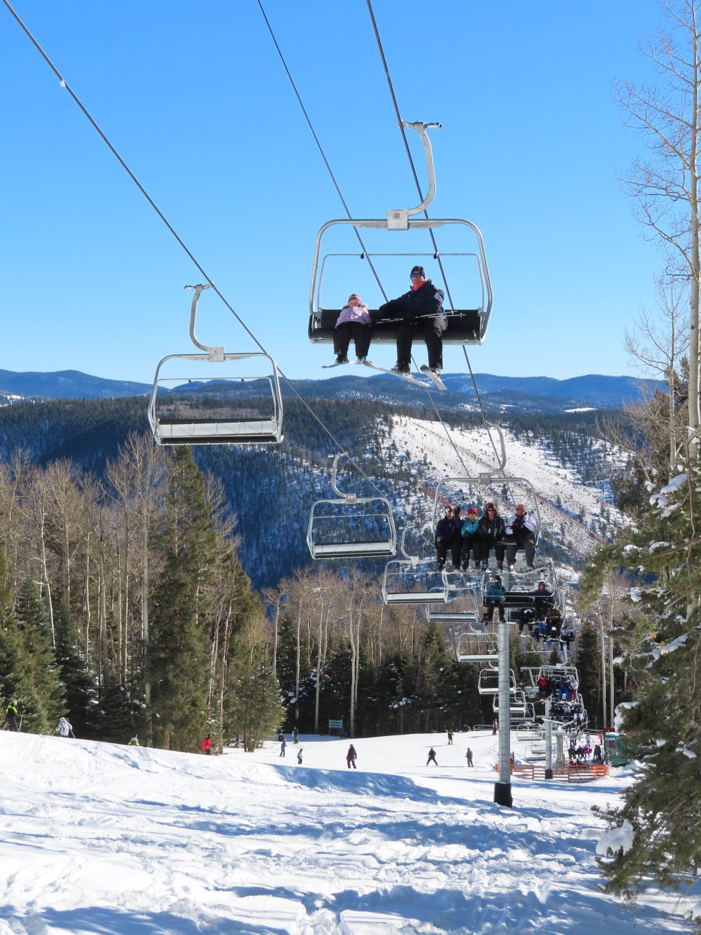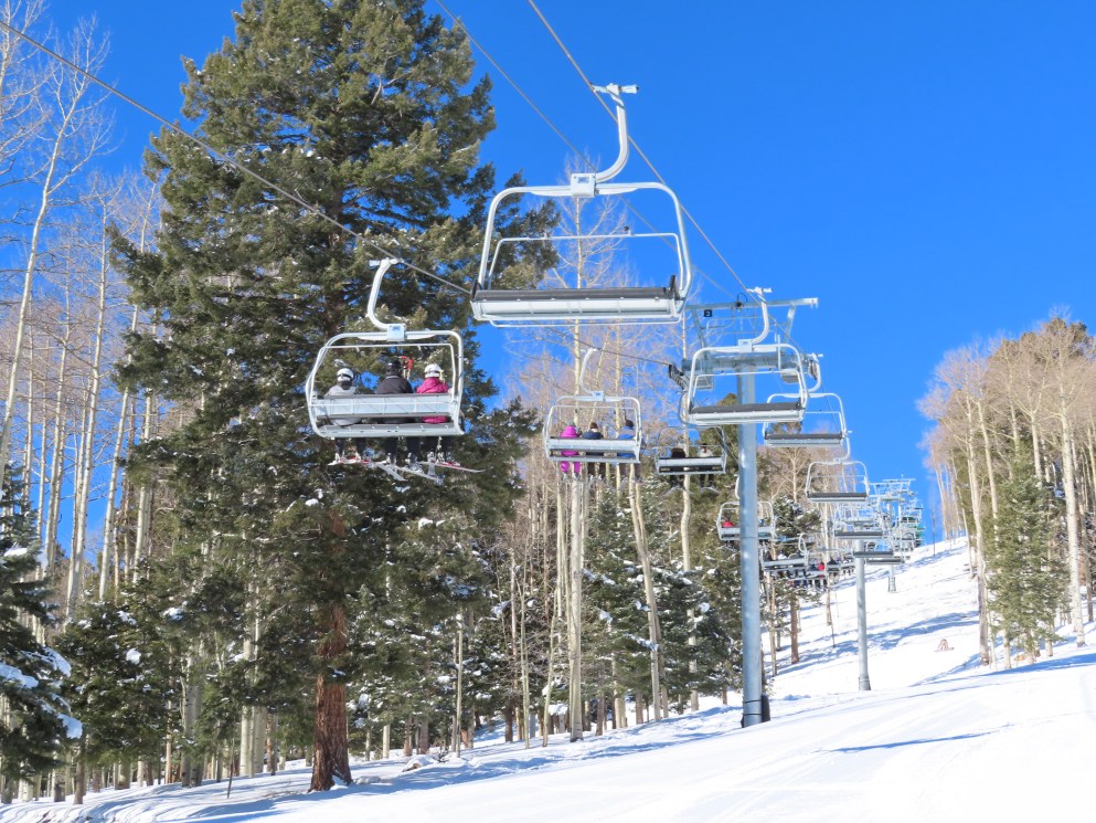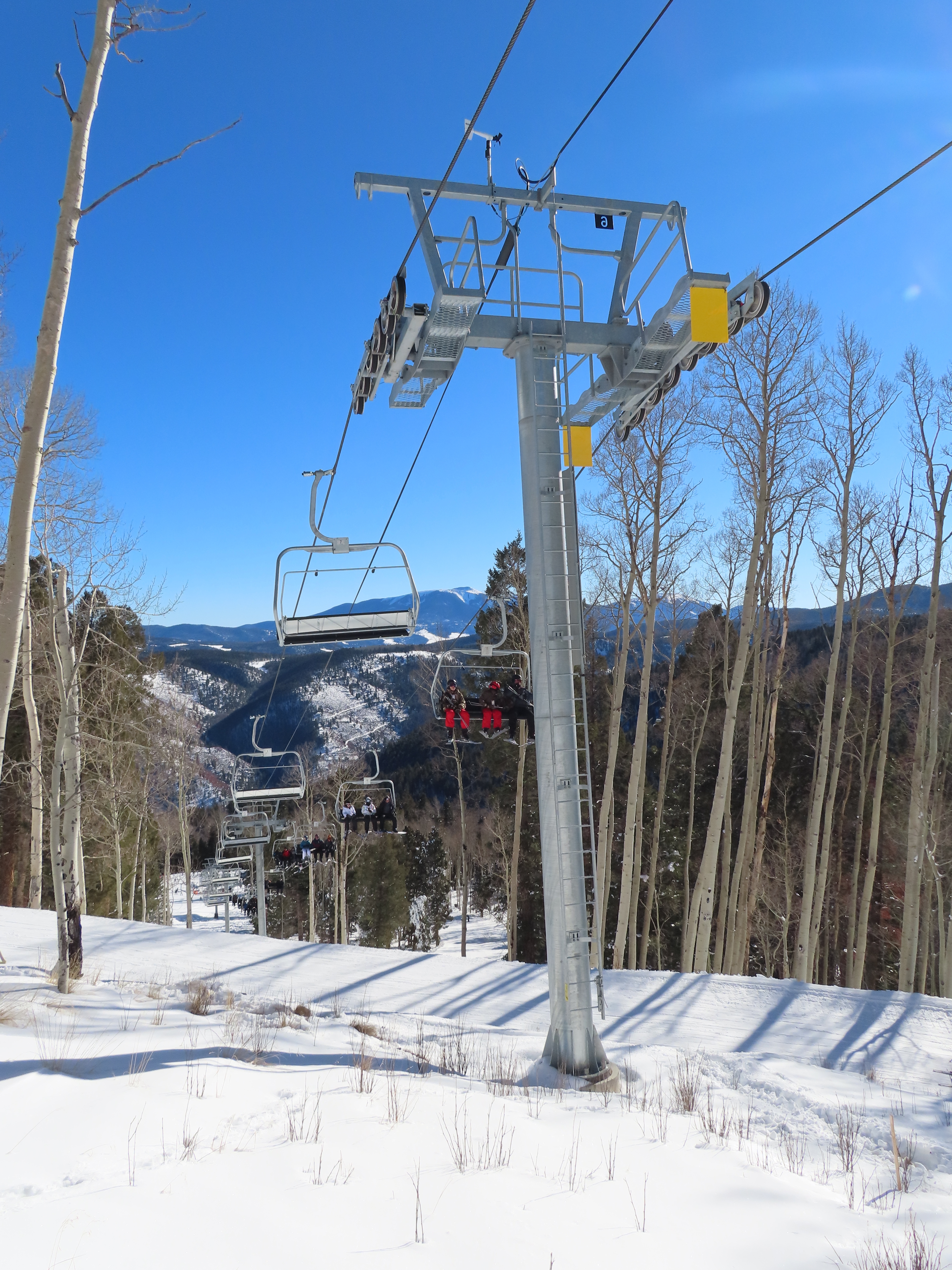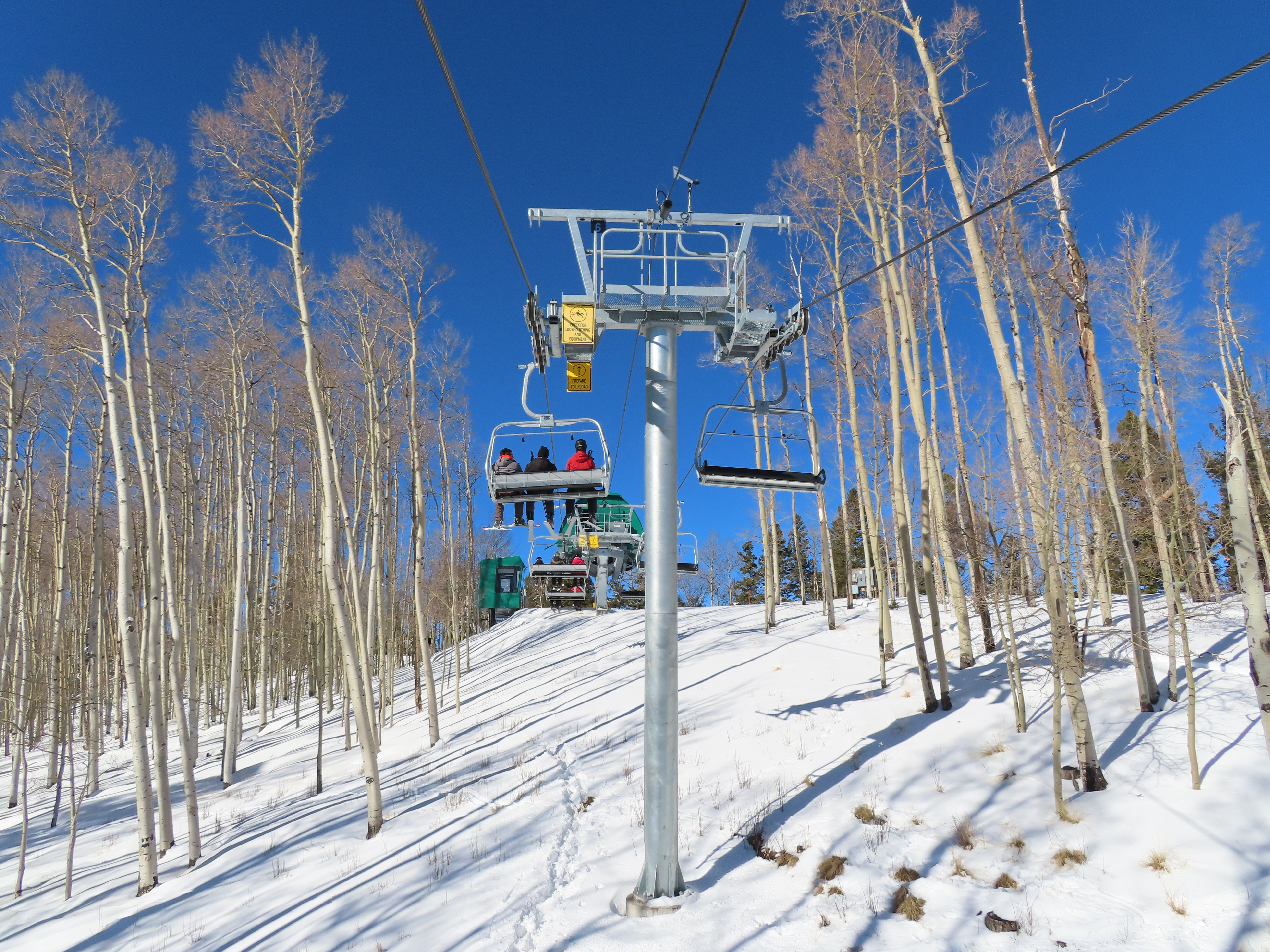 The Emerald chair services popular beginner terrain on the back side of the summit.This lift replaced a Riblet double in a longer alignment ending higher up.Tower 1.Lift overview.View back down the lift line.Nearing the top.Unloading area and operator house.Doppelmayr Alpen-Star terminal with the Silver chair in the background.Top tower integrated into the terminal.T6.