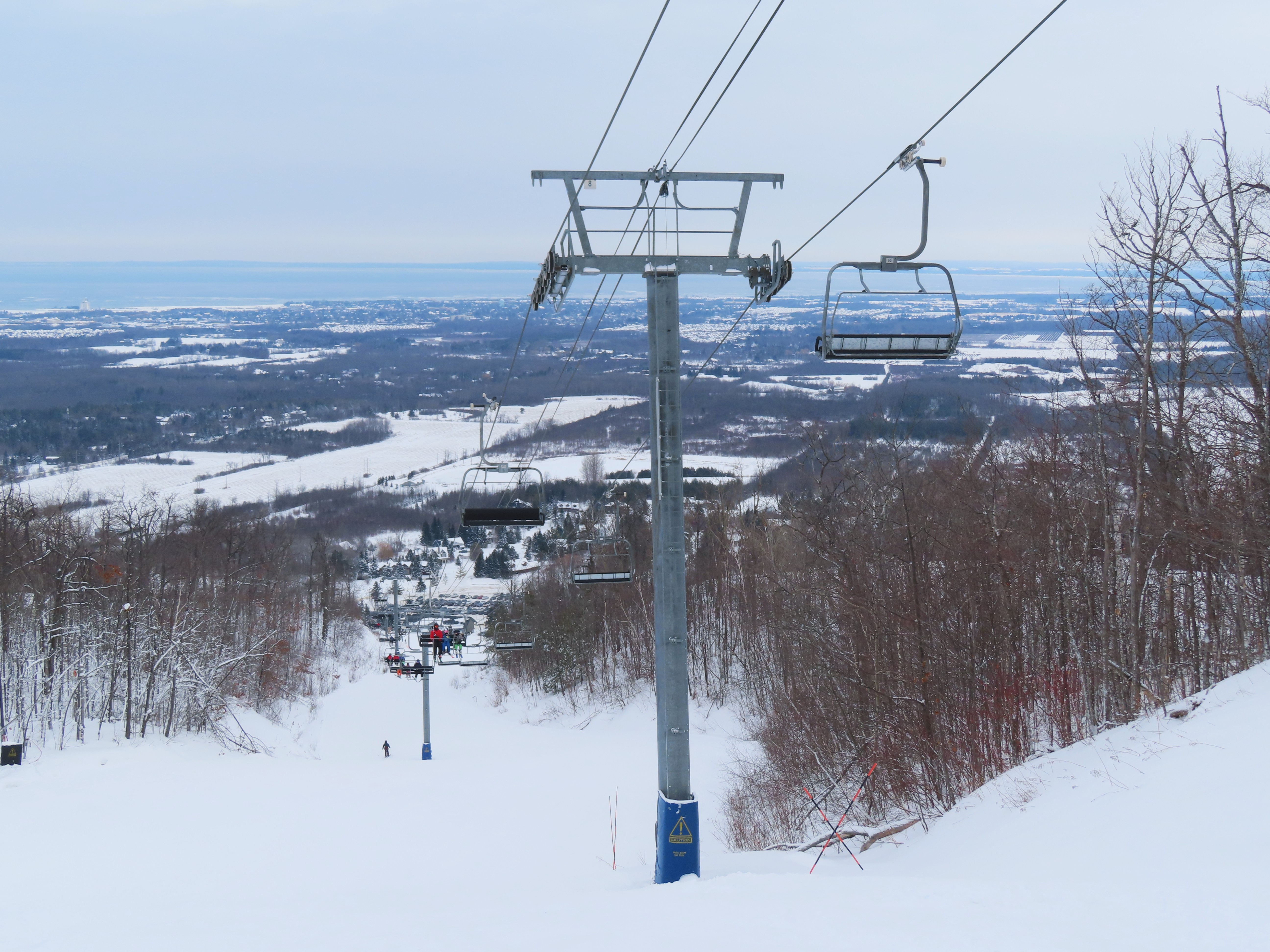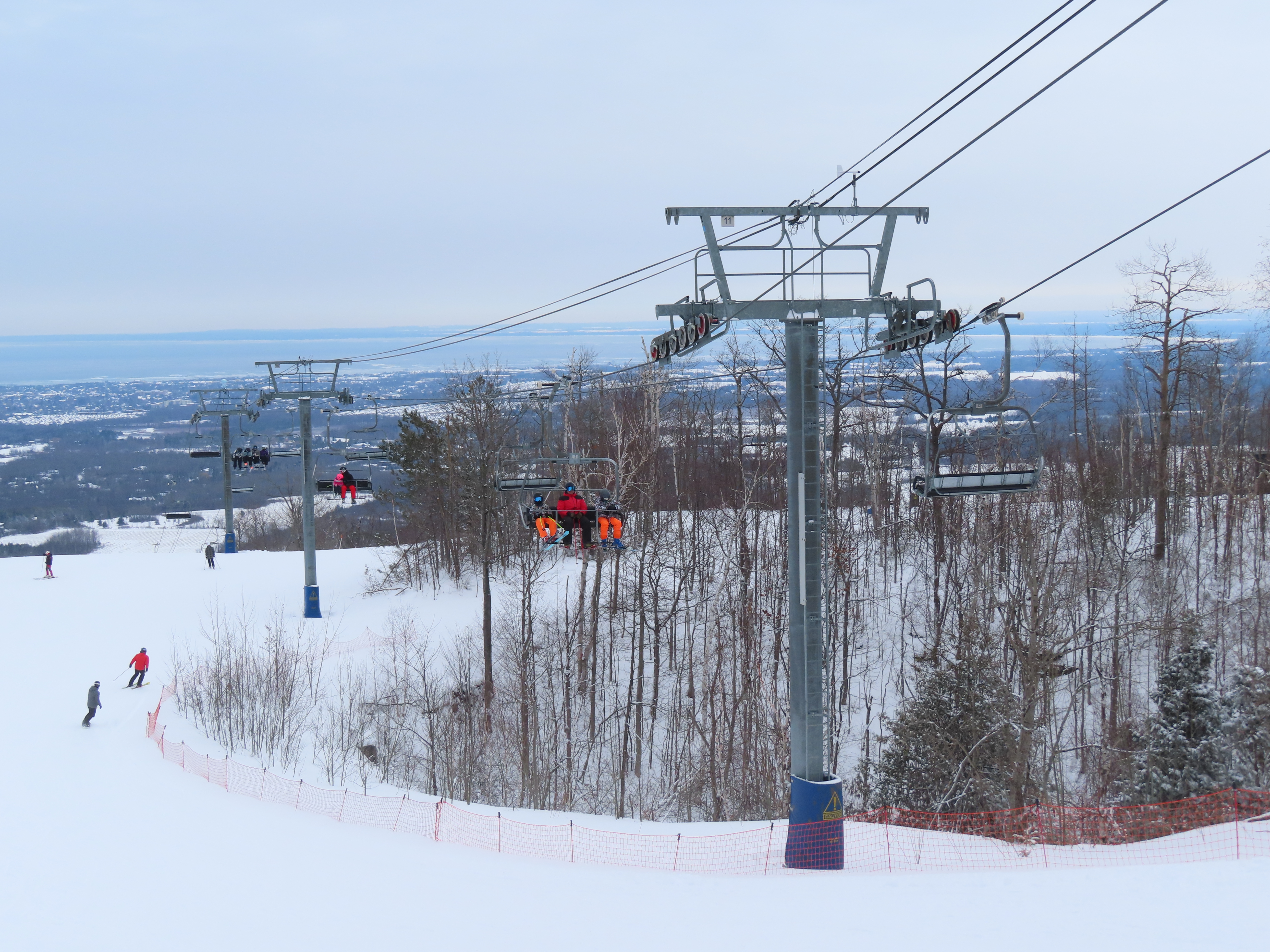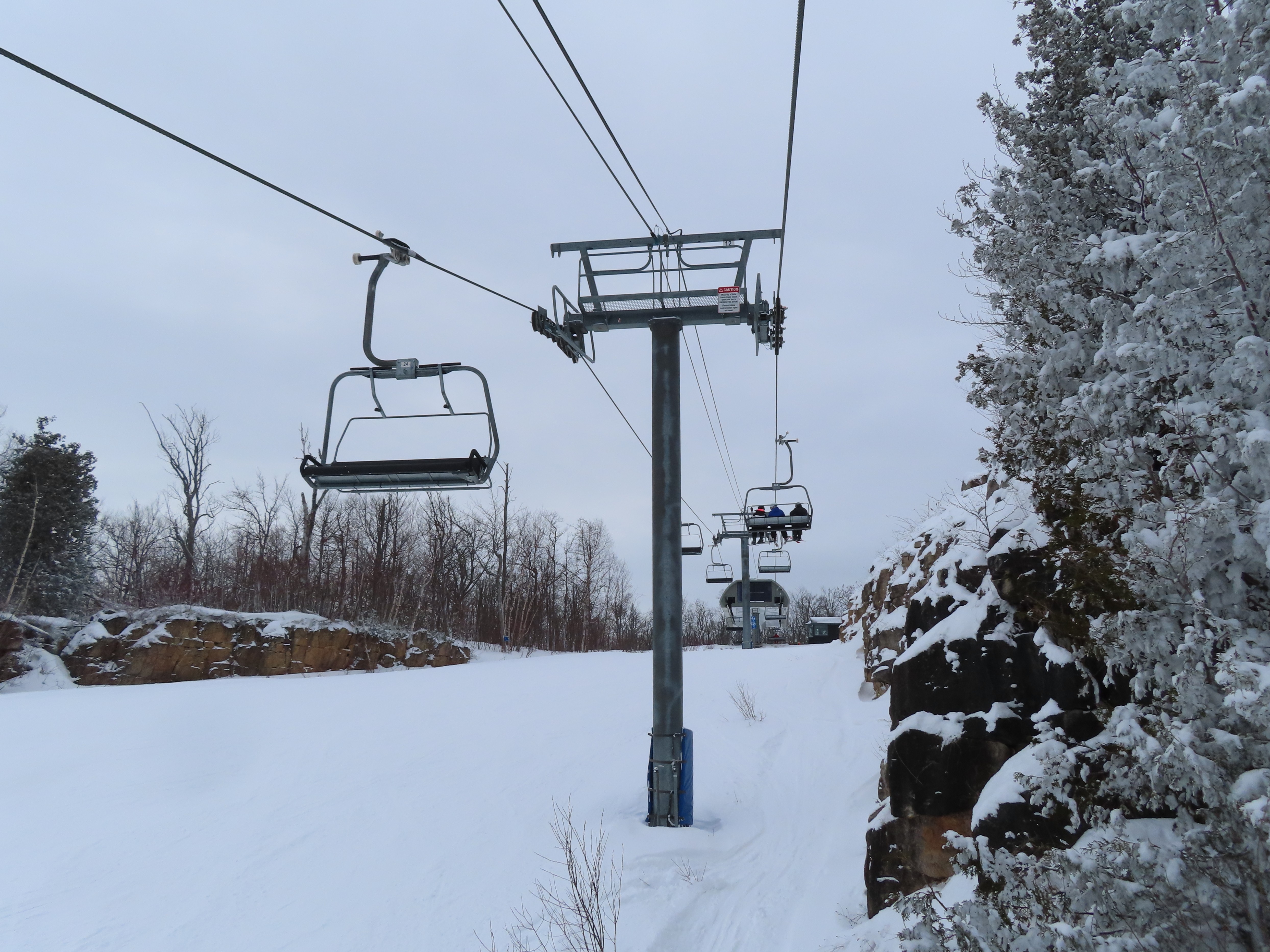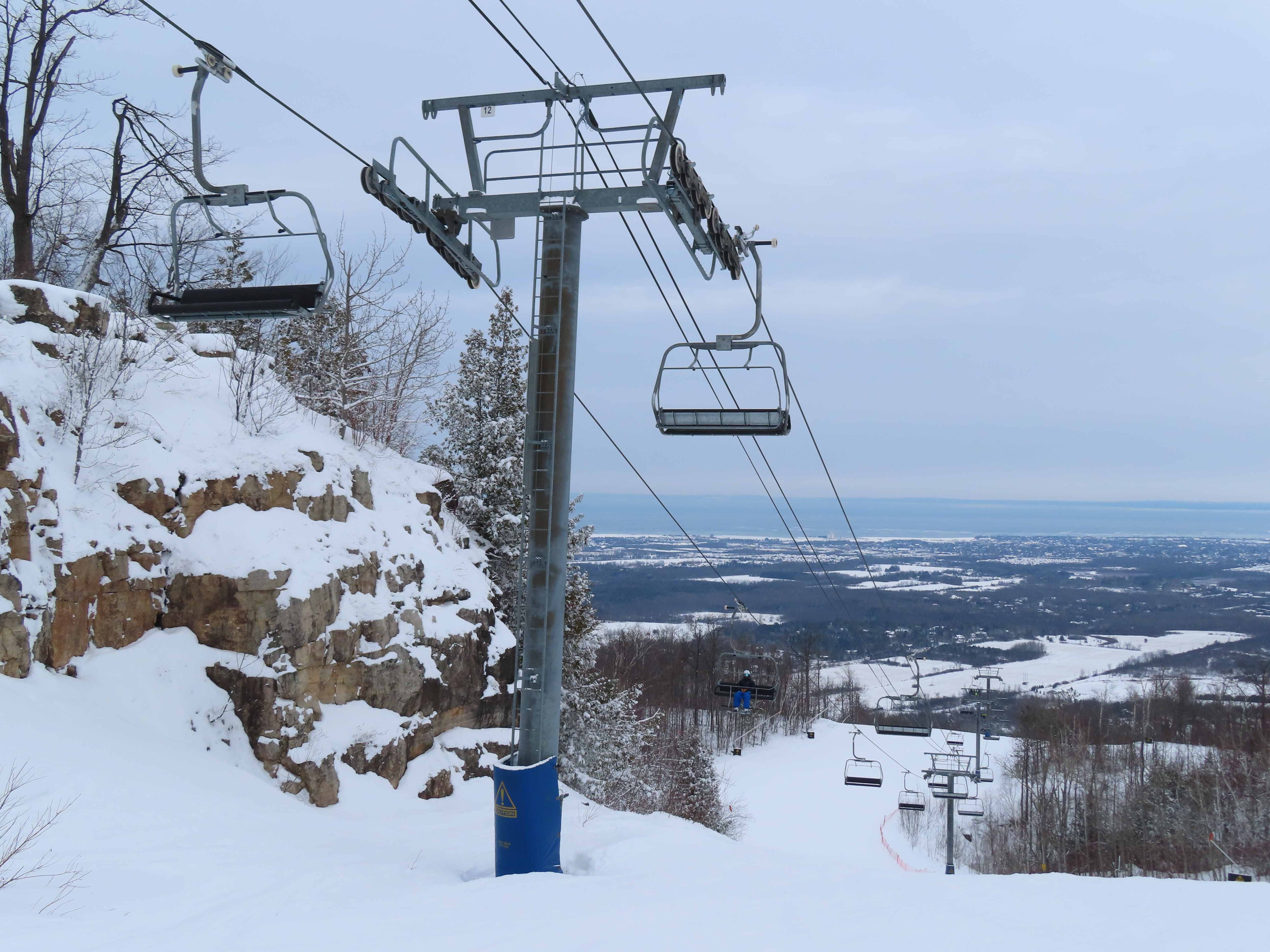 This UNI-G detachable services the Orchard pod.Side view of the drive station.View up the line from the base area.Tower 5.View back down the lower line.Middle section of the line.A convex section of the line.Tower 9.Hold down tower due to varied topography.Nearing the summit.Arriving at the return.Unloading area.Upper station overview.Another view of the top station.View from the summit.Looking down at tower 11.Tower 8.Lower lift line.Combination assemblies.Side view of the drive.Bottom station overview.Control cabinets in the bottom operator hut.Inside the drive-tension station.Connection between the motor and gearbox.Tension and brake pumps.Controls inside the drive terminal.Outside operator controls.