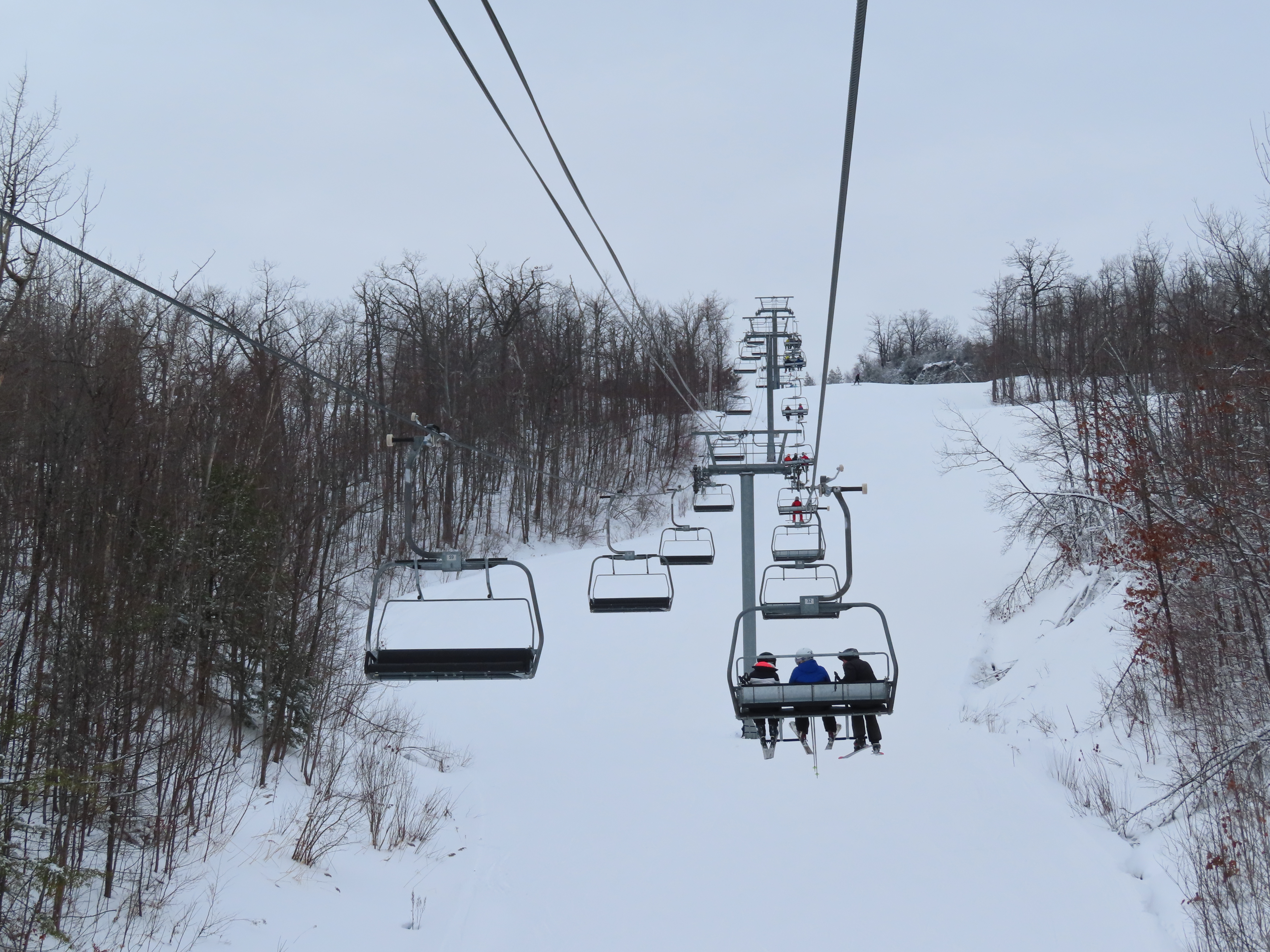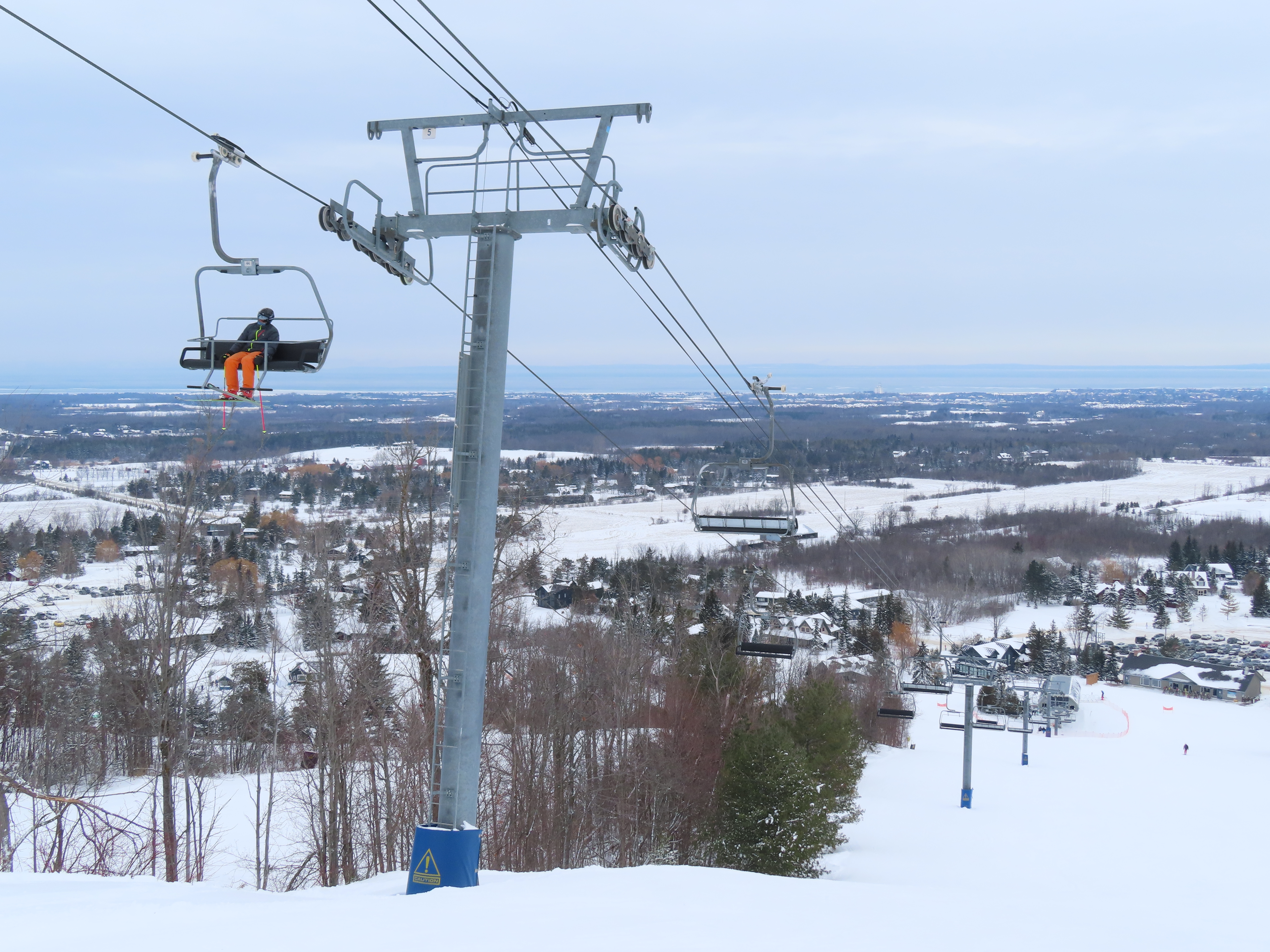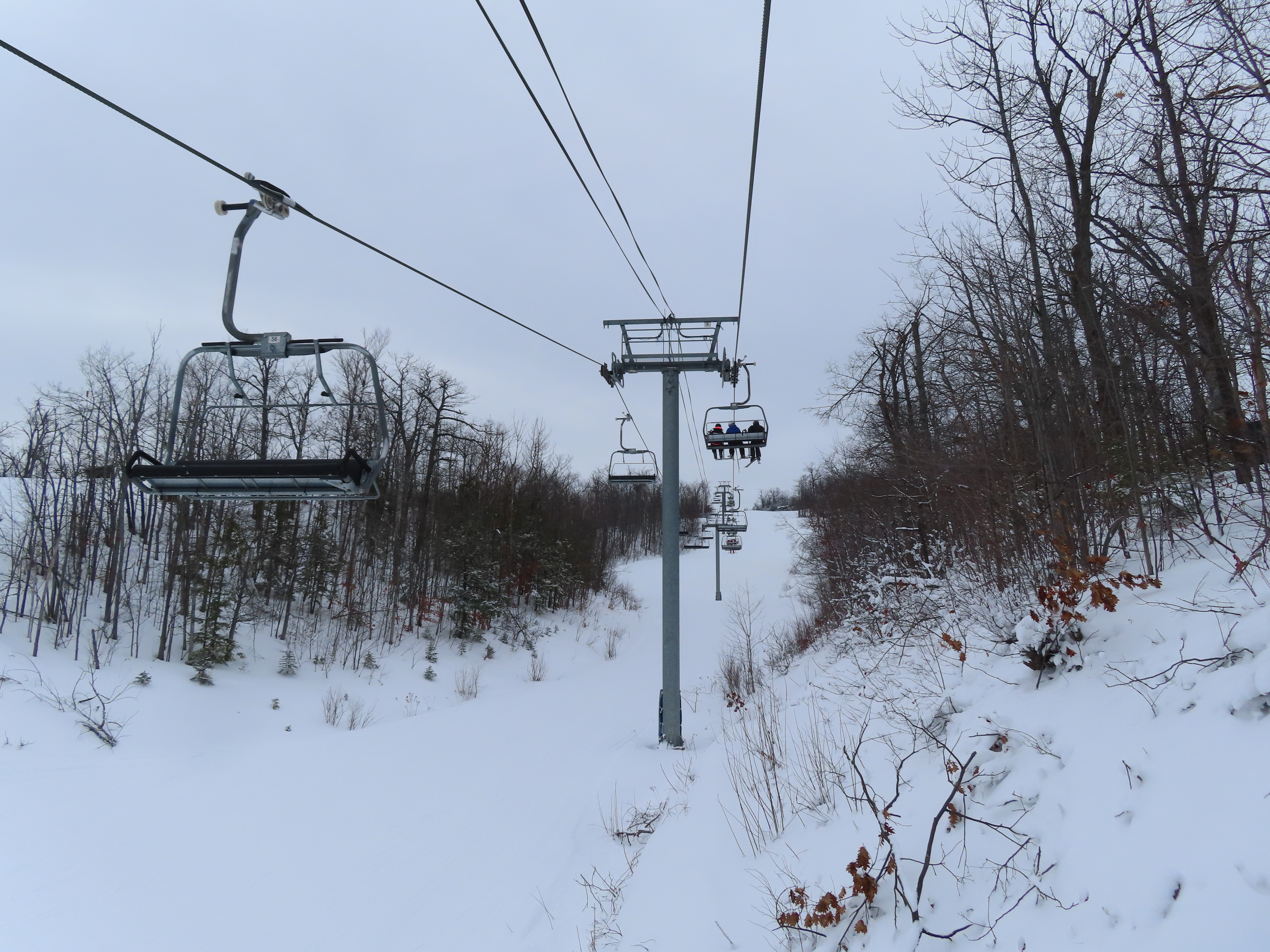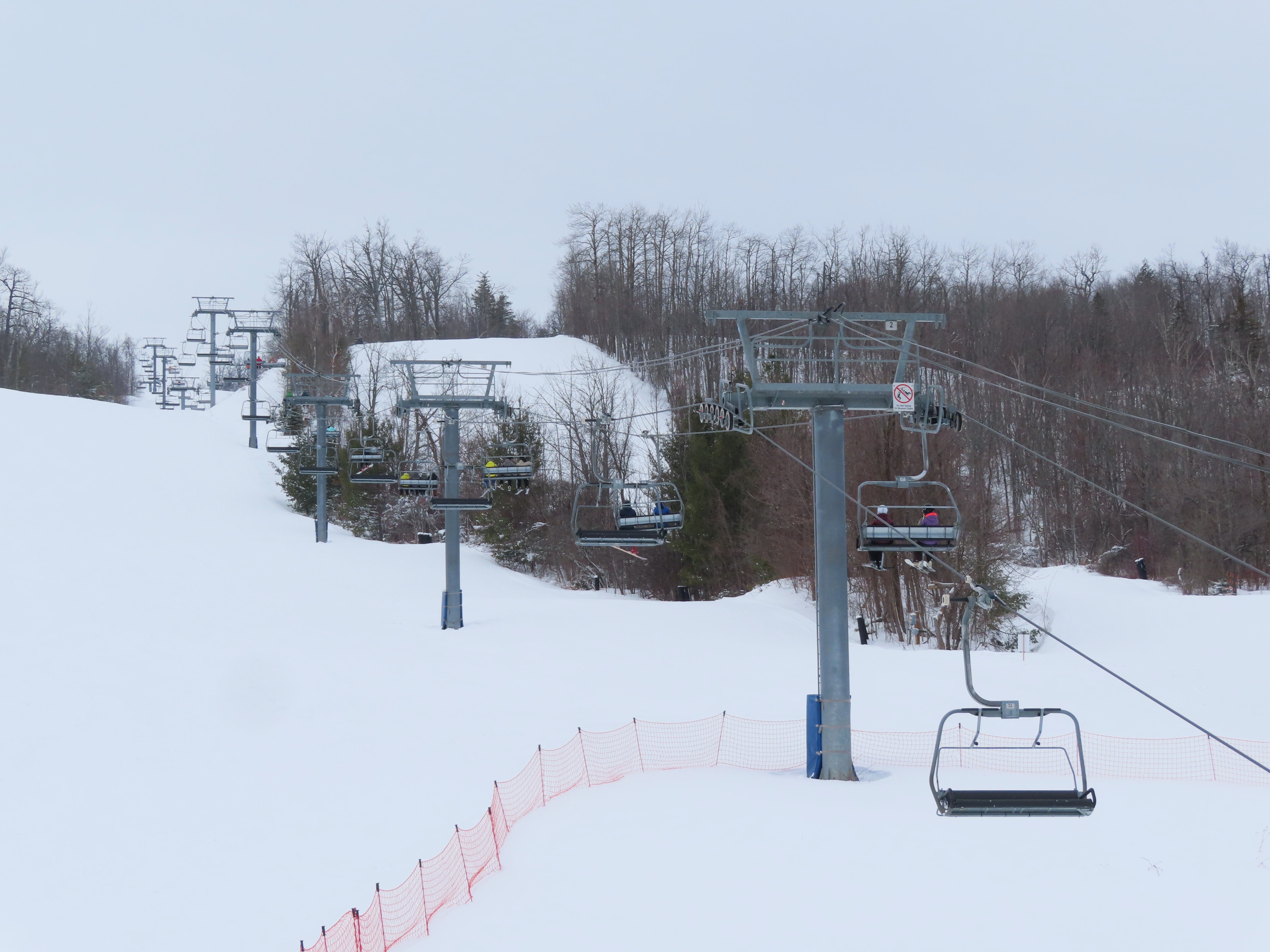 This UNI-G detachable services the Orchard pod.Side view of the drive station.View up the line from the base area.Tower 5.View back down the lower line.Middle section of the line.A convex section of the line.Tower 9.Hold down tower due to varied topography.Nearing the summit.Arriving at the return.Unloading area.Upper station overview.Another view of the top station.View from the summit.Looking down at tower 11.Tower 8.Lower lift line.Combination assemblies.Side view of the drive.Bottom station overview.Control cabinets in the bottom operator hut.Inside the drive-tension station.Connection between the motor and gearbox.Tension and brake pumps.Controls inside the drive terminal.Outside operator controls.
