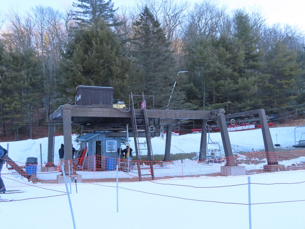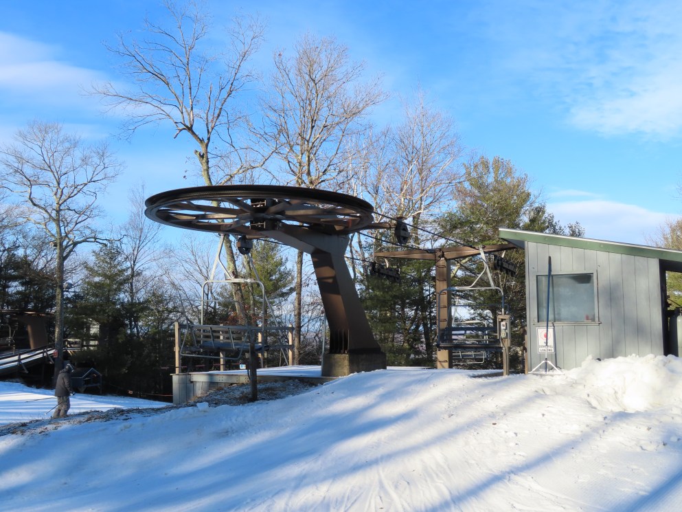 As for 70s Borvig triples, some have the squared off bails while others have bends in them. Others with squared off bails include the former Summit Triple at Hidden Valley NJ, the Tamarack Lift at Stratton, VT (Although it has received new chairs), and the Hurricane lift at Pat’s Peak, NH
