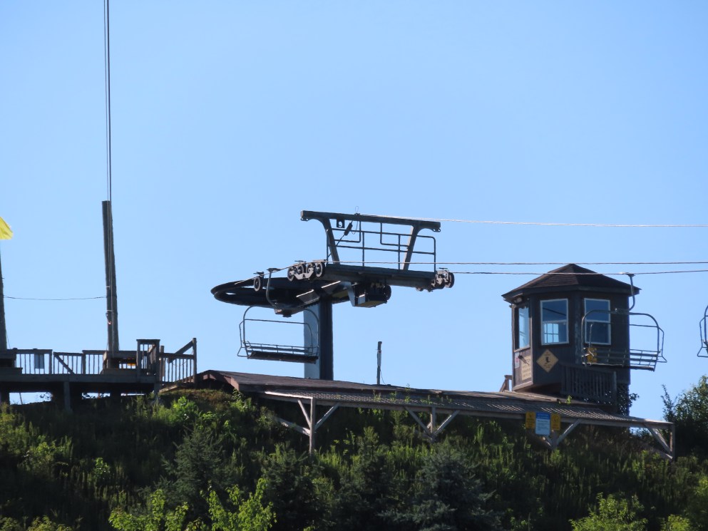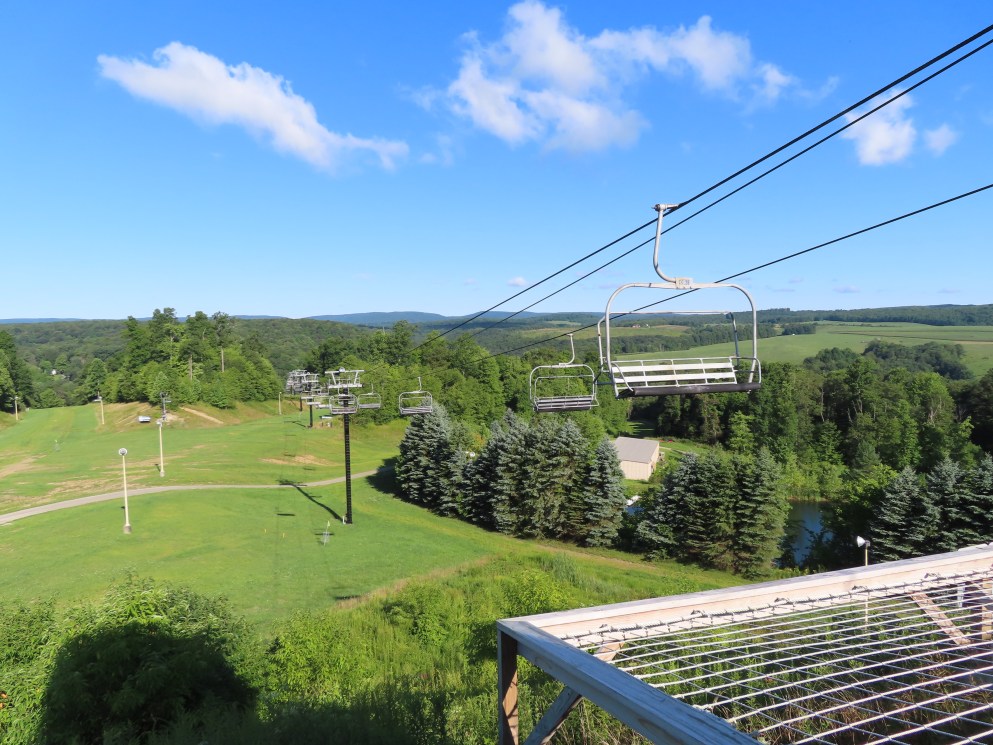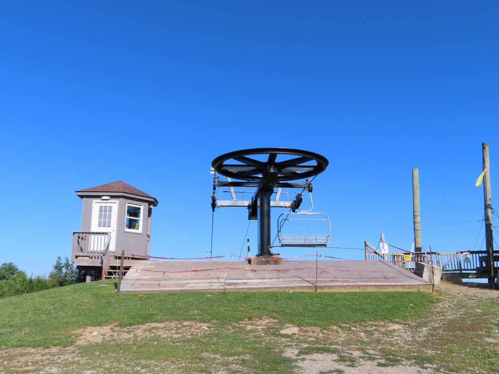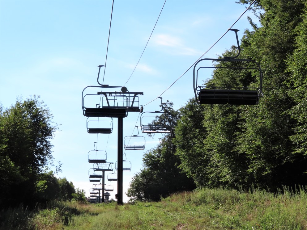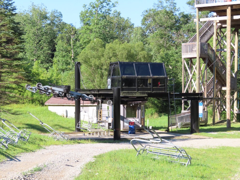 This ski area opened in 1996 and is exclusively for overnight guests of Nemacolin Woodlands Resort.Top unloading ramp.The upper half of the the lift line is fairly flat.Tower 6.View up the lift line.Sprint drive terminal.Loading area.There is a zip line above the bottom terminal.Summit terminal.Tall tower 8.View from the summit.
