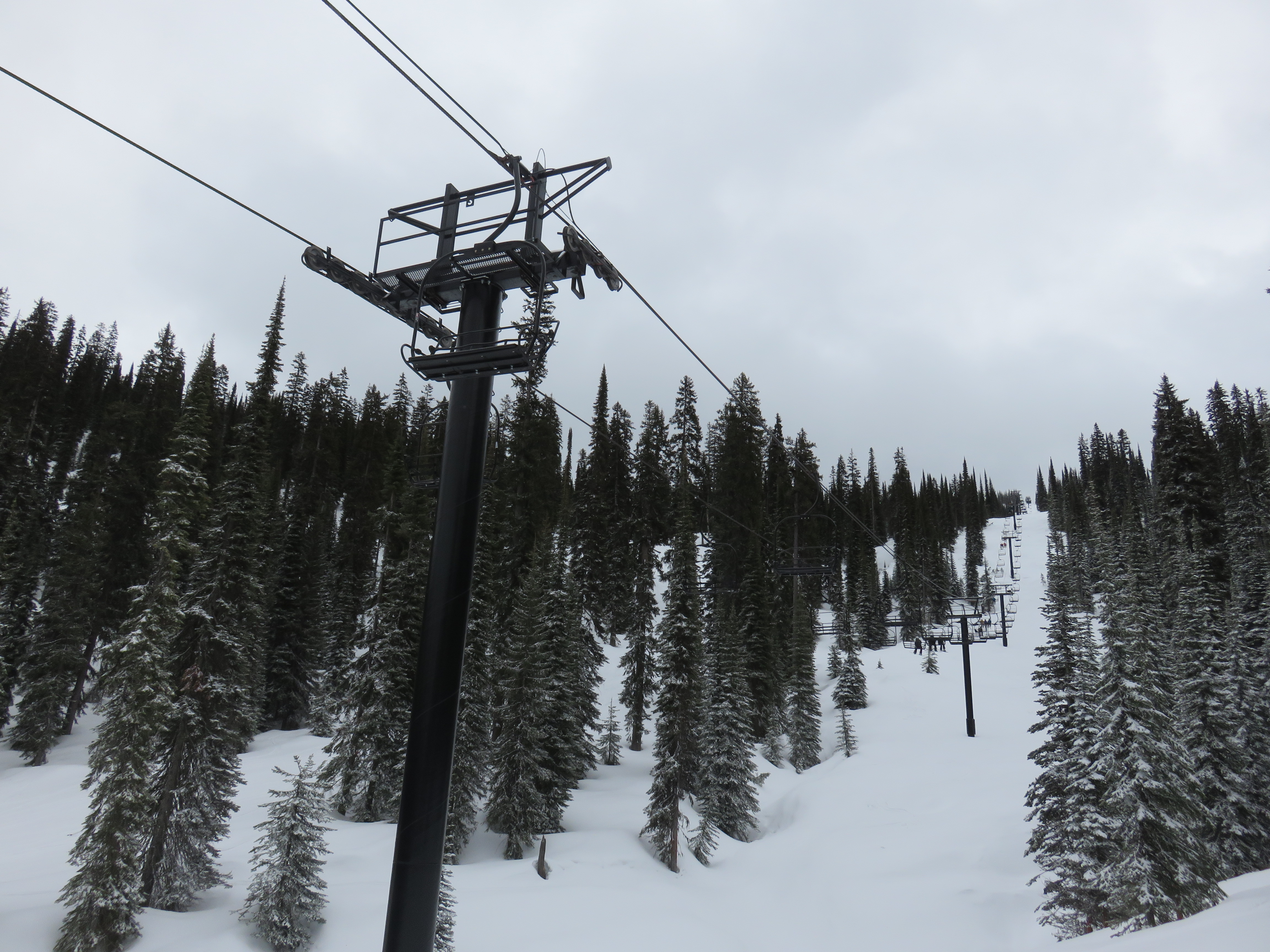 View up the lift line.Riding up the line.Looking back down.Yan tower 12 with added catwalk.Doppelmayr tower re-used from Glacier Chaser.Tower 15.Arriving up top.Unloading area.Drive terminal re-located from Kimberley.View down the line.Upper lift line.Lower section of the line.Bottom terminal from above.Lift overview.Loading area.
