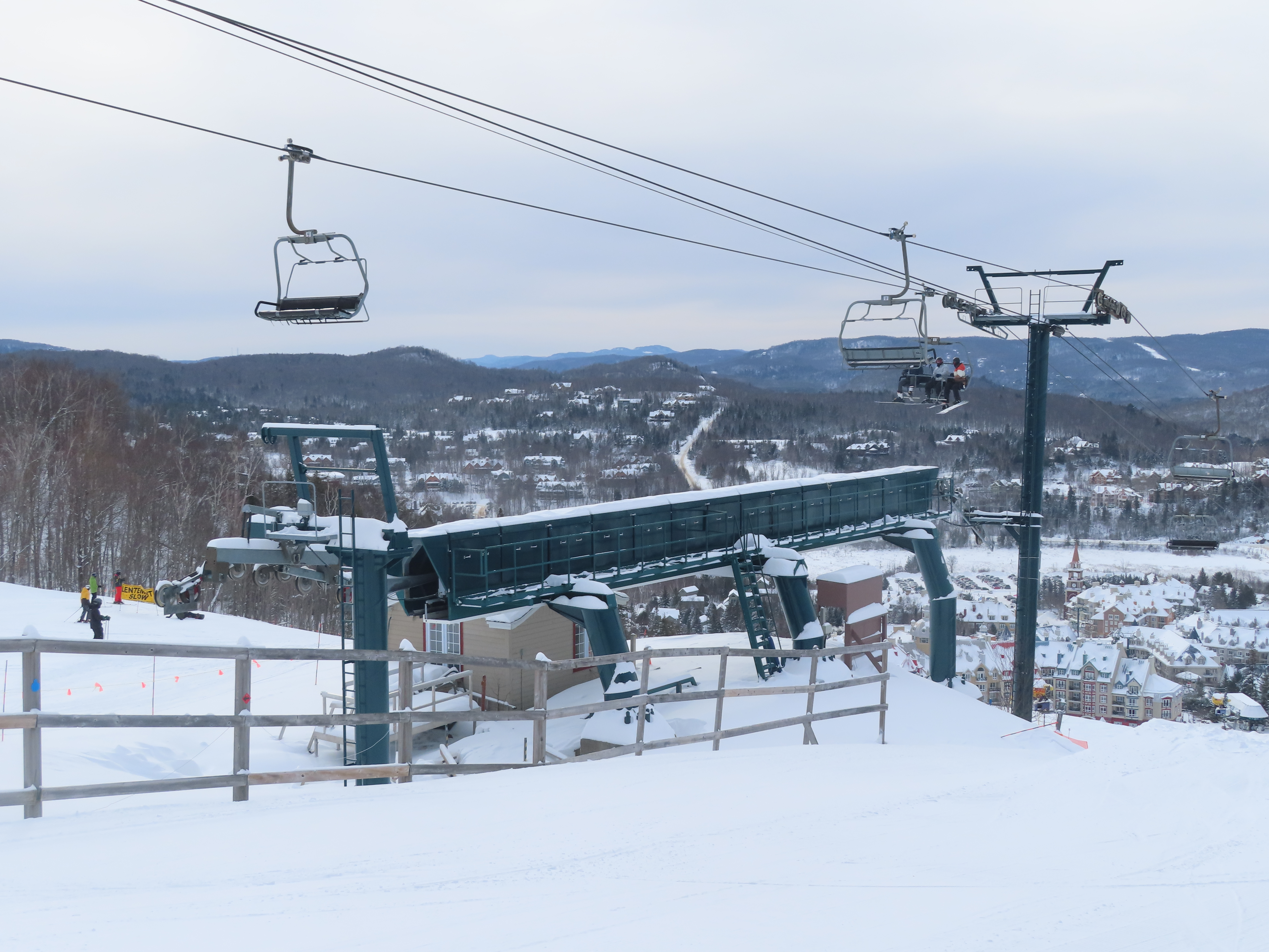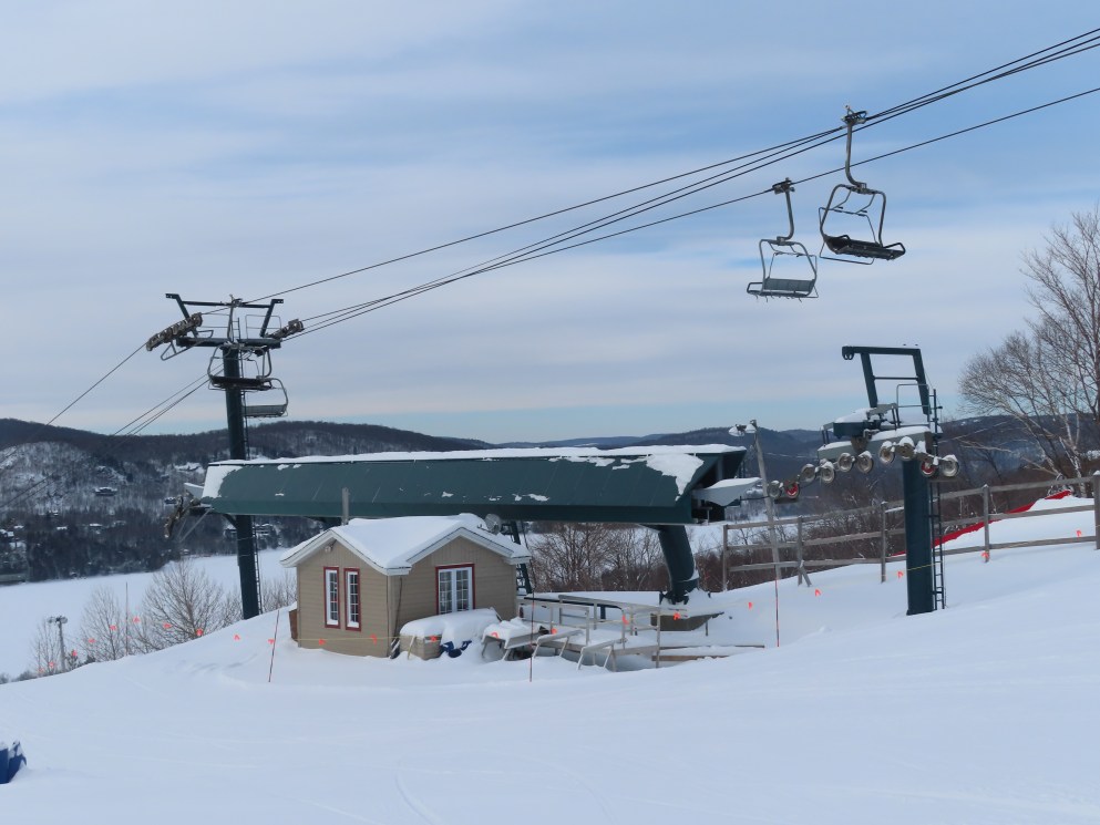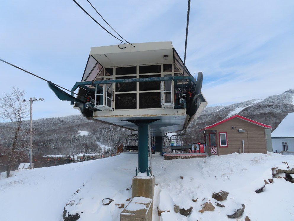 The mid station is not original. It was built in 2004 when the luge opened. However, at least one of the lifts previously in this vicinity did have a winter use mid station but it was uphill of the current one, just before the steep climb. I wonder if the tower before it was always that height or if it was lengthened for the installation of the mid station. The bottom terminal is placed uphill from where the original triple started to make more room for the village. What’s also odd is that it has the 80’s style base plates which makes me think they reused footings from the triple. Duncan has the newer style ones and was built 3 years earlier.