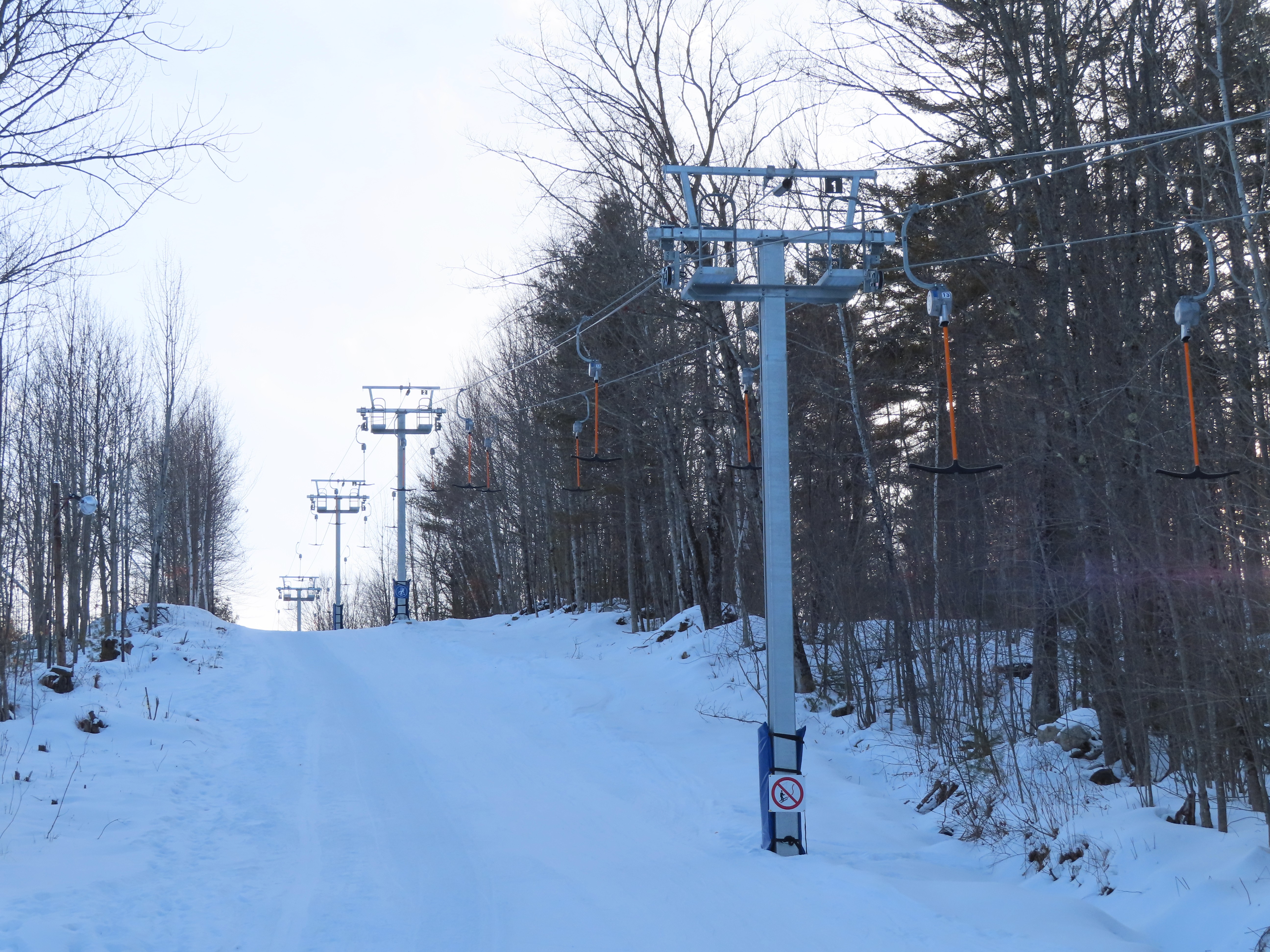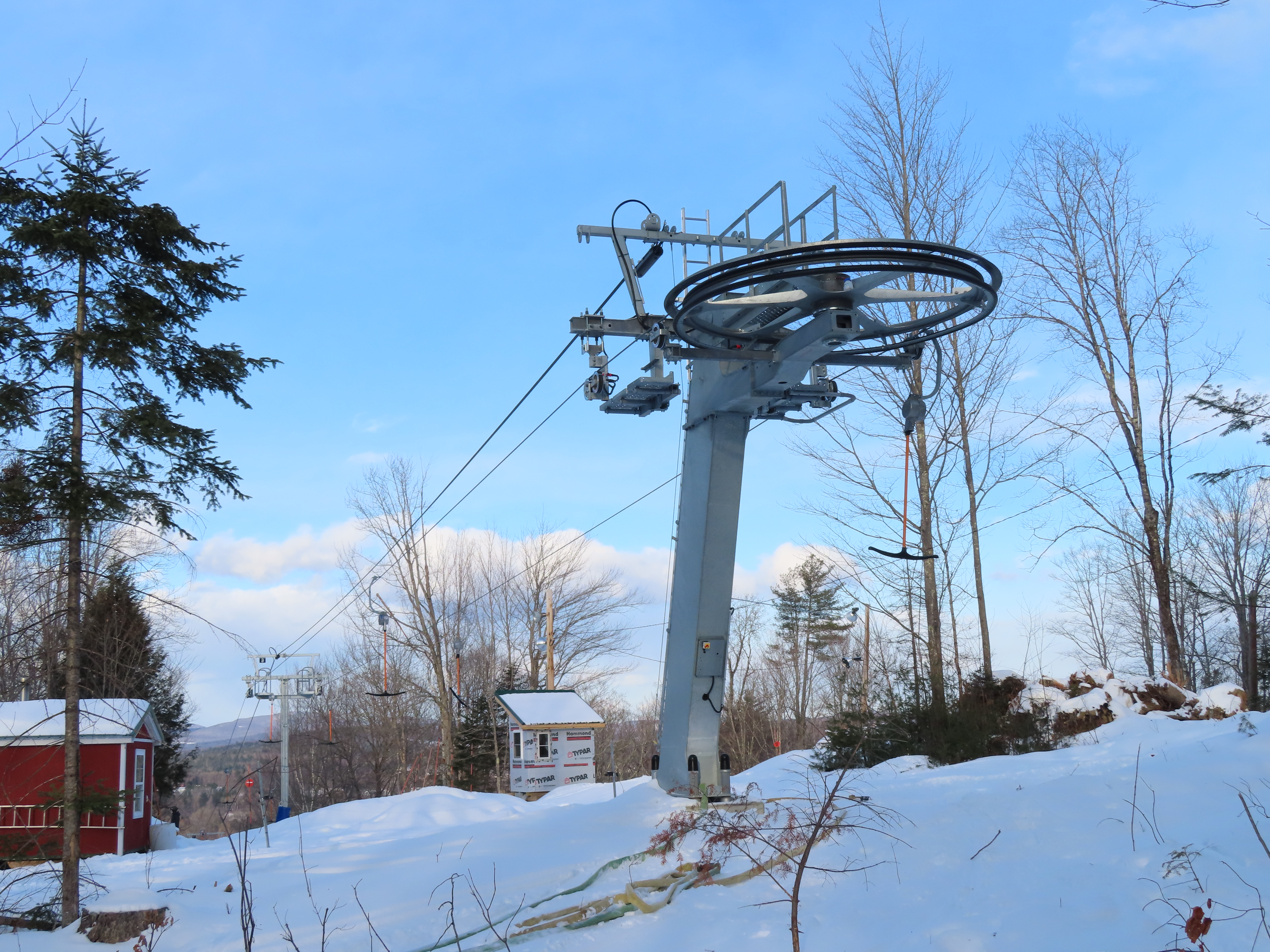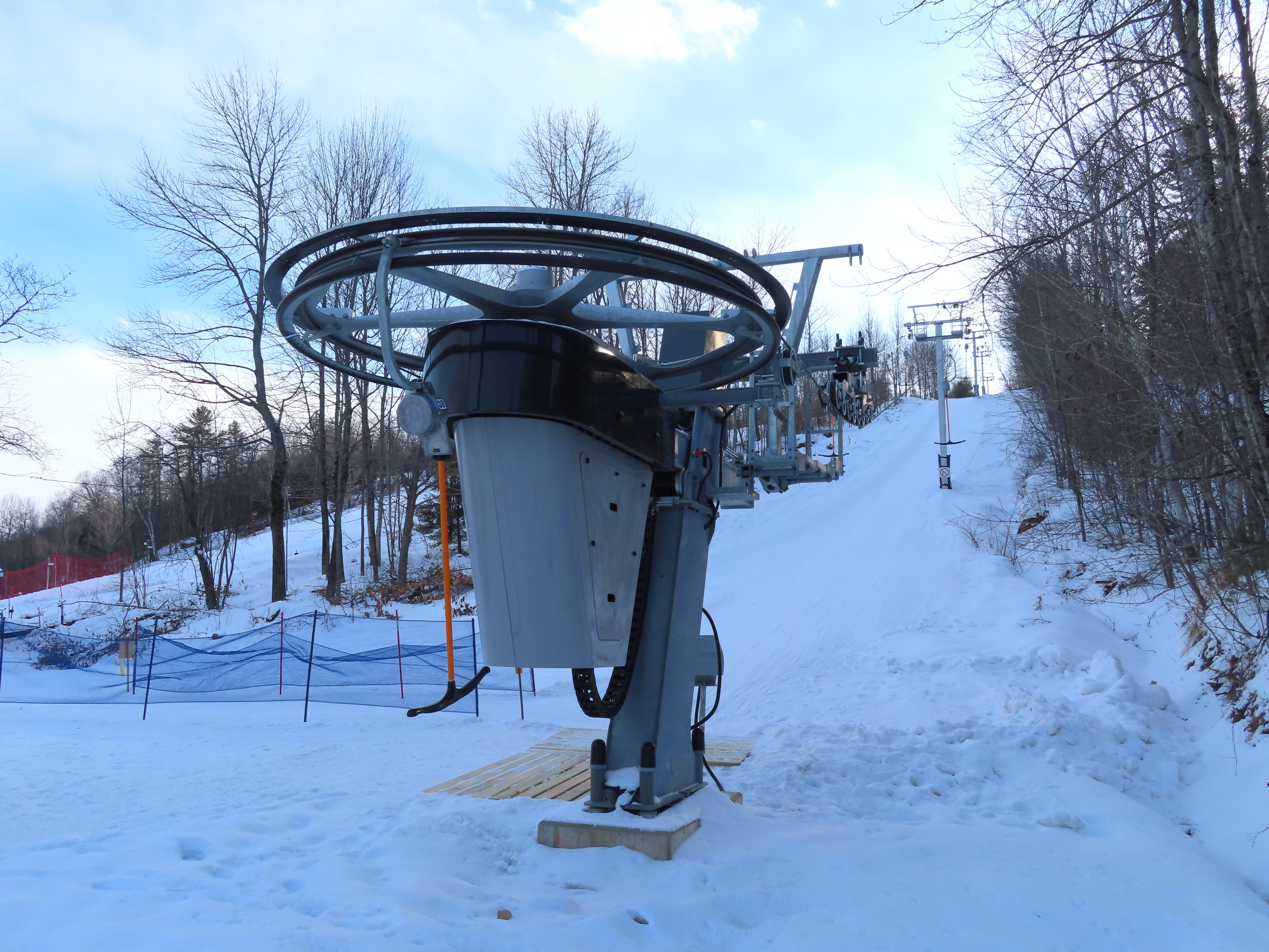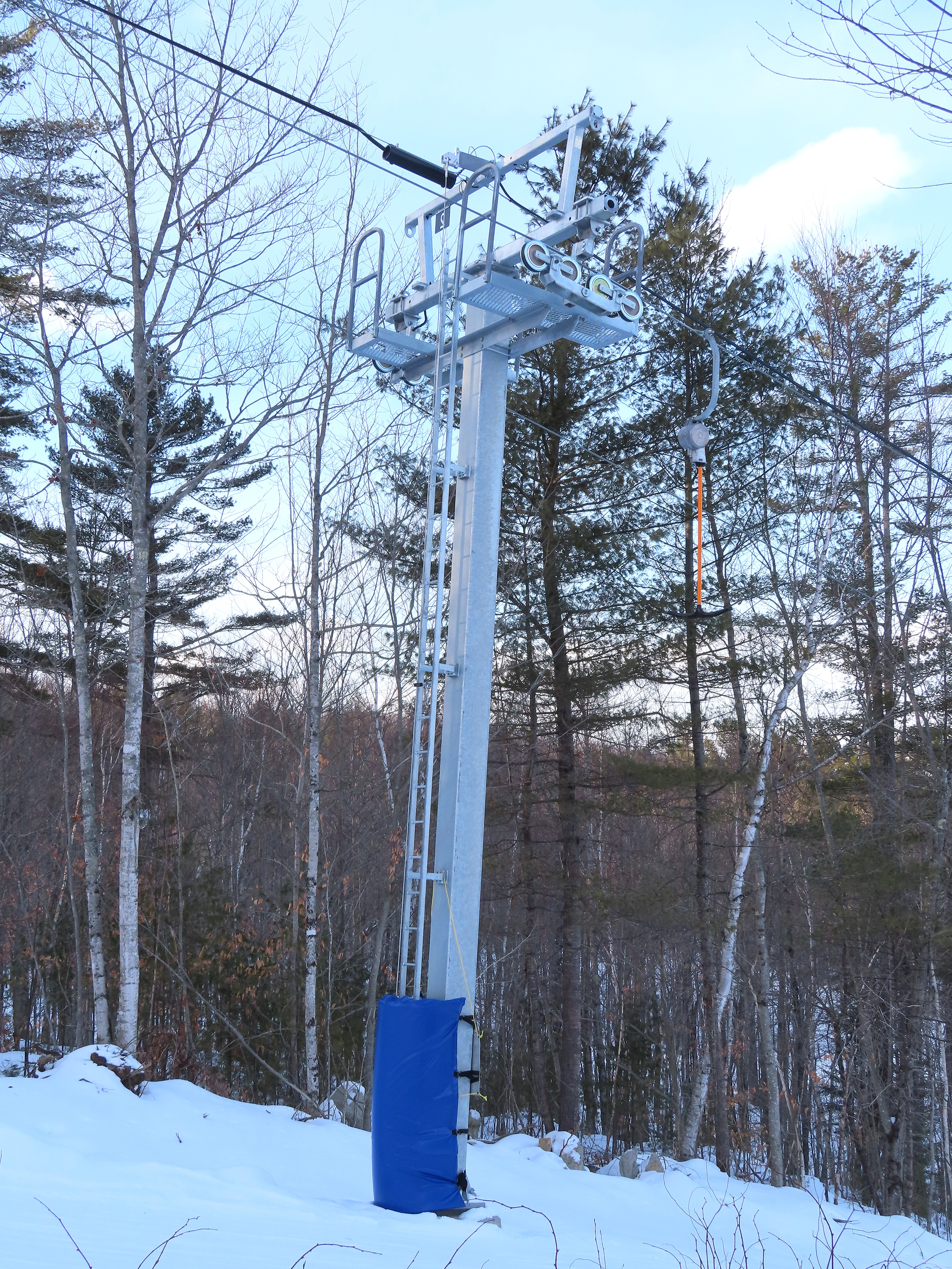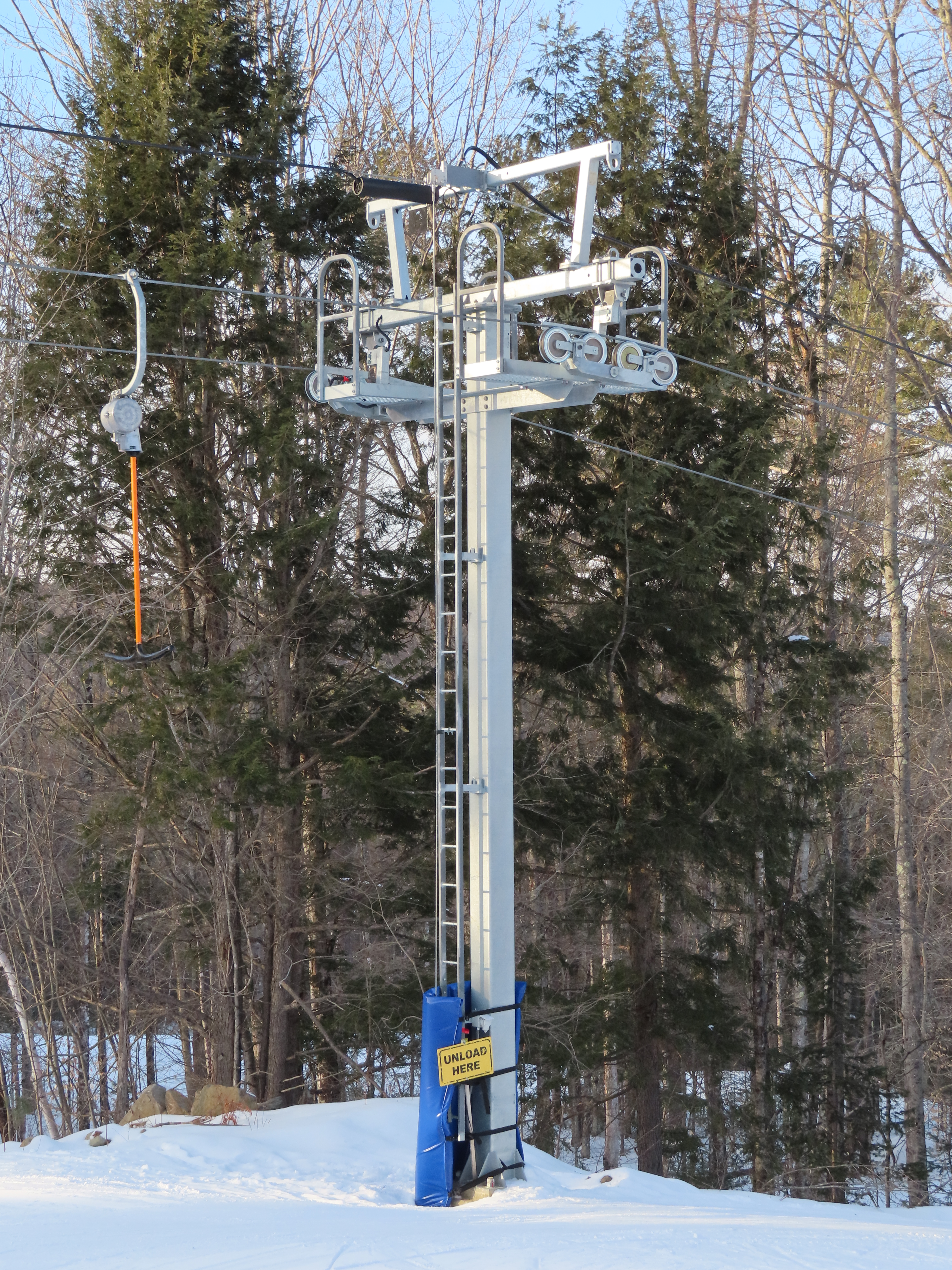 This is the first Doppelmayr S-Line T-Bar in North America.Lift overview.Doppelmayr stat sign.Side view of the bottom station.View up from the base.Operator controls.Tower 1.View down the line at tower 6.Upper station overview.A much older T-Bar used to run in this alignment.Tower 3.Upper half of the line.Side view of T2.Unload point at tower 6.Fixed return up top.