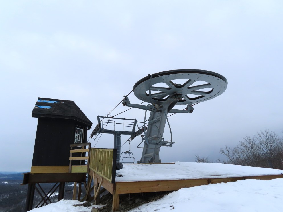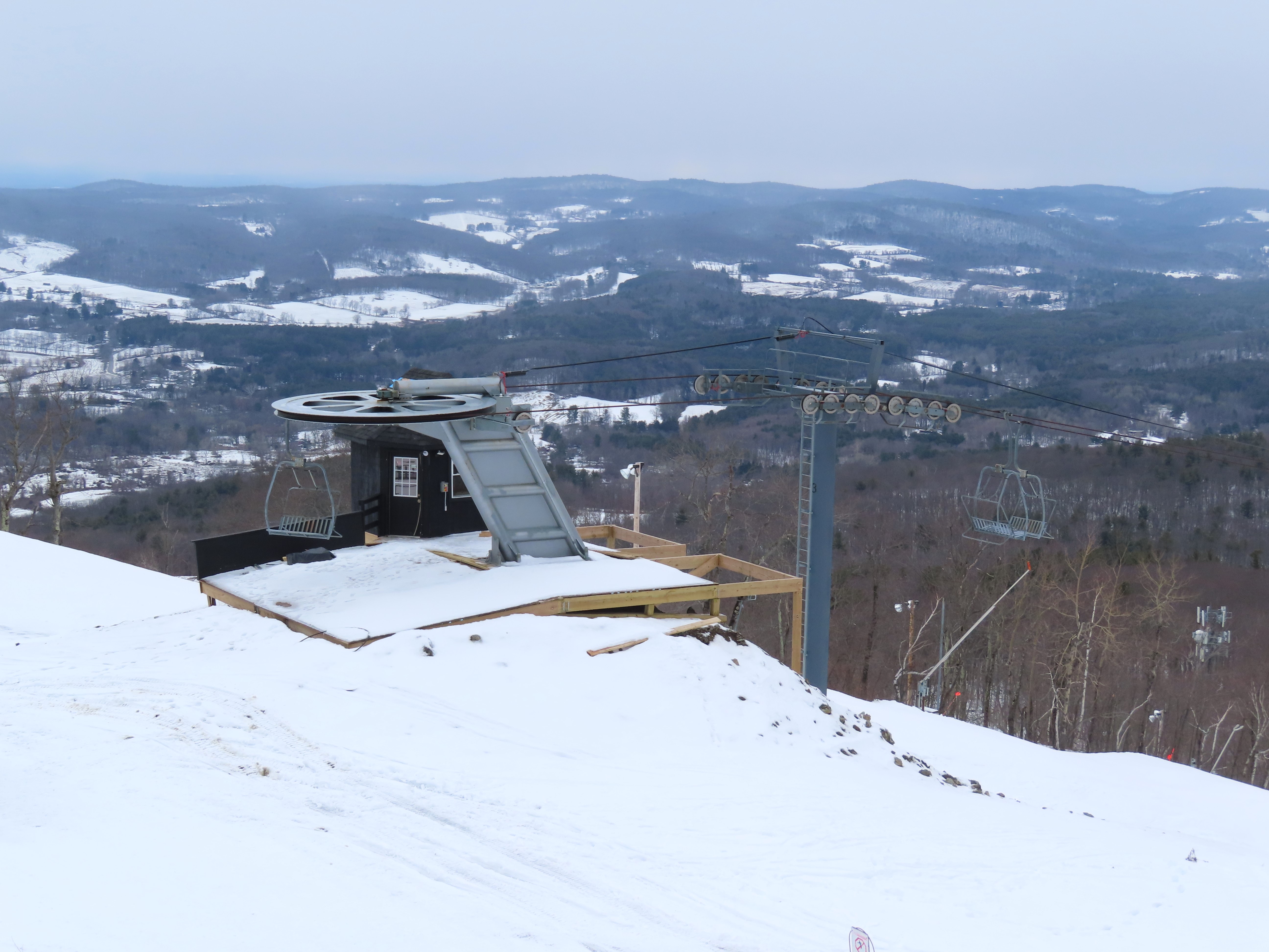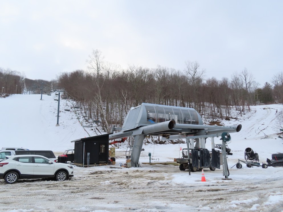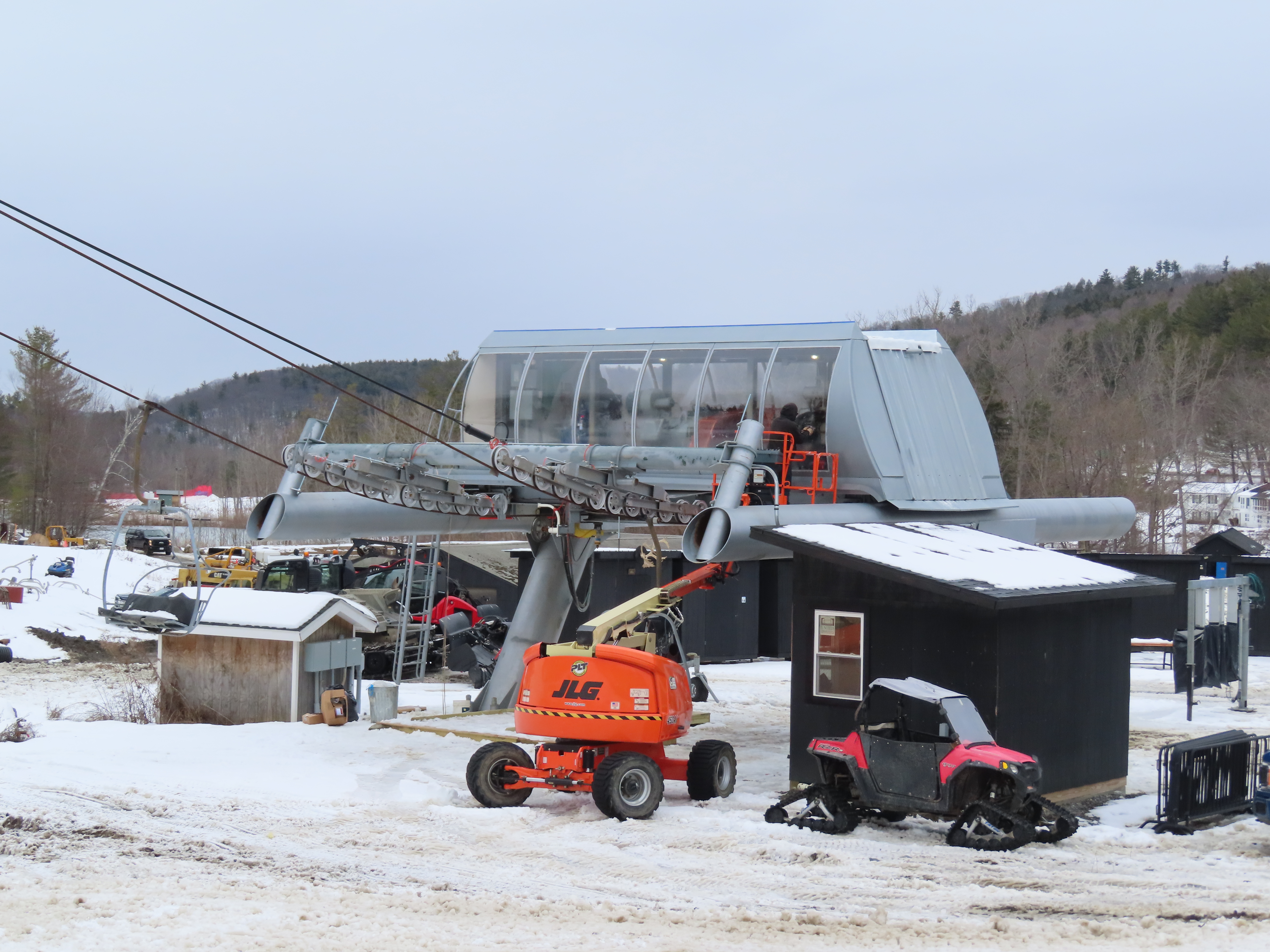 Another view of the SkyTrans top station on an otherwise Poma lift.