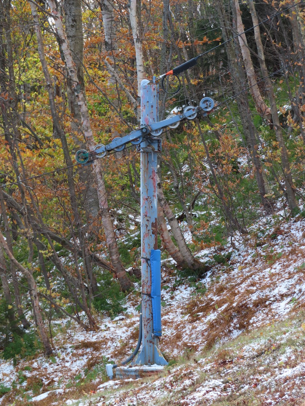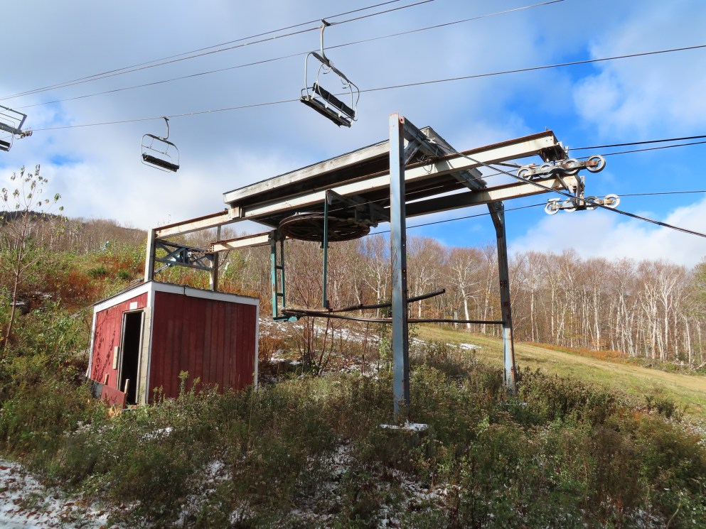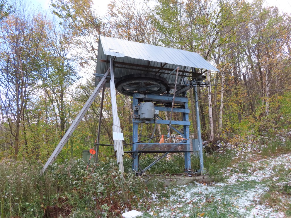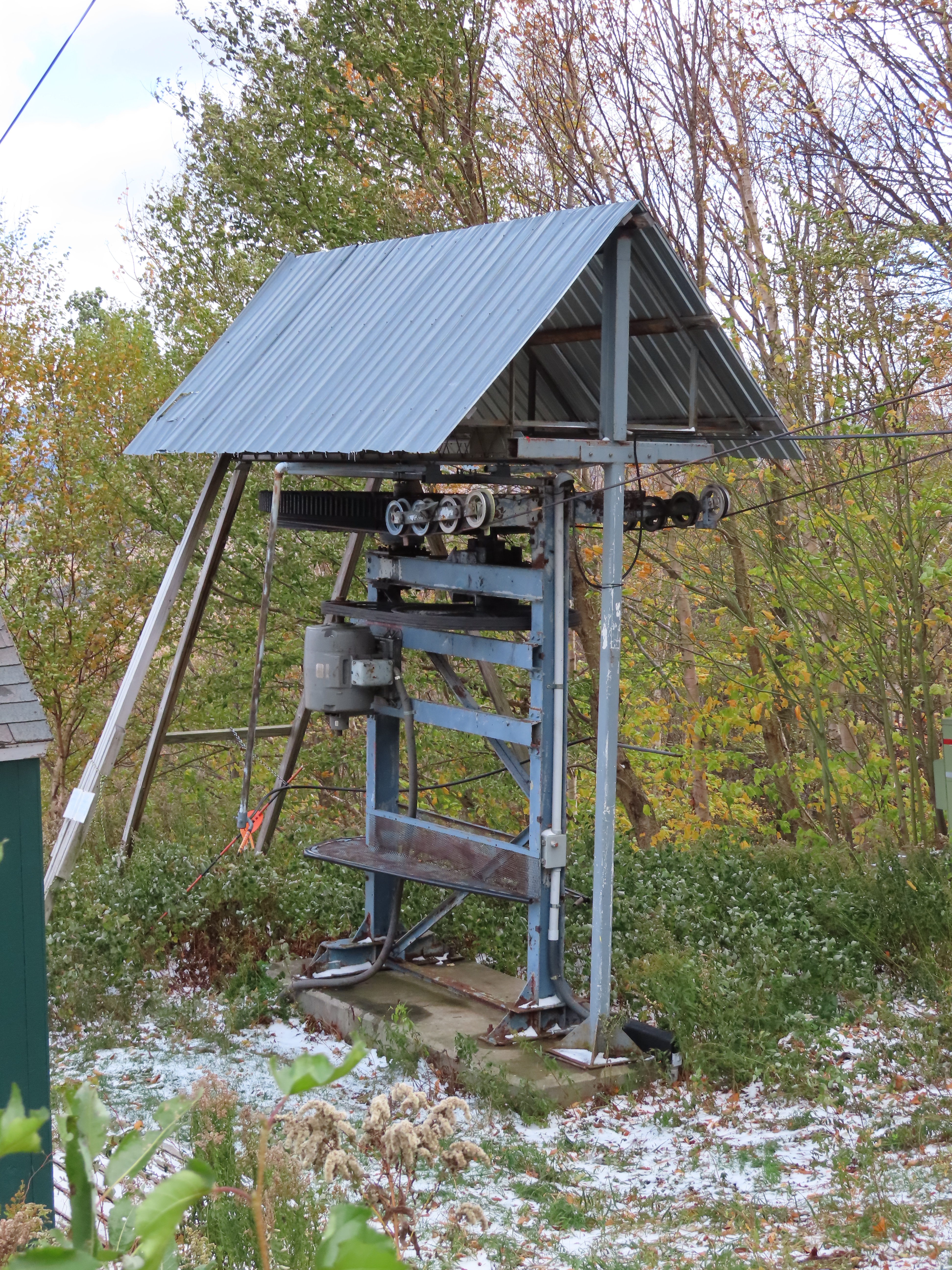 The Green Mountain Valley School has two surface lifts at Sugarbush. This is the original one higher on Inverness Mountain.It looks to me to use a mix of Hall and Poma parts.The top operator shack.Tower 9.Half depression tower.Two different styles of crossarms.View down at T3. The towers are very far apart compared to the neighboring quad.Bottom terminal.Drive bullwheel.Looking up the line from the loading area.