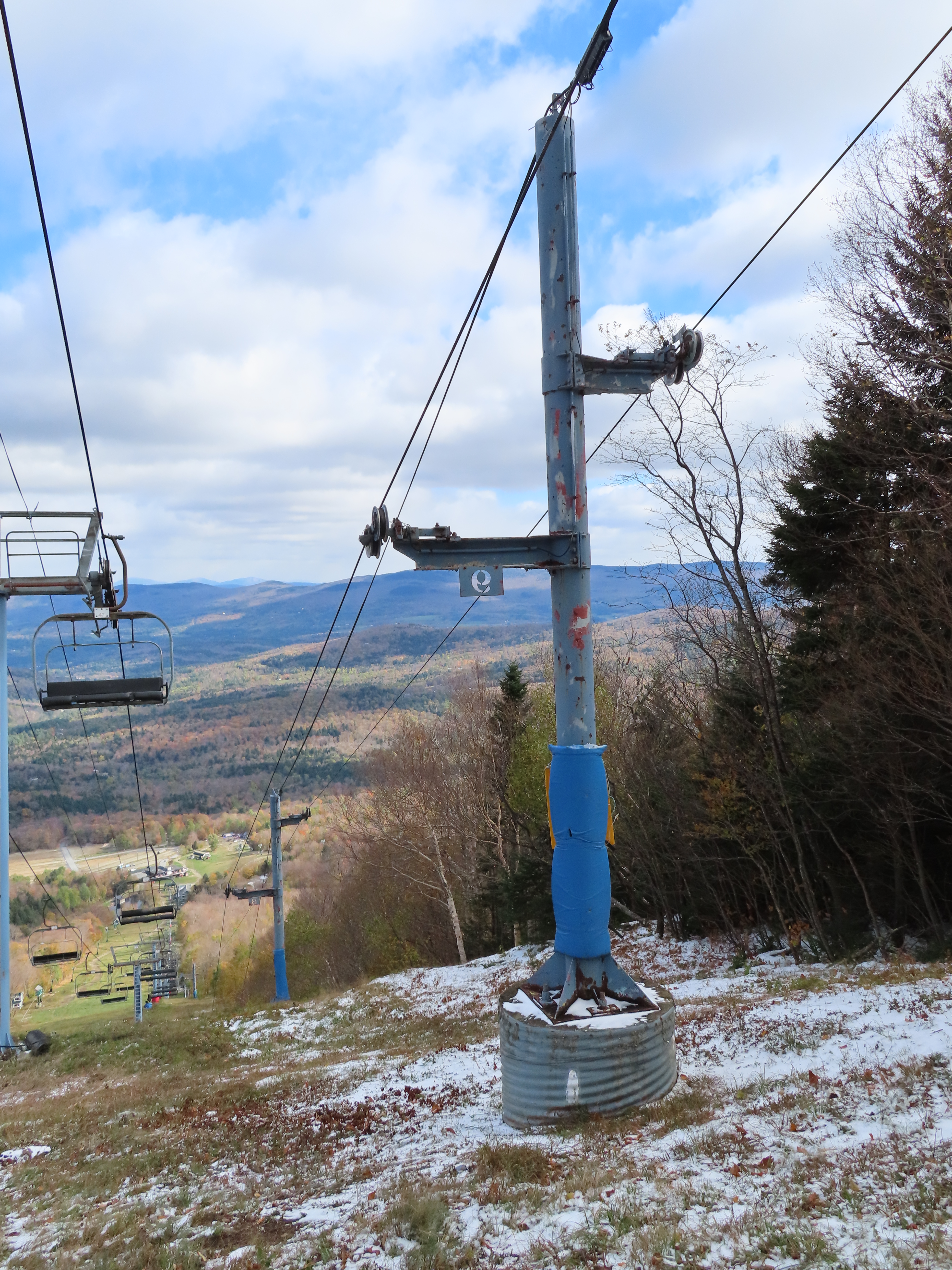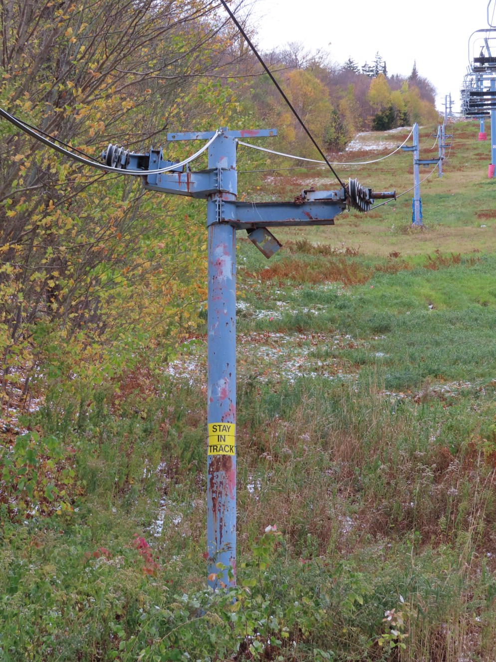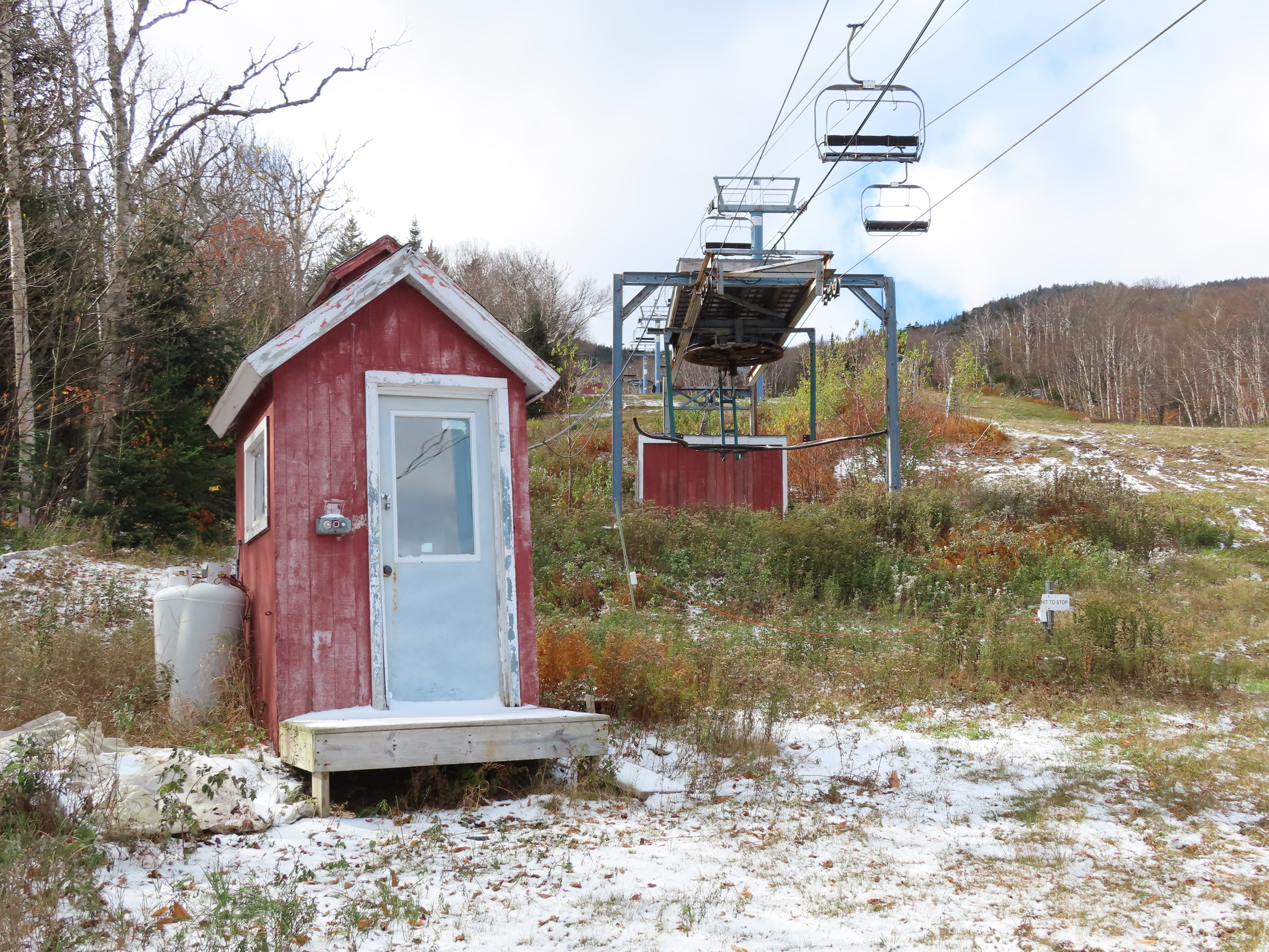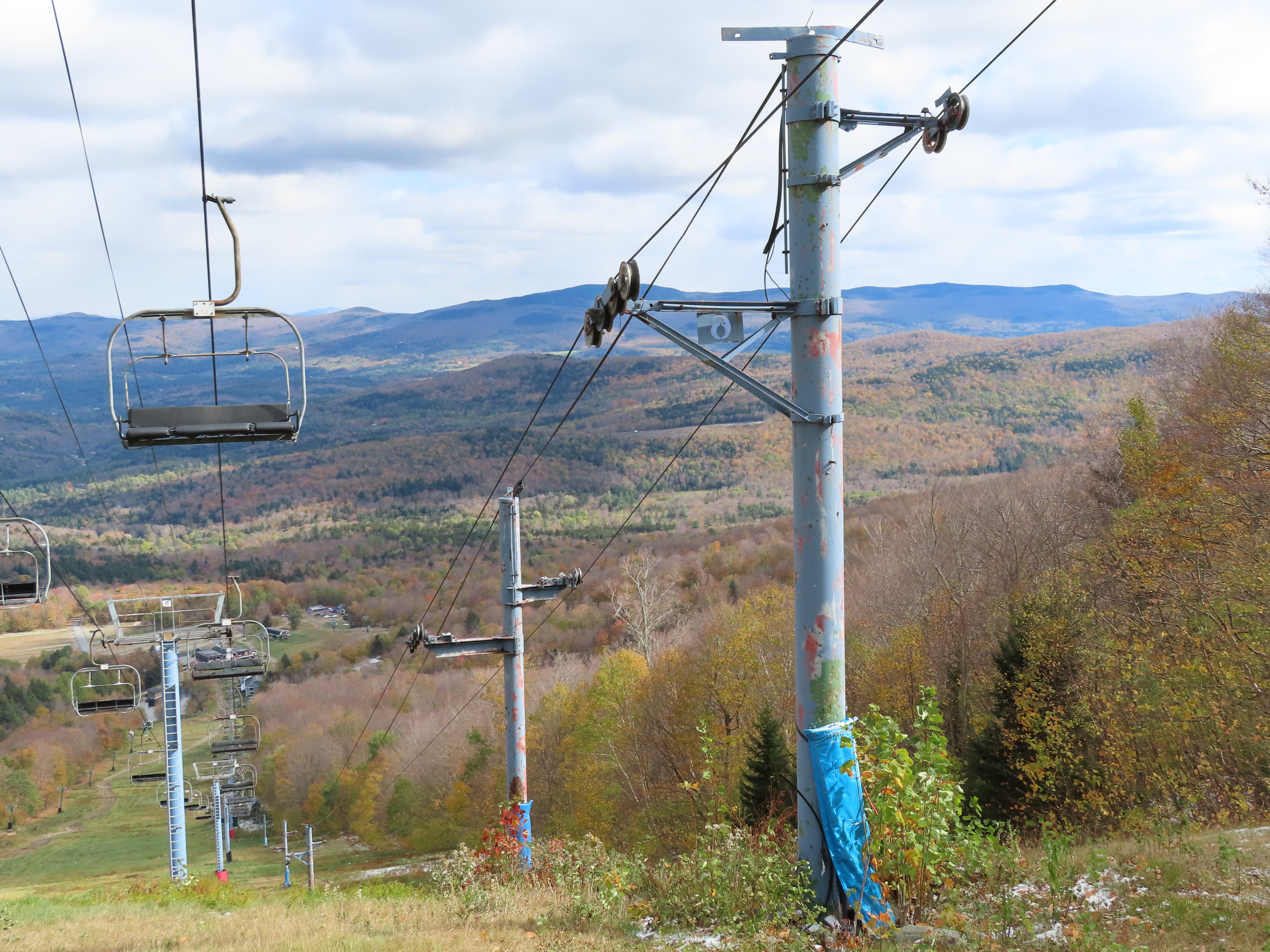 The Green Mountain Valley School has two surface lifts at Sugarbush. This is the original one higher on Inverness Mountain.It looks to me to use a mix of Hall and Poma parts.The top operator shack.Tower 9.Half depression tower.Two different styles of crossarms.View down at T3. The towers are very far apart compared to the neighboring quad.Bottom terminal.Drive bullwheel.Looking up the line from the loading area.