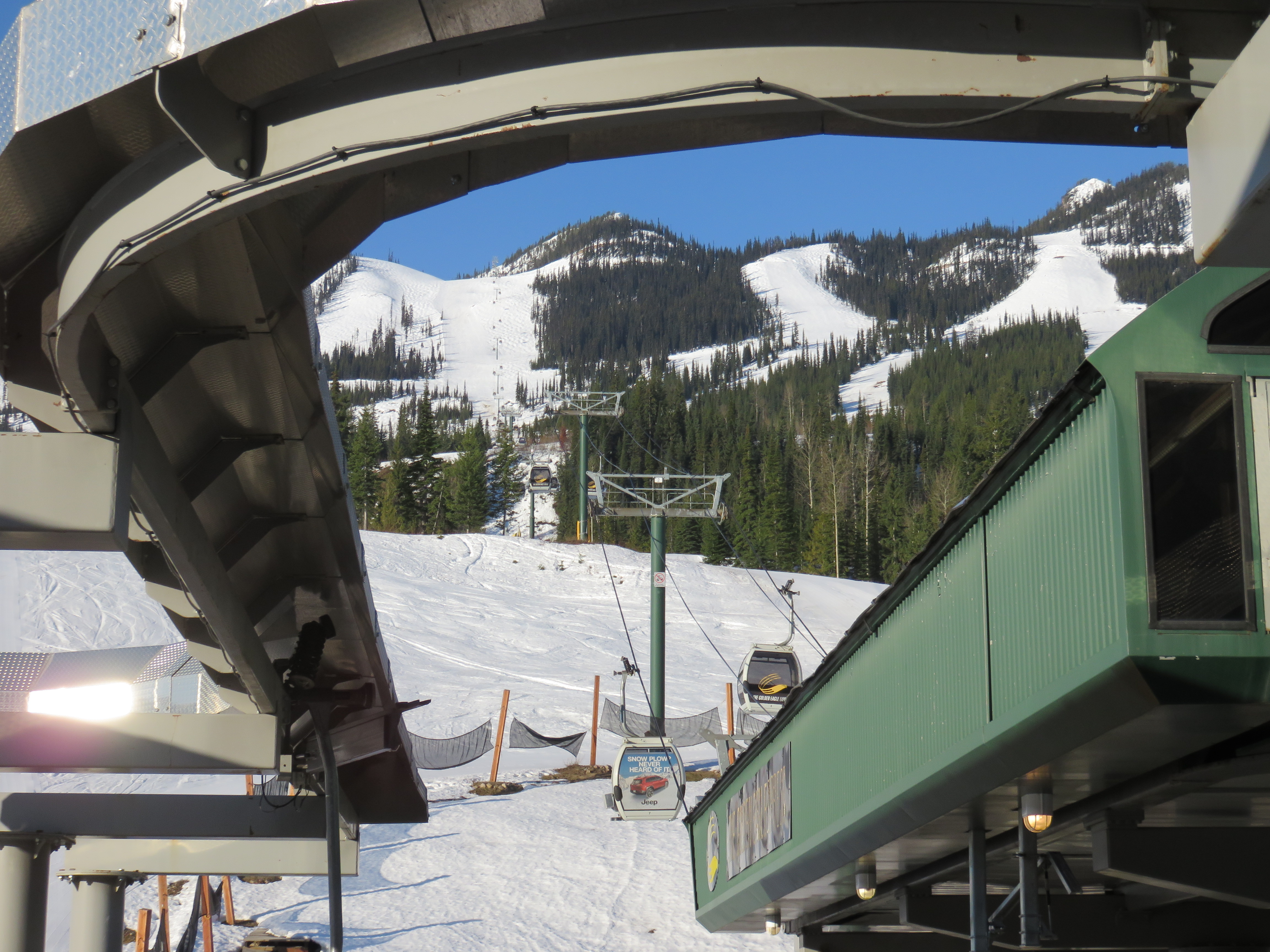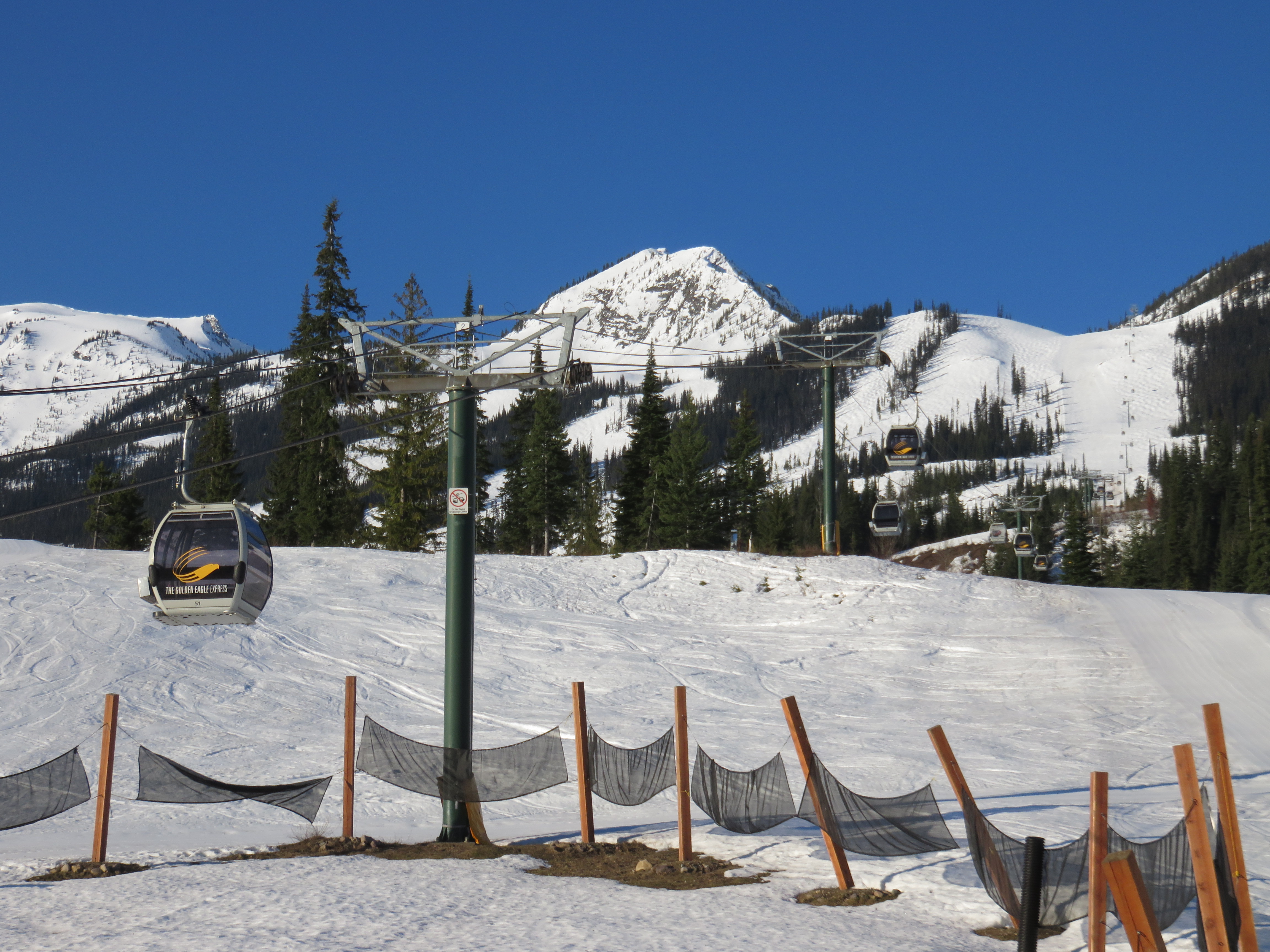 Golden Eagle gondola May update: To respect security measures, all new hanger arms for all cabins will be manufactured by Leitner-Poma this spring and should arrive in Golden mid-July. Until then, all Summer ops will be done through the Catamount Quad.