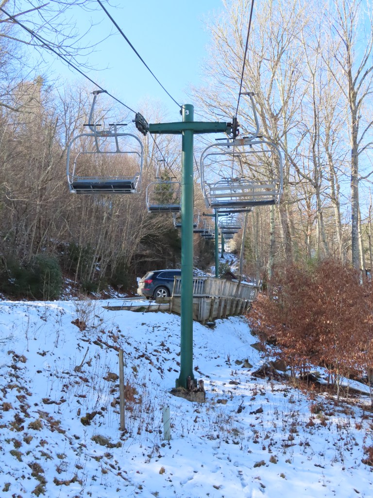 Like many of Sugar Mountain’s early lifts, Easy Street was continually upgraded to the point it is almost no longer a Hall.New CTEC Sprint terminal.New CTEC chairs.The towers are original Hall.View down the lift line.Breakover towers.The Hall terminal was sawed apart and welded onto a CTEC Intrepid base.Leaving the bottom station.Tower 3.Middle part of the lift line.T11.Arriving at the return.
