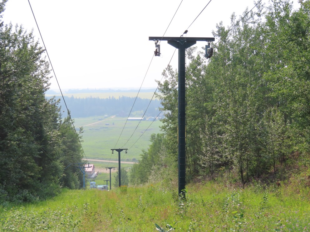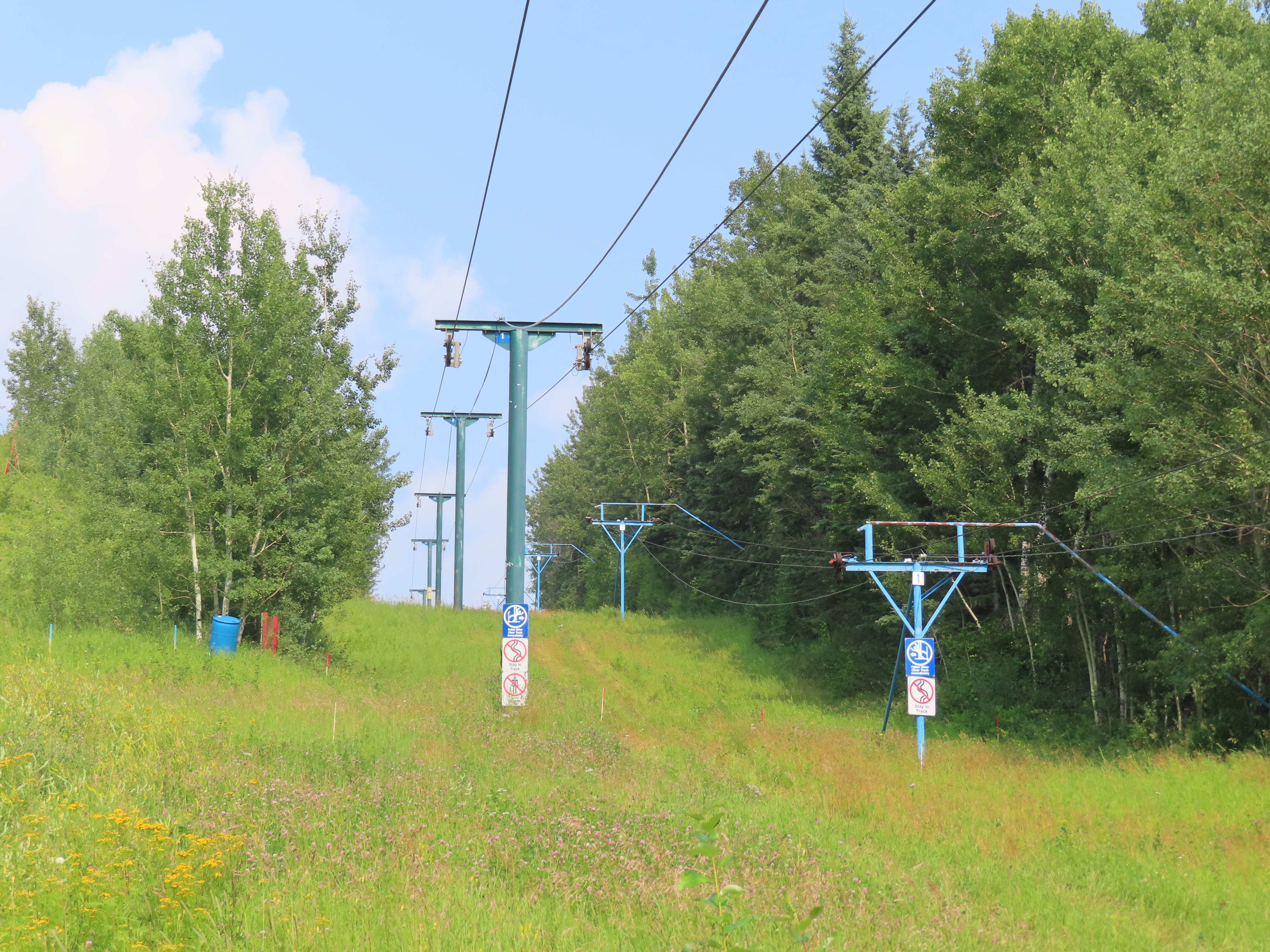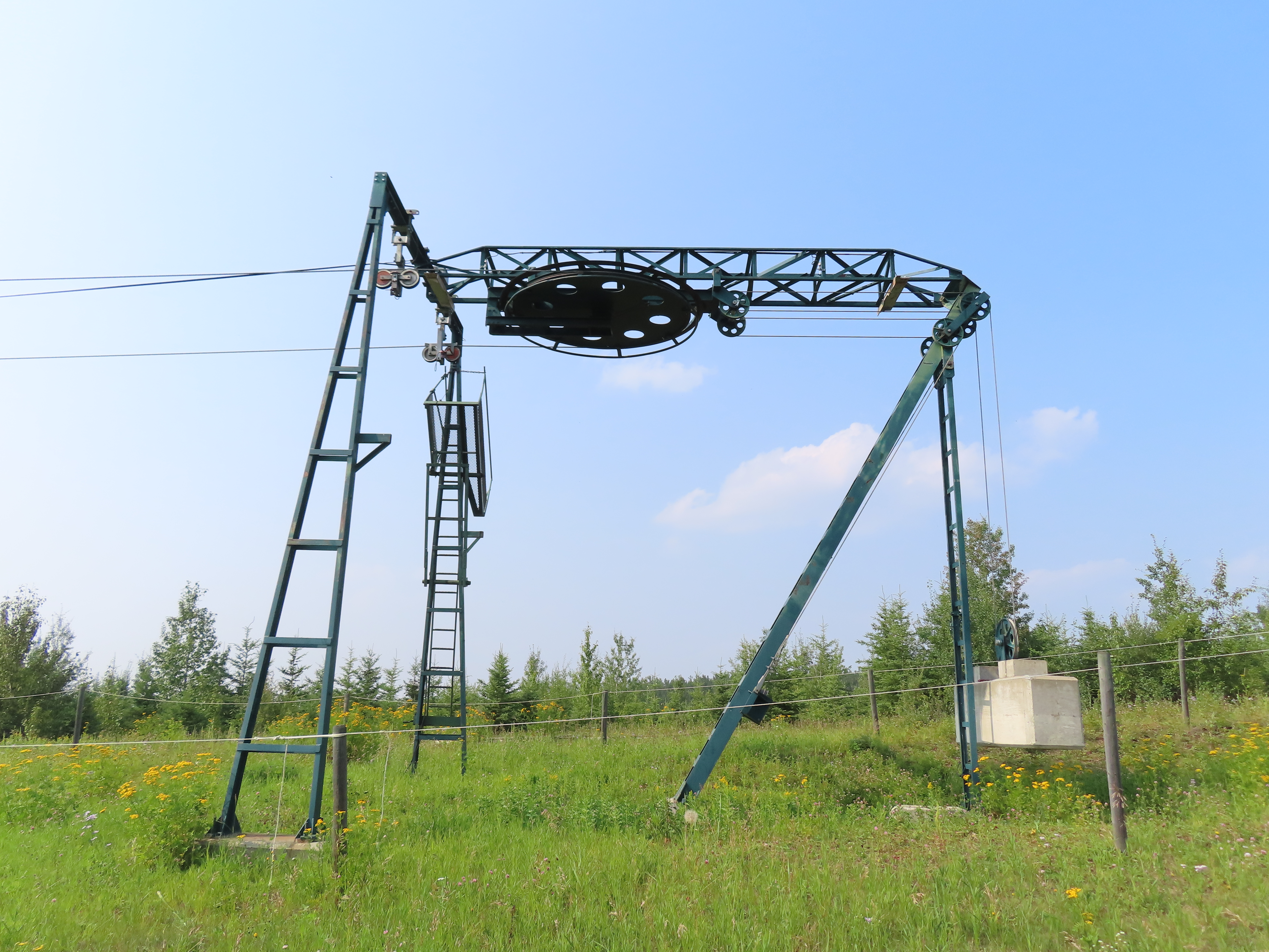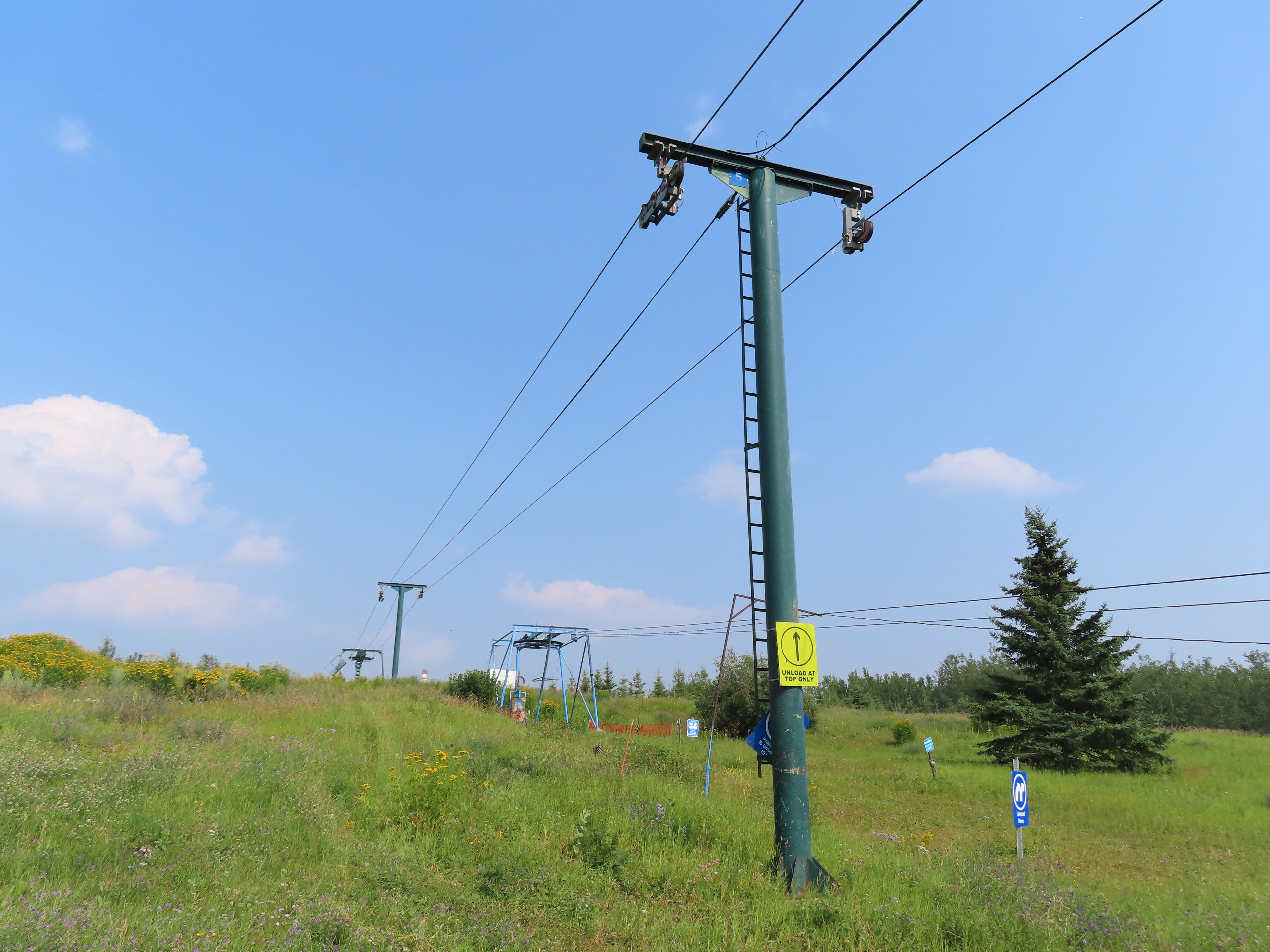 This Doppelmayr T-Bar services the main front face of the mountain.View from the summit.The lift runs alongside another T-Bar that ends lower.Middle section of the lift line.Drive station.View up the lift line.Drive bullwheel.Tower 2.Top station with counterweight.