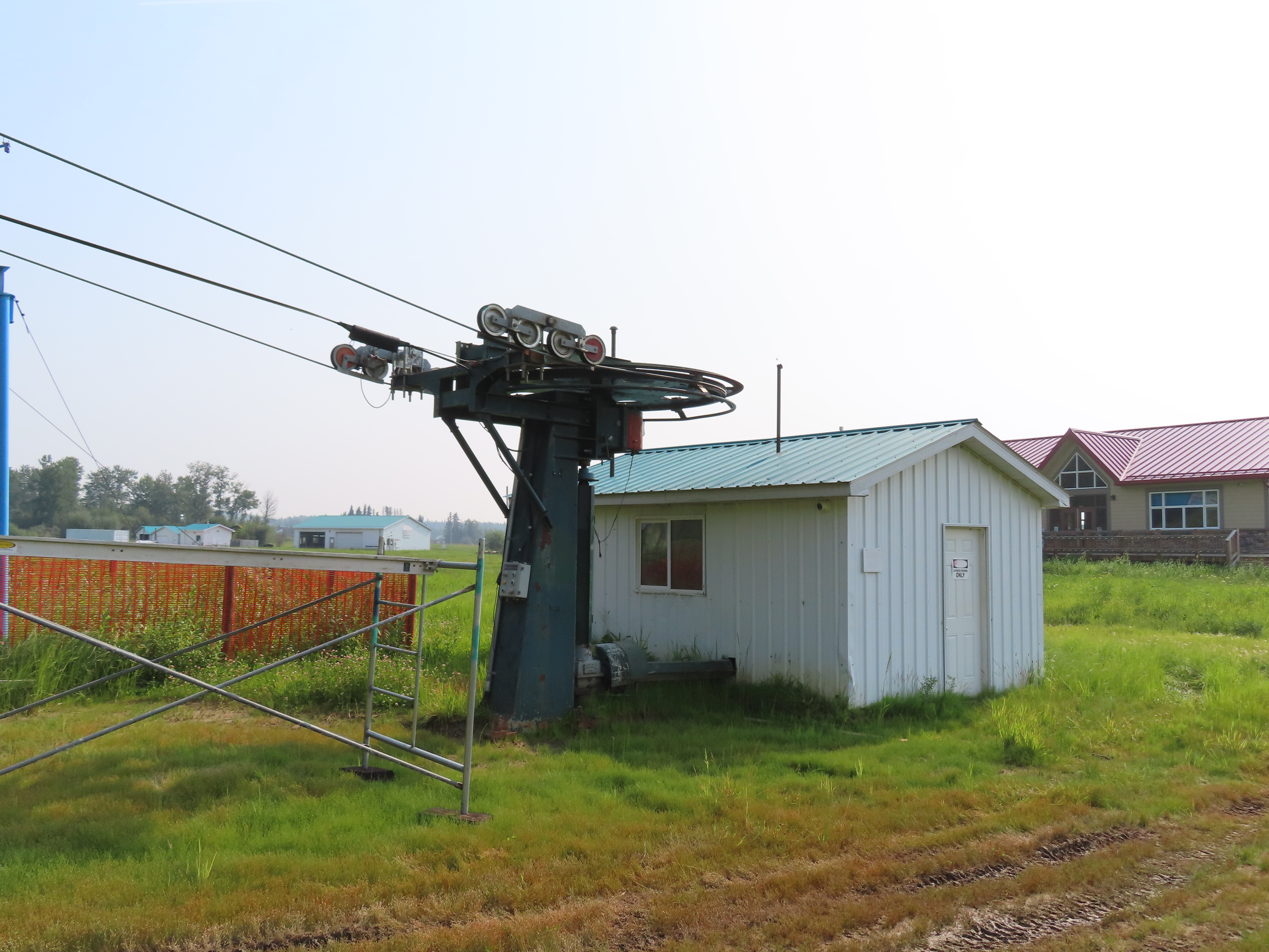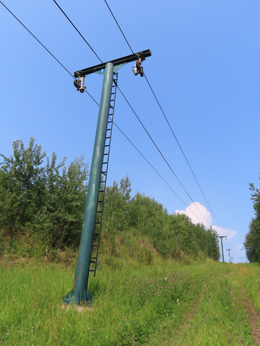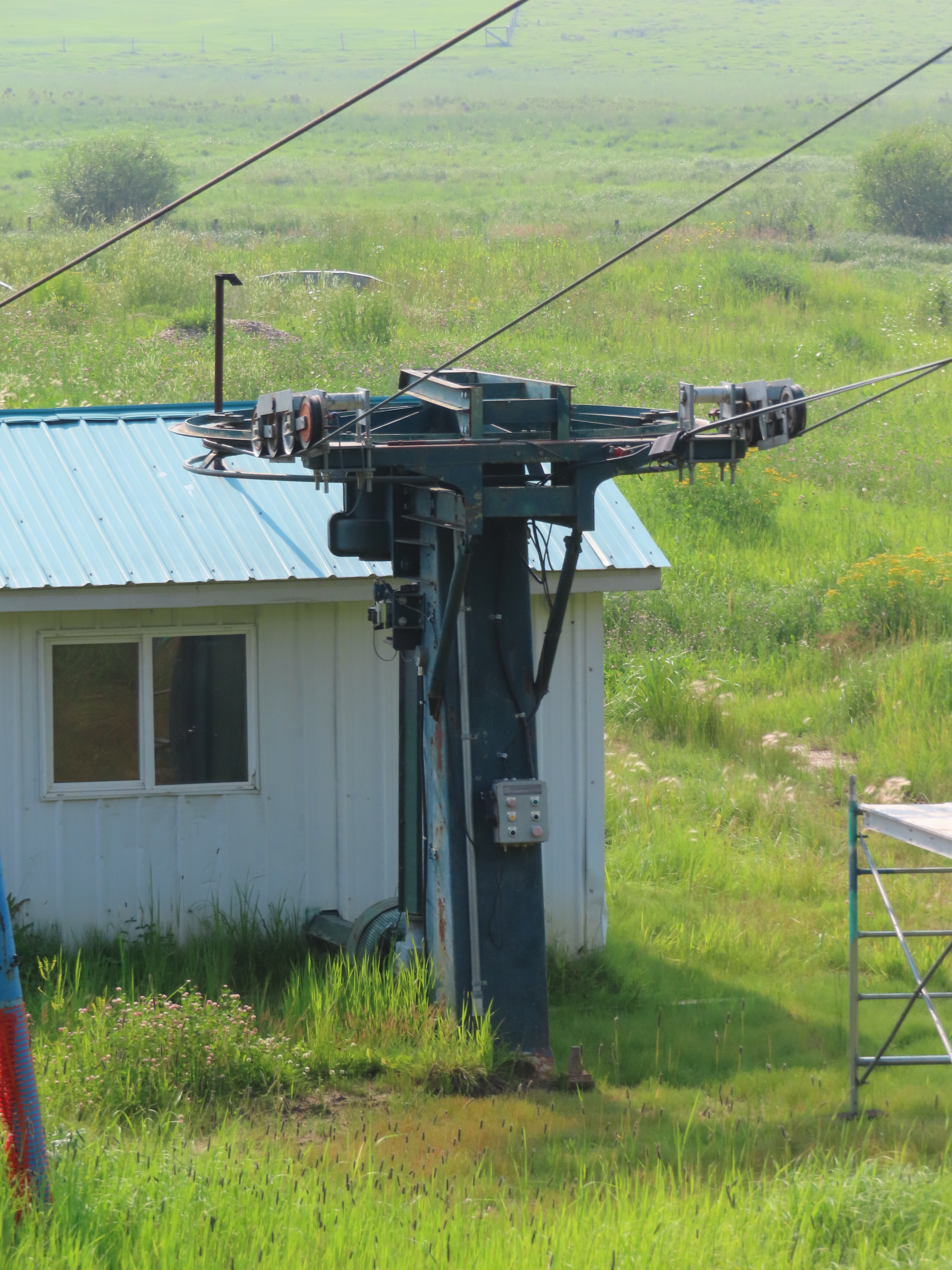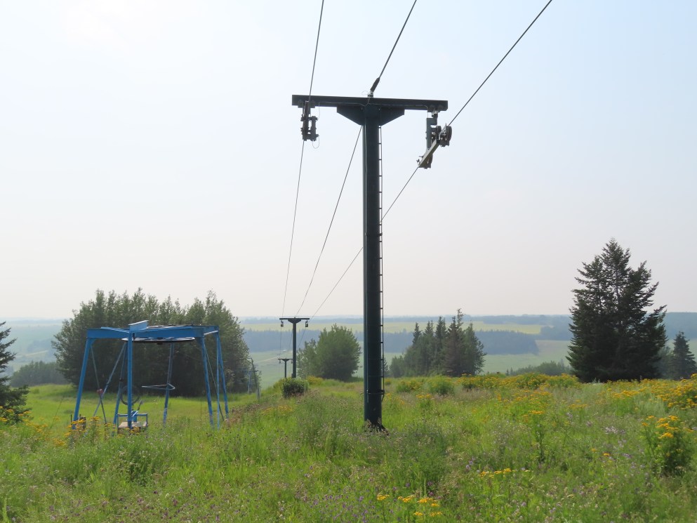 This Doppelmayr T-Bar services the main front face of the mountain.View from the summit.The lift runs alongside another T-Bar that ends lower.Middle section of the lift line.Drive station.View up the lift line.Drive bullwheel.Tower 2.Top station with counterweight.