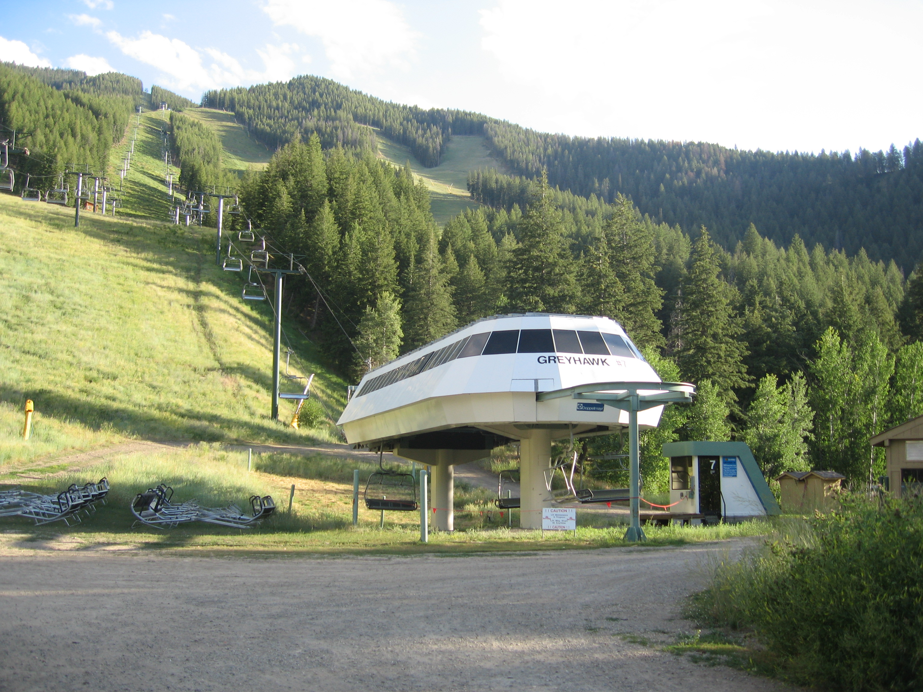 Before the Doppelmayan high speed quads were built, access out of Warm Springs base area was through the Lower Warm Springs lift, from which one then changed to Flying Squirrel or Limelight to continue higher on the mountain. Greyhawk was built to end higher up so it could also lap trails.