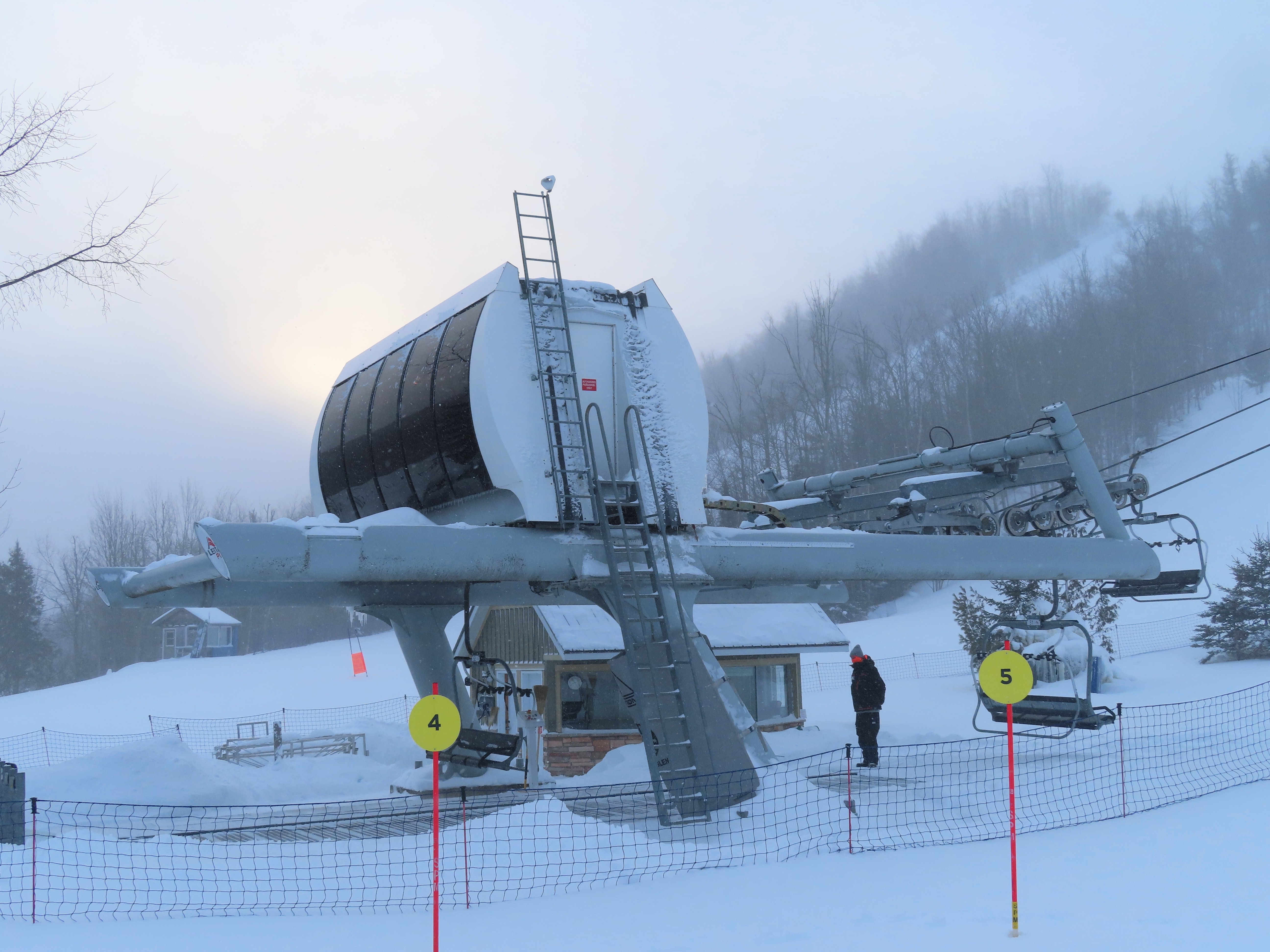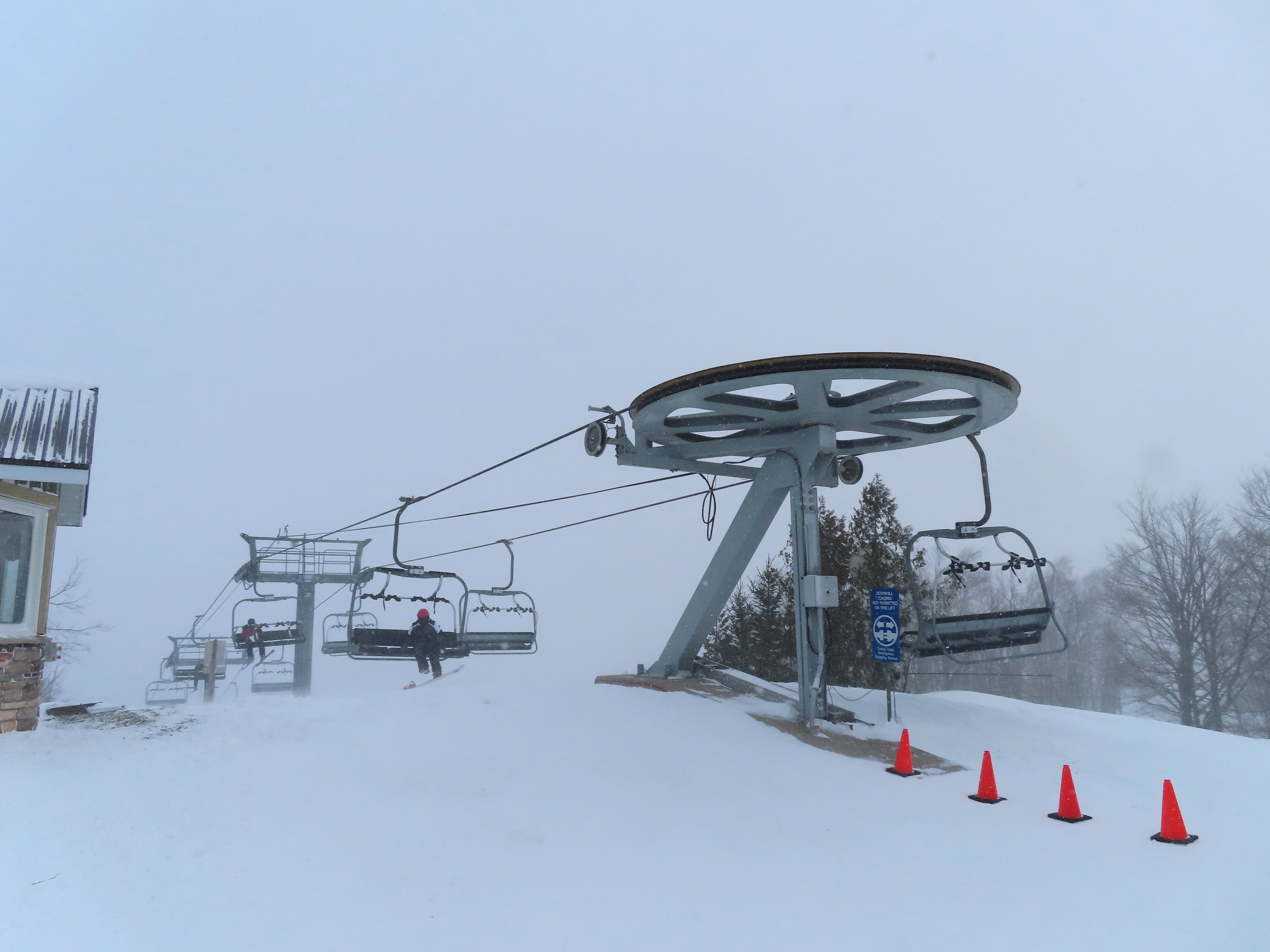 Hades – Devil’s Glen, ON This ski area operates a 100 percent Leitner-Poma fleet. Top bullwheel. View down from the summit. Steep middle section of the lift line. Lower lift line. Breakover towers near the summit. Unloading area. Lift overview. Share this: Email a link to a friend (Opens in new window) Email Share on X (Opens in new window) X Share on Facebook (Opens in new window) Facebook Like Loading...