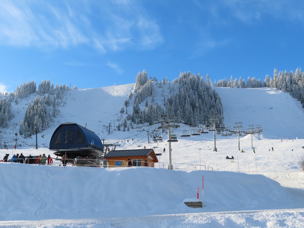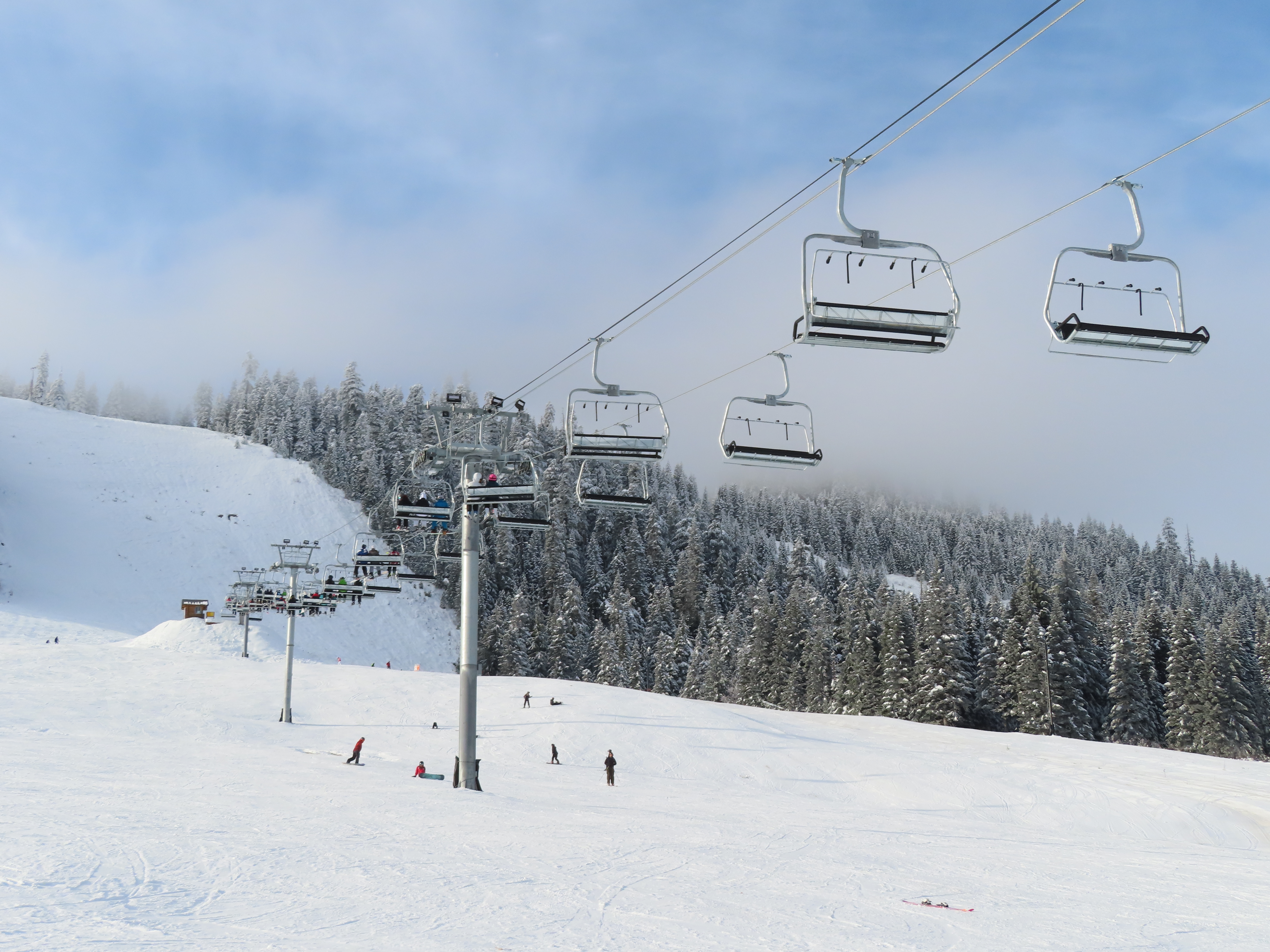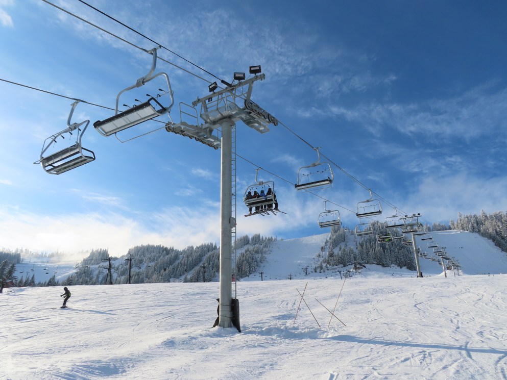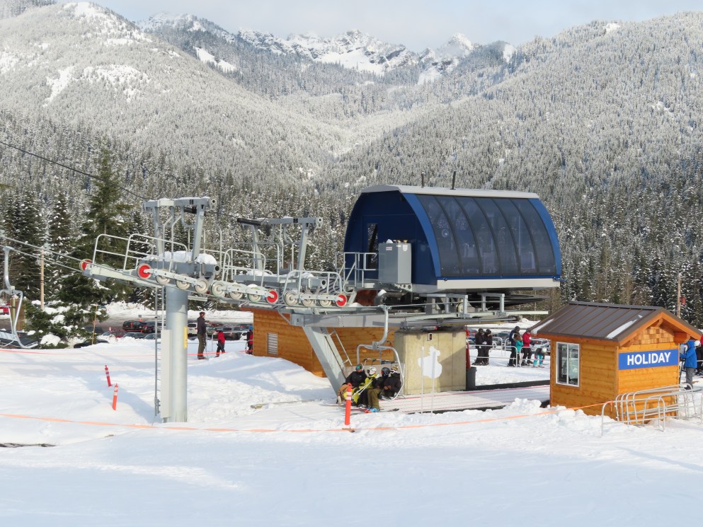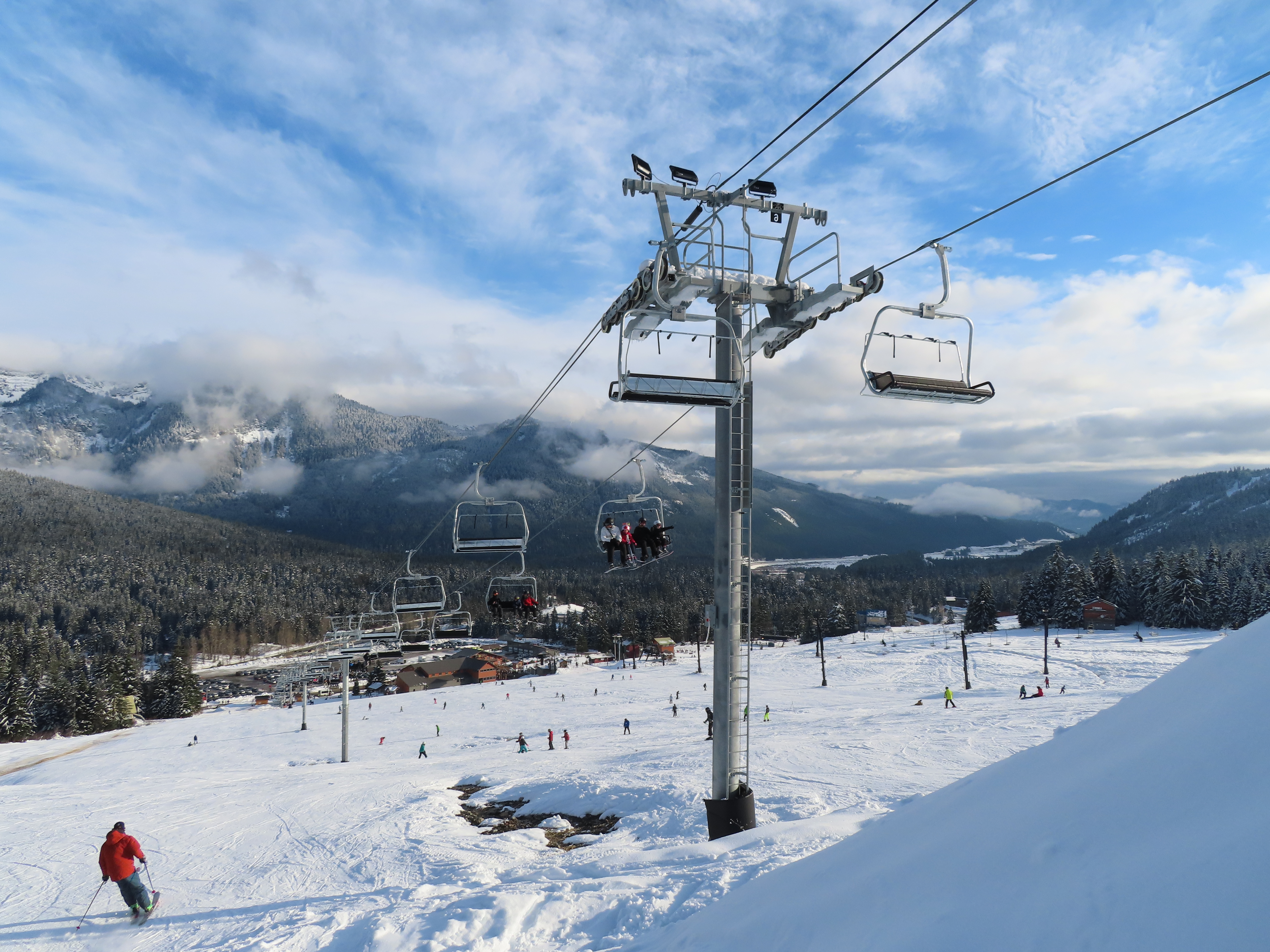 This Alpen Star quad replaced a Riblet double of the same name in 2019.Tower 1.The top terminal and reused lift shack from the previous chair.View down the lift line.Return bullwheel up top.Tower 6.Looking up the line.Lower part of the line at Summit Central.Side view of the bottom station.Loading carpet.Tower 2.Tower head with night lighting.Arriving at the summit.Tower 5.View up from the base area.Another view of the drive terminal.Loading area and motor room.Riding up the line.View down at tower 6.Lift overview.