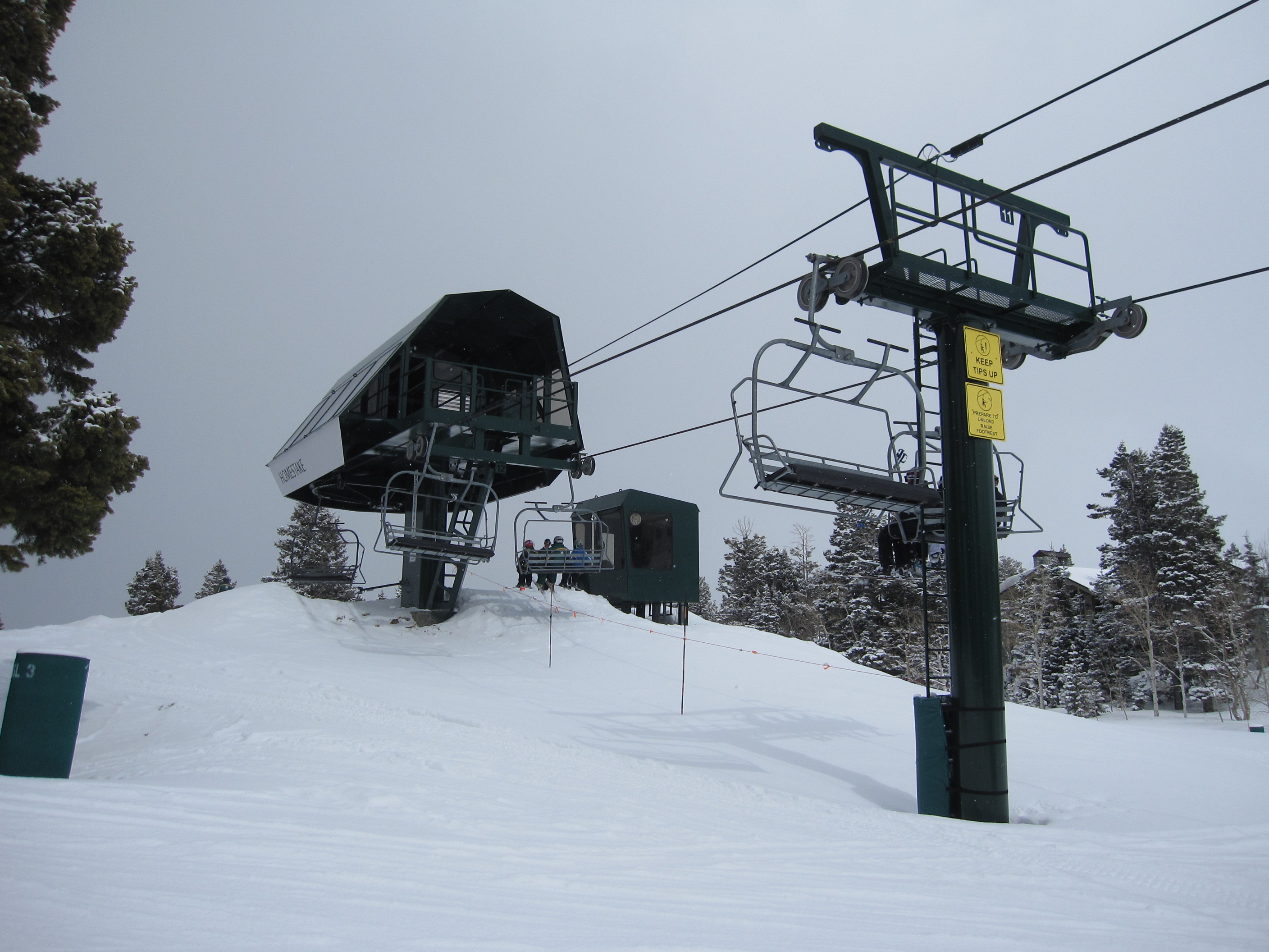 This lift is very similar to the Yodeler Quad at Holiday Valley. It has a high capacity with very closely spaced chairs, but a speed of only 375 feet per minute.
