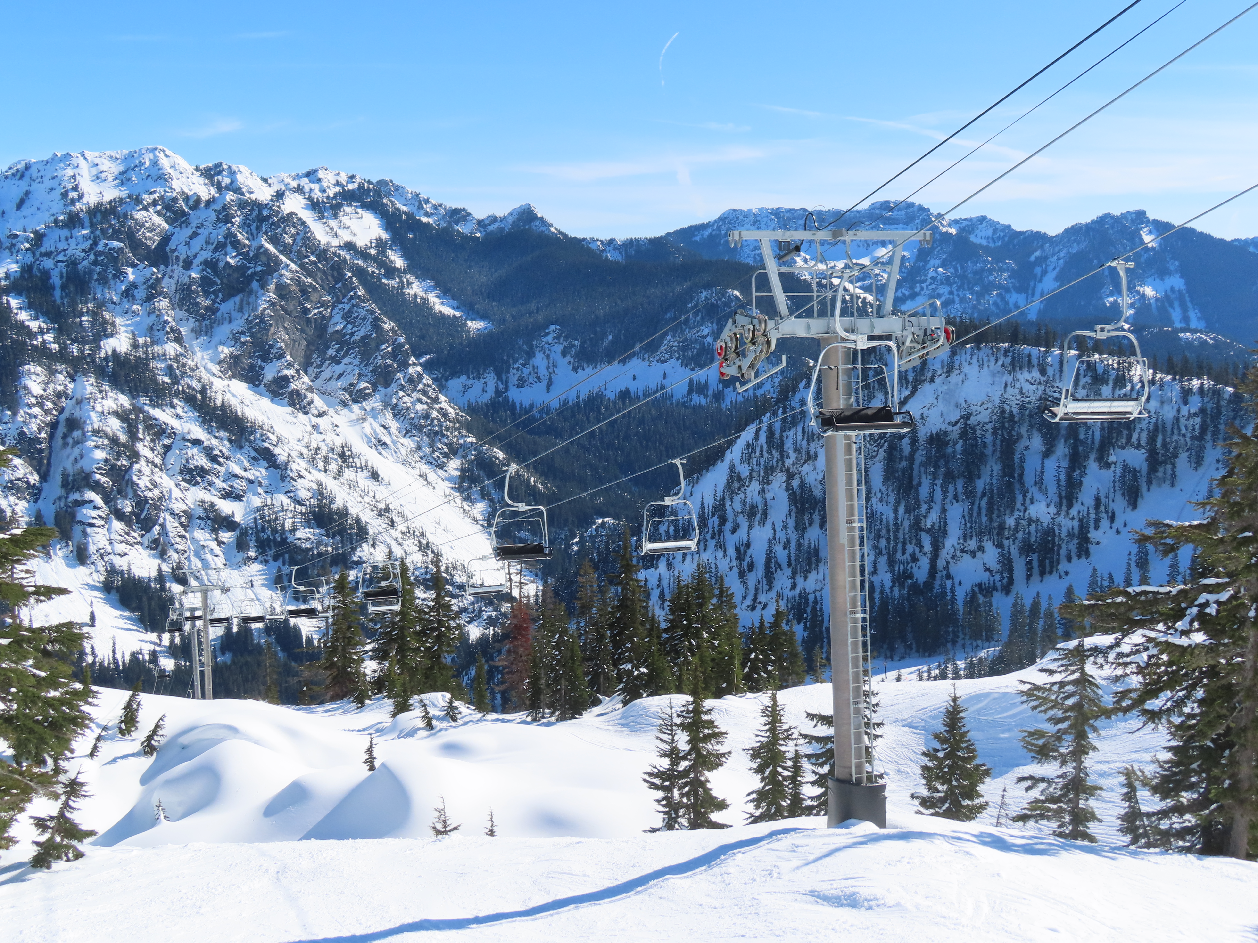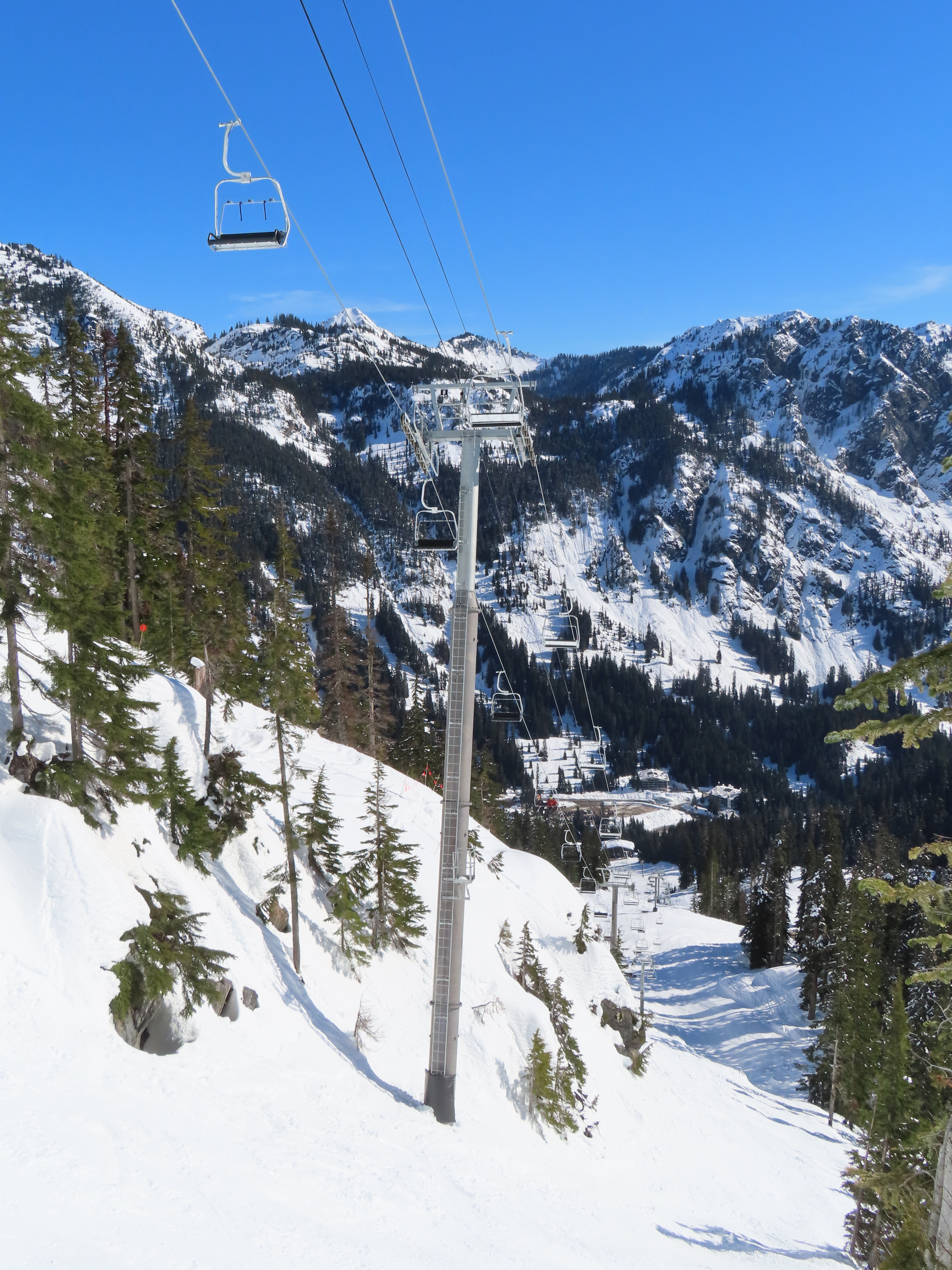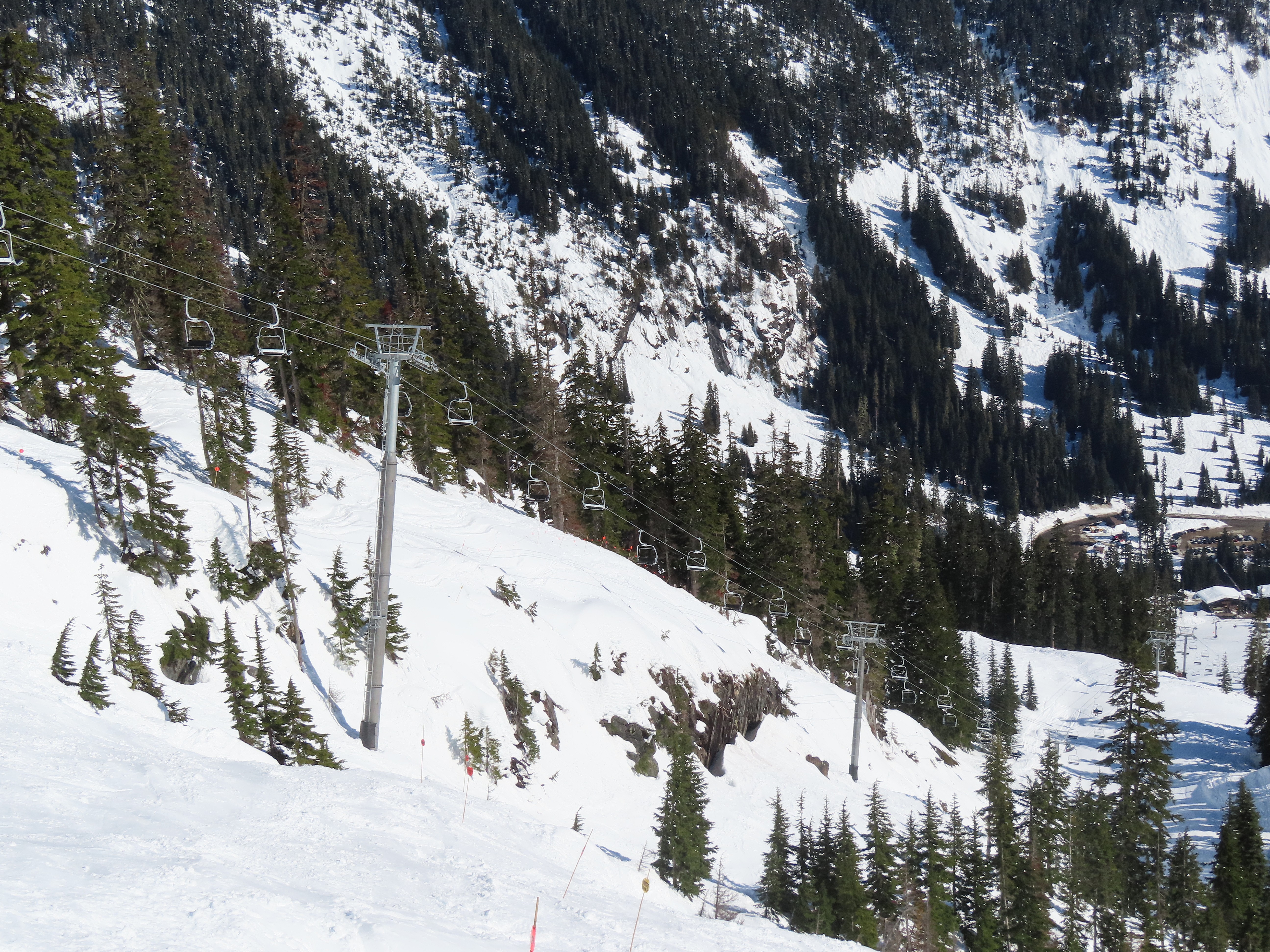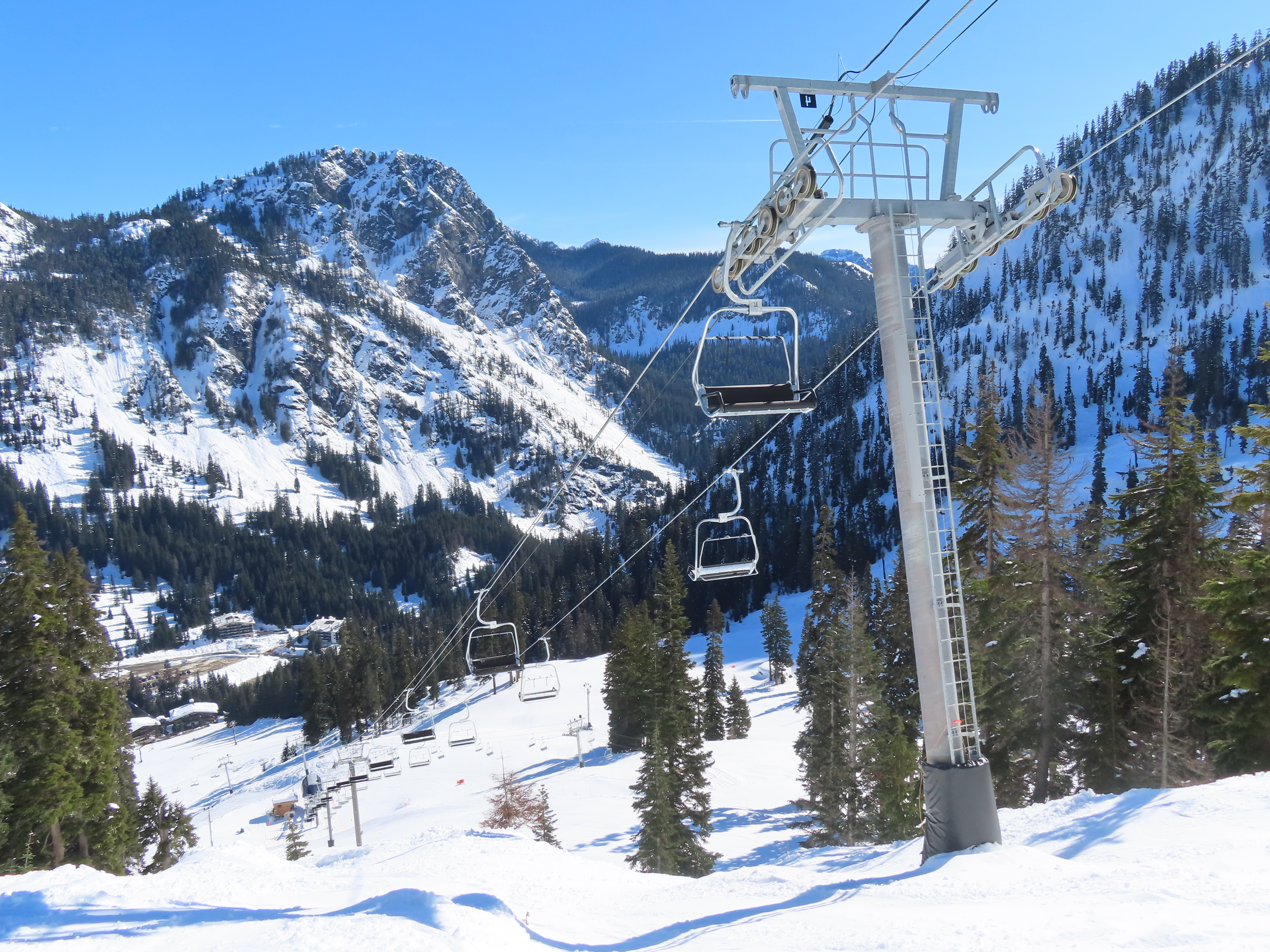 Doppelmayr and The Summit spent multiple years realizing this steep expansion lift in the International area of the mountain.The new lift does not feature a loading conveyor, breaking a long series of new fixed grip lifts with conveyors at Snoqualmie.View riding up the scenic lift line.Doppelmayr fixed grip tower head.Middle section of the lift line.Hold down tower 6.Towers 7 and 8 follow a steep cliff band.Very tall tower 8.Nearing the summit.Upper section of the lift line.The final breakover.This station has no road access and was installed by helicopter.Upper station with catwalk above.View from the summit.The last few towers seen from below.Steep lift line over rugged topography.Towers 9 and 10.View down the steepest section of the line.Tower 8.View up at tower 5.Lower lift line.The bottom station next to sister lift Sessel.The first few towers feature night lighting, though this lift doesn’t run at night.Loading area.Much of this lift was built over snow due to minimal access.Unloading area.A section of the line near the summit.Another view up at tower 8.Combination assembly.Flat part of the line.Internationale seen from International.Upper lift line seen from below.Lift line passing over cliffs.Lift overview.