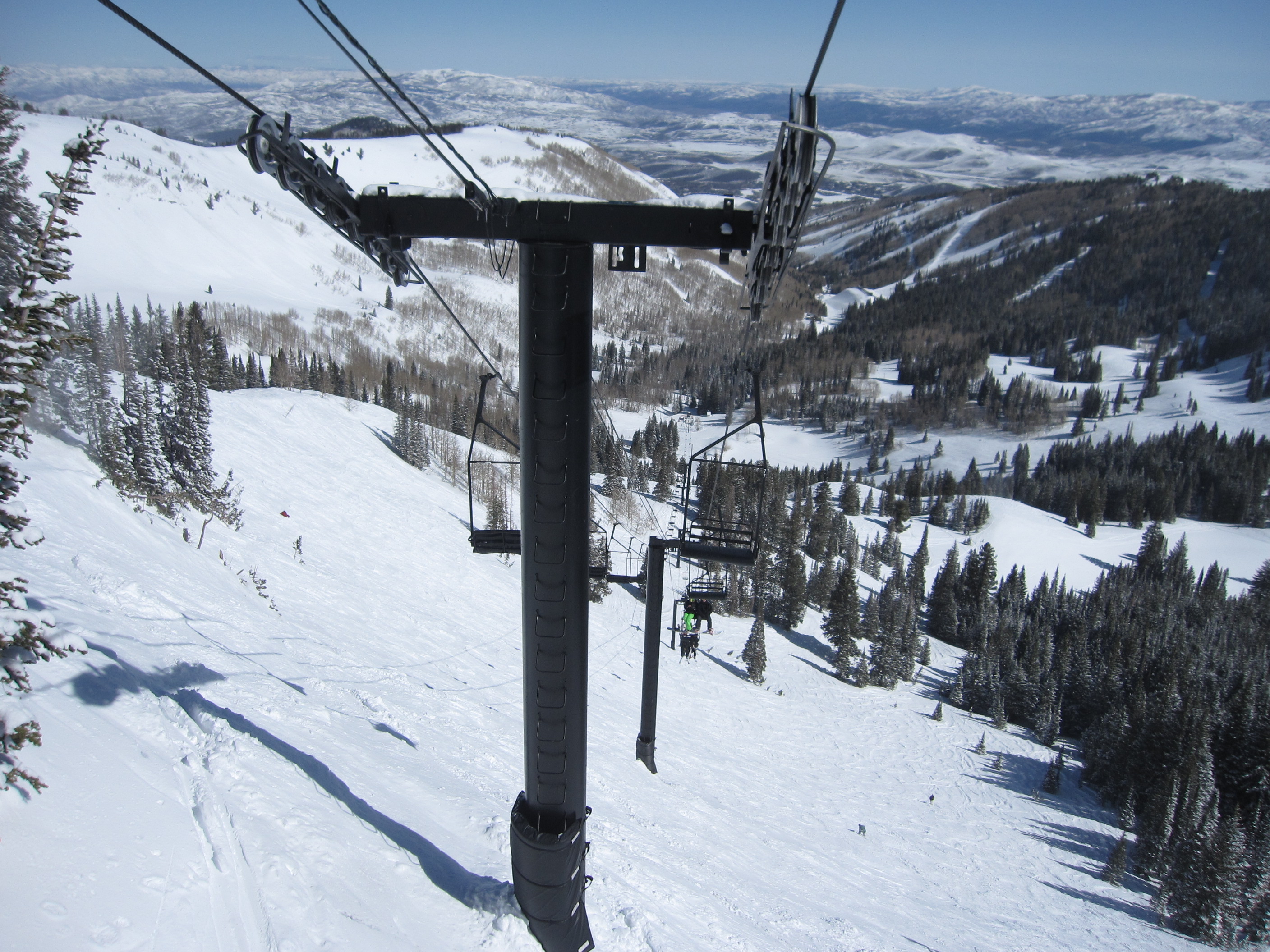 Both this lift and Thaynes down the canyon a bit, got new SkyTrac controls. There is a very low spot on this lift about tower 15 which people then think it is okay to jump off. This area is roped off… but I have seen tracks of where people have jumped off the lift. Even though this lift is pretty old, it still runs pretty great!
