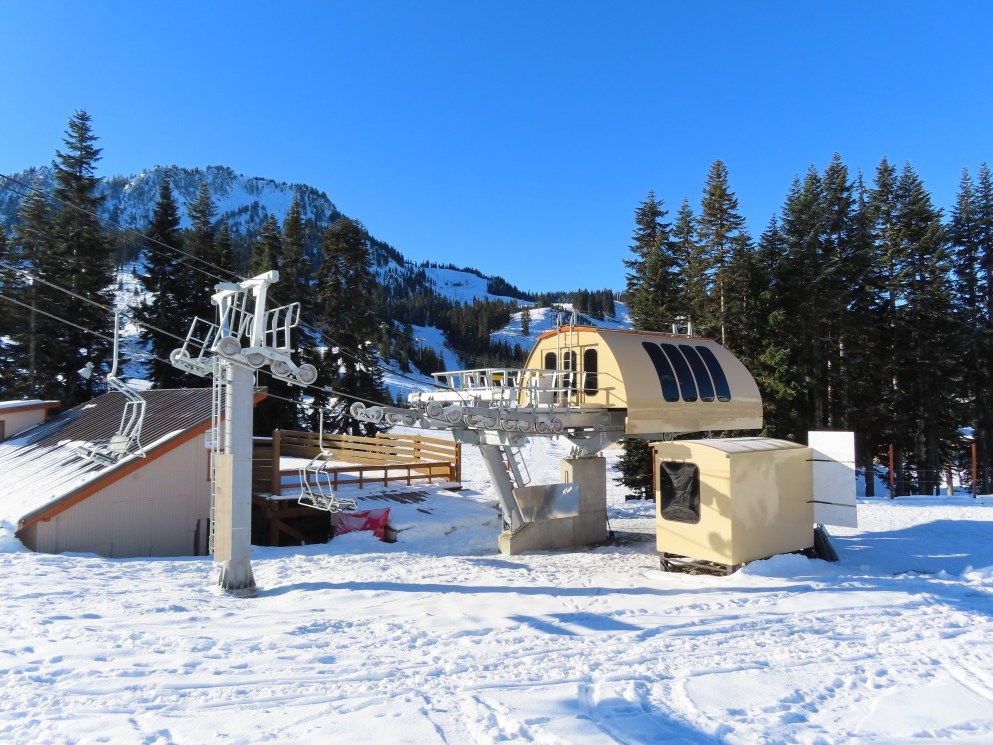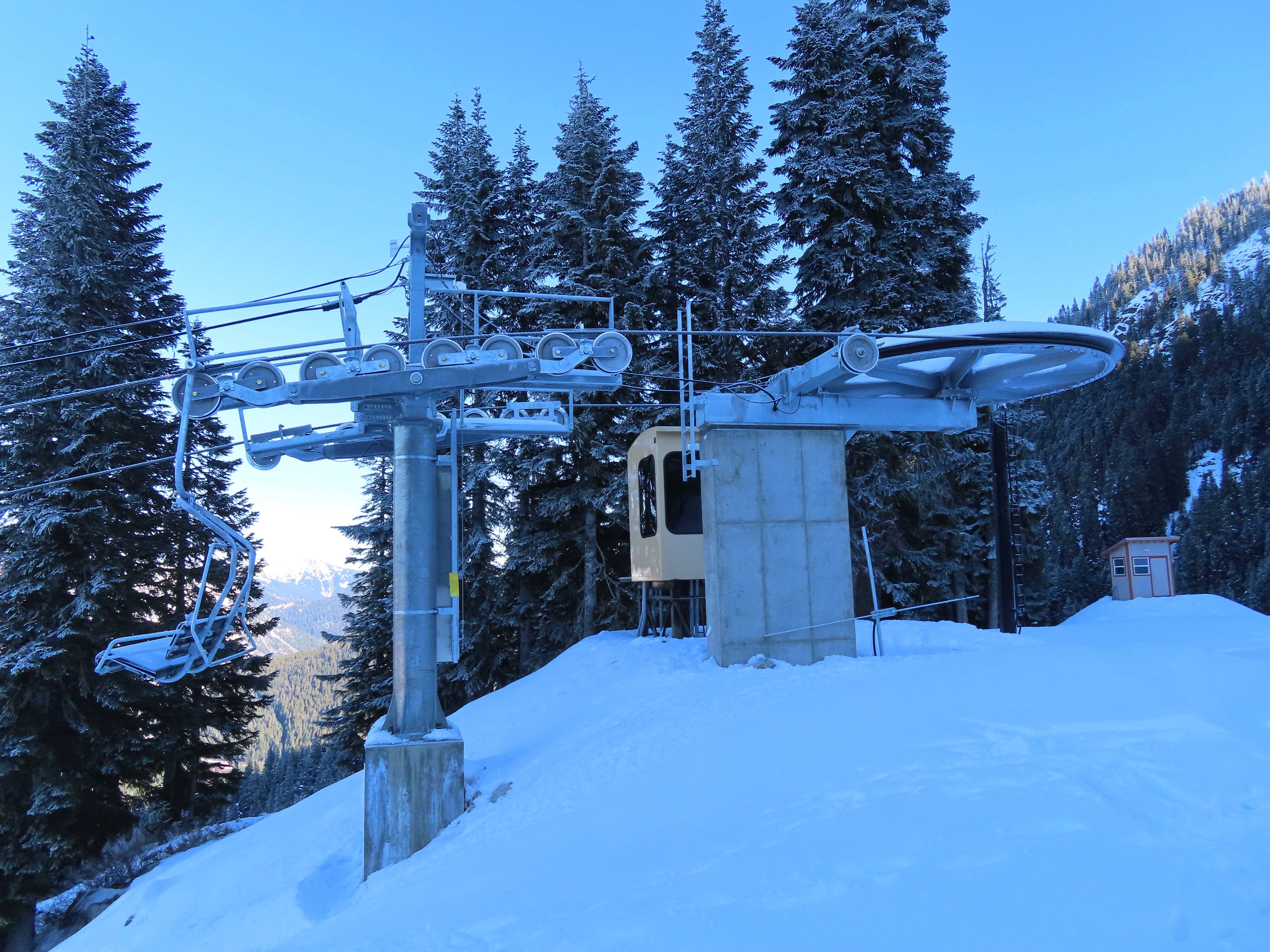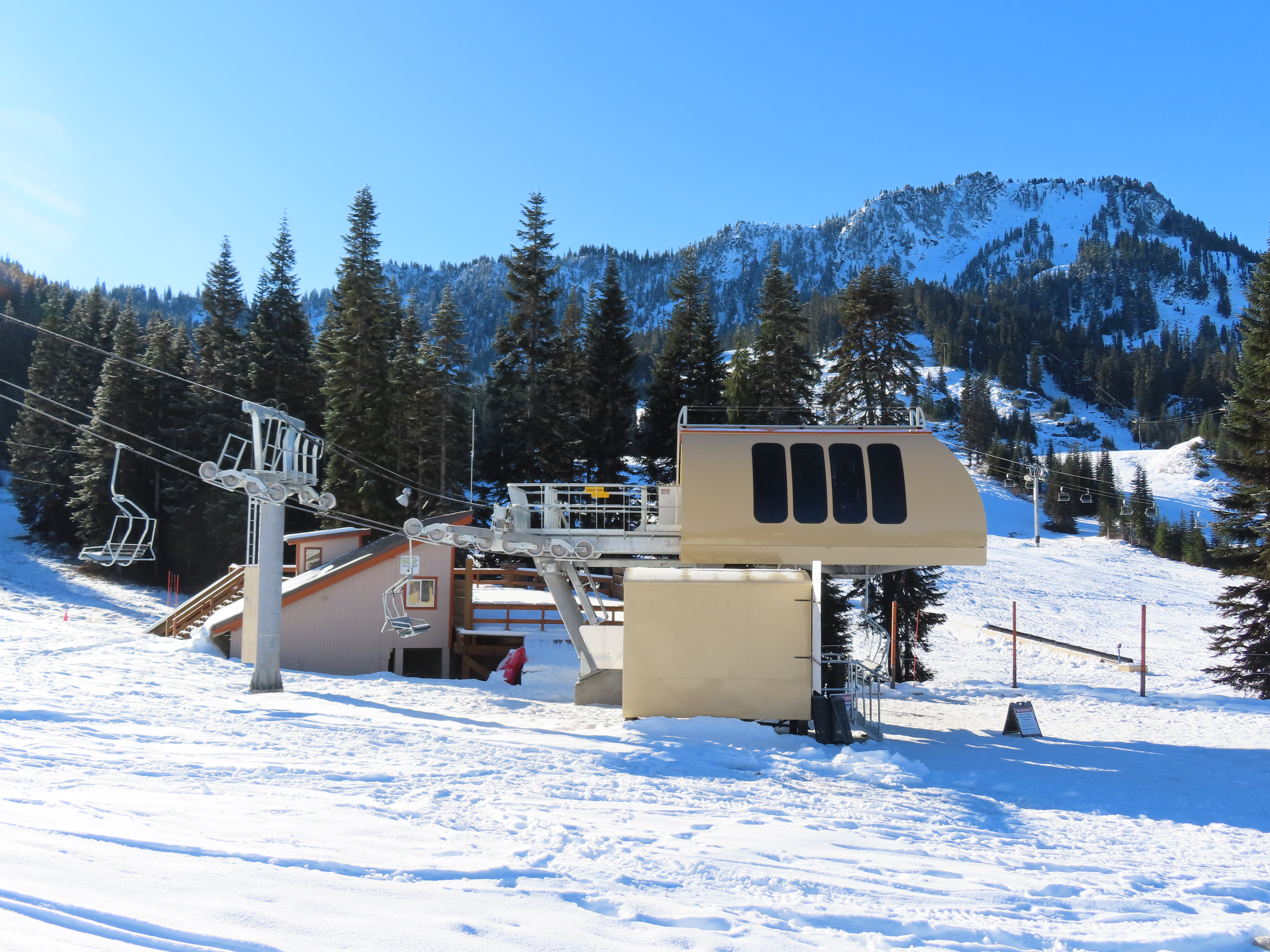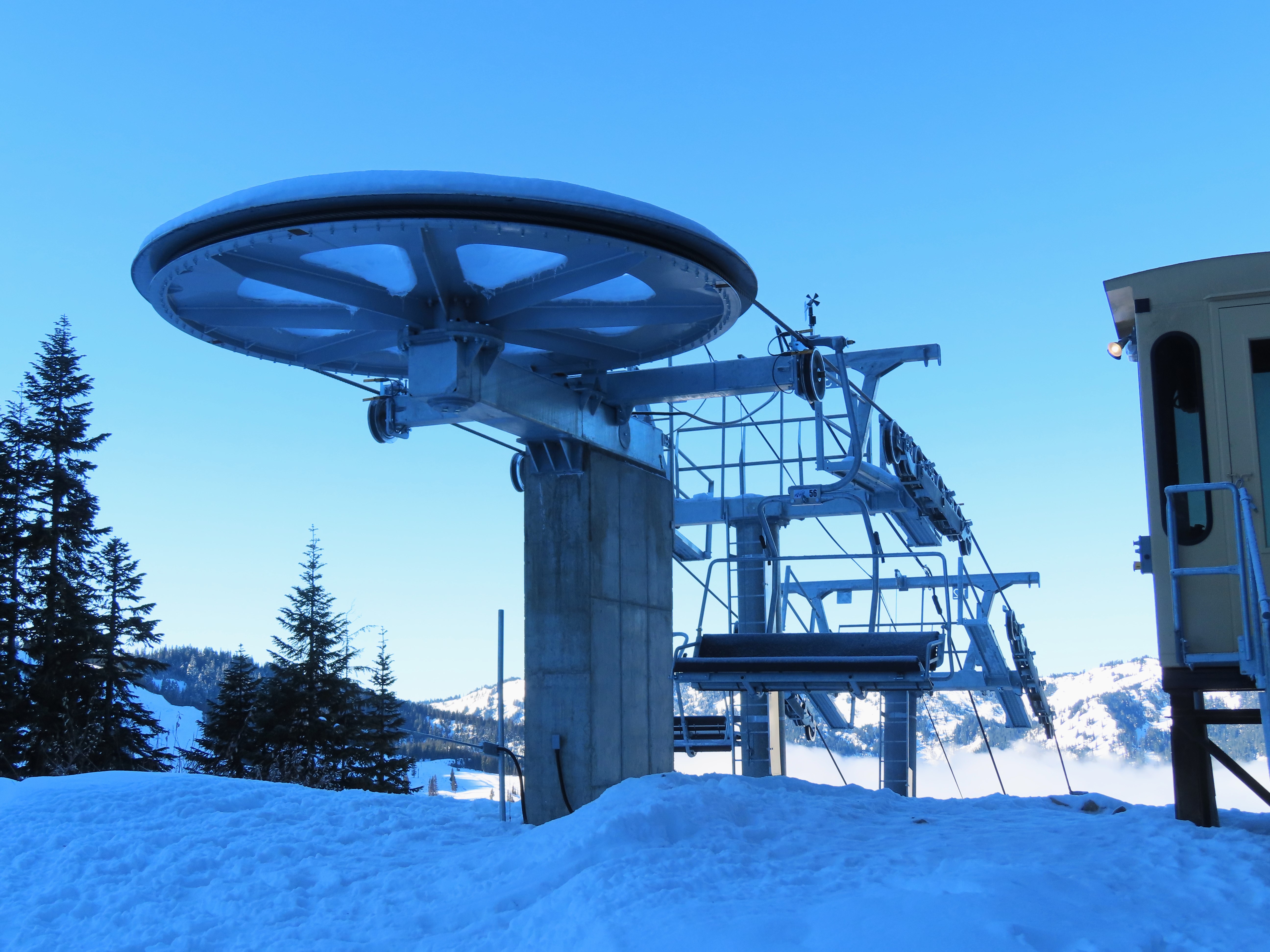 This Skytrac quad replaced a Riblet double on the east side of Stevens Pass for the 2023-24 ski season.Lower terminal in the base area.Loading area and lift line.Drive bullwheel.The lower station in orange and beige.View from the summit.Tower 12.T13 and the top terminal.Upper station overview.Top bullwheel.View from the summit.Middle section of the lift line.View down the line.View up at tower 4.Tower 2.Lift line overview.Tower 2 adjacent to the lower station.Lift overview.