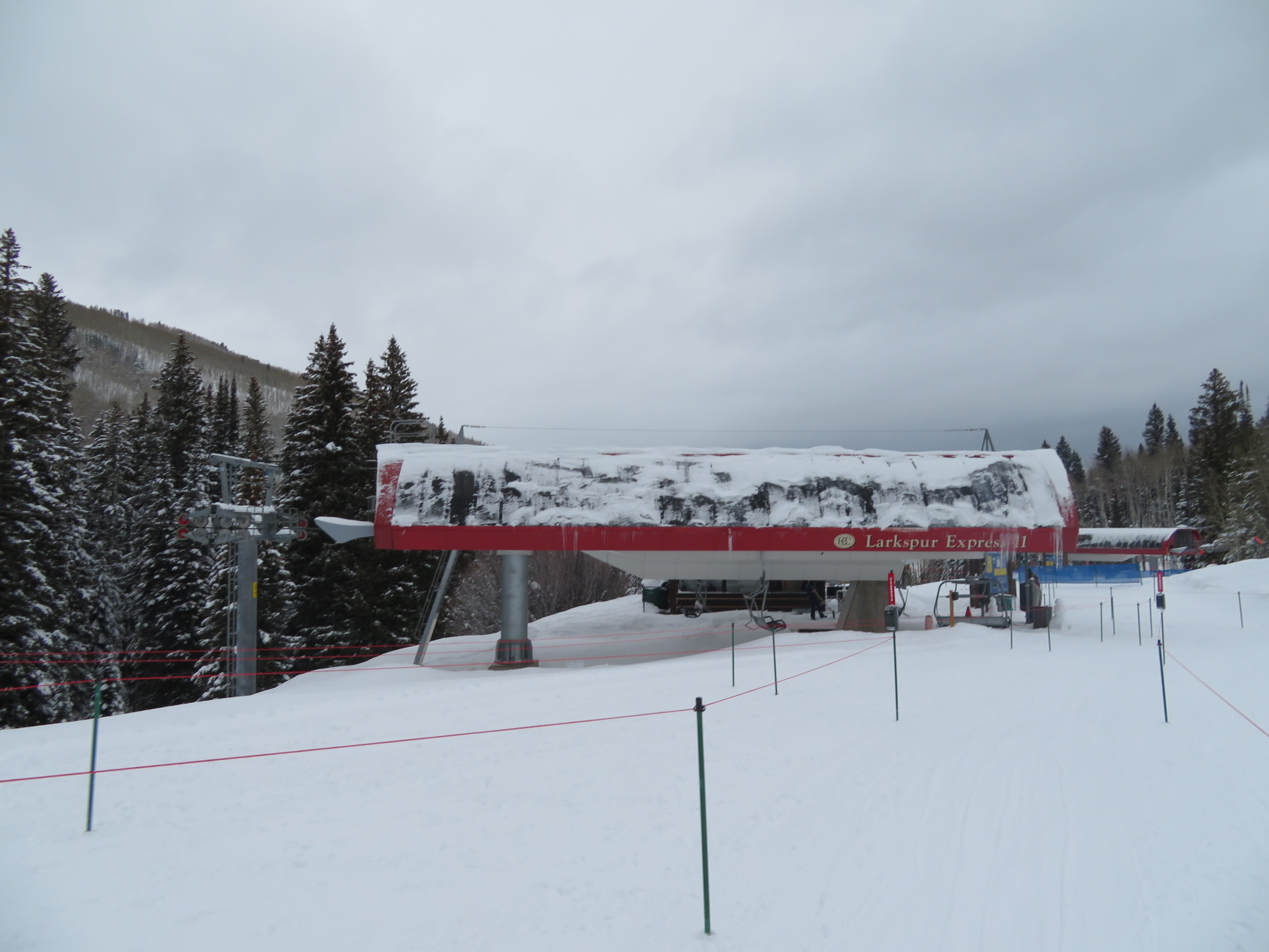 Looks like the top terminal was painted into the Bachelor Gulch brown instead of the Beaver Creek red at some point during its life (see the older pictures at Skilifts.org for the old bright red version). I wonder whether the new McCoy Park lifts will be BC red or Bachelor brown to match the nearby Upper BC and Larkspur lifts.