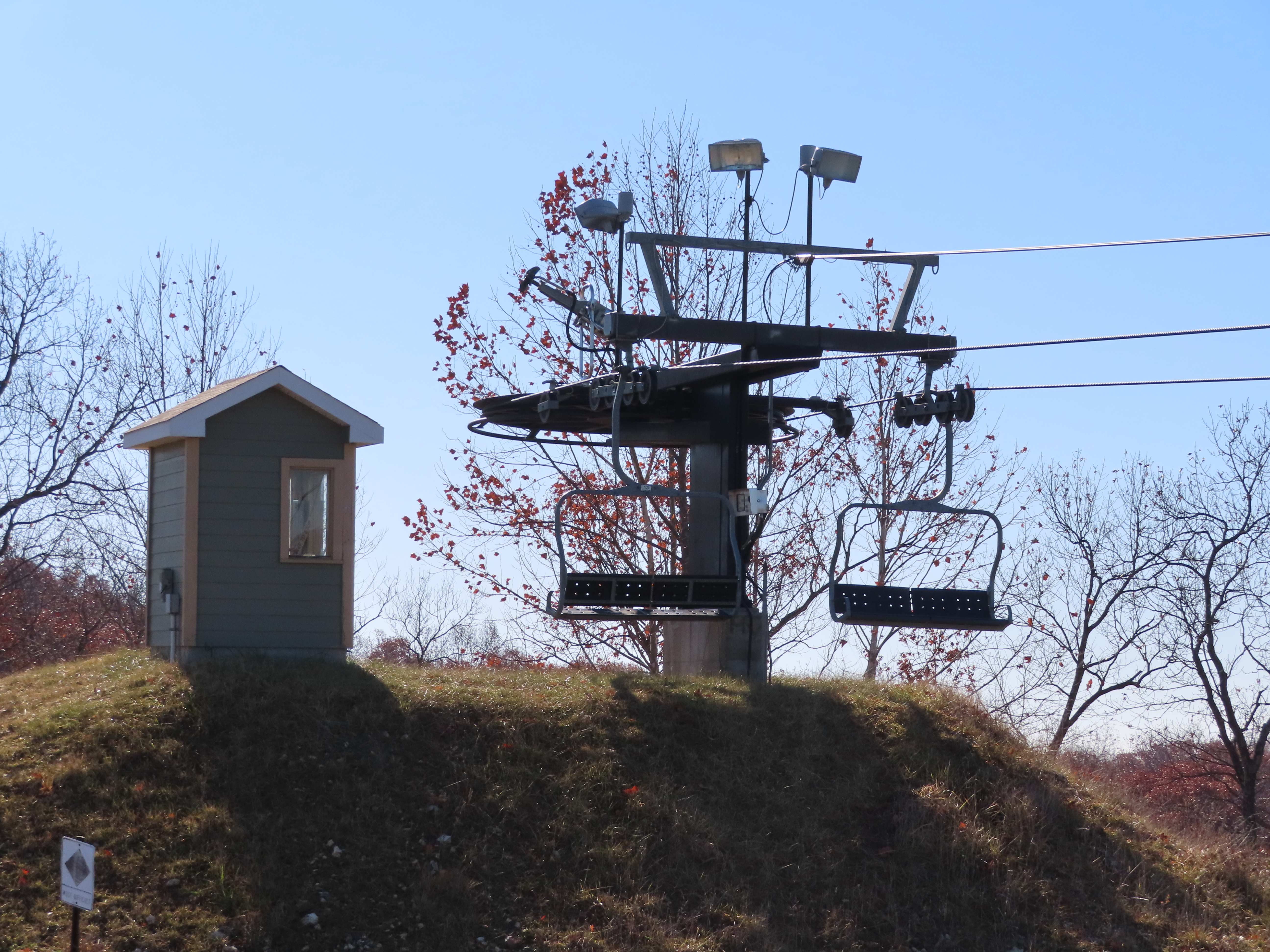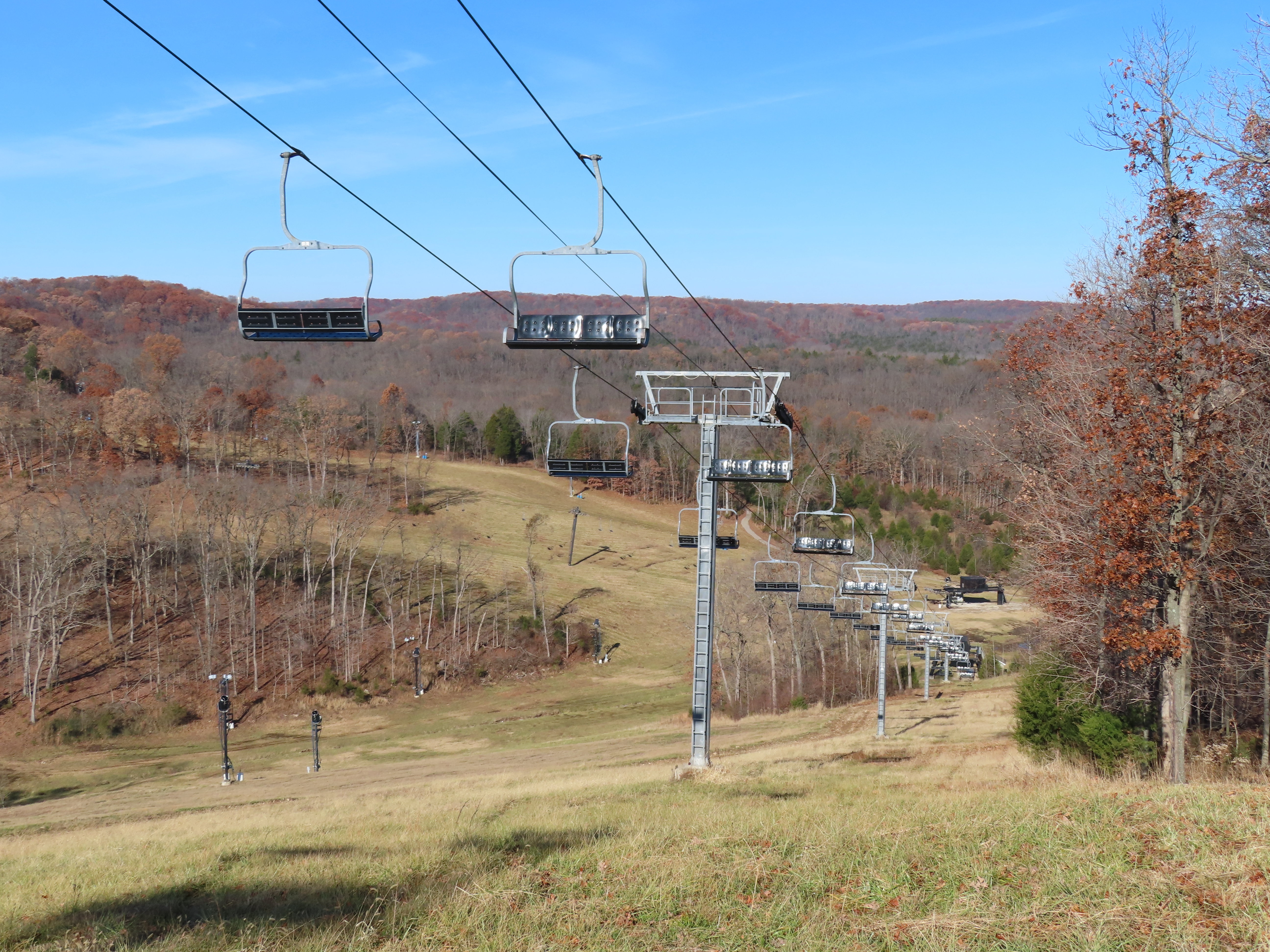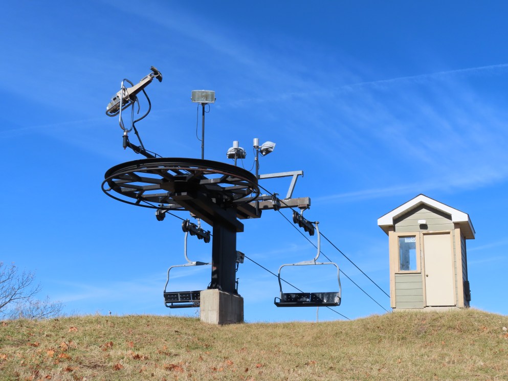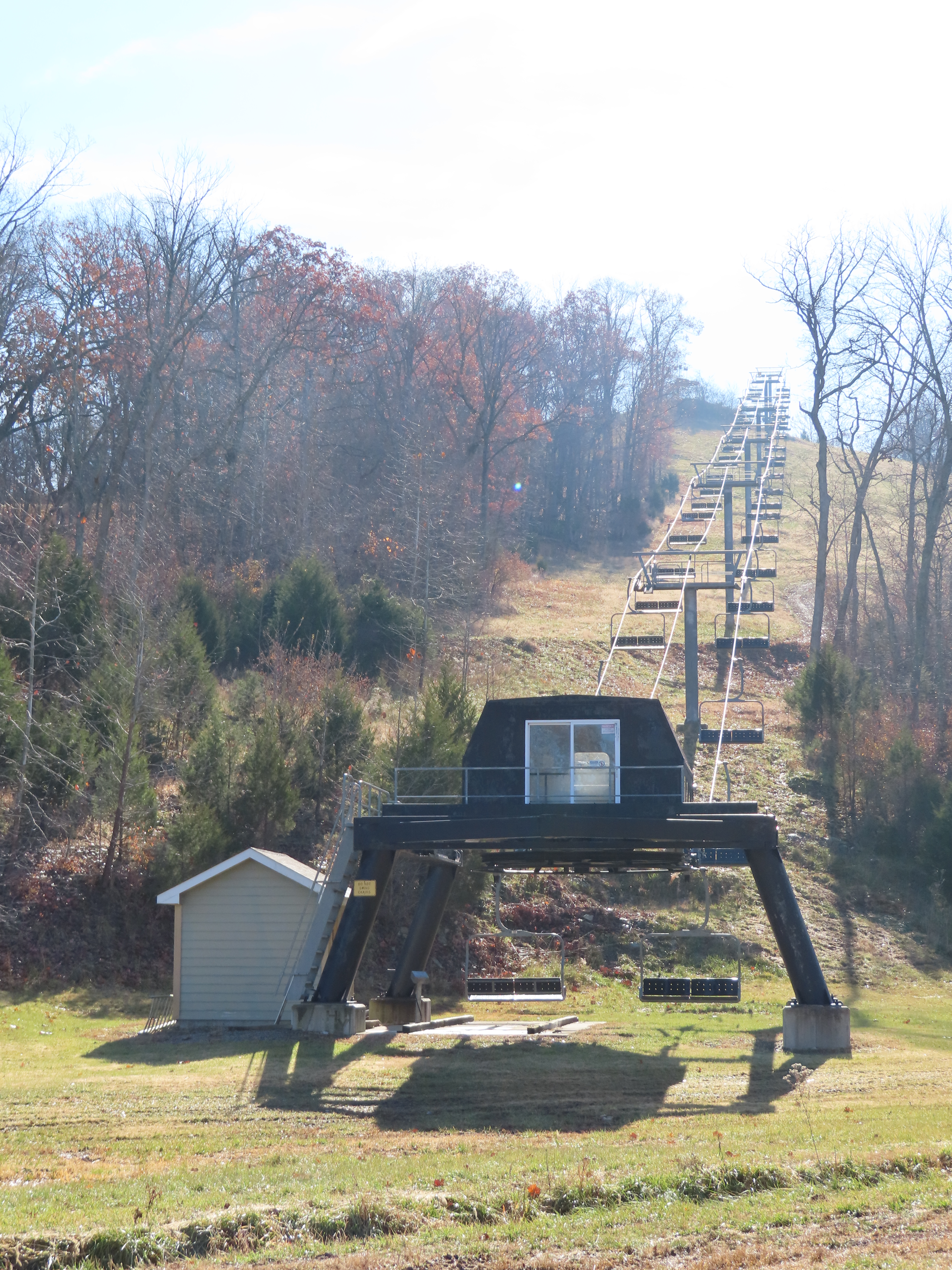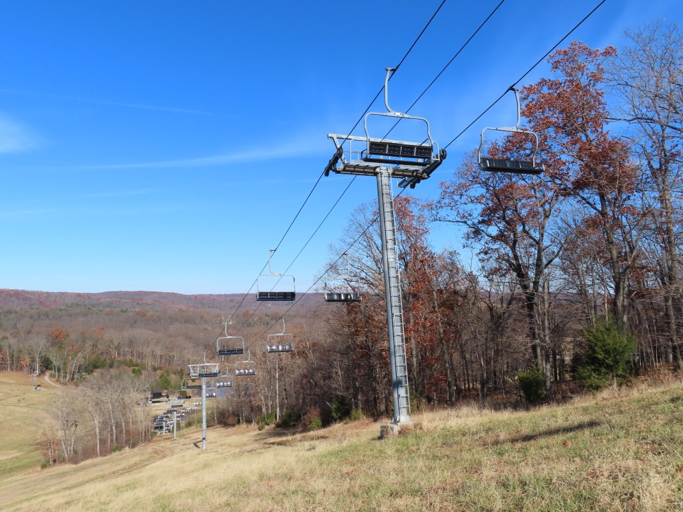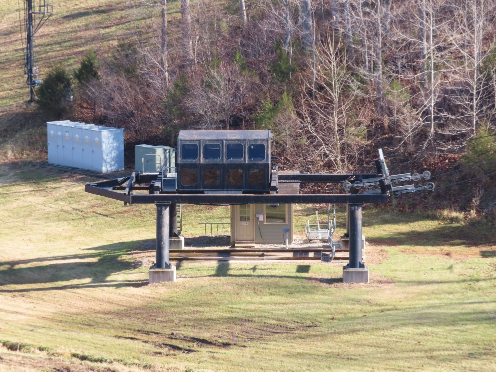 The lone Partek at an otherwise all-Riblet mountain.  Note the zip lines overhead.