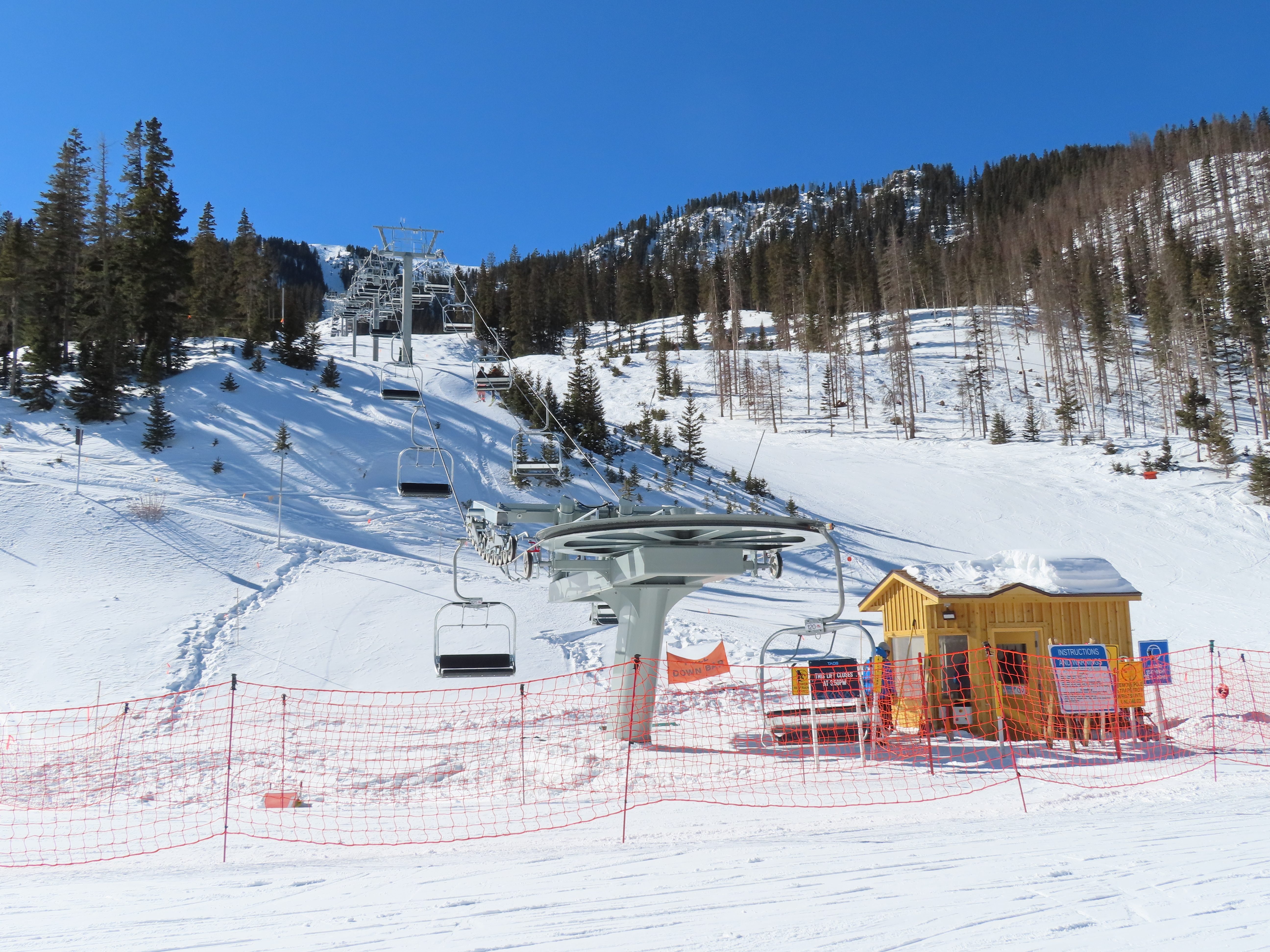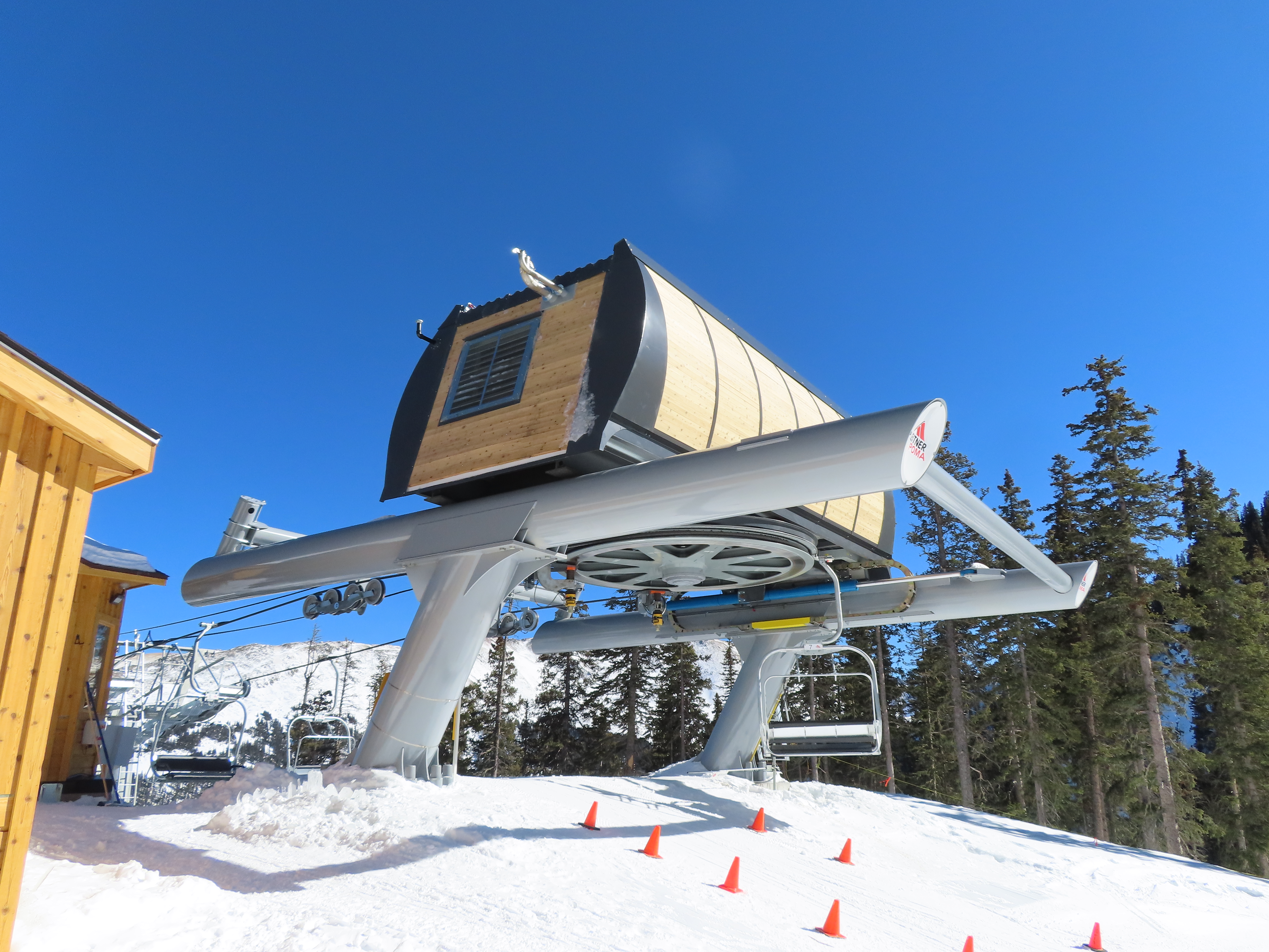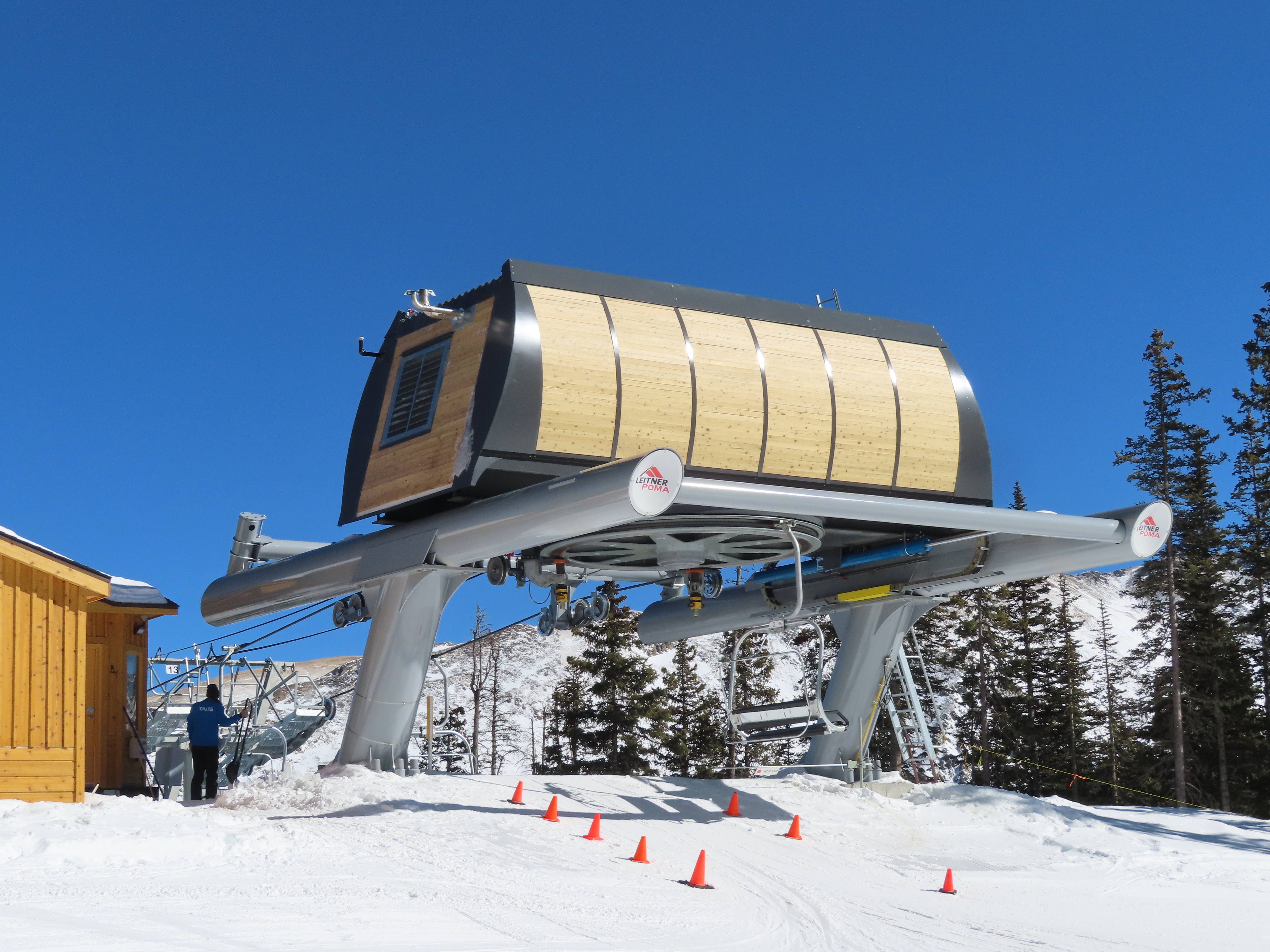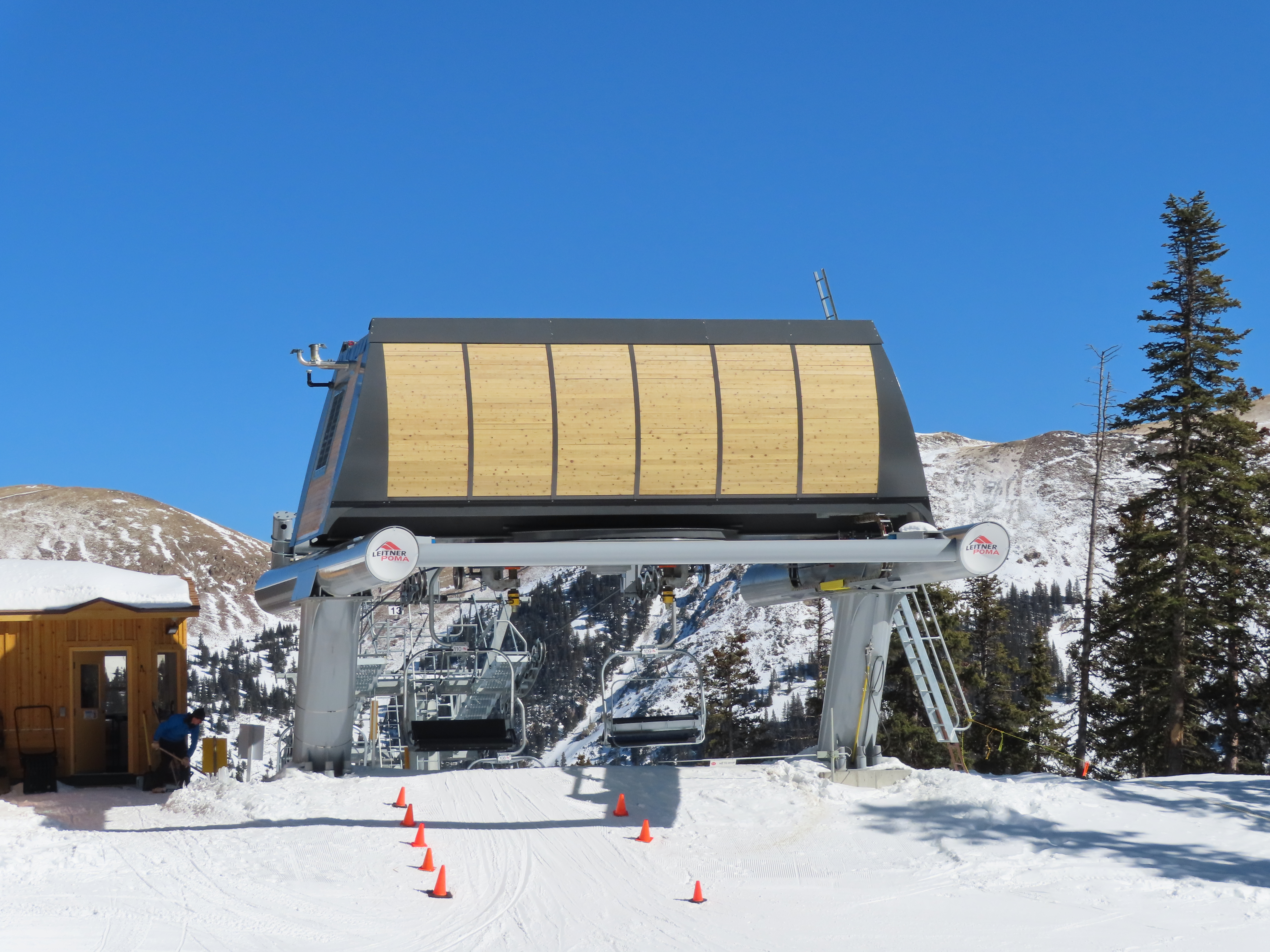 Interesting decision that Taos made to go with wood instead of the normal windows. I noticed that they did go with the normal windows on the side of the terminal looking down the lift line. I feel like it would look better if they kept the same material of the terminal to replace the windows instead of the wood, if that would even be possible. Definitely makes for an interesting lift.