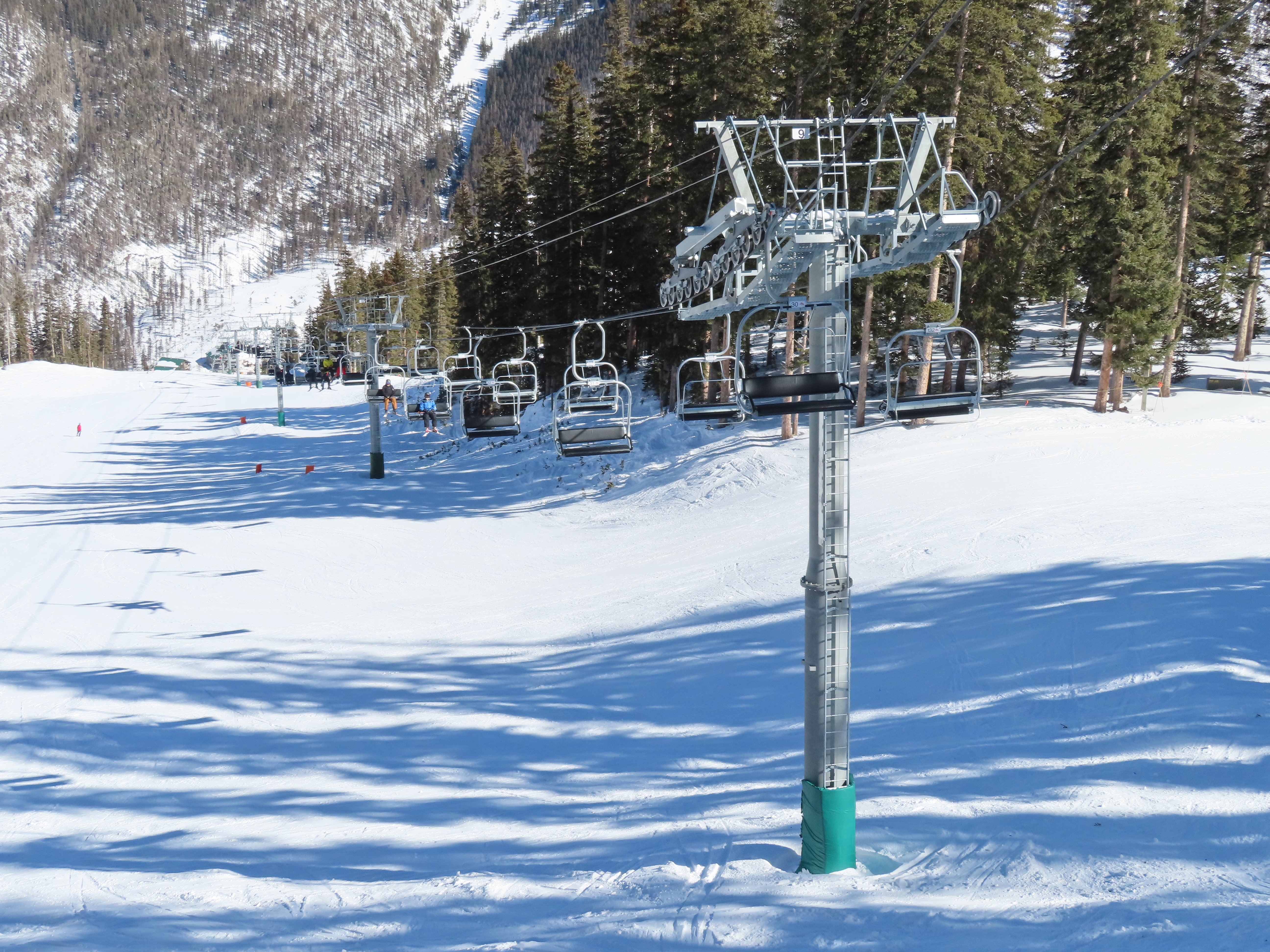 This lift is one of five Alphas built by Leitner-Poma in 2025.The top terminal features wood instead of windows on three sides due to sun exposure.View down the steep upper lift line.Another triple chair used to run in this alignment.View down at tower 10.Hold down tower 9.View up the upper line.Middle section of the line.Tower 4.View up the lift line at tower 2.Lower terminal overview.Side view of the Z style return.View riding out of the bottom station.Omega style chair manufactured in Asia.View riding up the line.Tower head with compression assemblies.Steep upper part of the line.Breakover towers 12 and 13.Arriving at the Alpha drive.View back down from the summit.Upper station overvirew.Middle section of the line.Tower 6.T10.Unloading area and drive bullwheel.Tower 3.Side view of the bottom station.