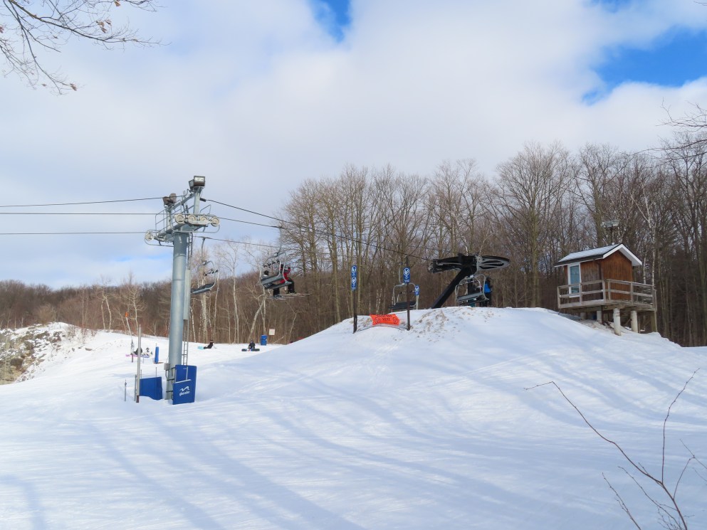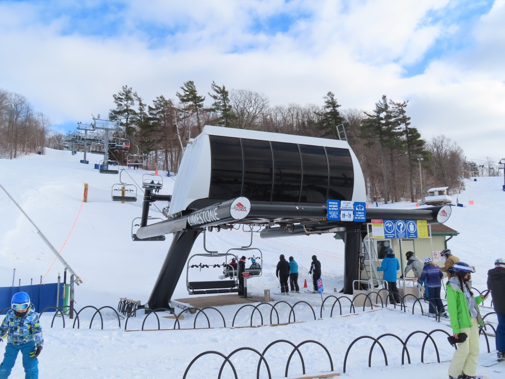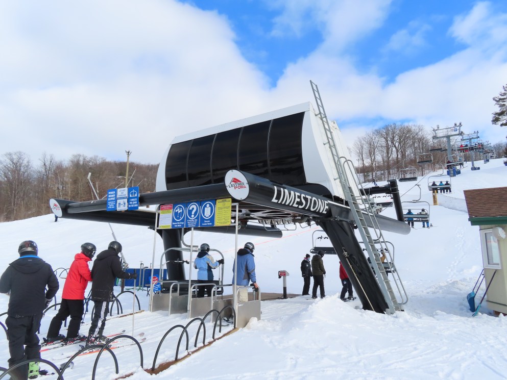 This lift is named for rock formations nearby.View down the short lift line.Looking down at tower 3.View up the line.Leitner-Poma Alpha station.Lift overview.Loading area and motor room.View leaving the bottom terminal.View riding up the line.Unloading area.