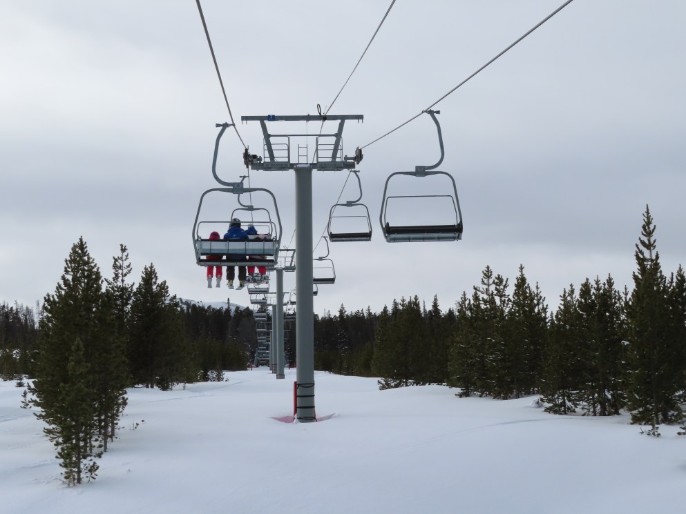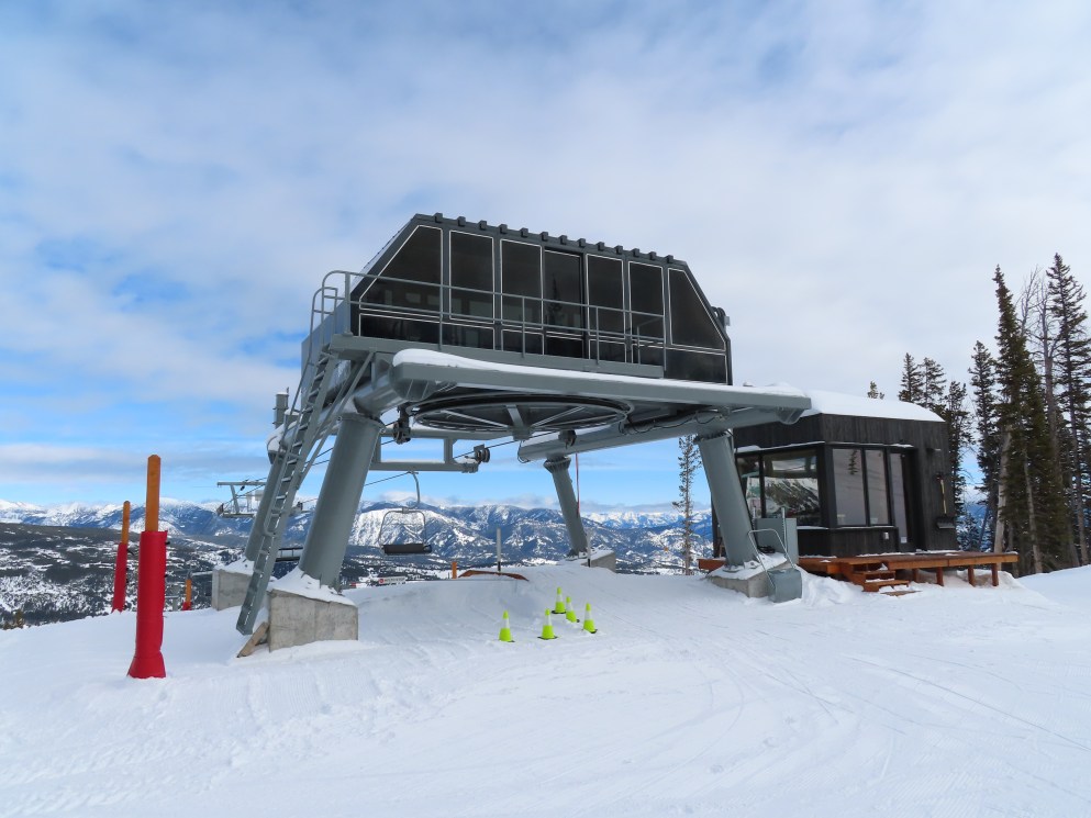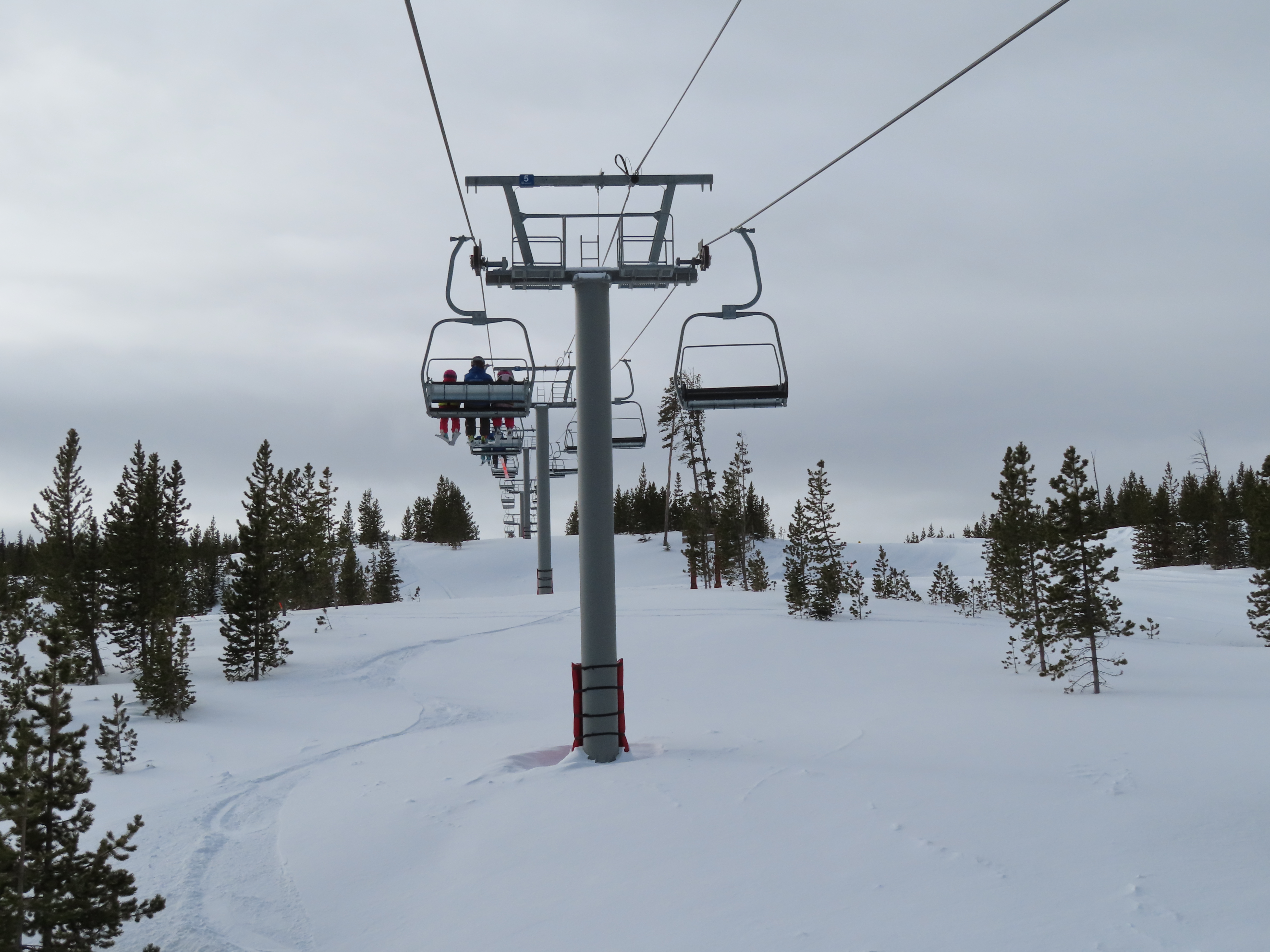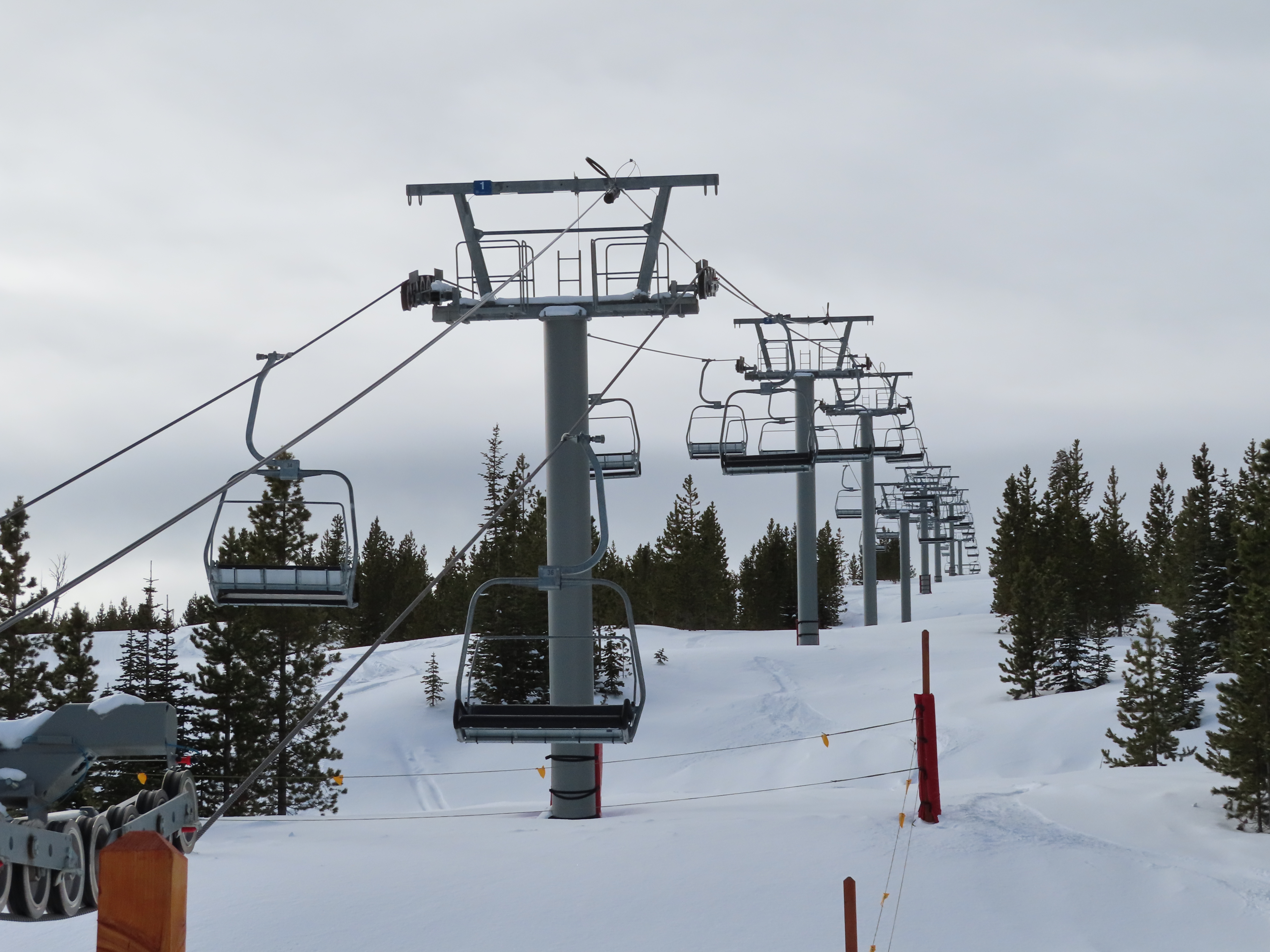 The Little Dipper lift was one of the first lifts built at YC in 2001 and was moved to this location on Eglise Rock in 2017.Unlike in its previous incarnation, there is no mid-station.Leaving the bottom terminal.Riding up the mellow lift line.View up at tower 7.Arriving at the top drive station.Unloading area and operator station.Side view of the motor room and tension carriage.View down from the top.