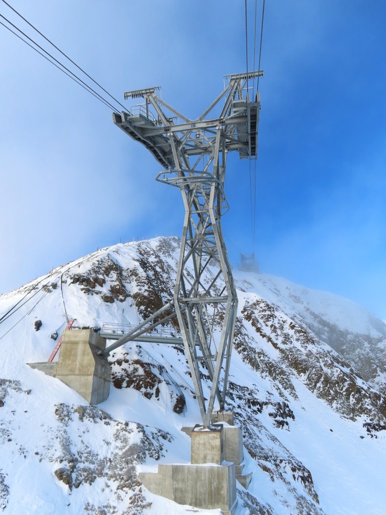 Big Sky opened a new tram to Lone Peak on December 19, 2023.Tower 1 near the summit terminal.