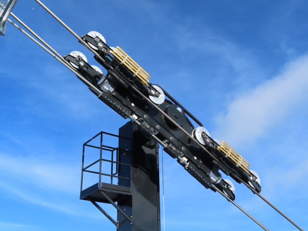 No active tension on either track or haul ropes? Never seen that anywhere. Definitely not the old style Jigback trams