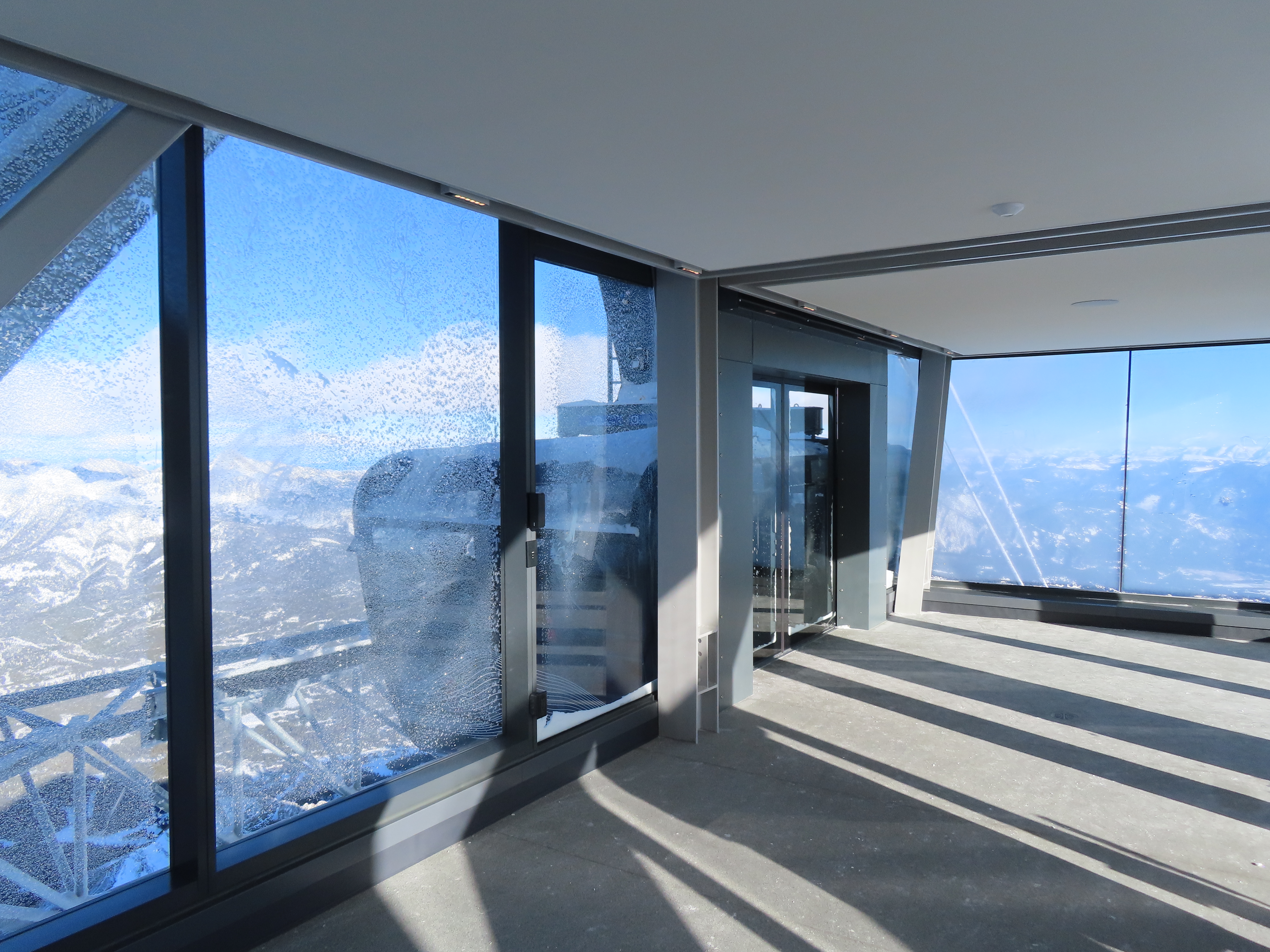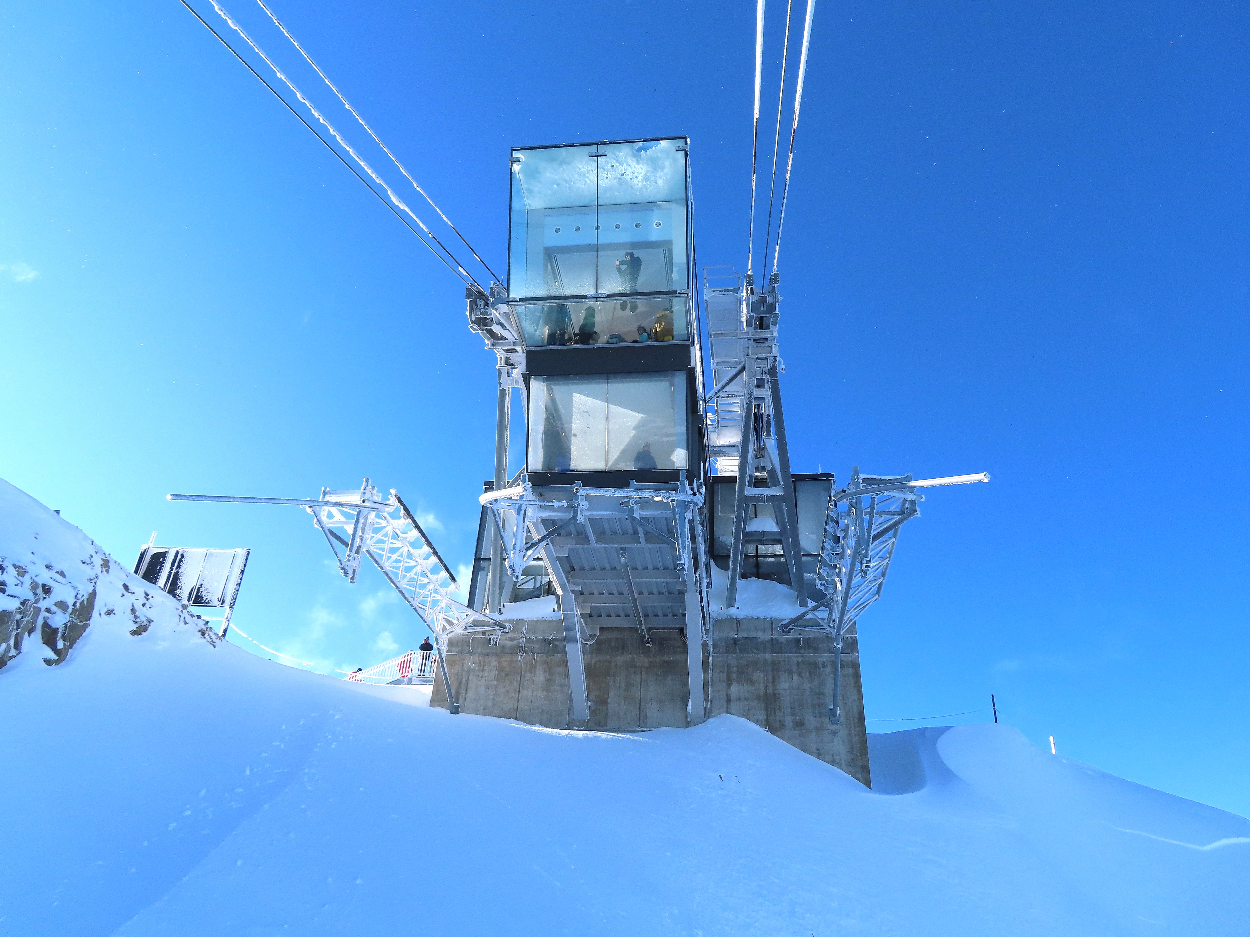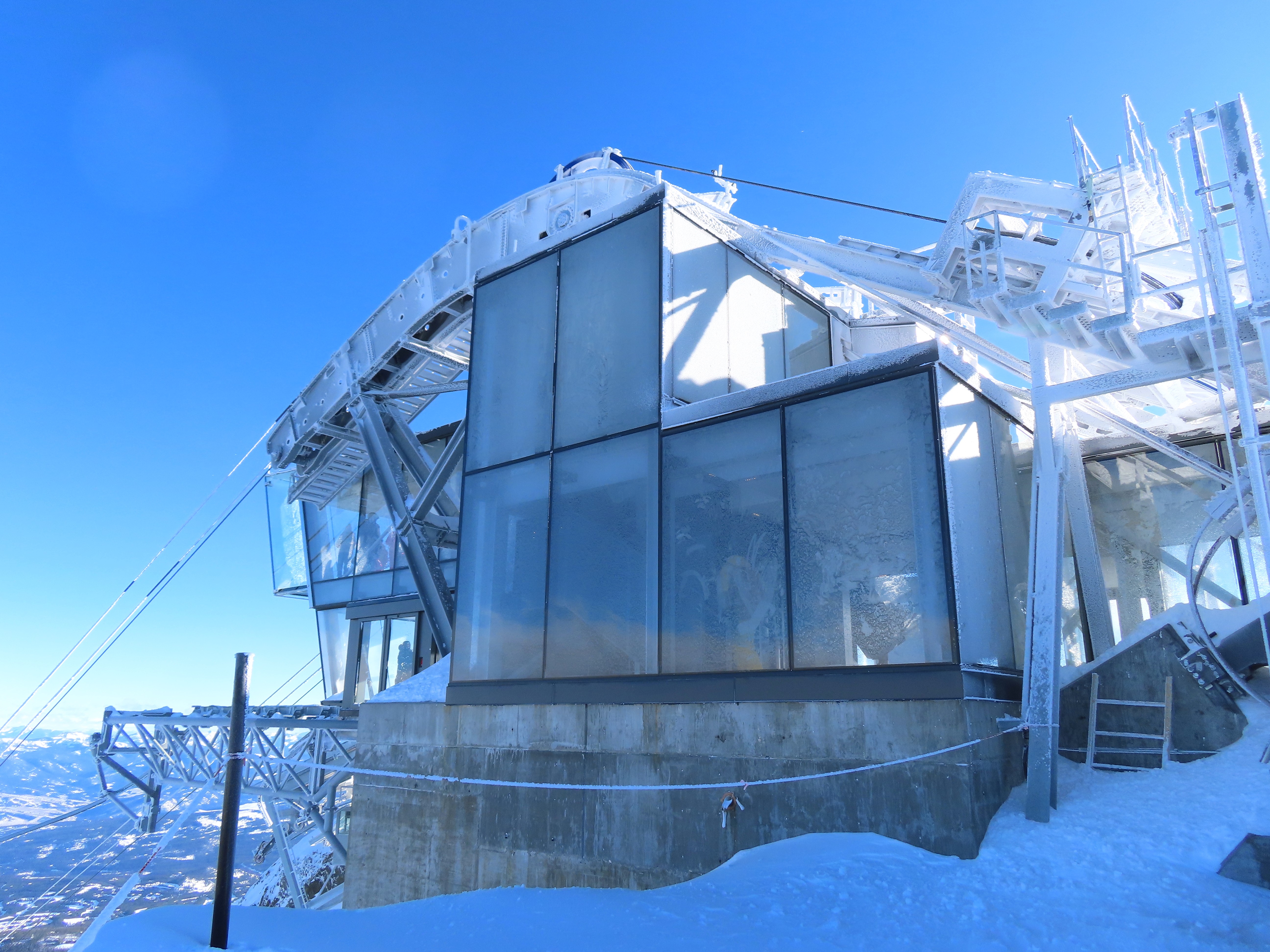 Glass-enclosed top station.
